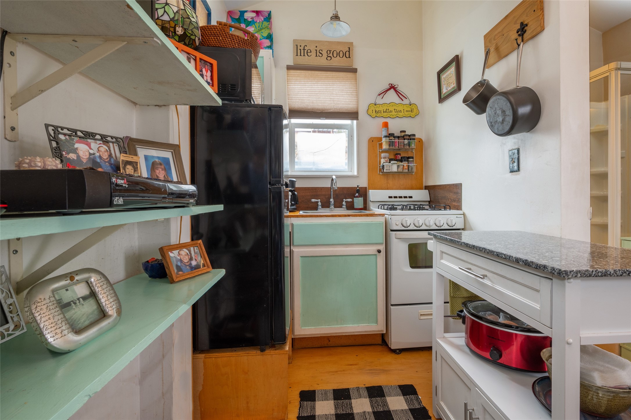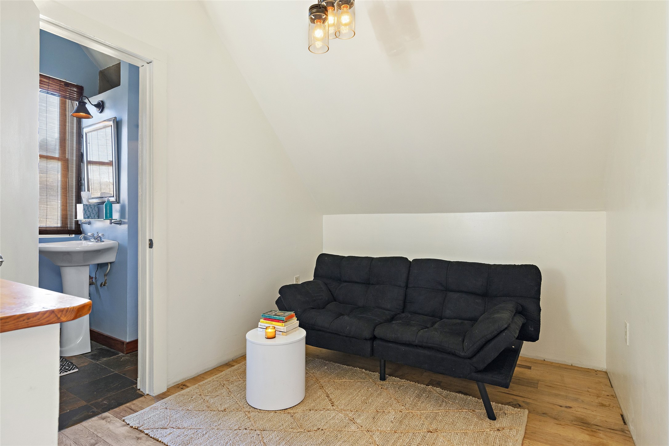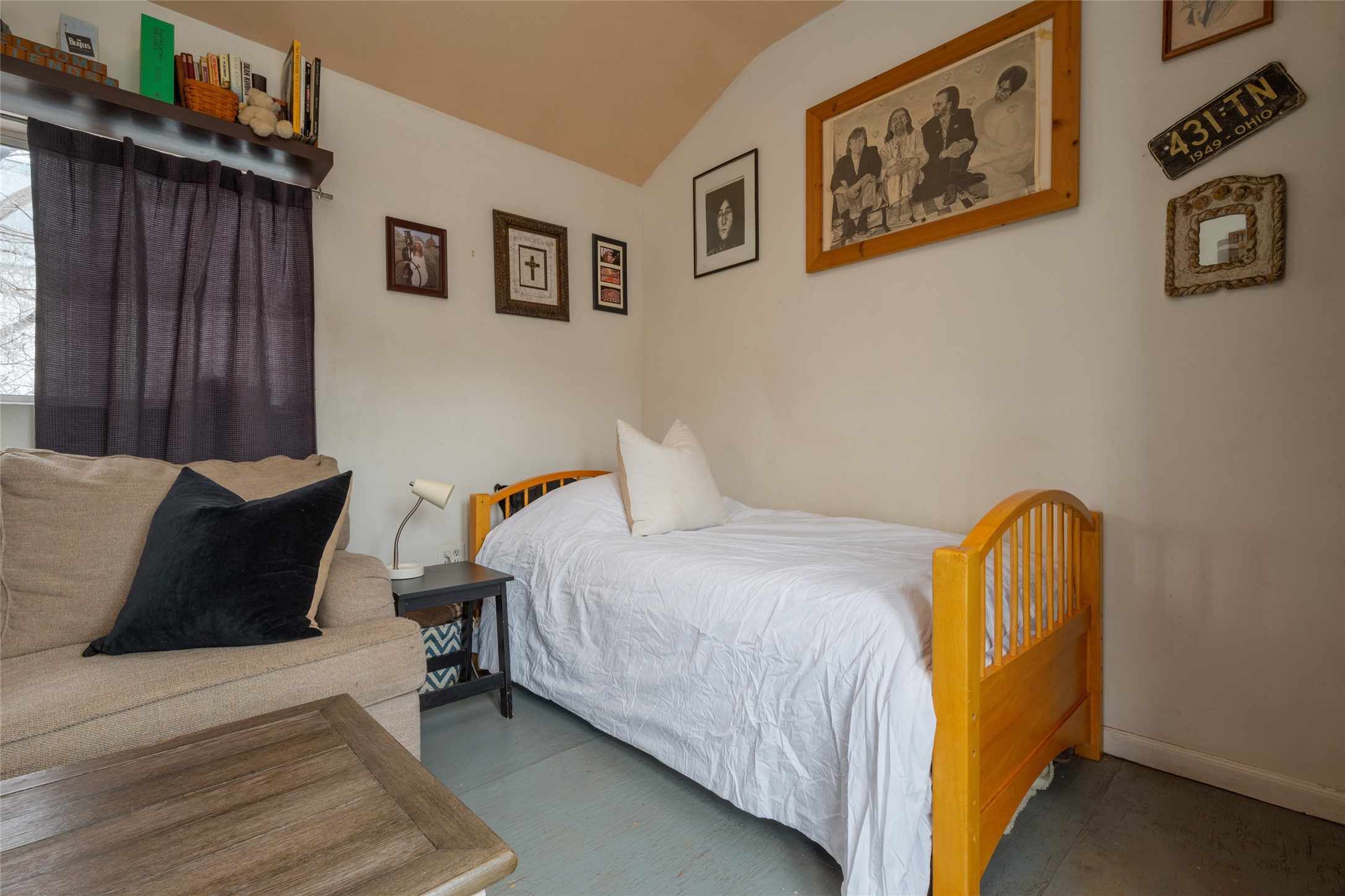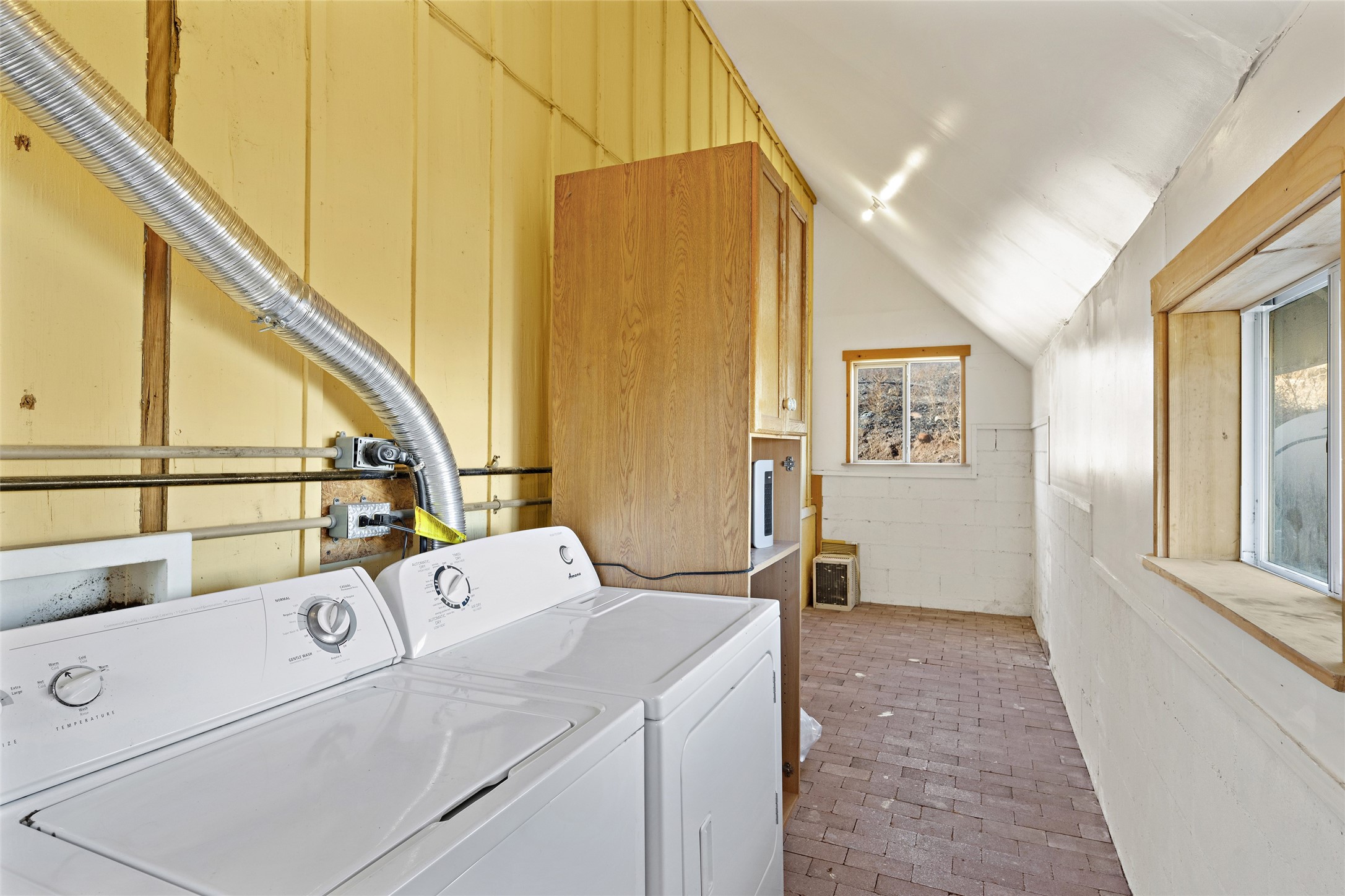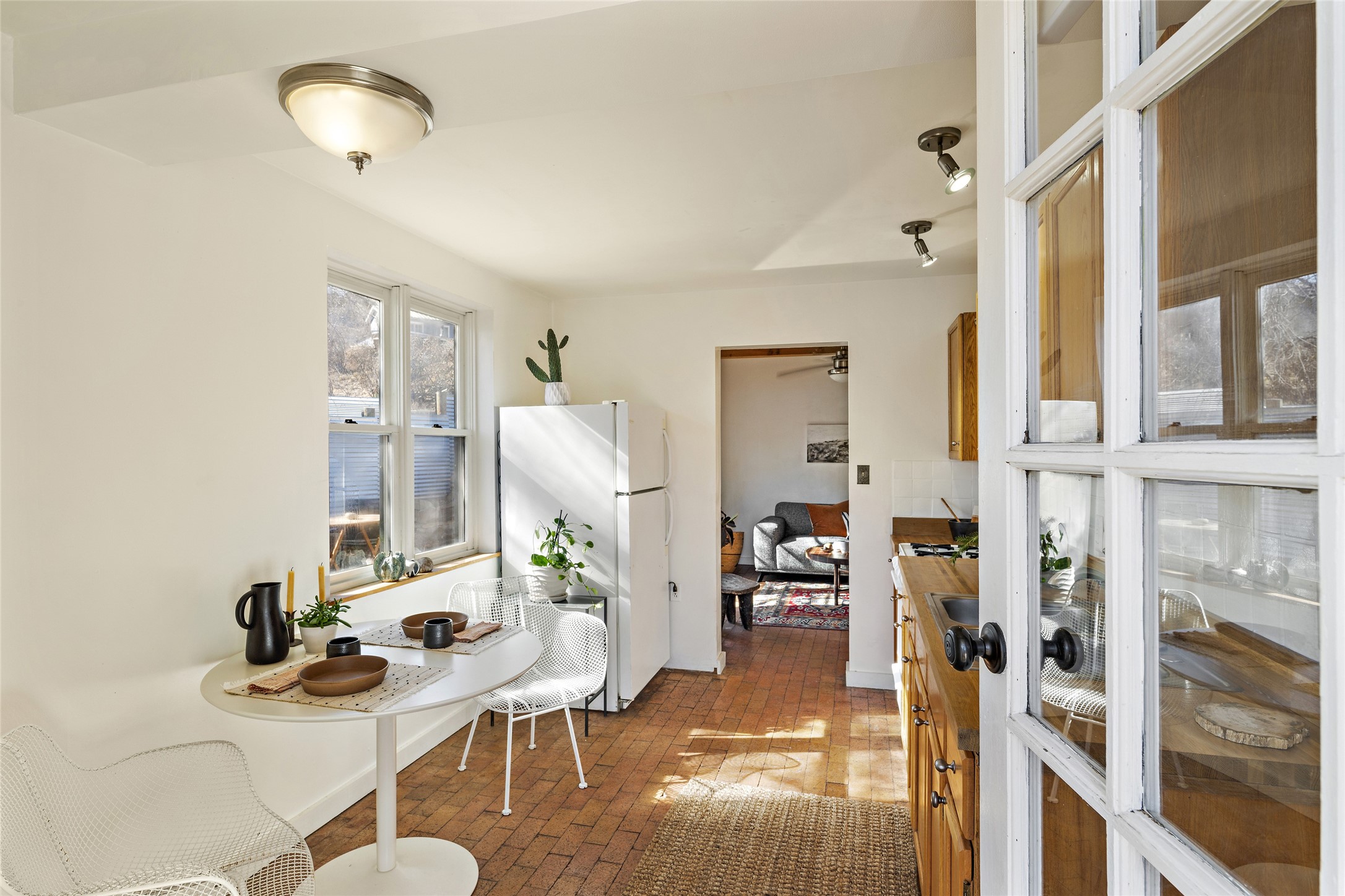 A charming house in great condition and detached guest house make this versatile property a great opportunity for home and studio, home with rental income or home with appealing guest quarters. The main home is nestled within a private fenced yard with entry gate and sits just above Madrid Main Street with views to the surrounding hillside and walking access to all that this vibrant, historic community has to offer. The wood beamed ceiling and lovely brick and wood floors in the main home add a warm and comfortable feel to the home. Patio doors from the living room allow for easy access to the outdoor courtyard. The upstairs bedroom and bath include updated tile, hardwood floors, and vaulted ceiling. The guest house is complete with kitchen, bath and lovely patio doors. Located just south of Santa Fe off the Scenic Turquoise Trail in Madrid village with restaurants, general store, coffee shop, live music, galleries and easy access to open space. The 1,100-acre Cerrillos Hills Park is only minutes away. Enjoy rural village living with easy access to Santa Fe and Albuquerque.
