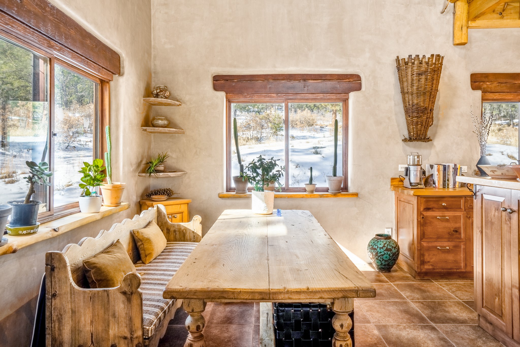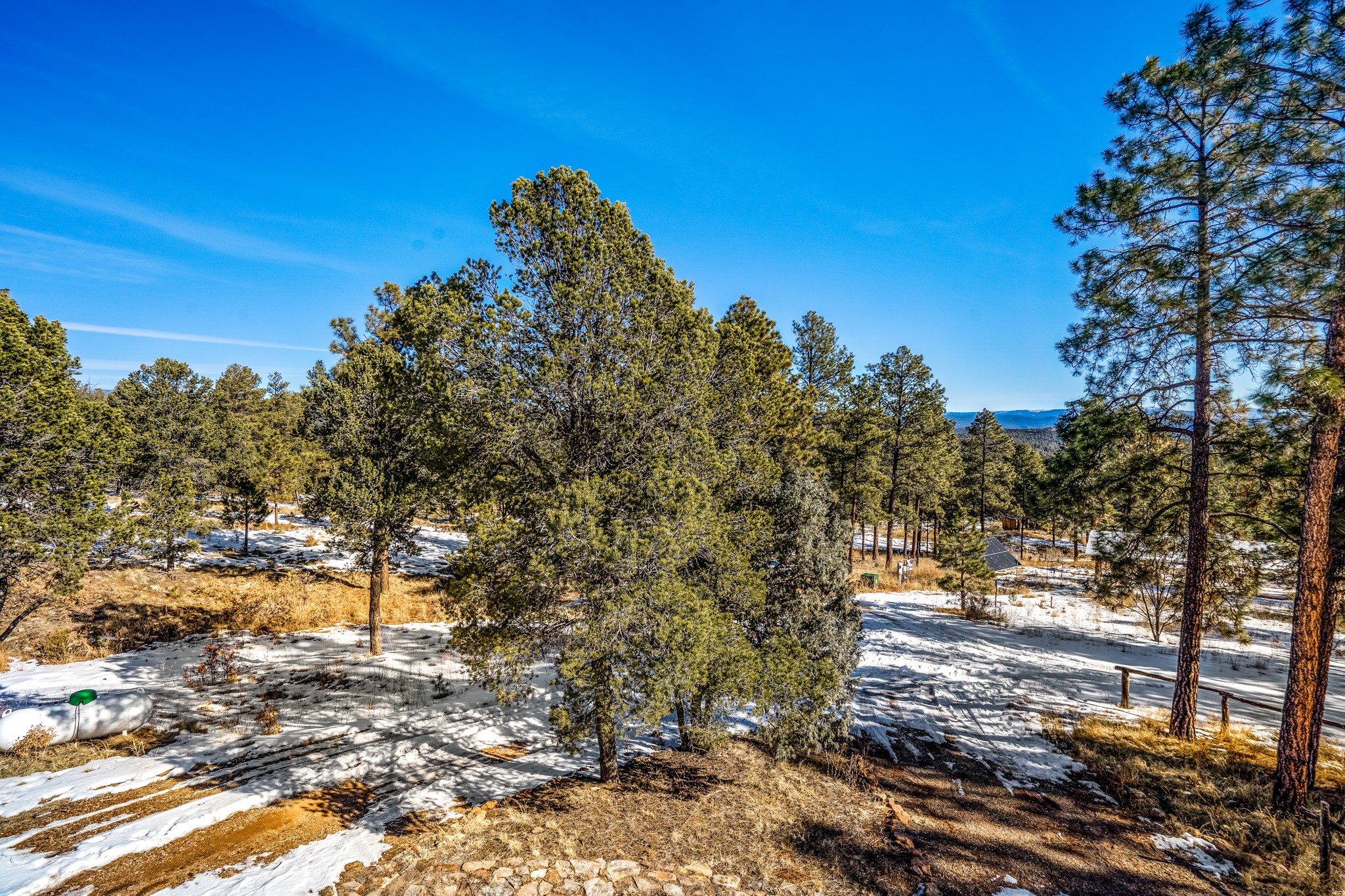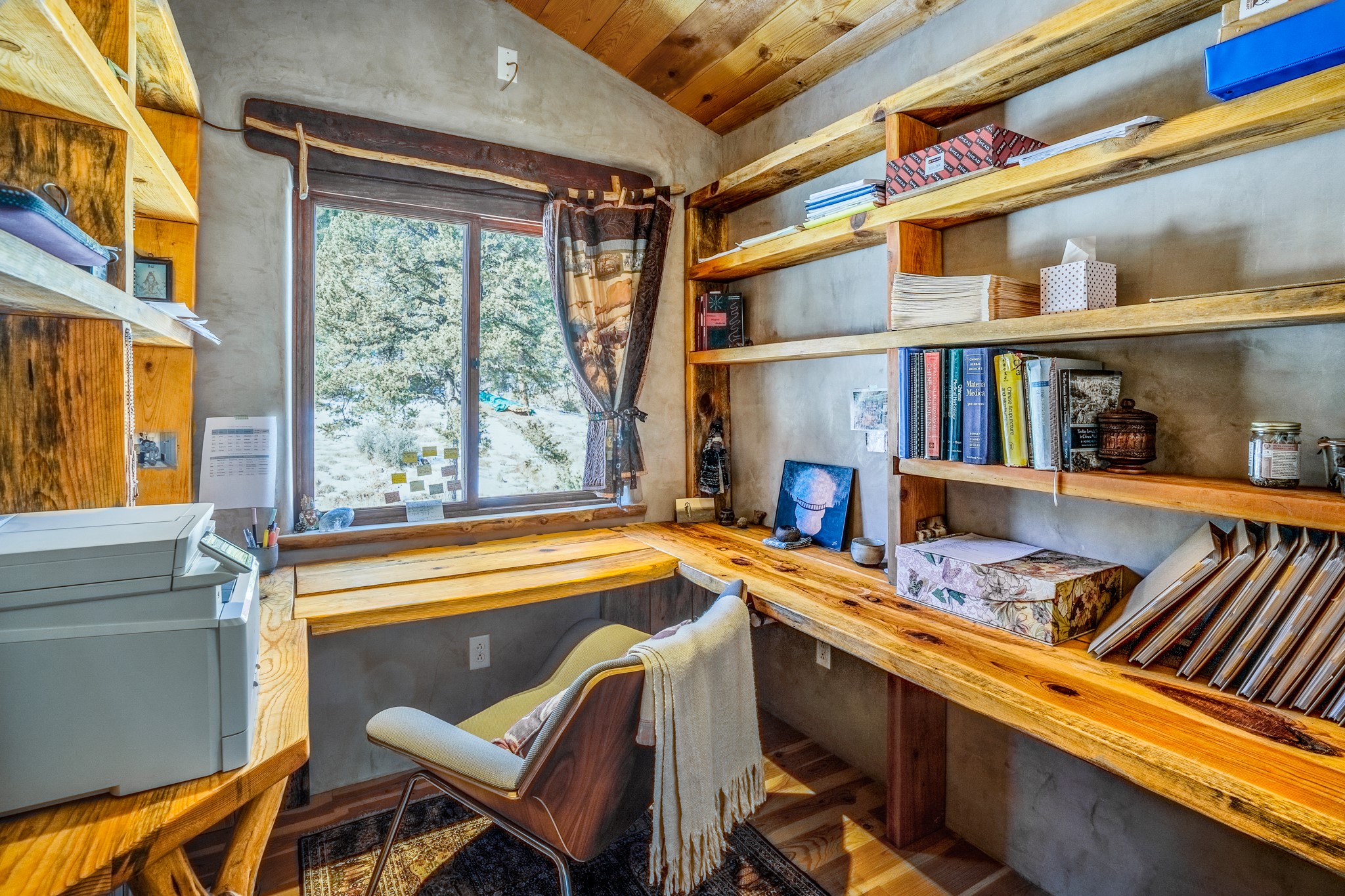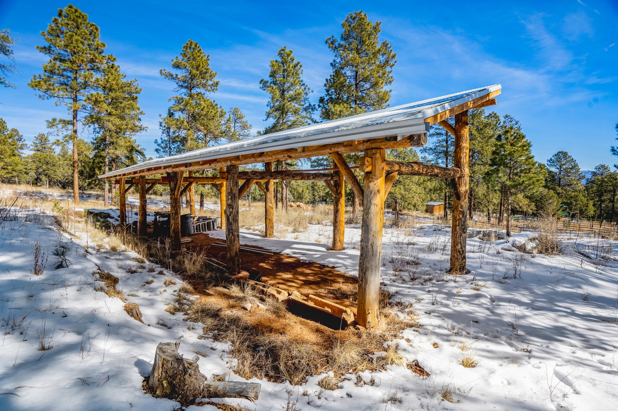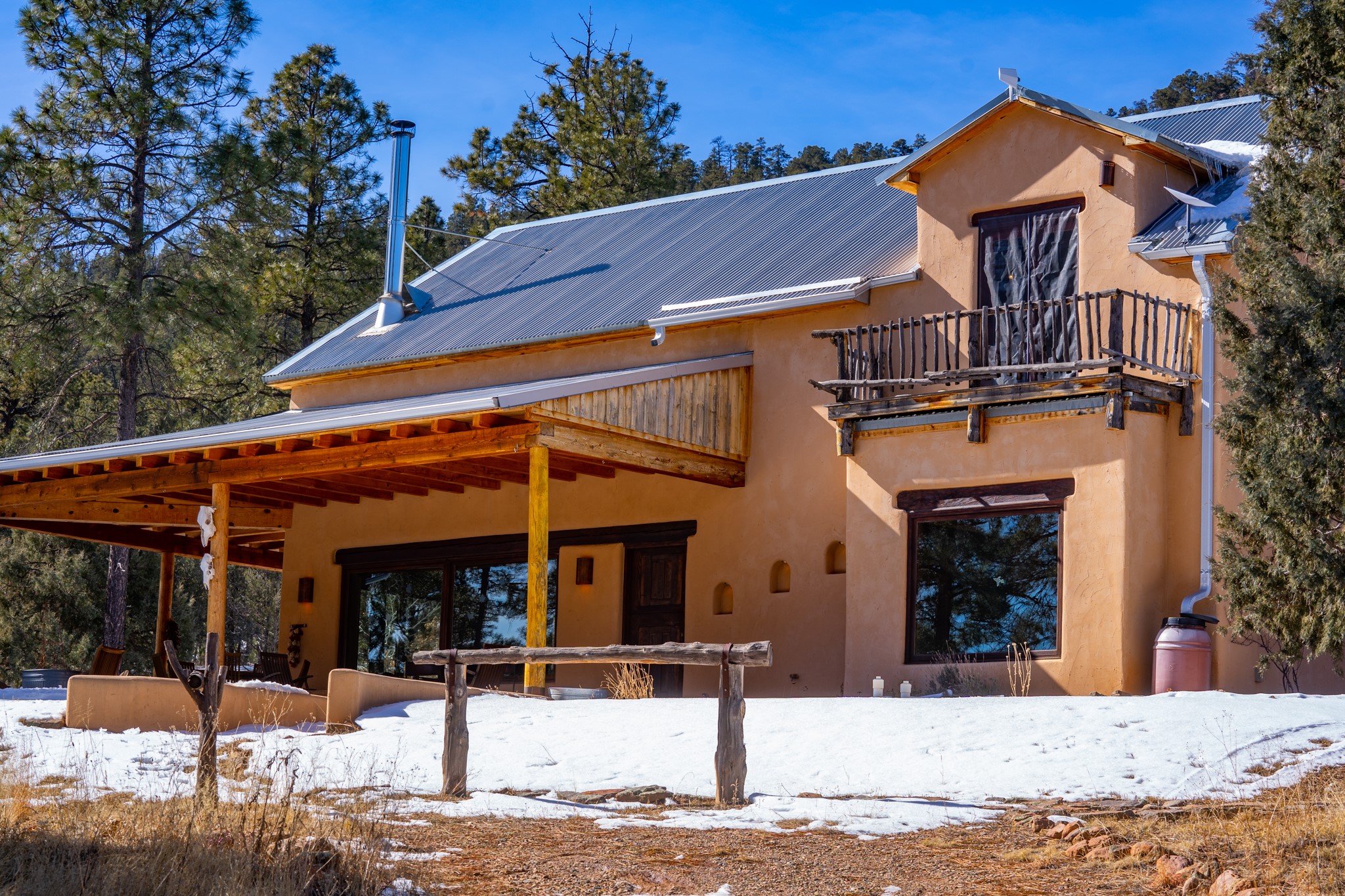 Exceptionally gorgeous custom built home on 12 1/2 acres adjoining 89,000 acres of Santa Fe National Forest with a trail, full horse facilities, full solar and a private well. Architectural features include Hand plastered natural American clay walls, 20 foot vaulted, pitched wood ceilings in the open living room, kitchen and dining. Gourmet cook's kitchen with farm sink, natural wood cabinetry and wood counters, La Puerta hand made Dutch doors, nichos, wood inlay, and restoration hardware light switches. Additional features include expansive upstairs and downstairs bedrooms; a primary bath with deep soaking clawfoot tub; Ensuite upstairs bath is plumbed and ready for fixtures. a bonus office loft, all wood and tile floors throughout with newer in floor radiant heat, A large mud room with utility, laundry (washer, dryer included); Expansive and deep wrap around portal with a kiva fireplace facing South and East. A 280 foot deep private well that produced 50+ gallons when drilled in 1993, wooden features (ceilings, loft window sills, kitchen countertops) made from trees harvested from the property that original owners cut, peeled and milled themselves, no HOA, and fully owned solar electrical system with ground array of 12 panels. (electric bill is $27 a month) The acreage is thriving with tall Ponderosa Pine, Fir, Pinon and Juniper trees, varied terrain, dramatic rock outcroppings, and fenced garden areas. For horses, goats, sheep or chickens, a 90'x90' arena, a 50' round pen, loafing shed, 2 fenced stalls, a covered hay shed and separate tack room. The Seller has shared riding trails from the home to the National Forest. Property is also zoned for a potential guest house, studio or ADU. This home is like no other with a focus on quality and aesthetics that is incomparable. Most "Casa Fina" furnishings may convey with an acceptable offer. bonus RV hook up on property too. also, In the esteemed Eldorado school district.