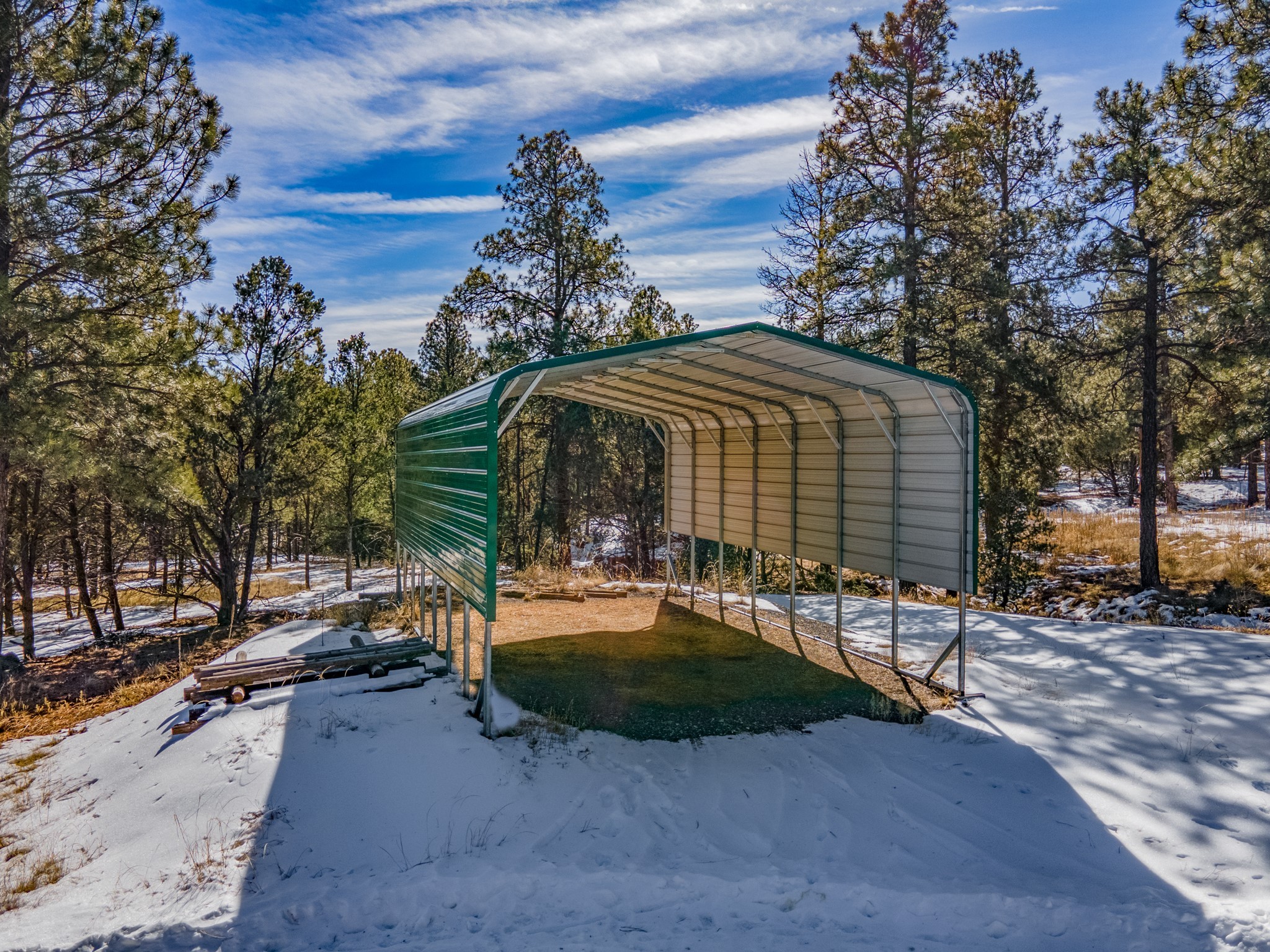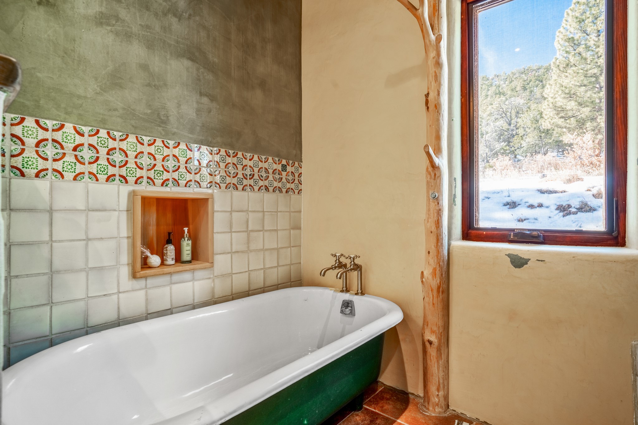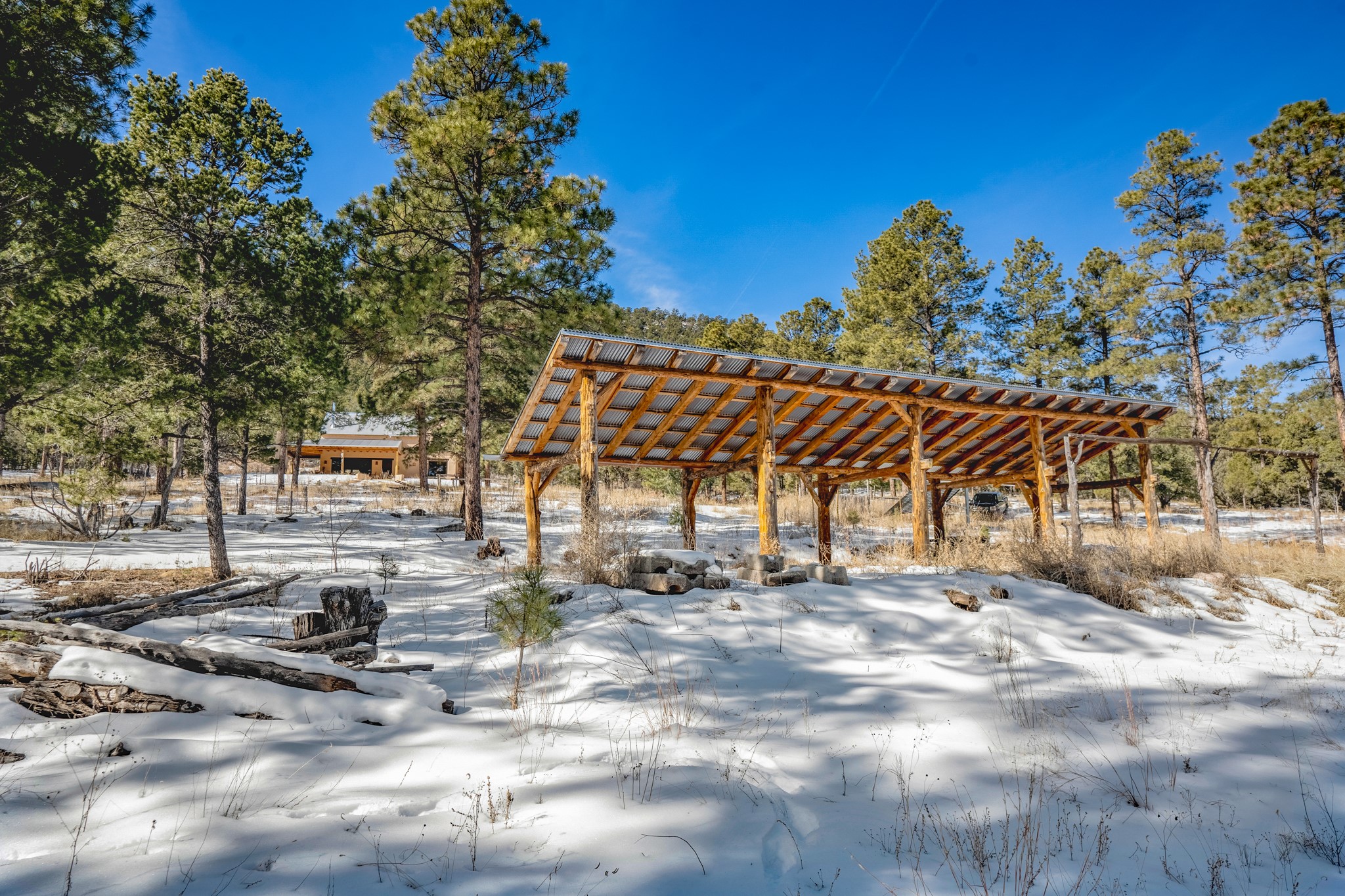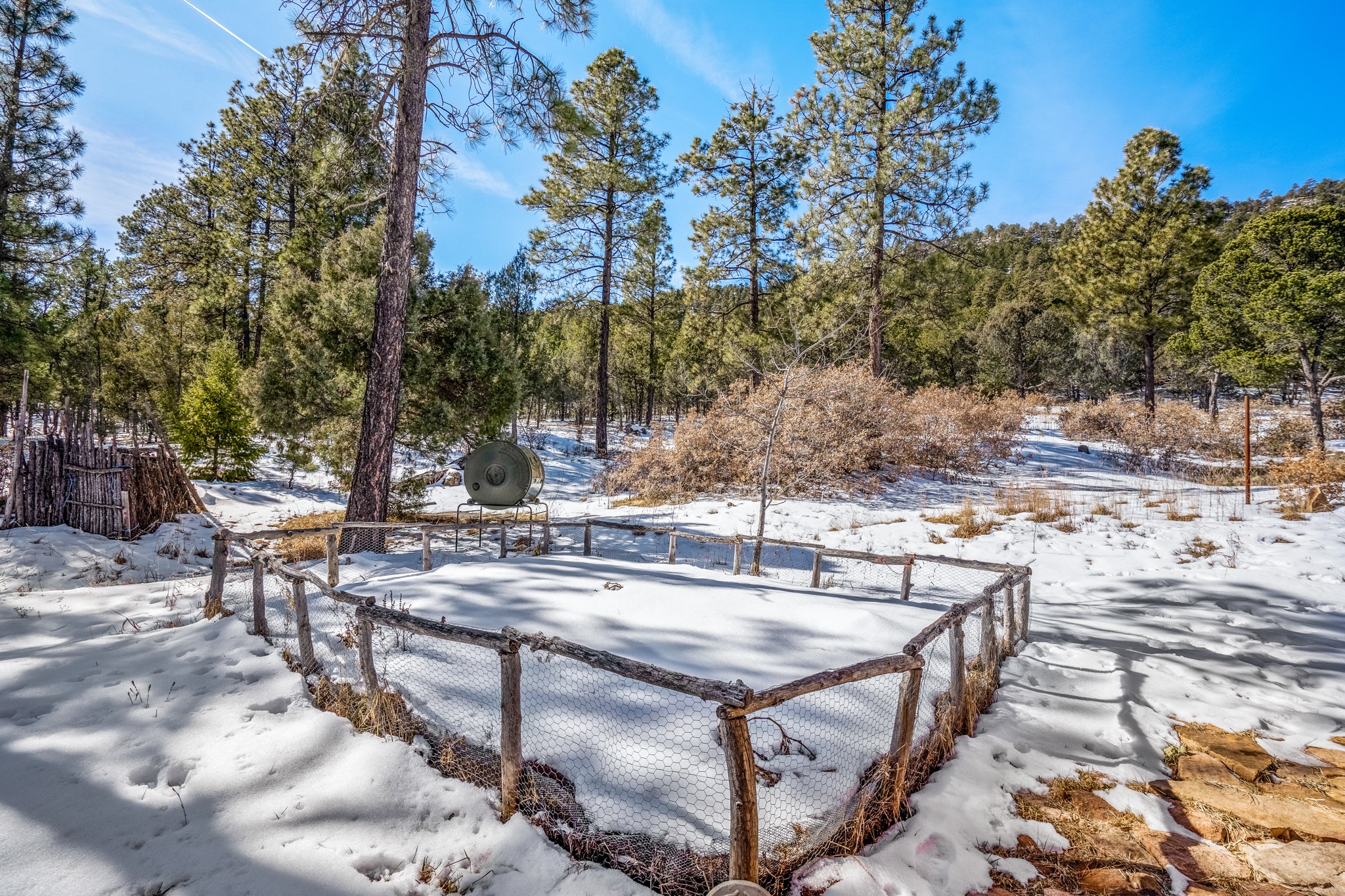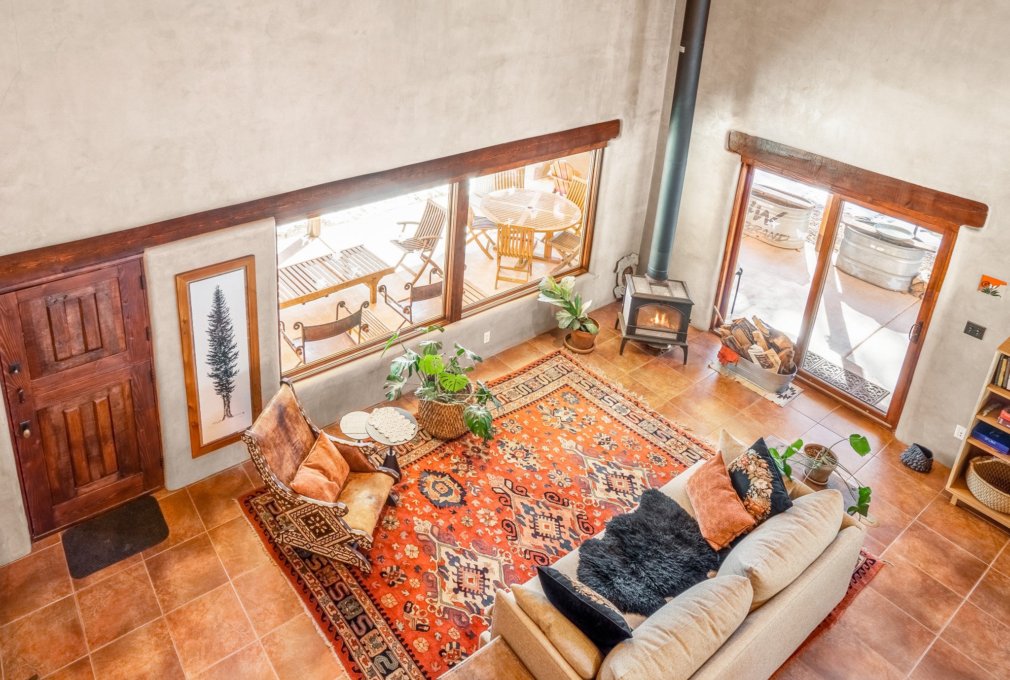 Exceptionally gorgeous custom built home on 12 1/2 acres adjoining 89,000 acres of Santa Fe National Forest with a trail, full horse facilities, full solar and a private well. Architectural features include Hand plastered natural American clay walls, 20 foot vaulted, pitched wood ceilings in the open living room, kitchen and dining. Gourmet cook's kitchen with farm sink, natural wood cabinetry and wood counters, La Puerta hand made Dutch doors, nichos, wood inlay, and restoration hardware light switches. Additional features include expansive upstairs and downstairs bedrooms; a primary bath with deep soaking clawfoot tub; Ensuite upstairs bath is plumbed and ready for fixtures. a bonus office loft, all wood and tile floors throughout with newer in floor radiant heat, A large mud room with utility, laundry (washer, dryer included); Expansive and deep wrap around portal with a kiva fireplace facing South and East. A 280 foot deep private well that produced 50+ gallons when drilled in 1993, wooden features (ceilings, loft window sills, kitchen countertops) made from trees harvested from the property that original owners cut, peeled and milled themselves, no HOA, and fully owned solar electrical system with ground array of 12 panels. (electric bill is $27 a month) The acreage is thriving with tall Ponderosa Pine, Fir, Pinon and Juniper trees, varied terrain, dramatic rock outcroppings, and fenced garden areas. For horses, goats, sheep or chickens, a 90'x90' arena, a 50' round pen, loafing shed, 2 fenced stalls, a covered hay shed and separate tack room. The Seller has shared riding trails from the home to the National Forest. Property is also zoned for a potential guest house, studio or ADU. This home is like no other with a focus on quality and aesthetics that is incomparable. Most "Casa Fina" furnishings may convey with an acceptable offer. bonus RV hook up on property too. also, In the esteemed Eldorado school district.