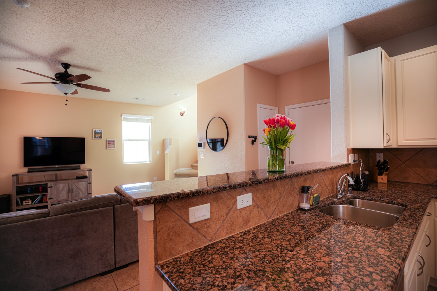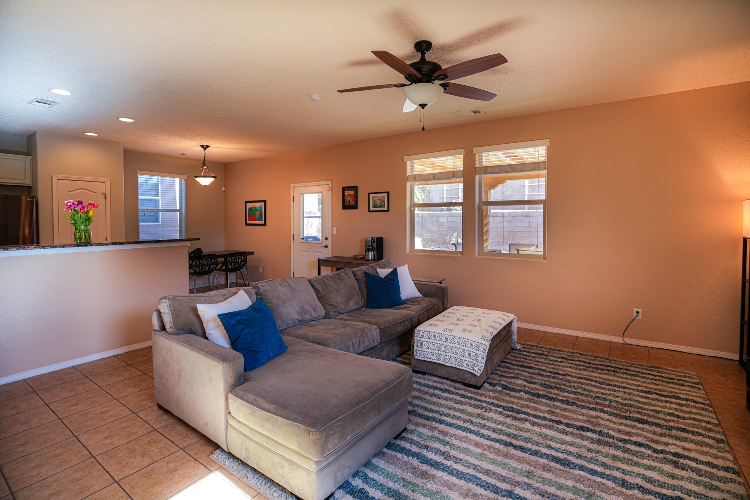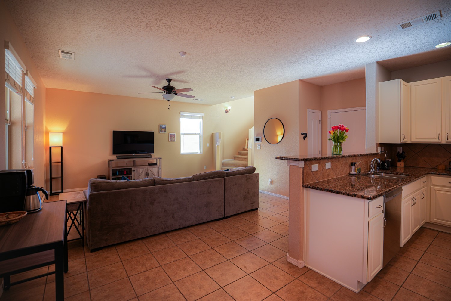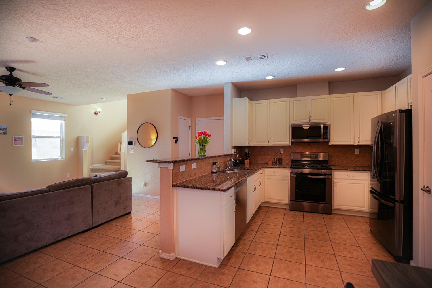 OPEN HOUSE ON MARCH 17, 18, & 19FRIDAY FROM 4-6PM, SATURDAY & SUNDAY FROM 1-4PM. SEE YOU THERE!This charming home is situated in the Villa Sonata neighborhood. The property has 4 bedrooms, 2.5 bathrooms, approximately 2181 square feet of living space, and a 2-car garage. The kitchen is equipped with granite countertops, tile backsplash, and stainless steel appliances. The backyard is secluded and features a custom-built portal, as well as a natural gas connection for your grill. The lower level has tile flooring, while the upper level is carpeted (with tile in the bathrooms and laundry room). The home also includes central air conditioning, and his and hers closets in the master bedroom. Residents can enjoy the nearby community park. This stunning home is perfect for anyone seeking a spacious and comfortable living environment.
