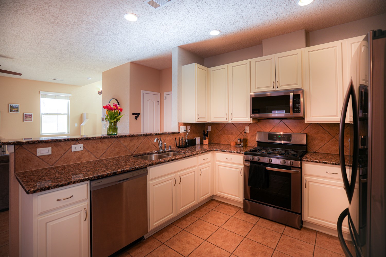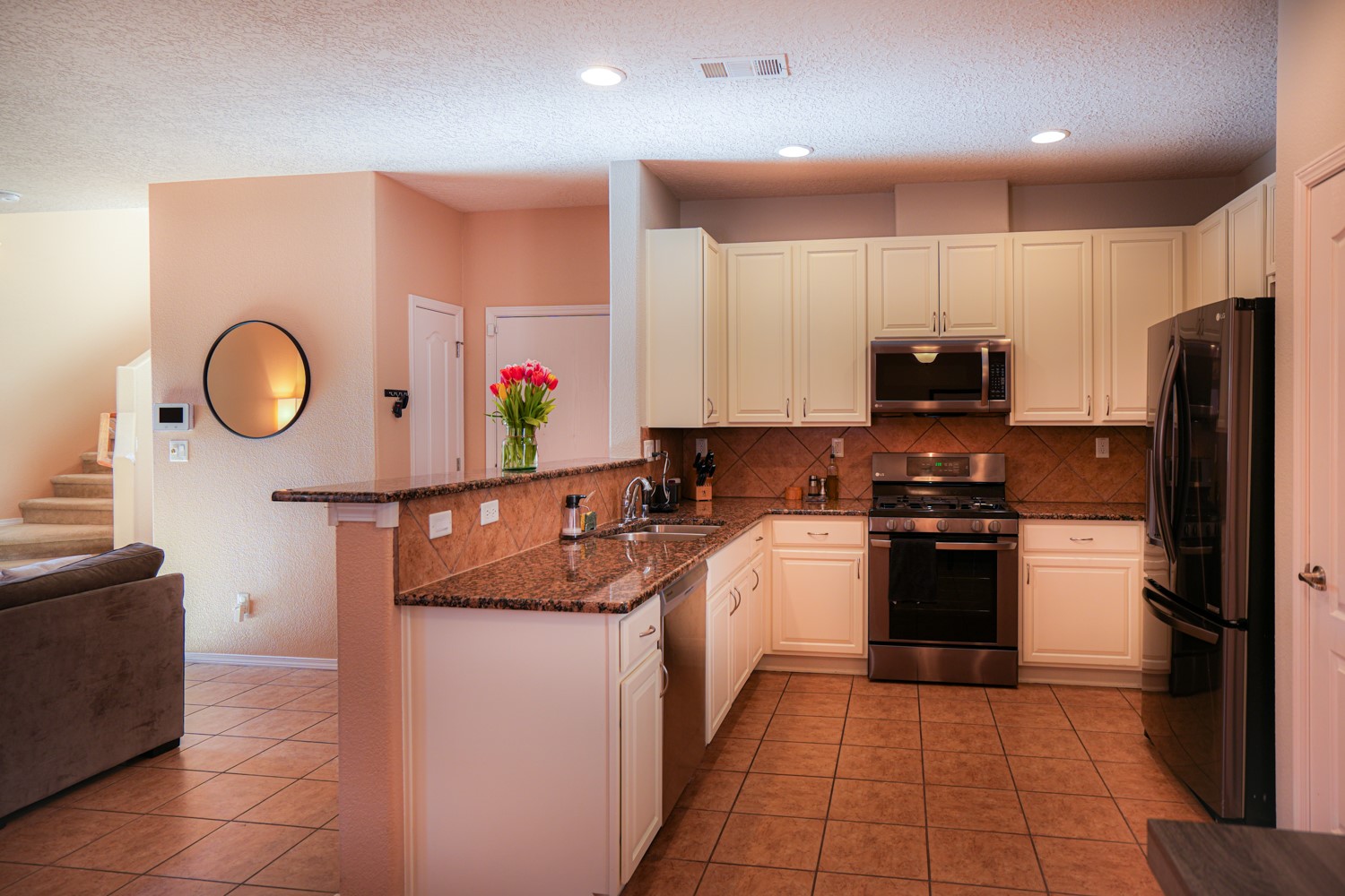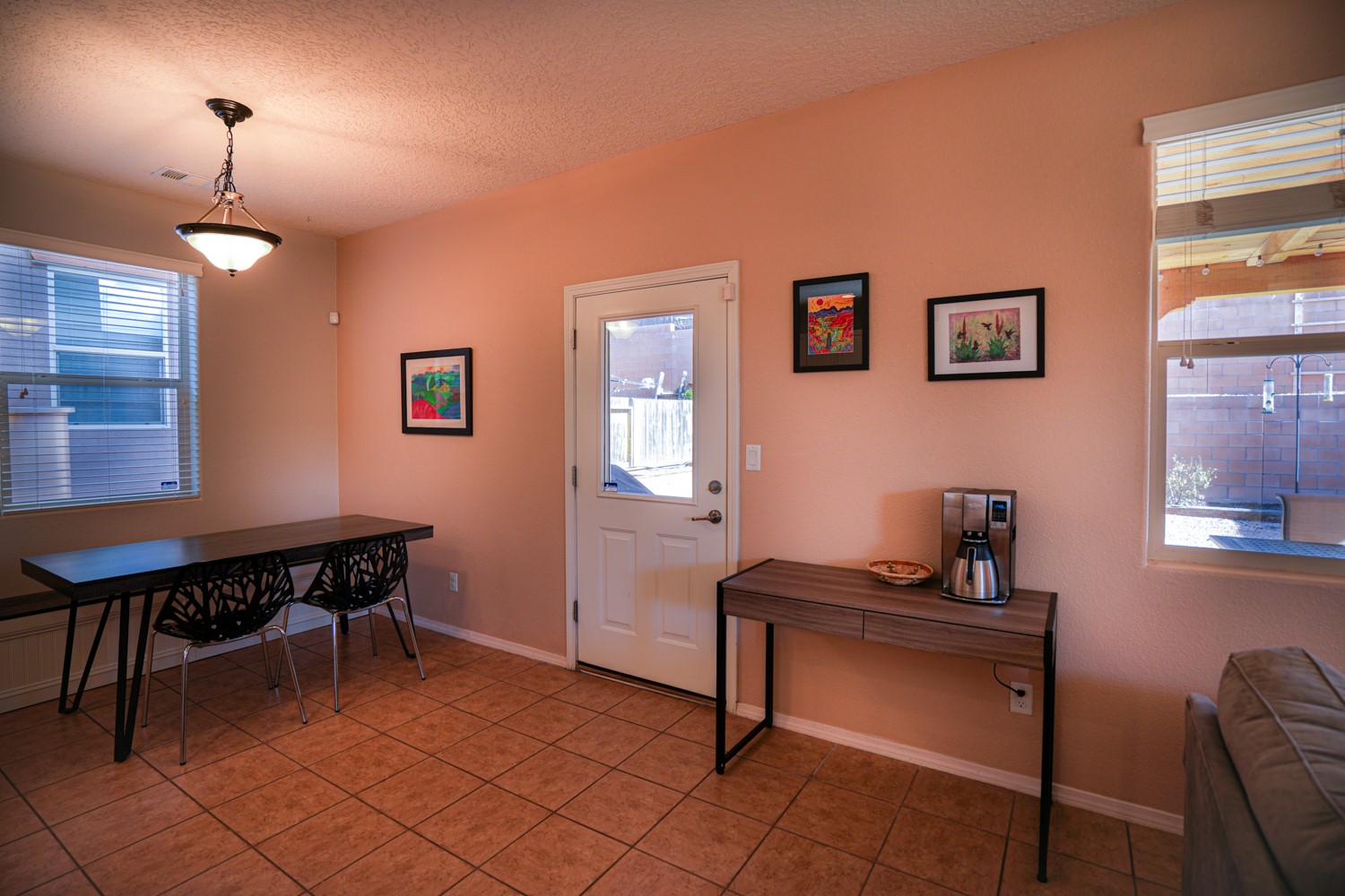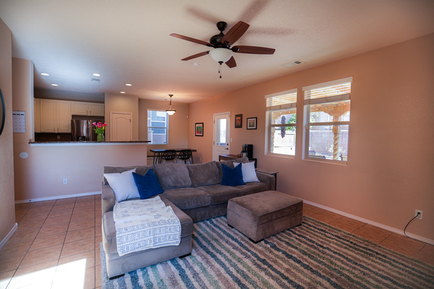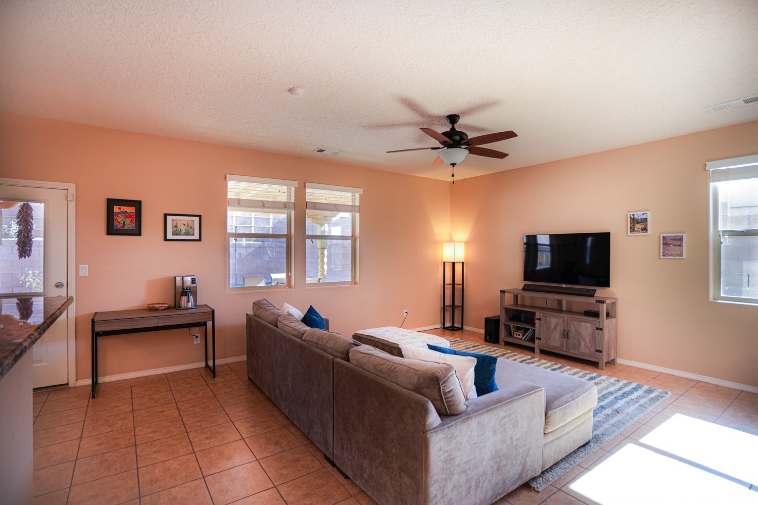 OPEN HOUSE ON MARCH 17, 18, & 19FRIDAY FROM 4-6PM, SATURDAY & SUNDAY FROM 1-4PM. SEE YOU THERE!This charming home is situated in the Villa Sonata neighborhood. The property has 4 bedrooms, 2.5 bathrooms, approximately 2181 square feet of living space, and a 2-car garage. The kitchen is equipped with granite countertops, tile backsplash, and stainless steel appliances. The backyard is secluded and features a custom-built portal, as well as a natural gas connection for your grill. The lower level has tile flooring, while the upper level is carpeted (with tile in the bathrooms and laundry room). The home also includes central air conditioning, and his and hers closets in the master bedroom. Residents can enjoy the nearby community park. This stunning home is perfect for anyone seeking a spacious and comfortable living environment.