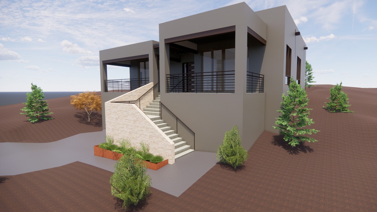 Currently under construction, Valverde's Tecolote floor plan is a stylish, multi-level blend of contemporary and modern Pueblo archectural style. This professionally designed 2,454 SF home is packed with features you'll love including 3 bedrooms, 2.5 baths, two covered decks with stunning mountain views and just off the 10th fairway of the Sunset Golf Course. Inside you'll find a chef's dream kitchen with stainless steel Viking appliances, quartz countertops and center island with seating area, solid wood cabinets, large pantry, all merging elegantly to dining and living areas with a large gas fireplace with stone surround (or material of your choice). The main bedroom suite abounds with modern features like curbless walk-in shower, large tub, dual sinks, and walk-in closet. Two additional bedrooms/office are connected with a shared bathroom. Interior steps seamlessly connect the lower-level garage with extra storage/wine cellar. There's still time to choose your colors and finishes while construction is in the early stages. A landscape package is included and can be expanded with options such as water features, fire pit, outdoor kitchen/BBQ. HOA fees include road and common area maintenance, 24-hour roaming security, and 24-hour EMTs on site. Membership to The Club at Las Campanas is optional. Amenities include indoor and outdoor swimming, tennis, fitness facility, equestrian, fine dining, and two Jack Nicklaus Signature Golf Courses. Pictures of home are renderings only.