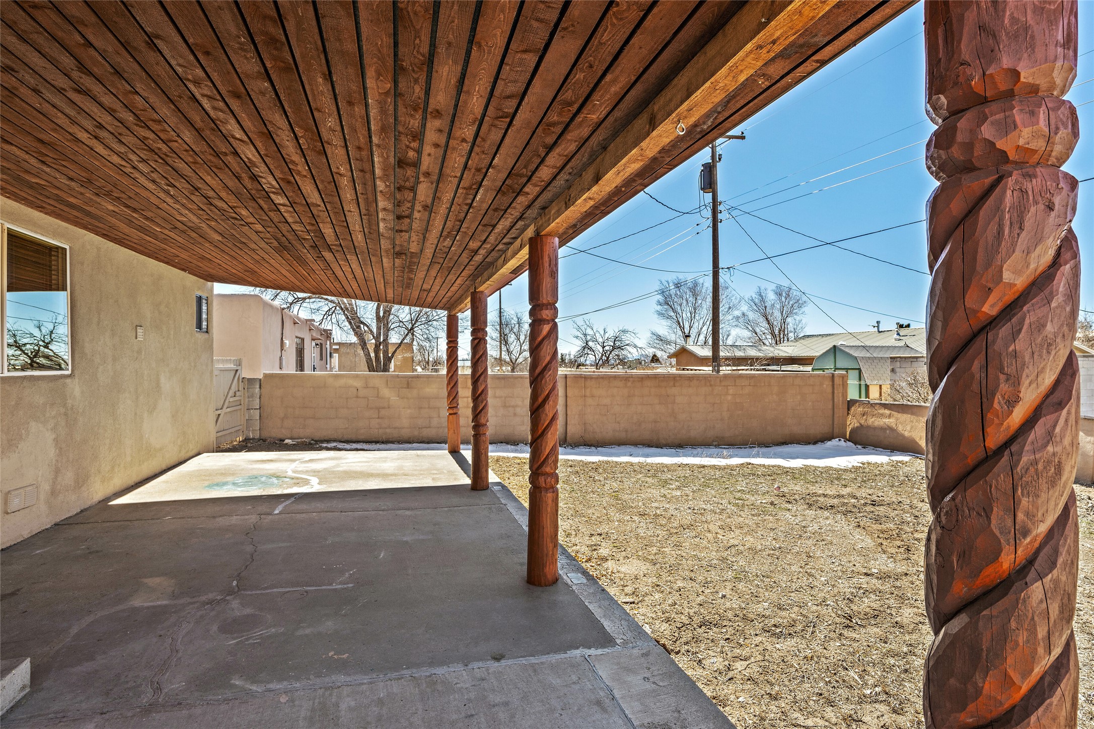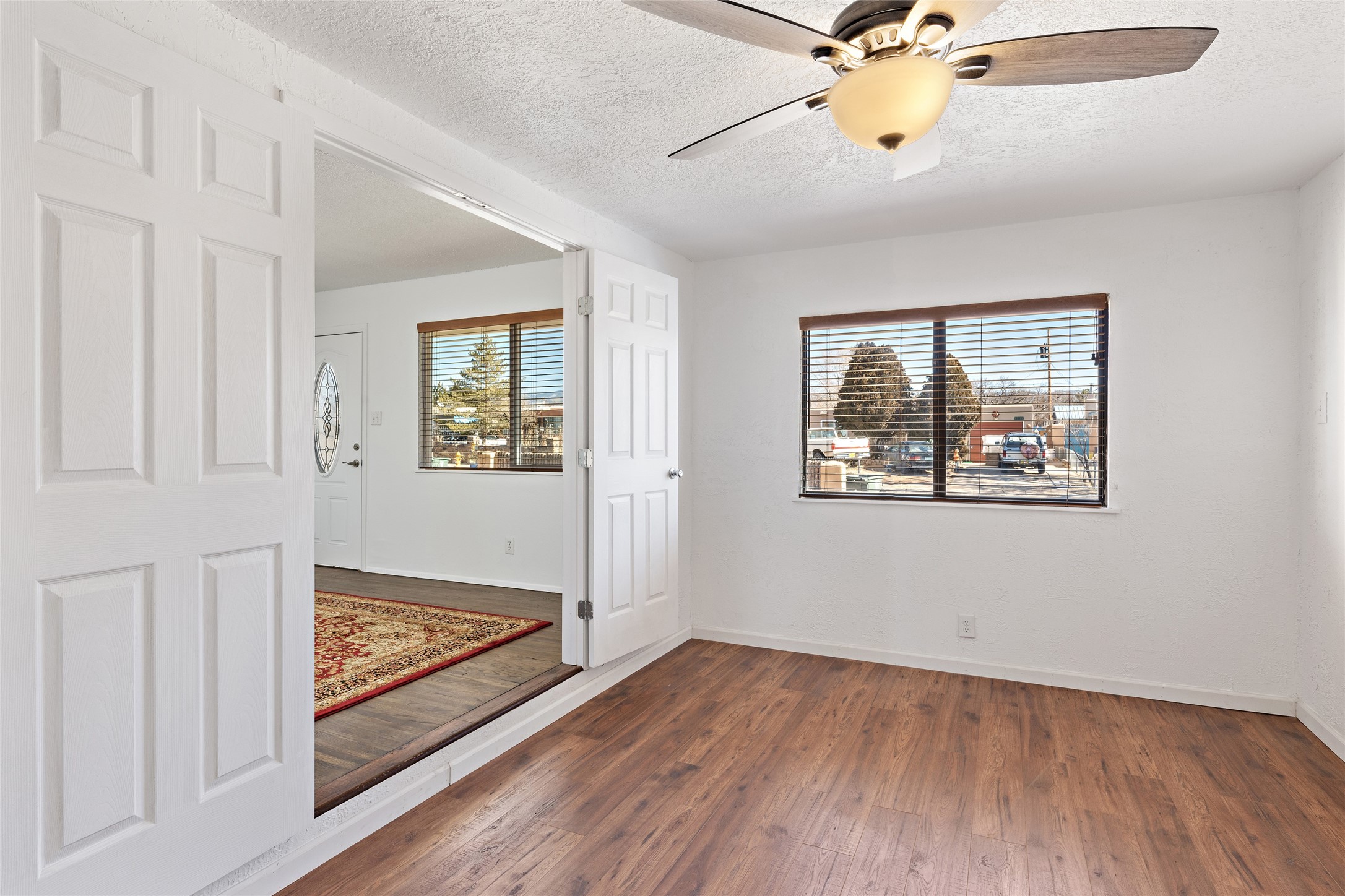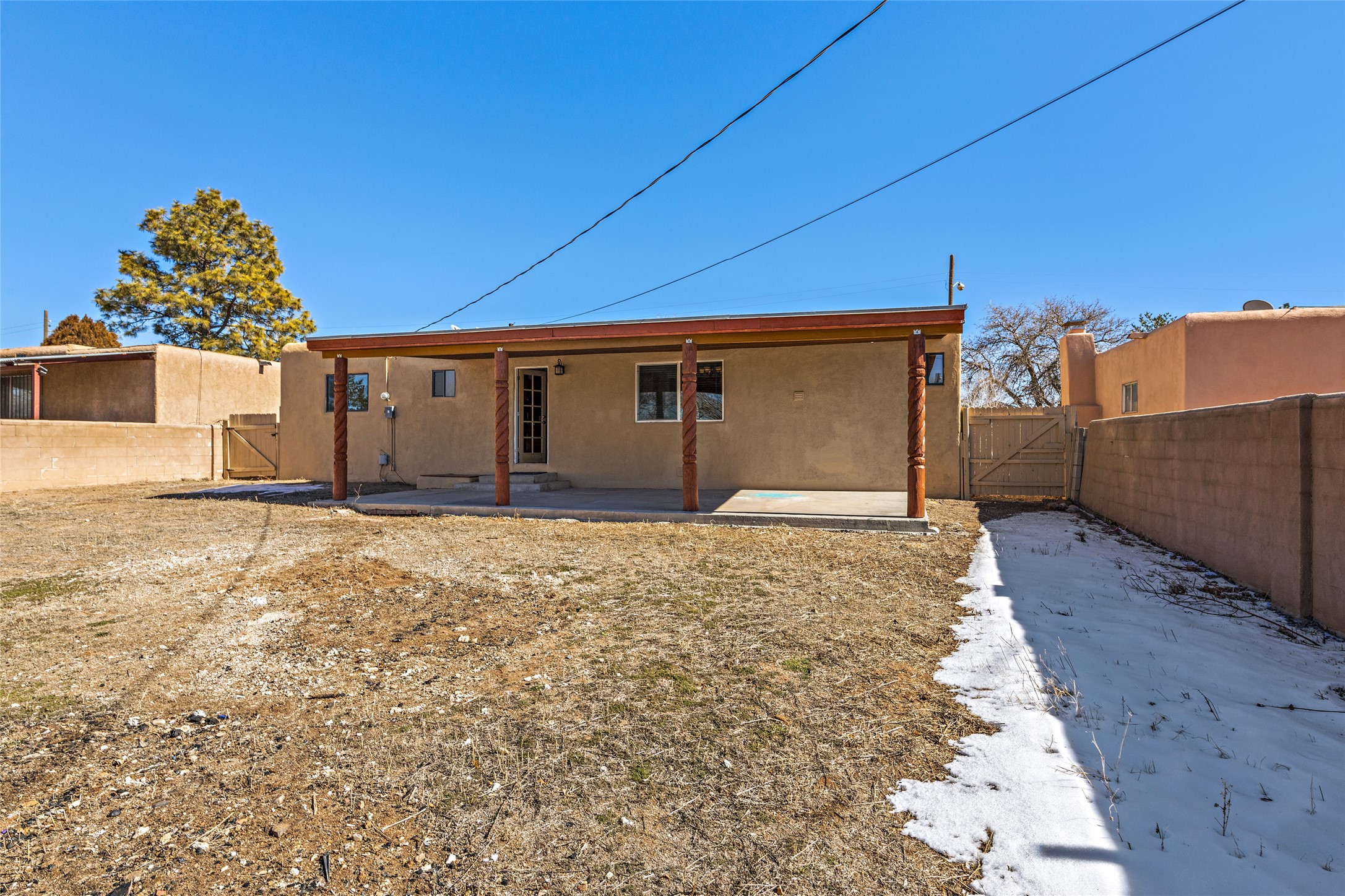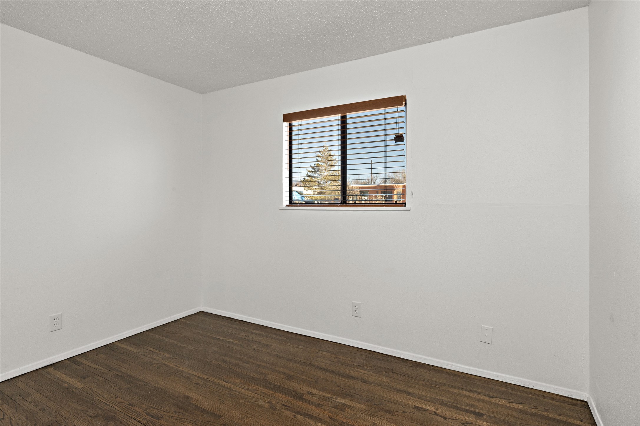 This lovely single family residence is on a quiet street in the middle of Santa Fe. Its convenient location in the Bellamah neighborhood allows for easy access to all parts on the City Different. Recently updated the home features gorgeous hardwood flooring and new appliances including a W/D, gas range, dishwasher and refrigerator. There are 3 bedrooms plus a flex room with access to the second bath which could be used as a fourth bedroom or office / den. The large backyard is a clean slate ready for your creatively but it does feature an oversized wood portal off of the kitchen with some sunset views. Clean and move-in ready make this affordable property yours!