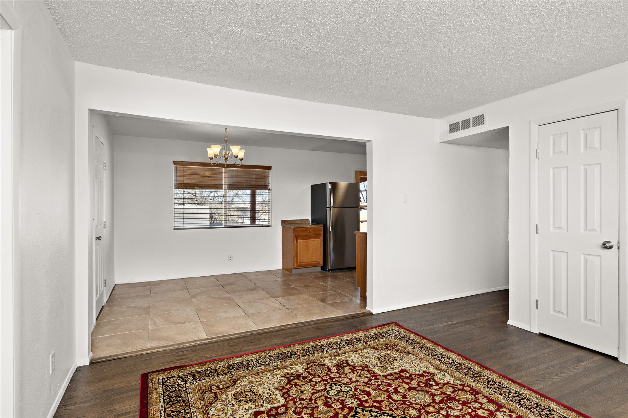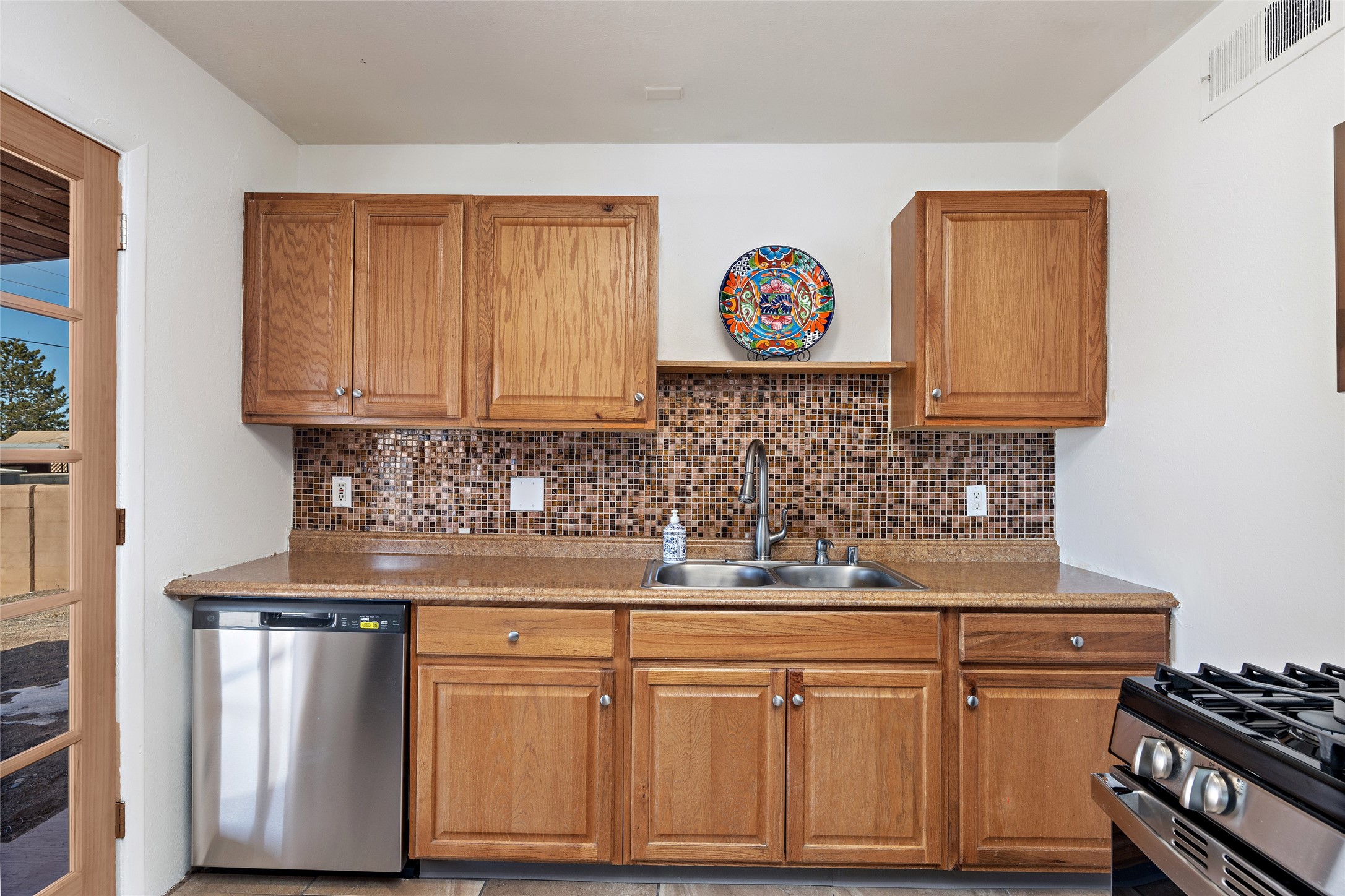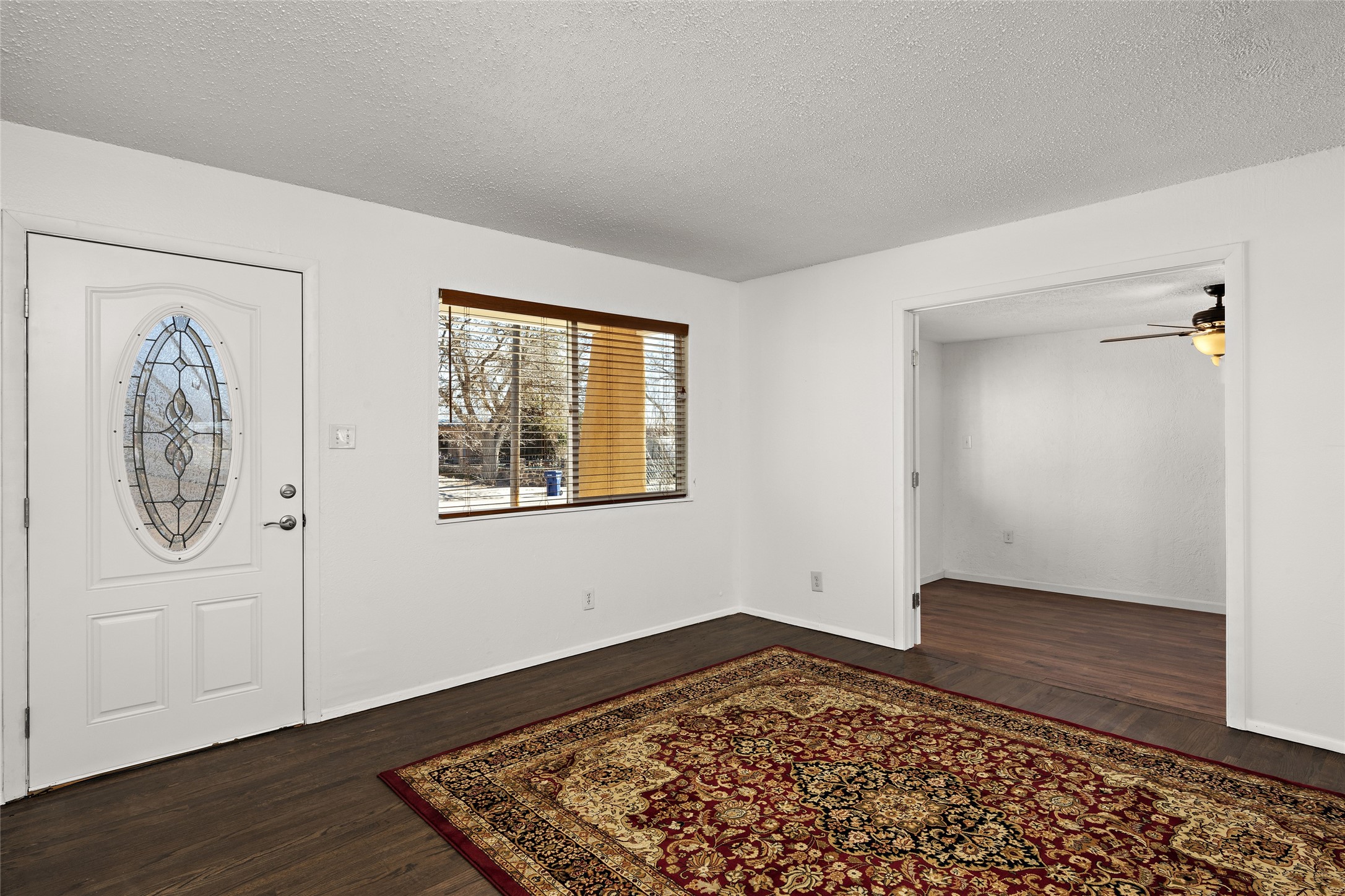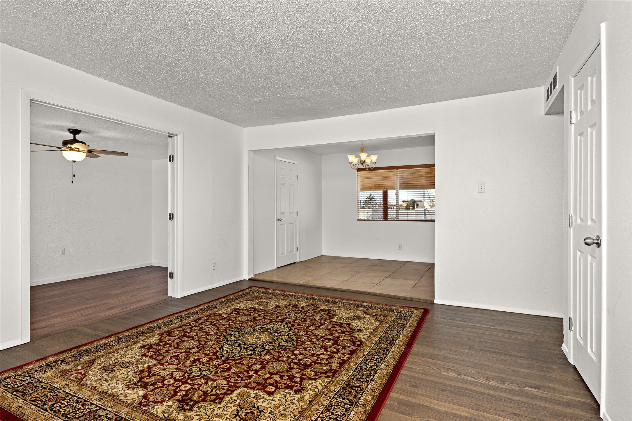 This lovely single family residence is on a quiet street in the middle of Santa Fe. Its convenient location in the Bellamah neighborhood allows for easy access to all parts on the City Different. Recently updated the home features gorgeous hardwood flooring and new appliances including a W/D, gas range, dishwasher and refrigerator. There are 3 bedrooms plus a flex room with access to the second bath which could be used as a fourth bedroom or office / den. The large backyard is a clean slate ready for your creatively but it does feature an oversized wood portal off of the kitchen with some sunset views. Clean and move-in ready make this affordable property yours!