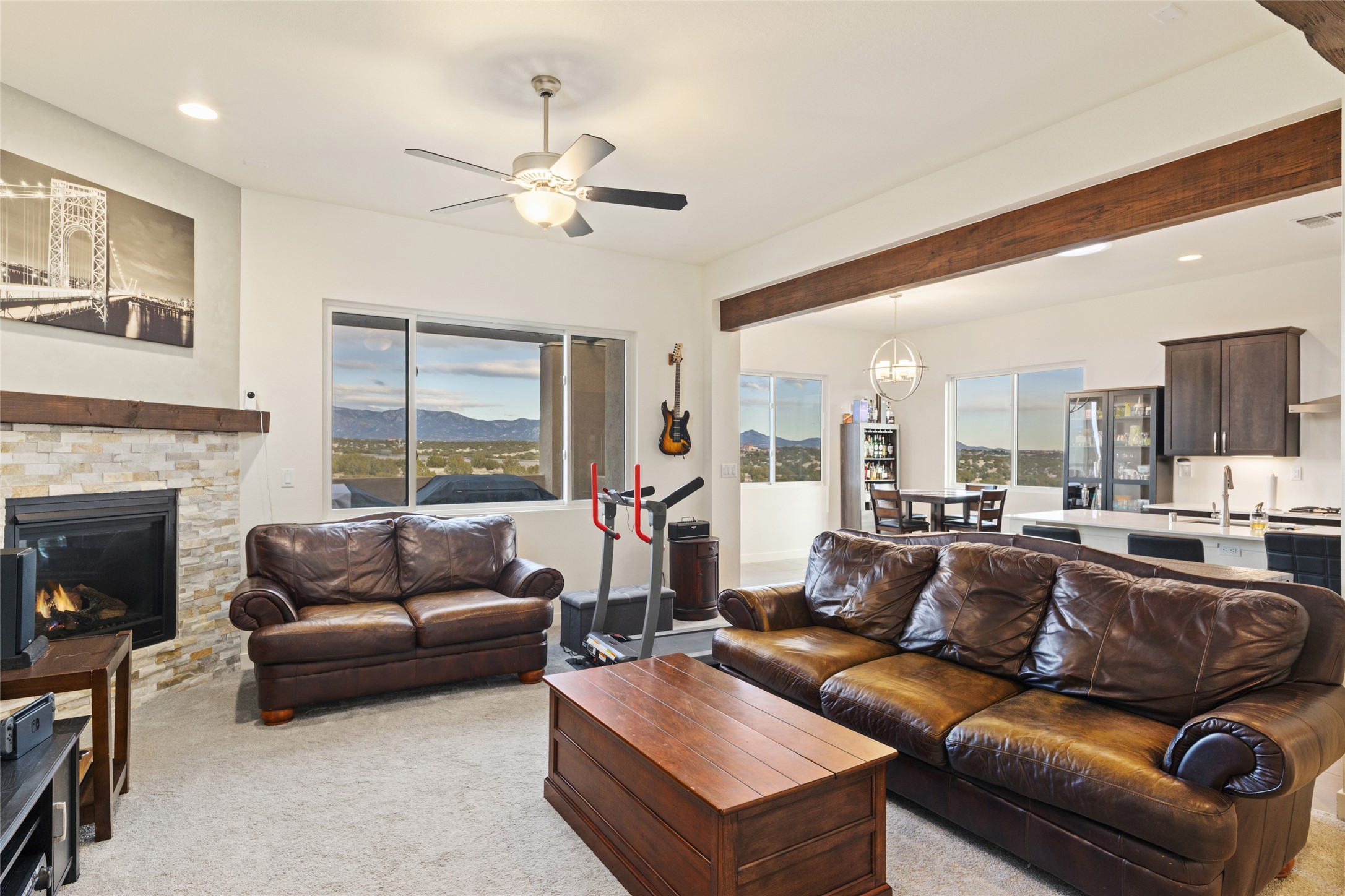 Like new Aspen floorplan 2 story Tessera home with fantastic views of the Sangre de Cristo Mountains. Many upgrades including finished and insulated 3 car garage, quartz countertops, stainless steel appliances, upgraded cabinets, forced air heating and cooling, gas fireplace, and vigas.