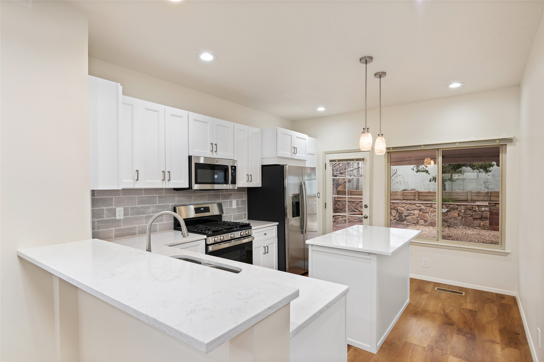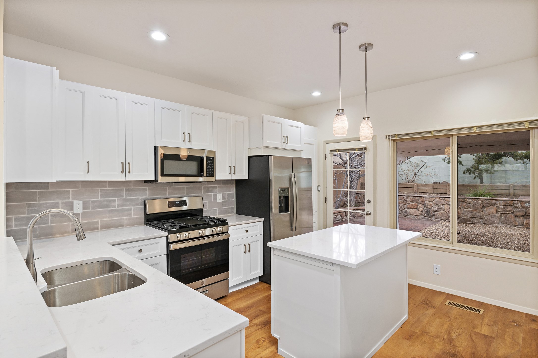 WOW! Amazing Santa Fe opportunity! A sturdy 80s house all newly redone, and ready to move into! New floors! New heating and air-conditioning! New high end kitchen, new stylish baths, new stainless appliances! New plumbing! You name it- it's probably new! Convenient, quiet, cul-de-sac neighborhood, off Alameda, near Downtown Santa Fe, shopping, restaurants, parks, hiking, schools, and everything! Spacious lot with old, large trees, and established landscaping! Have a picnic in your own backyard! And parties! 3 bedrooms ( one with a front facing exterior door! Maybe good for a low-key professional) 2 baths, and an additional bonus office/gym/studio/"whatever room"! This is a rare opportunity to find an up-to-date, move-in ready, easy care, great looking property in Santa Fe! Better hurry! $675,000.