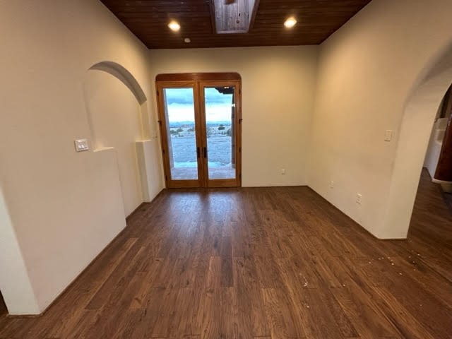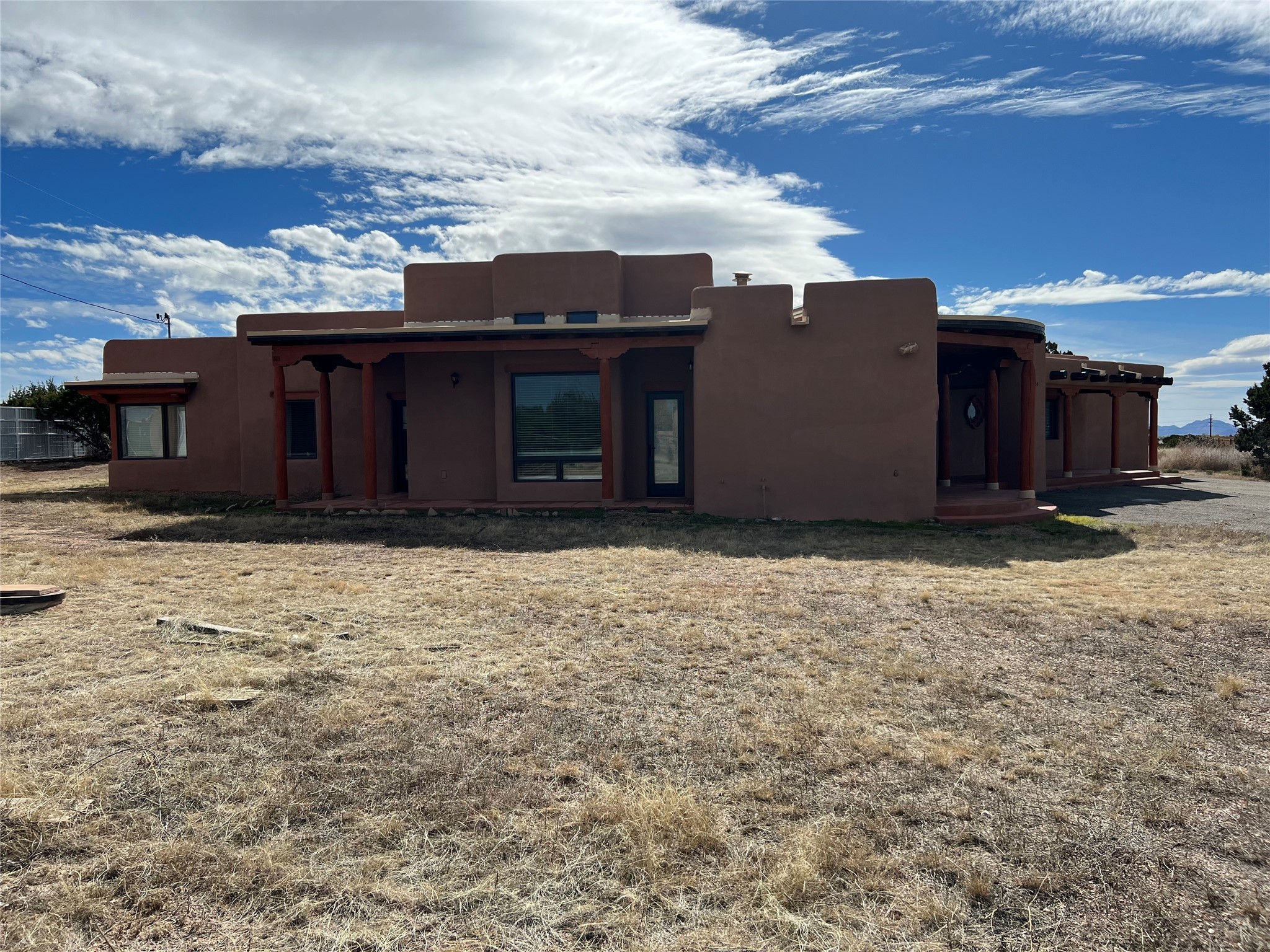 Country living close to Santa Fe. This custom home is located on a cul de sac lot, just minutes outside of Santa Fe. This home features 3 bedrooms, a large primary suite with a sitting/gym/or office area, located just off the primary bedroom, complete with a spa like bath and a large walk in closet! The SW features include, Vigas, Beams, Nichos, T&G ceilings and a 2 Kiva fireplaces. Recessed lighting and skylights make this home light and bright. There are new cabinets and countertops throughout. The converted garage is great for an extra large den/second living room. The detached garage is great for your cars, toys, boats etc.! or great as a separate studio.