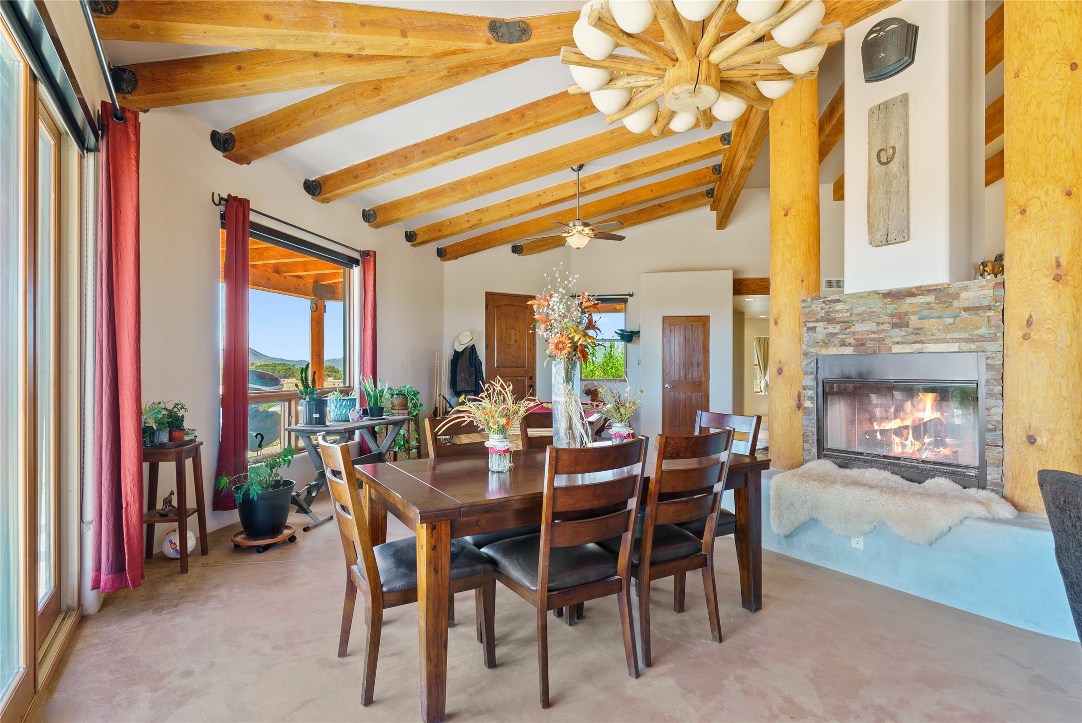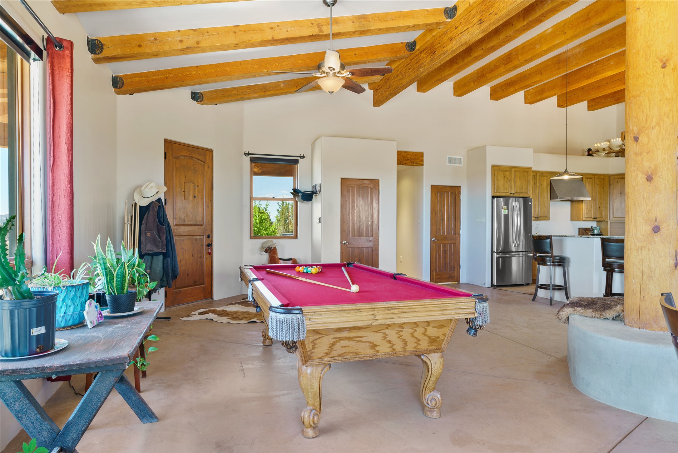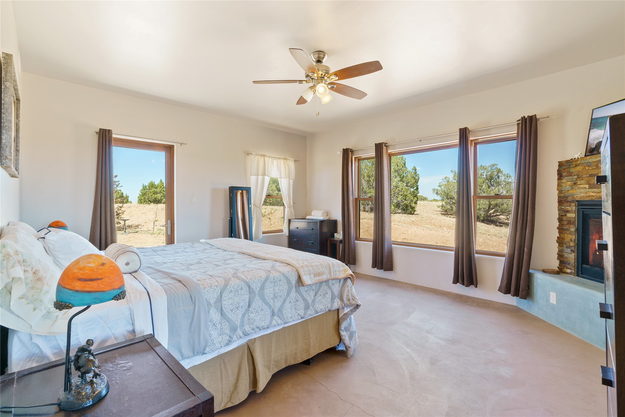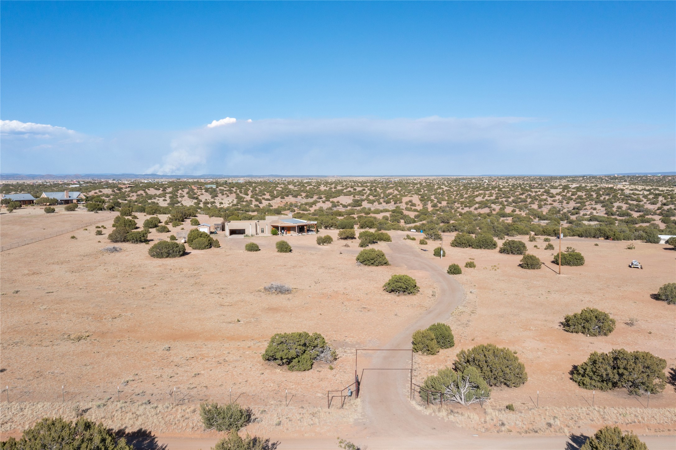 Buyer Sale Contingency with 72 hour FRR. Welcome home - This is the ONE! Close to the infamous star-bound Bonanza Creek Ranch. Stretch out on 10 acres of pristine country, situated on top of a mesa with expanding scenic views of the New Mexican landscape. From the valleys to the mountain tops, you can see it all. This custom-built home was completed in 2014 and offers everything you could imagine. The detail in this home starts with the overall design with many windows perfectly placed for the most impactful views. The home is a sprawling 2,160 square feet with an open floorplan that takes your breath away upon entering.With soaring ceilings to rich wood accents, this home is the epitome of the southwestern style. Stained concrete floors give you an elegant and timeless look as they carry you into each room. Custom blacksmith work by local artist accents the wood beams, cabinets and doors. The granite was hand-picked, showing intense colors and vibrant patterns. The owner's suite offers a standing shower, a jetted tub, dual vanity sinks along with a private commode. Each room is fitted with its own bathroom and exit to the exterior for comfort and ease. On the exterior of the home, you will enjoy a wrap around covered patio along with a private courtyard featuring a built-in grill - a great place for quiet, intimate evenings or showing off while entertaining large parties. This home has been set up with comfort in mind, offering 5 different heating options, ranging from in-floor radiant heat to the gas fireplace in the bedroom. Refrigerated air has been fitted into the home as well so you can enjoy the perfect climate for your needs. The oversized two car garage is set up with ample storage with the option of solar, along with a workshop area with 220v power. This exclusive property features pro-panel stables for your critters, a large barn/workshop, a custom built green house and a Morgan Shed. Structural Insulated Panel (SIP) Construction offering a R48 value on the roof and an R36 value in the walls. This type of construction is designed to save energy to save you money on heating and cooling costs. Minutes from center Santa Fe, Madrid and Albuquerque. You won't want to miss this one!