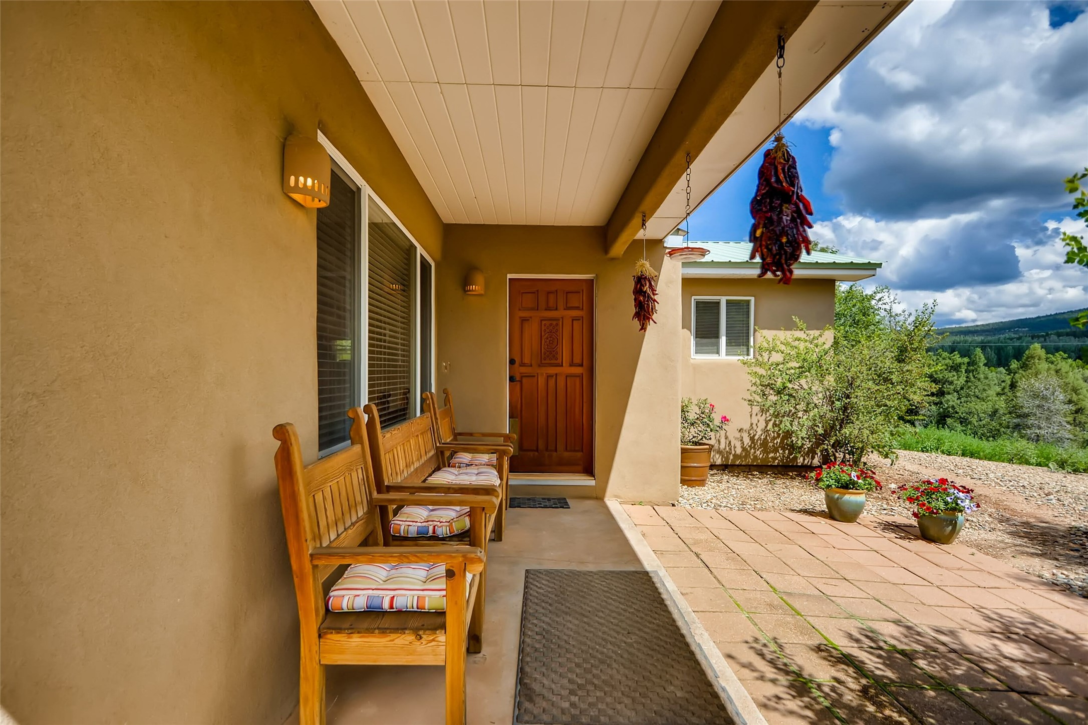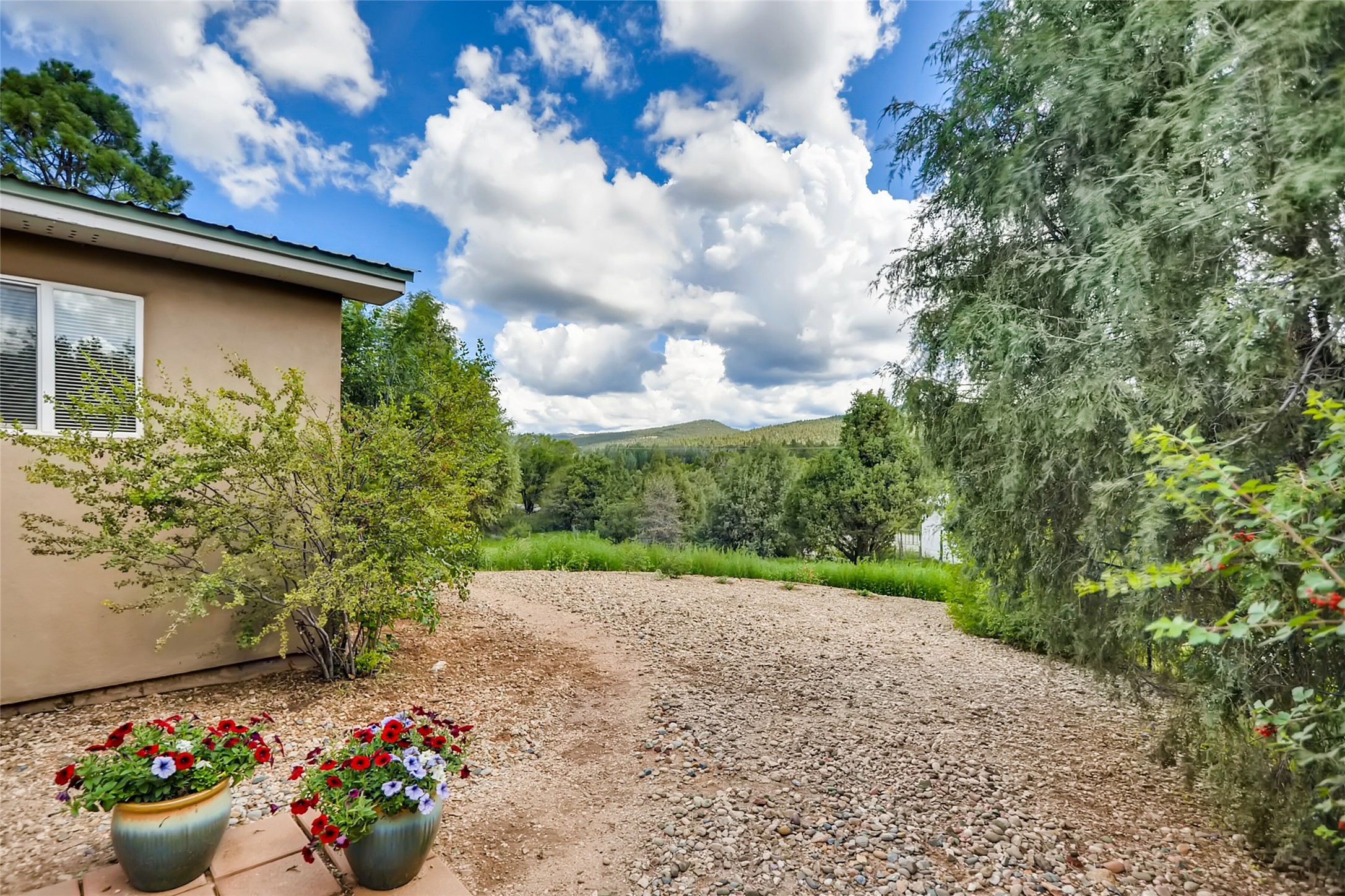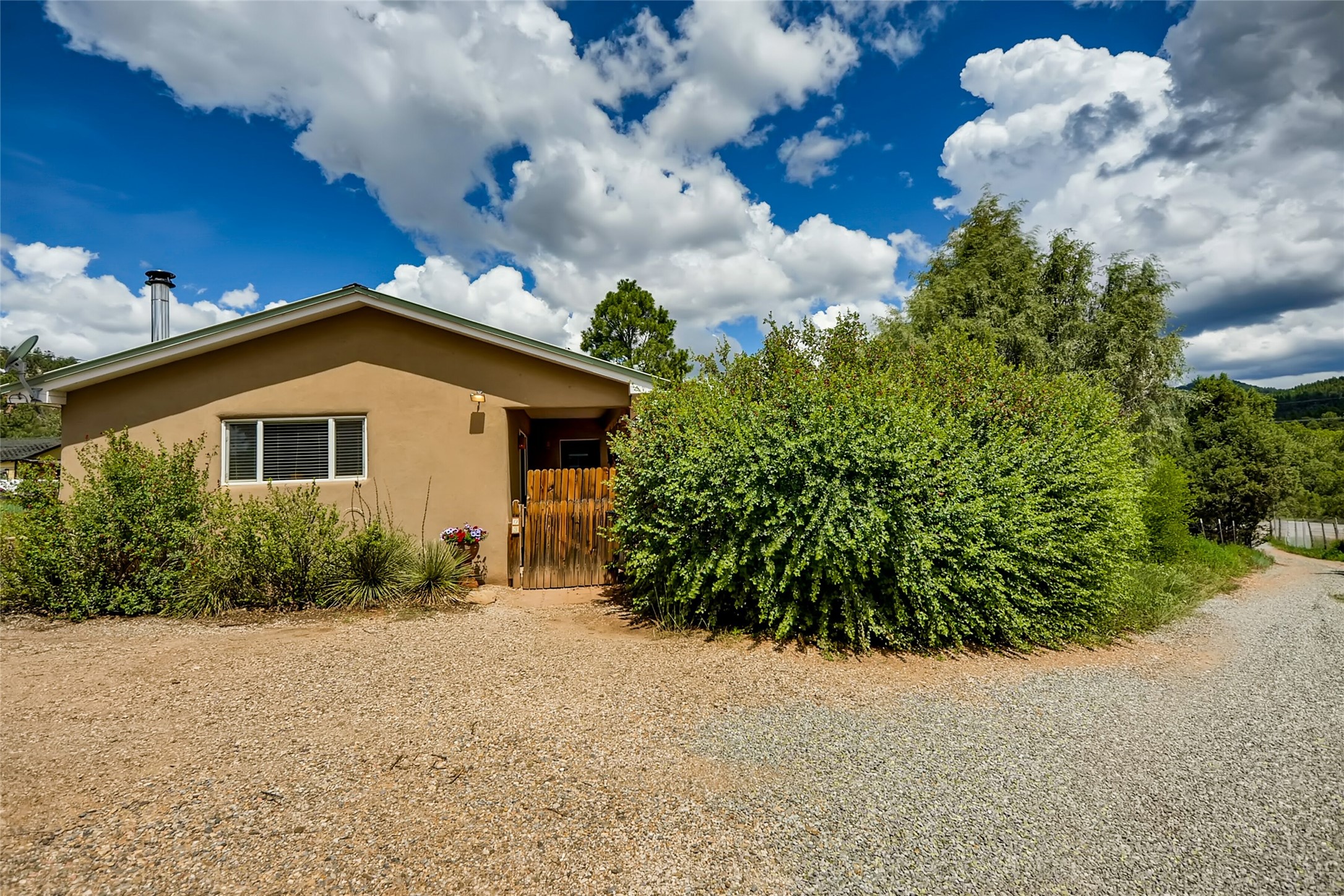 Beautiful, private 3 bedroom, 2 full bath home on 1.07 acre lot. Updated kitchen with newer cabinets adjoins dining room. Stunning mountain views, grass and established trees. The primary bedroom has sliding glass doors to a private patio. The large living room has a wood burning stove and plenty of room for the whole family. This home is one of the closest properties to Santa Fe, approximately a 20 minute drive.