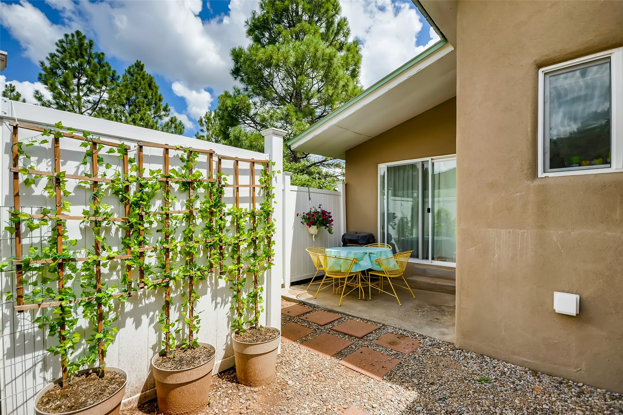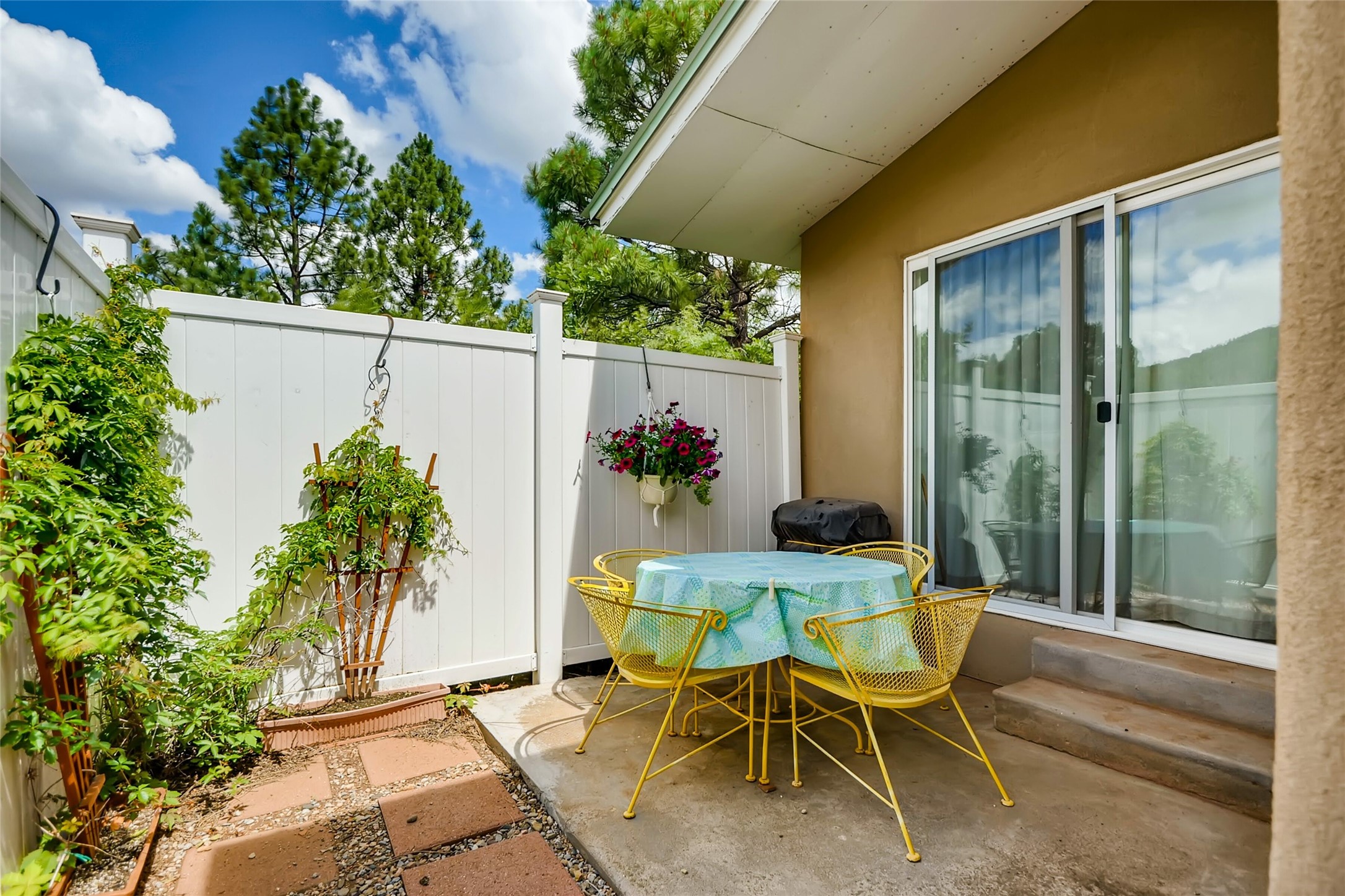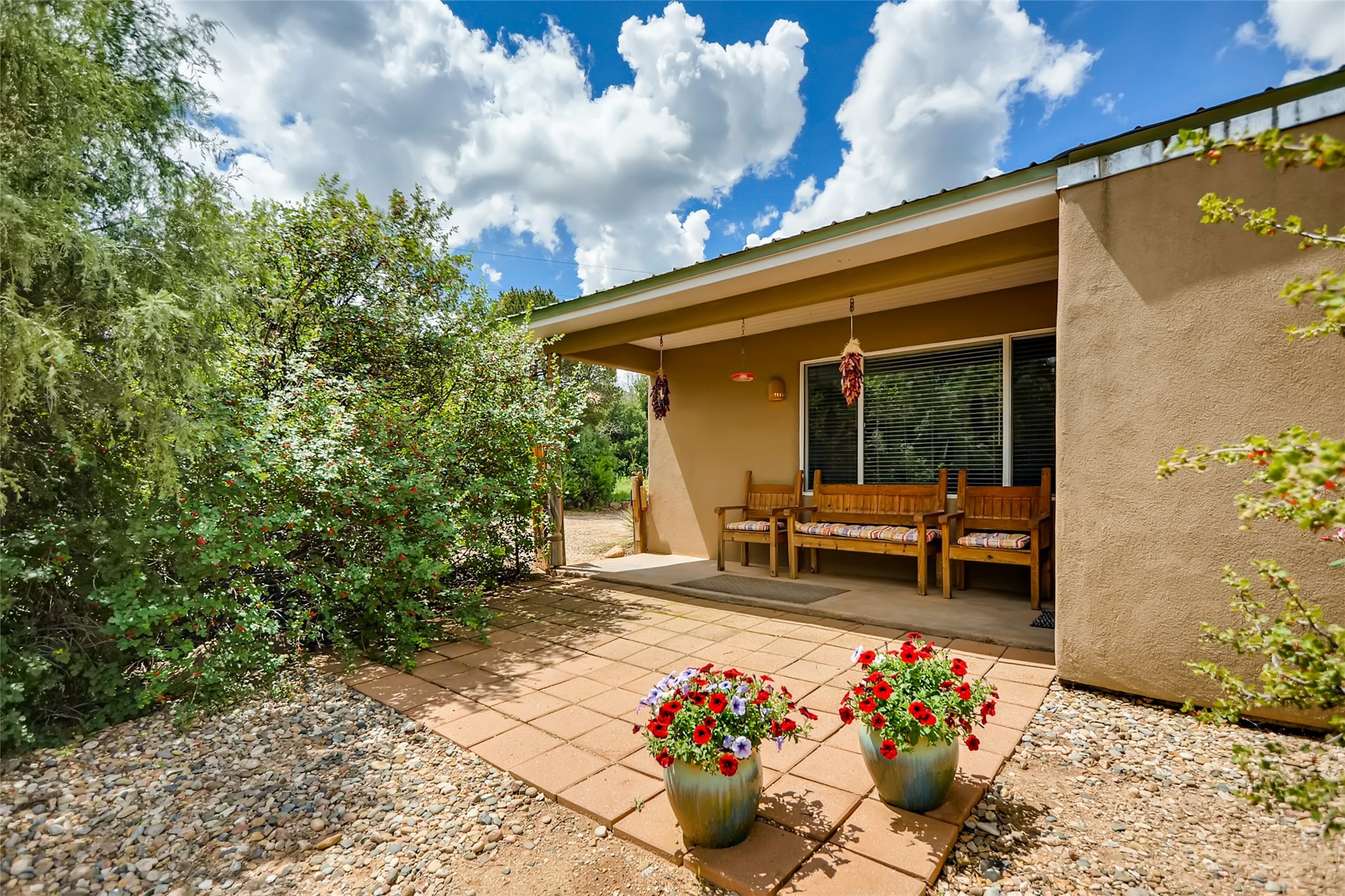 Beautiful, private 3 bedroom, 2 full bath home on 1.07 acre lot. Updated kitchen with newer cabinets adjoins dining room. Stunning mountain views, grass and established trees. The primary bedroom has sliding glass doors to a private patio. The large living room has a wood burning stove and plenty of room for the whole family. This home is one of the closest properties to Santa Fe, approximately a 20 minute drive.