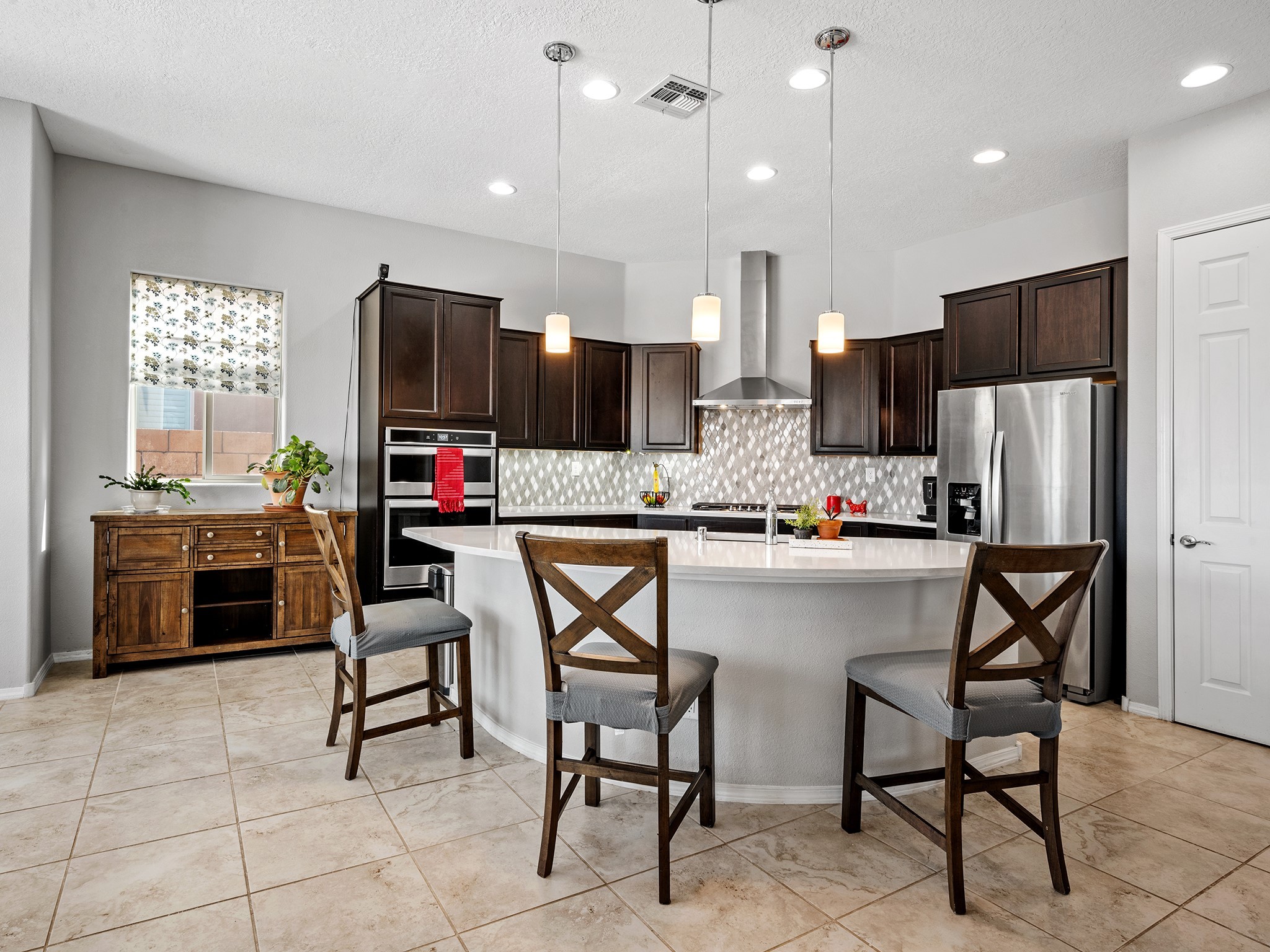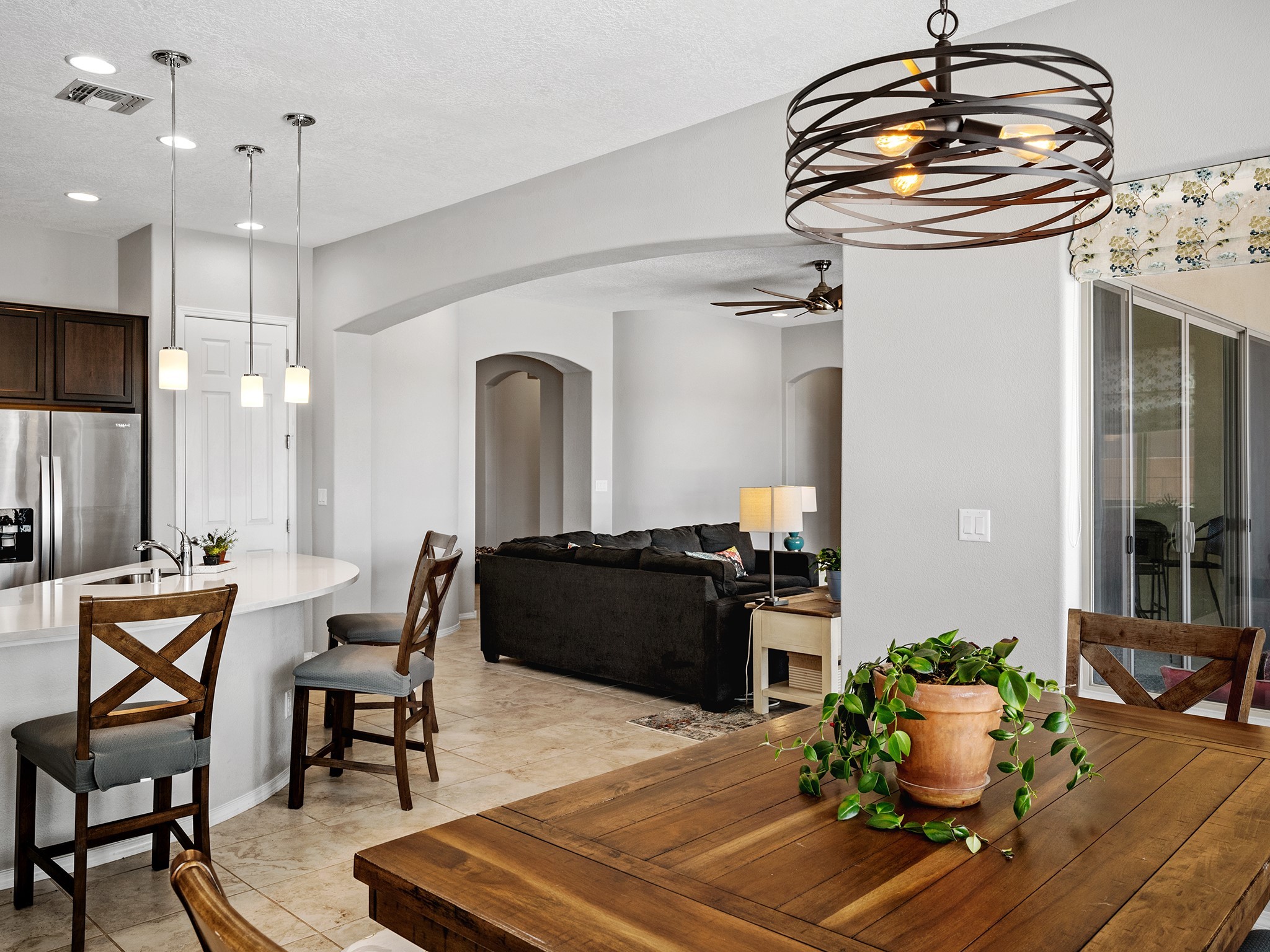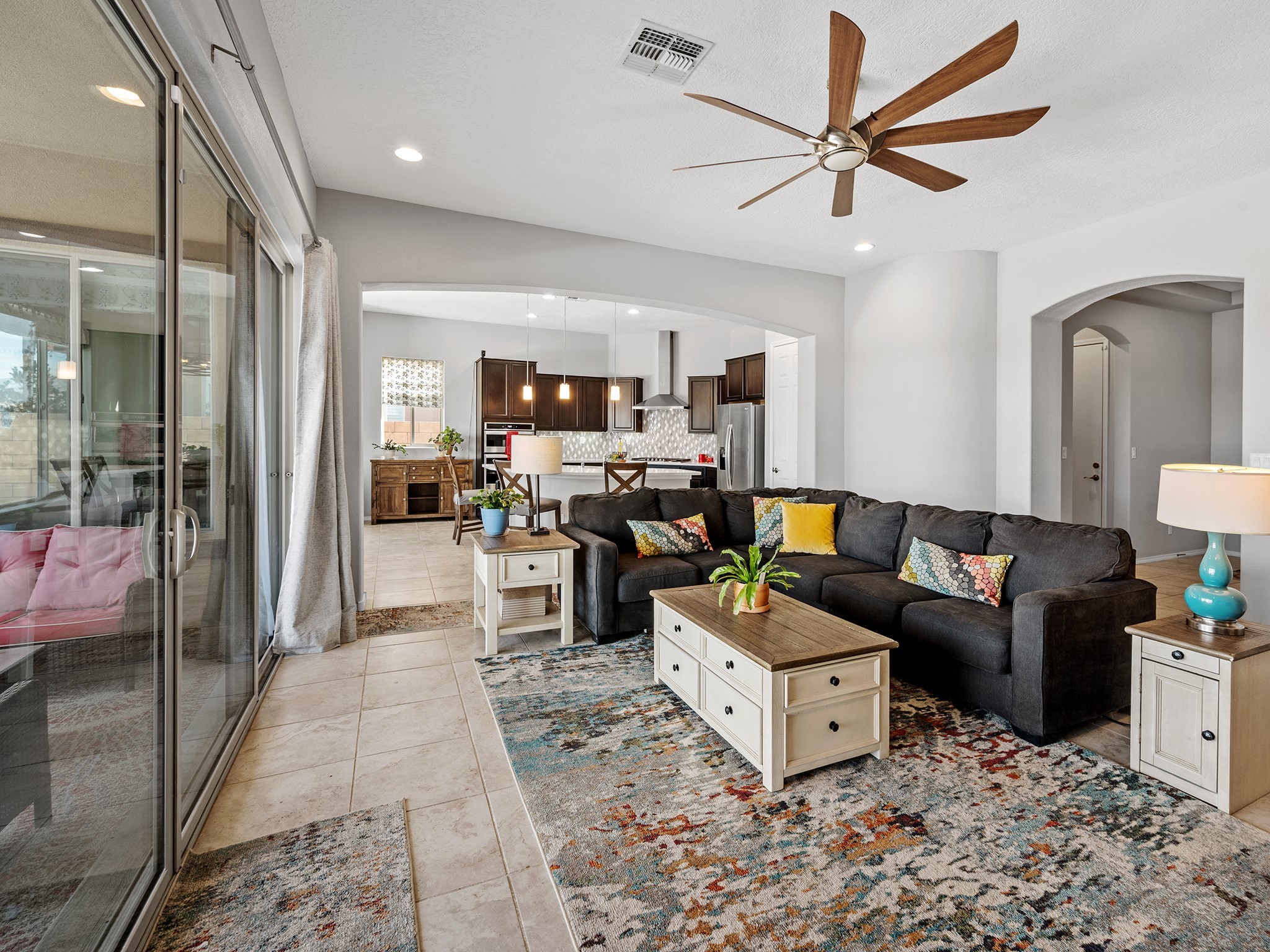 Mountain Views in a neighborhood? YES!!!! Sunrise and Sunsets and green open space visible from every living area and the masterbedroom. Do you want to walk the dog, stroll with the cat (maybe not) or play in a park? All are a stone throw. Live like you always wanted to in a single level light filled home with a great open kitchen. The cook of the house need not be isolated in this sociable floor plan. Here's the list: convenient to shopping, commuting, and playing; high ceilings, open concept, huge laundry room, garage with good storage space and an epoxied floor (love that), and separation of bedrooms all on a premium lot. Oh, and a hospital, community college, and recreation center are near by. Plus Costco is only a 40 minute drive (be still my heart). See this excellent home while it is available.