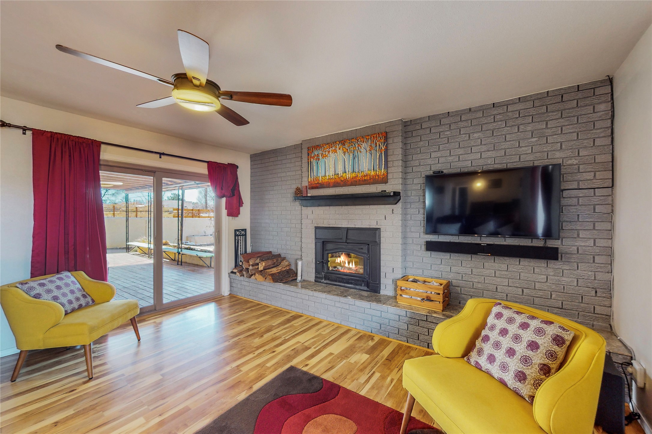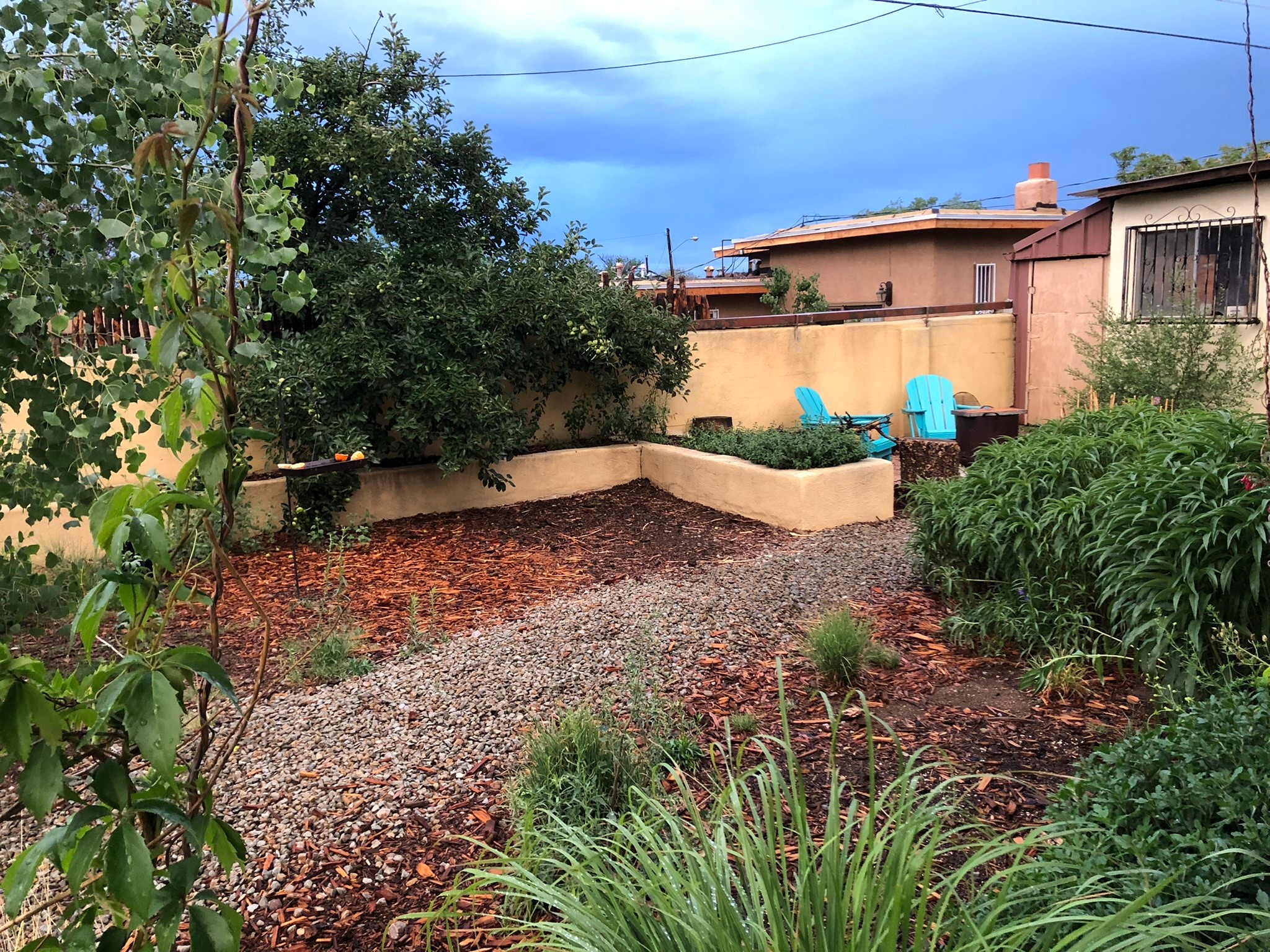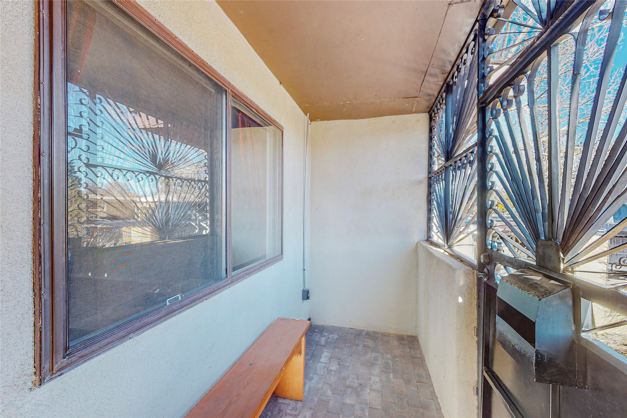 Come see this lovely well-maintained home in the Barrio La Canada neighborhood just minutes from the Plaza before it's gone! Solar panels and a pitched metal roof! Two great things you love to hear about homes in New Mexico. Light, bright, and spacious updated home! Upon stepping inside the front door you're greeted by the first of two living areas that boasts a wonderful fireplace against a brick wall. In one direction you can head towards the hallway to find one of the guest bedrooms, guest bathroom, and primary bedroom with ensuite and french doors opening to an outdoor patio. Heading the other direction you'll find yourself entering an open concept kitchen with lots of cabinet and pantry space, which opens up to the dining area, and second living room with the perfect wood burning fireplace also against a brick wall to set the mood. A third bedroom/office off the dining area as well as a mud room/bike room/workshop. This area could also be perfect to close off into an at-home office or possibly a rental as it has it's own separate entrance. Out back you have an outbuilding for gardening supplies, workshop, or storage. A covered patio, plenty of space to entertain, relax, garden. There is a second driveway to park an RV if you'd like. This home is in a convenient location, minutes to the Plaza and Railyard. The W Alameda river walk is very close by to hop on with your bike or walking. Have a look at the clean inspection report, the ultra low electric bill due to the solar panels, and schedule your appointment today!