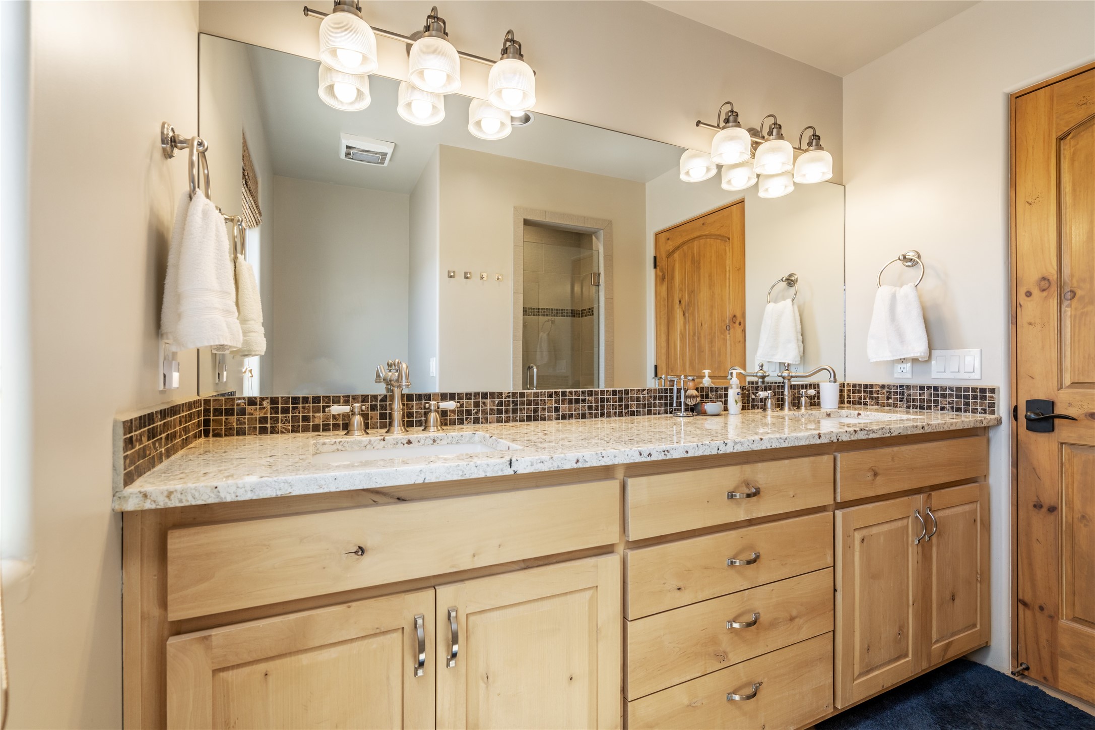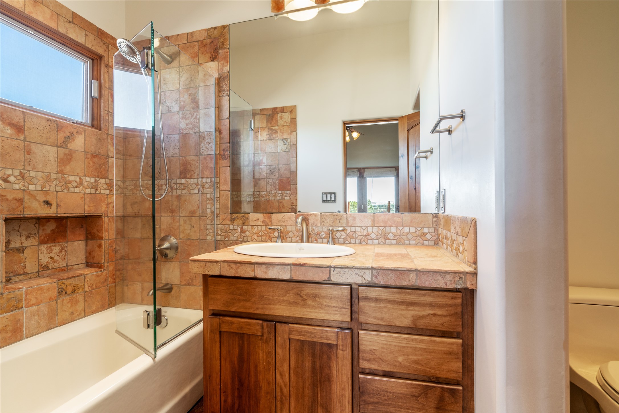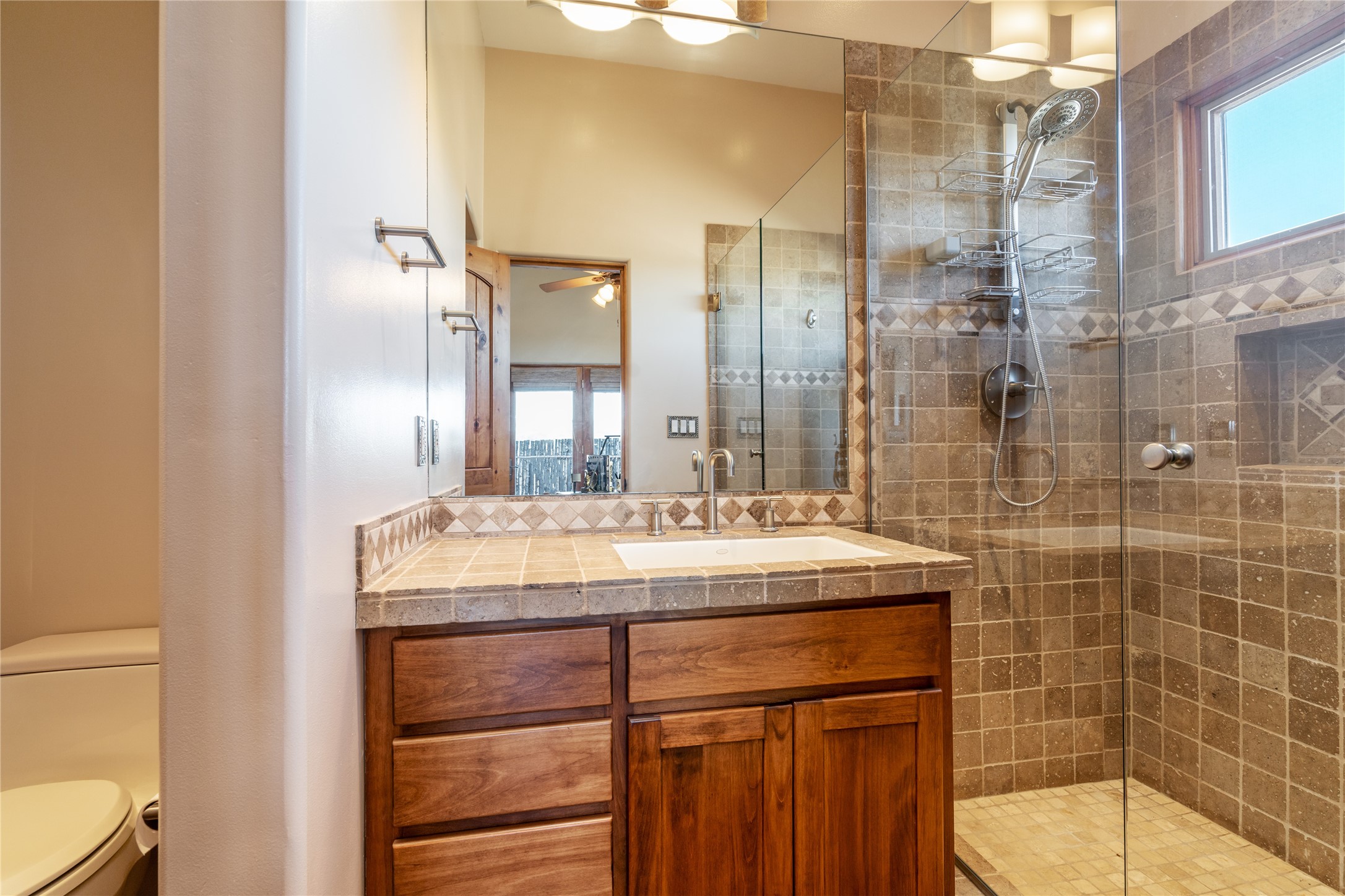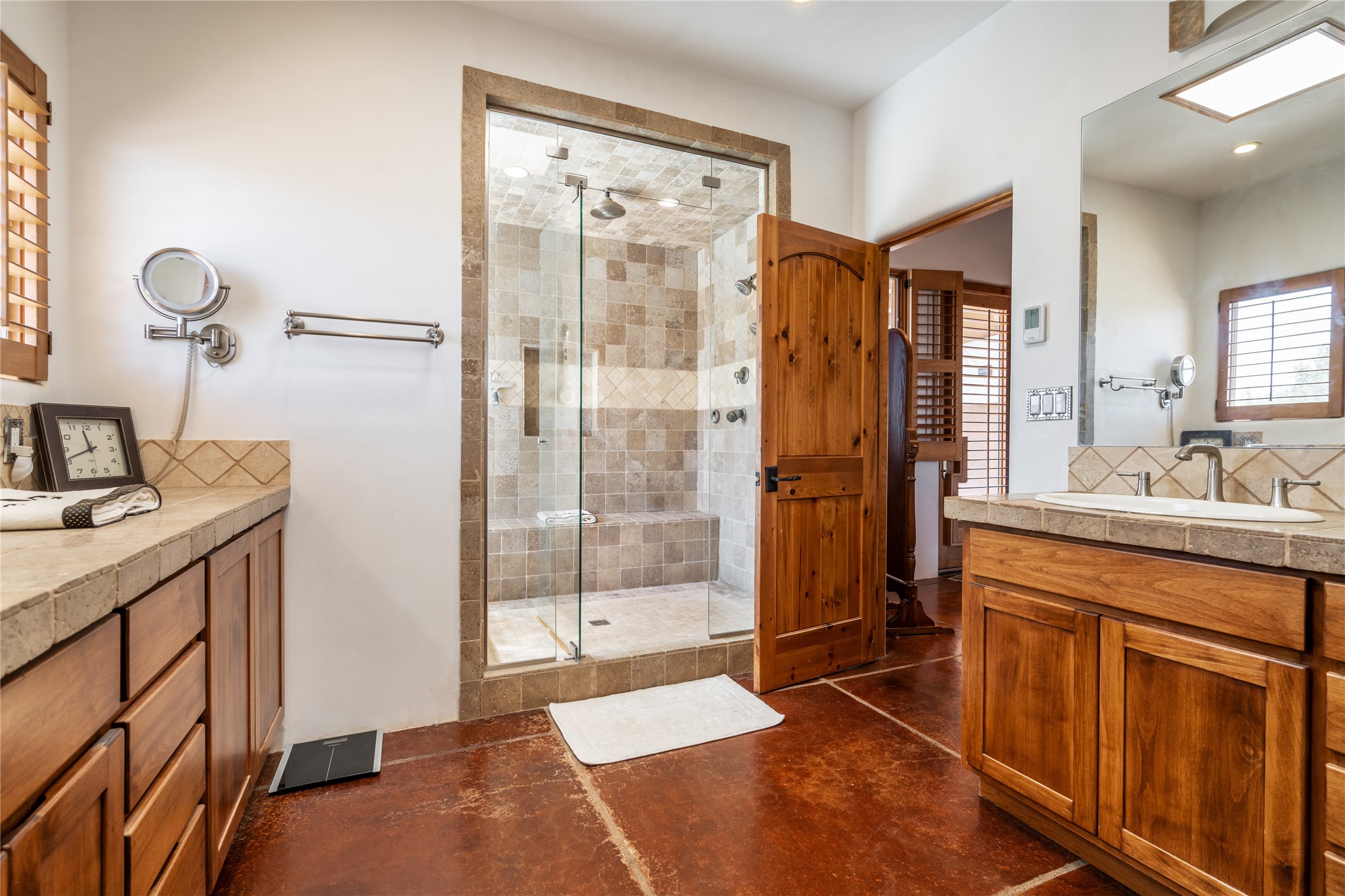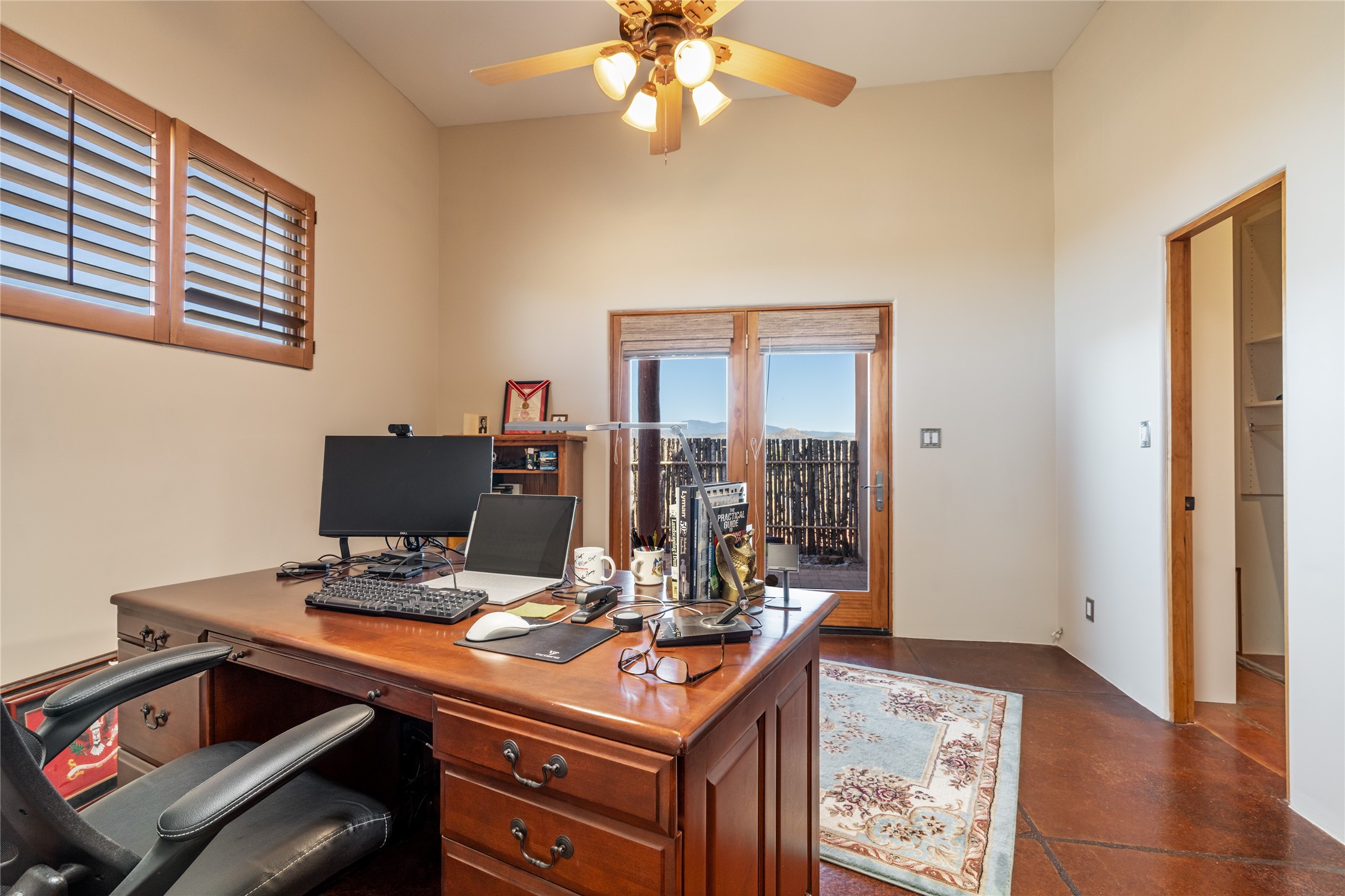 15 Silver Saddle is a 3 BRM/ 3.5 BATH main home with diamond plaster walls, polished concrete floors and wood beam high- ceilings throughout. The master suite is located on the western side of the house apart from the two additional en-suite guest bedrooms-- all with outdoor access. The master suite is well-appointed with a walk-in closet, a master bath with his and her sinks and water closets- along with a walk-in steam shower and soaking tub. Outdoor access from the master suite leads to a private outdoor area with a jacuzzi. However, it is the open concept cook's kitchen and adjacent entertaining room with a built-in wood bar that are the home's showstoppers. The almost 17-acre property also boasts a newly built (2017) two-bedroom 1,400 square foot guest house with high-end finishes and appliances throughout. Approx. 15 minutes to Santa Fe and conveniently located 5 minutes from the shopping area at Eldorado Santa Fe. For horse lovers the property has a Cleary barn, 3 horse stalls, an insulated tack room, an arena, a turnout and pasture. As an added bonus, there is direct access to Galisteo Basin Trails.