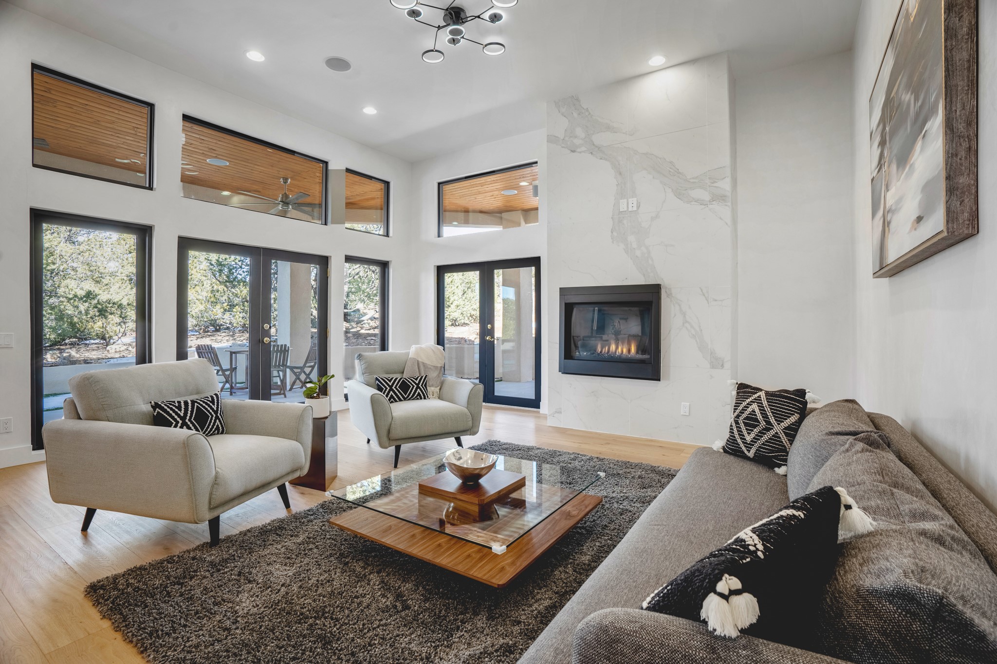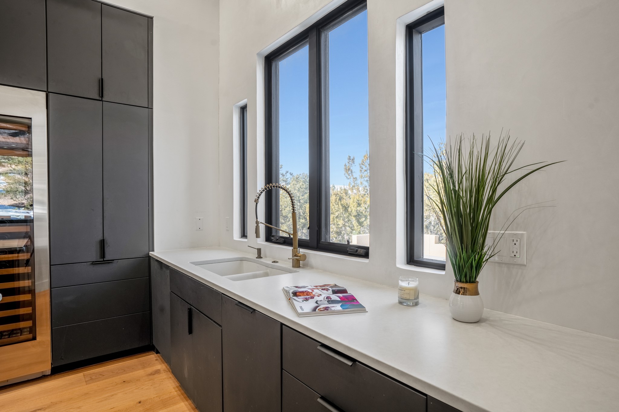 Exquisite contemporary a stone's throw from The Plaza. Luxury amenities and thoughtful details abound in this modern masterpiece. Owner's suite features a two-person steam shower, soaking tub, dual finished closets, and private portal. The grand, open-concept living space features a wet bar and chef's kitchen appointed with Sub-Zero and Wolf appliances, as well as a separate, well-appointed butler's pantry. The wrap around patio with custom outdoor kitchen, gas fire pit, and whole-house speaker system complete an entertainer's dream package. Dramatic 12ft ceilings throughout. Private and serene. This is the one you've been waiting for.