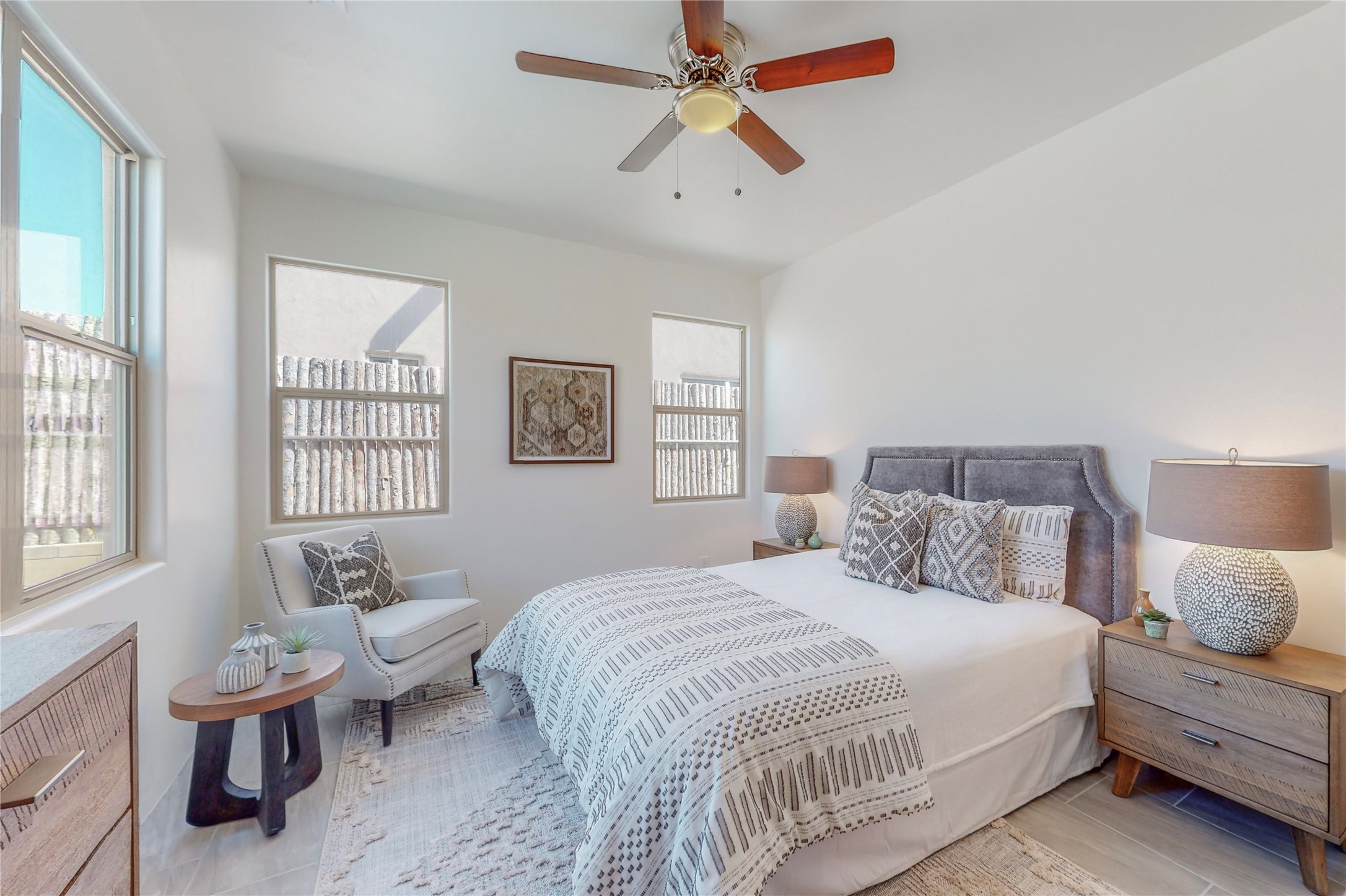 HOME JUST COMPLETED: This San Miguel Plan is a 2268 sq. ft. 4 bedroom 2 1/2 bath home in the La Pradera Subdivision. The exterior is a pitched roof Spanish design with clay tile roofs and covered portals with heavy wood beams and brick pavers. The driveway is a colored stamped concrete design. Enter this beautiful home through an 8 ft. high door and light wood-like porcelain floor tiles, with a powder room to the right and a hallway to the left with a nicho-accented wall leading to the fourth guest bedroom which could also serve as a study with its closets and kiva fireplace. The Owner's suite has a large shower with euro-style shower fixtures and an overhead rain shower head. There is also a very large walk-in master closet. The living room has white-stained beams and T & G trim and a fireplace. The open kitchen has a separate dining area and unique blue/gray color cabinets. The utility room is accessed directly from the kitchen and has ample cabinets and a sink. The insulated 2 car garage has two separate storage areas.