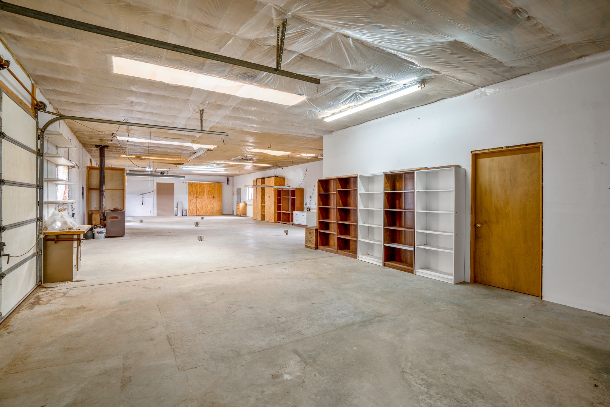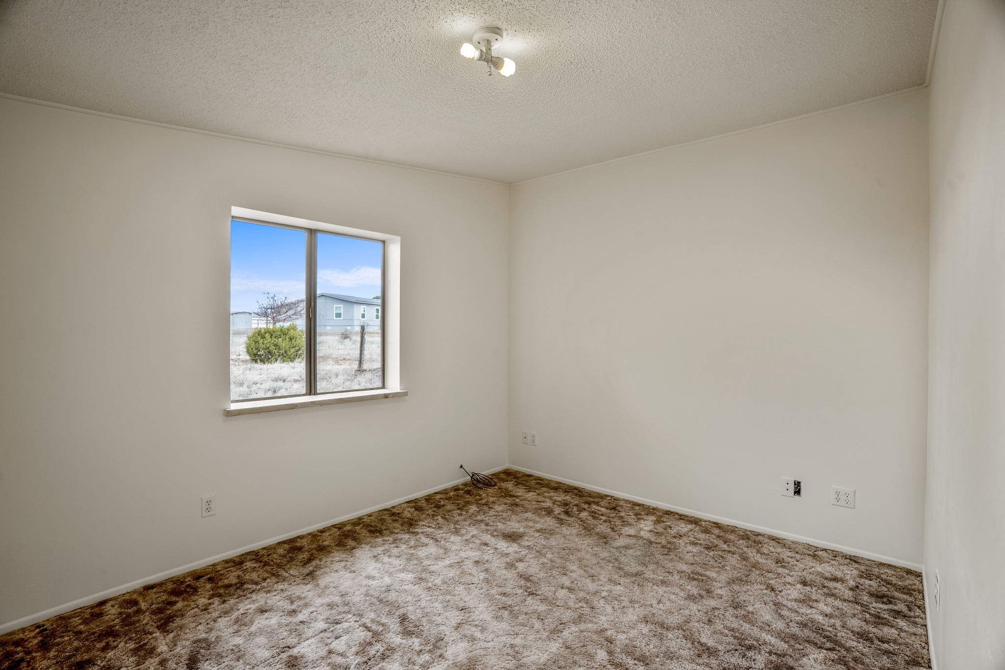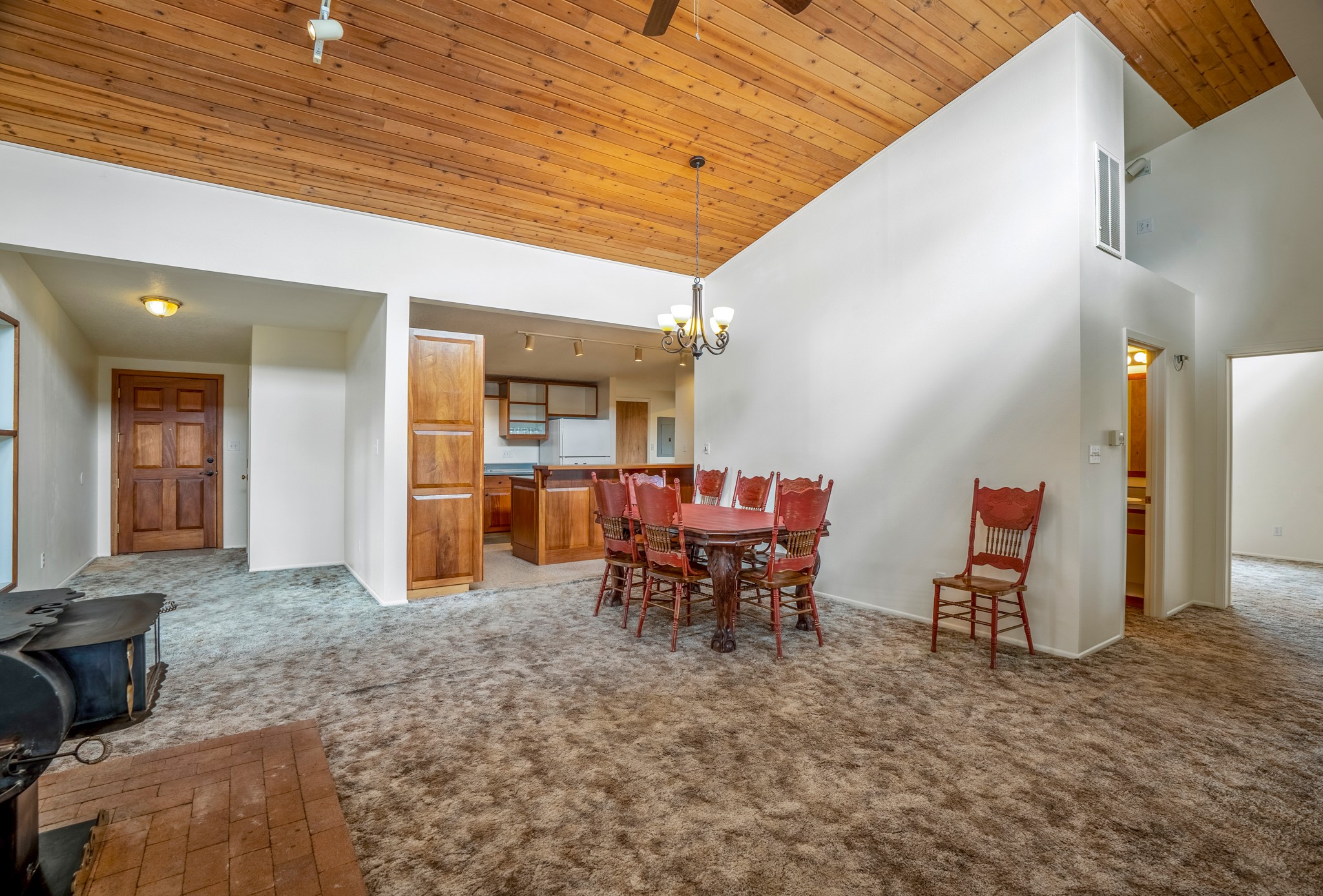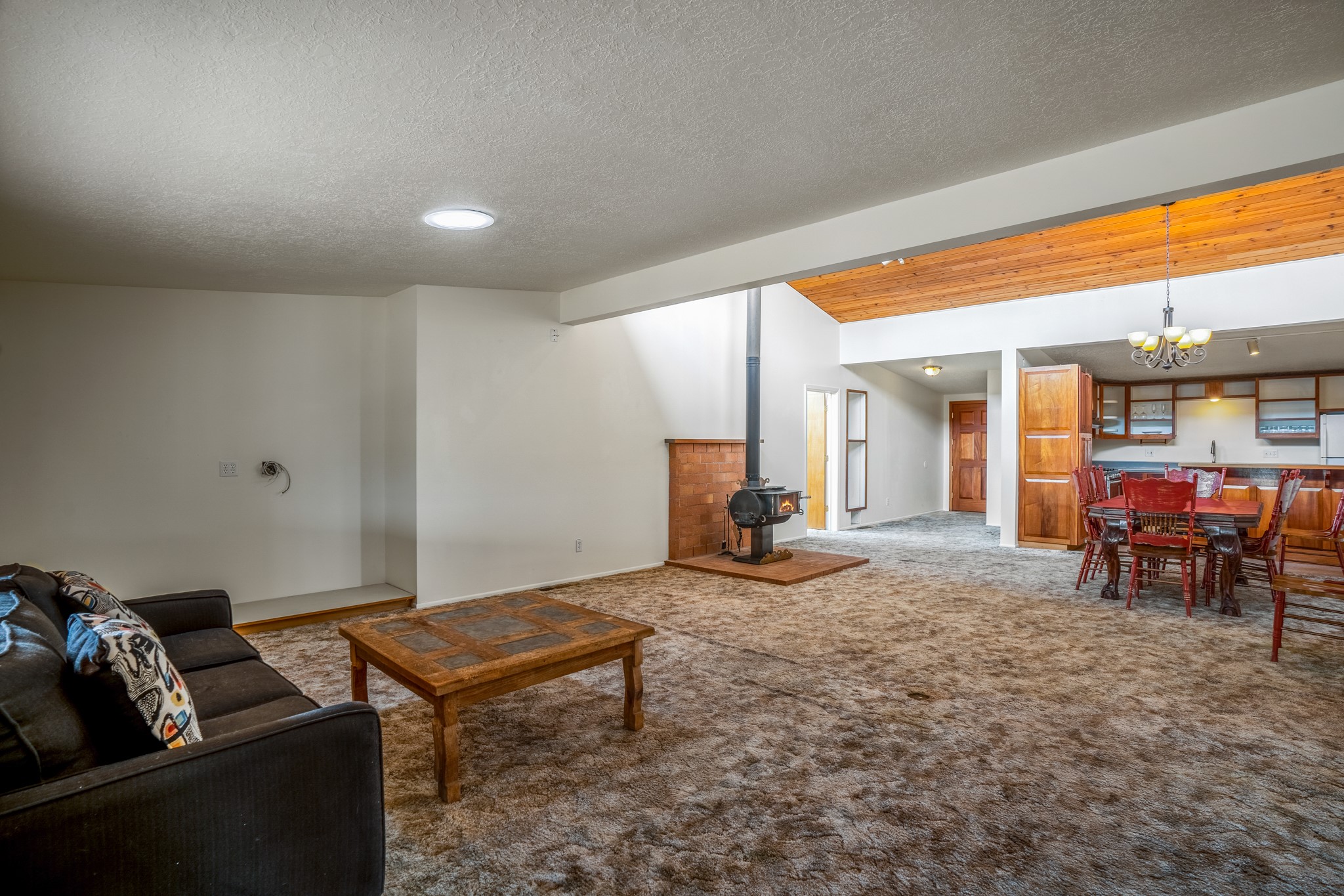 Beautiful customized modular home on almost 5 acres. An artist or craft person's dream with a nearly 2,200 square foot ATTACHED STUDIO/WORKSHOP on its own electrical panel, with a wood heater, evaporative cooler, gas stub out, electrical outlets throughout, and two garage doors! The 2,275 square foot main home features raised vaulted tongue and groove wood ceilings, an open concept great room with clerestory windows, solar tube, and a wood burning stove. Lots of natural light. This does not feel like a modular home! Three bedrooms each with their own walk-in closet and an office. Wonderful views from all directions. Private well. Primary bathroom has a jetted tub, separate shower and double sinks. 5 Hydroviv filters installed, one on each shower, one in the kitchen sink, and two on bathroom sinks. Wrap around porch in the front and a patio with a wood portal off the back of the home with a small pond, perfect for relaxing and taking in the views. The whole home has been freshly painted and professionally cleaned including windows. According to Seller, the metal roof may have been installed within the last 6 years. New hot water heater with instant hot circulation, and stainless steel farm sink in the kitchen recently installed. Gas range is only two years old. Make this Santa Fe escape and live/work dream a reality!