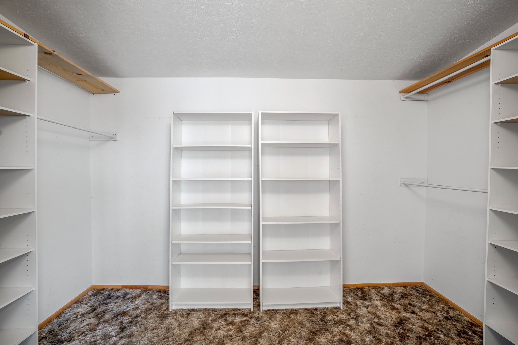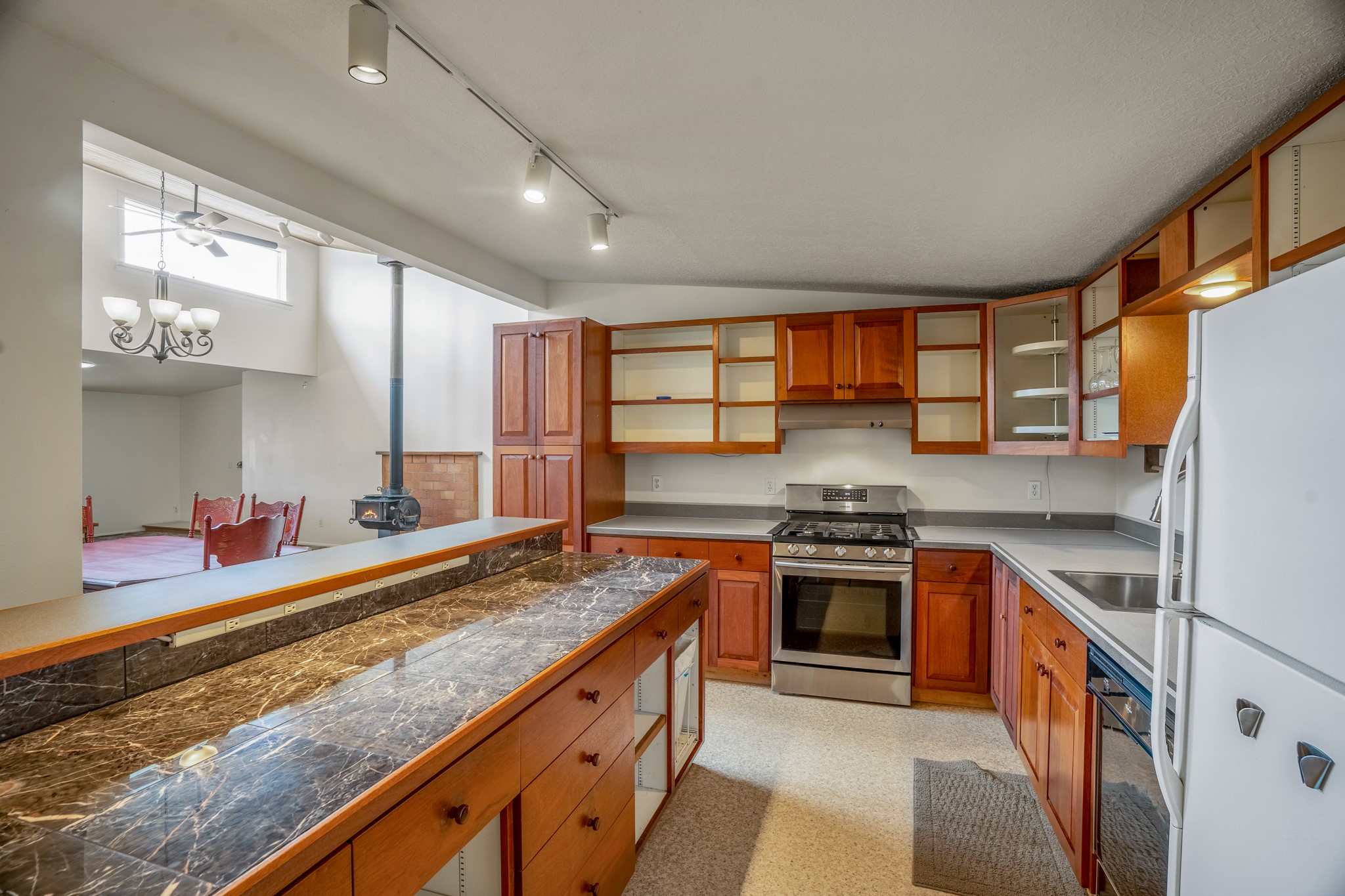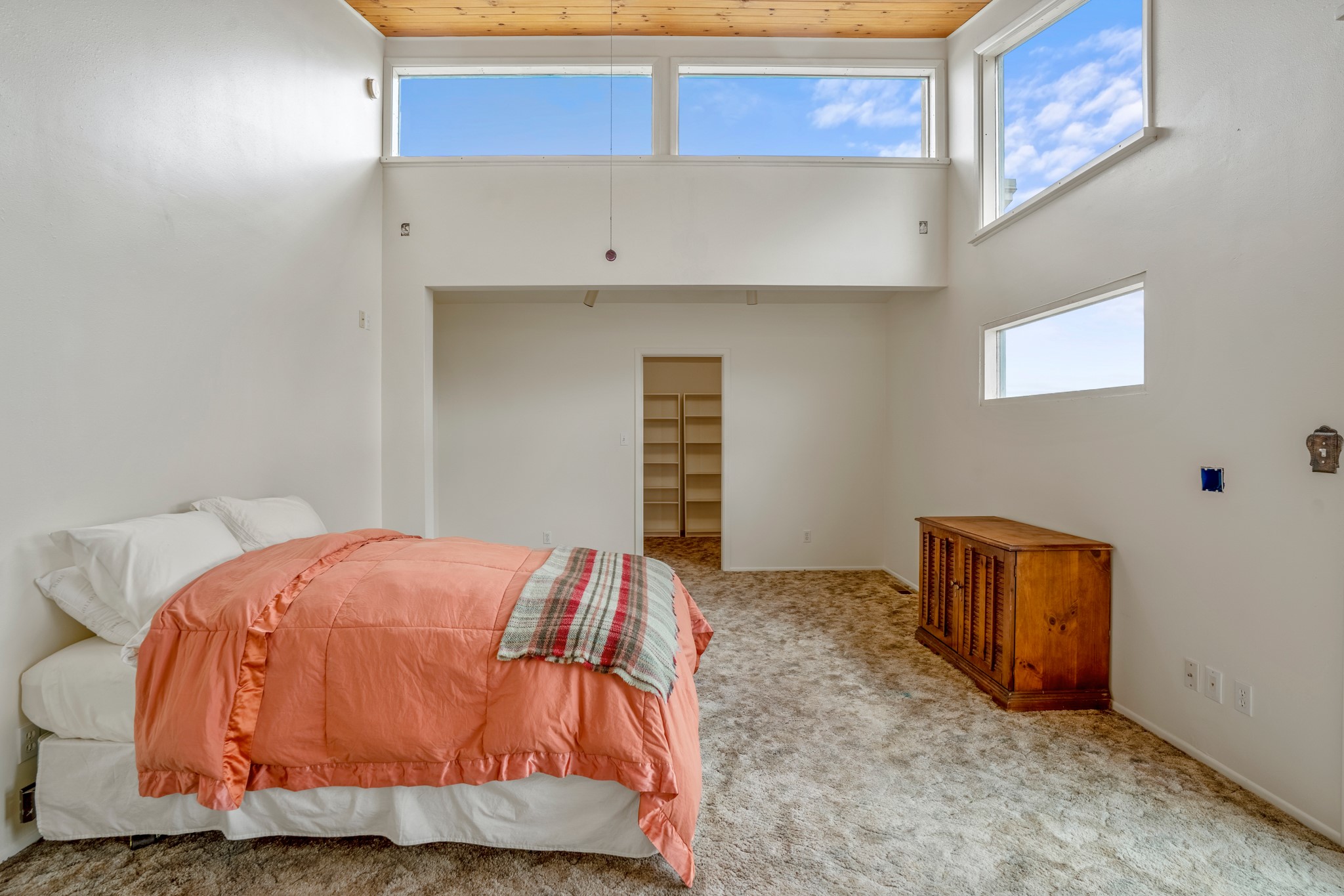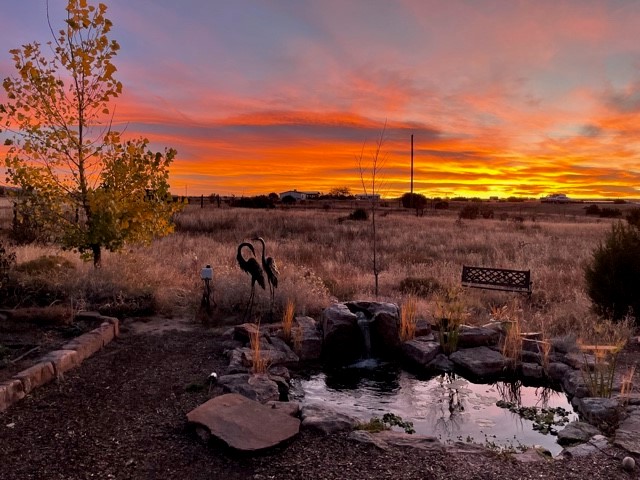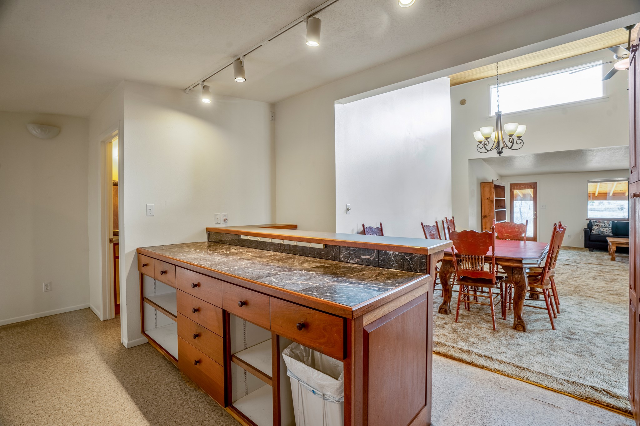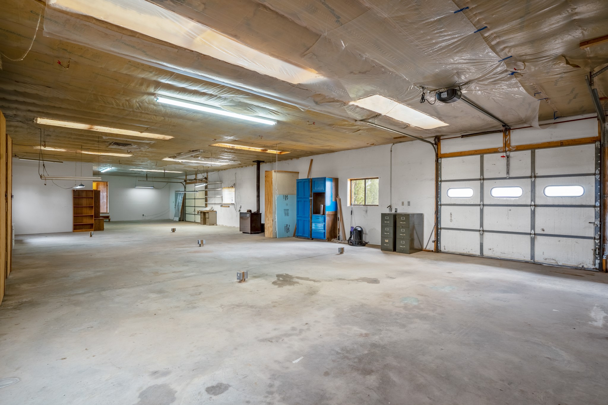 Beautiful customized modular home on almost 5 acres. An artist or craft person's dream with a nearly 2,200 square foot ATTACHED STUDIO/WORKSHOP on its own electrical panel, with a wood heater, evaporative cooler, gas stub out, electrical outlets throughout, and two garage doors! The 2,275 square foot main home features raised vaulted tongue and groove wood ceilings, an open concept great room with clerestory windows, solar tube, and a wood burning stove. Lots of natural light. This does not feel like a modular home! Three bedrooms each with their own walk-in closet and an office. Wonderful views from all directions. Private well. Primary bathroom has a jetted tub, separate shower and double sinks. 5 Hydroviv filters installed, one on each shower, one in the kitchen sink, and two on bathroom sinks. Wrap around porch in the front and a patio with a wood portal off the back of the home with a small pond, perfect for relaxing and taking in the views. The whole home has been freshly painted and professionally cleaned including windows. According to Seller, the metal roof may have been installed within the last 6 years. New hot water heater with instant hot circulation, and stainless steel farm sink in the kitchen recently installed. Gas range is only two years old. Make this Santa Fe escape and live/work dream a reality!