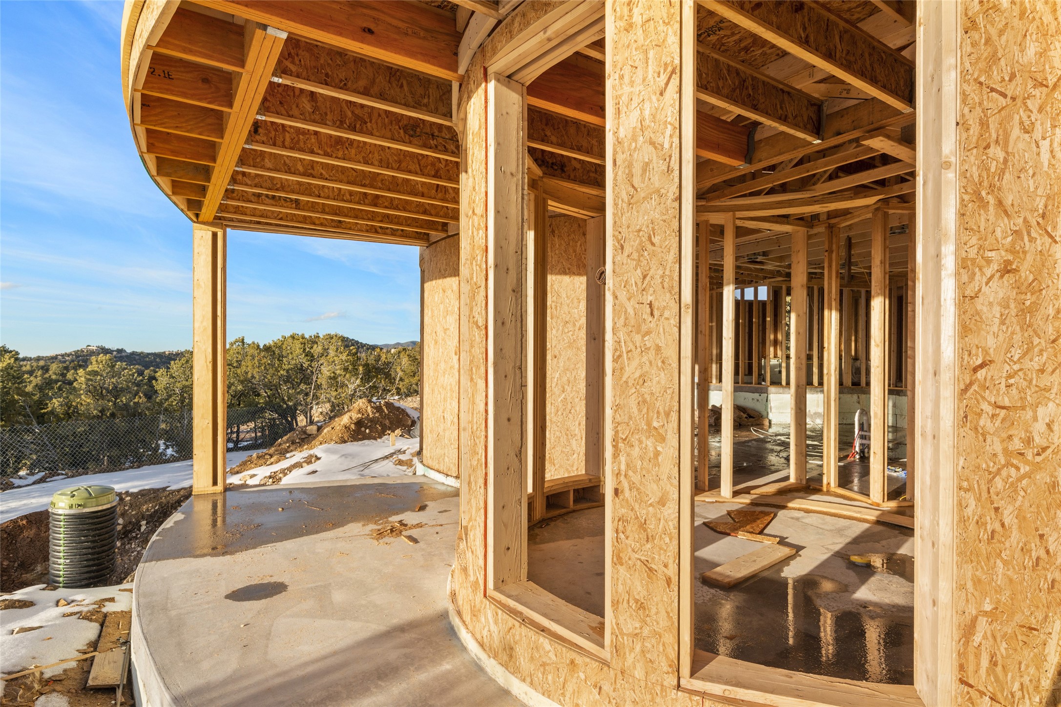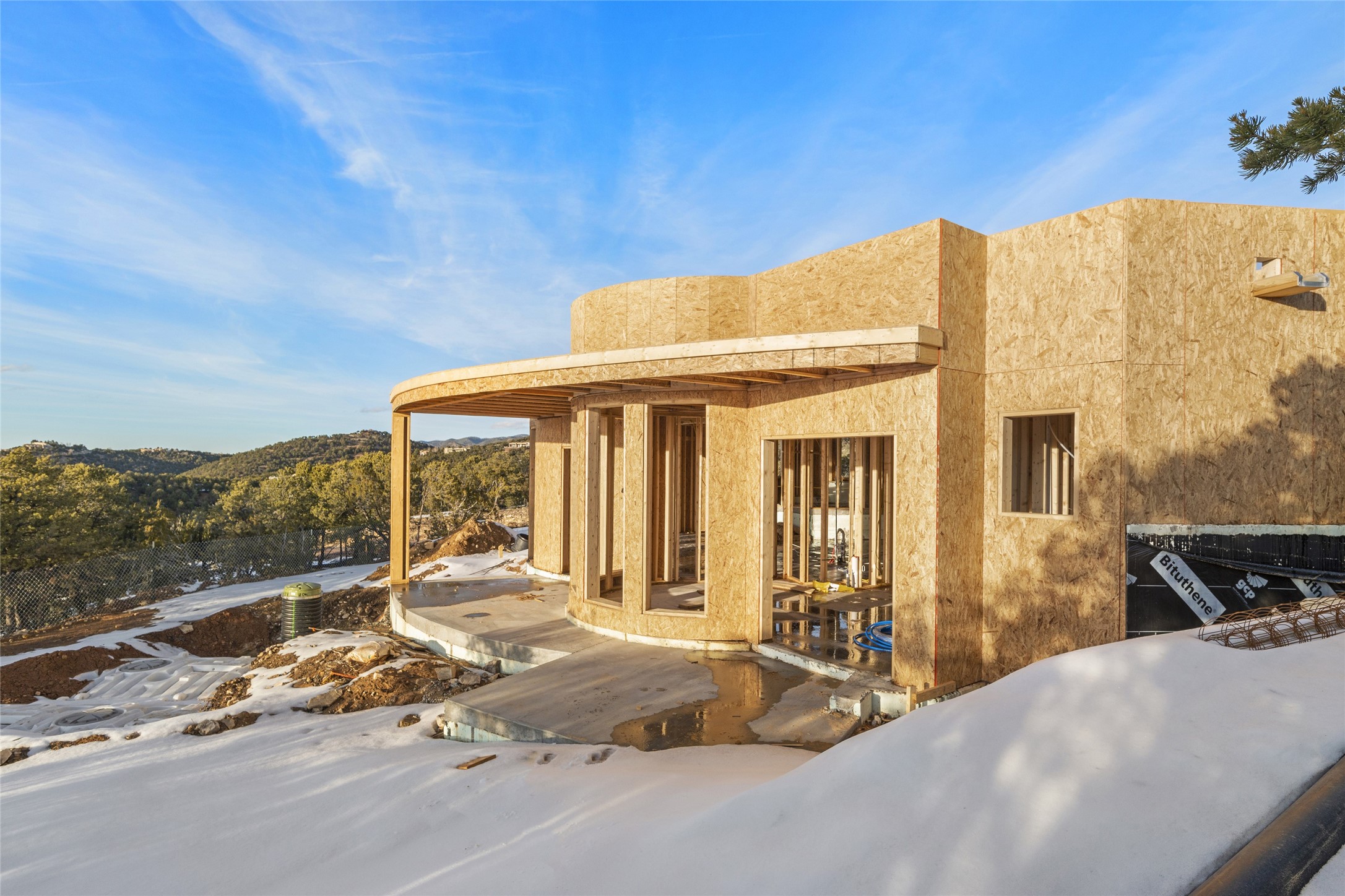 Bold mountain peaks and magnificent sunset views fill this sophisticated, contemporary home from east to western sky.Framed and ready for finish selections, this to-be-built, single level residence is peacefully sited on .33 acres in the gated community of the High Summit, only 10 minutes to the plaza. The home enjoys an open concept great room and spacious master suite, two additional suites and powder room with a total of 3,217 square feet of living space, plus an attached 2-car garage. Luxury finishes will include custom cabinetry, two fireplaces, high-end appliances and fixtures, solid wood doors, Pella windows, radiant heat and air conditioning. Please see attached finish schedule. The builder would love for you to make the final selections soon and make this sanctuary yours. You will love the paved roads, City utilities and central location to the great outdoors, and the amenities of Santa Fe. There are two covered portals to enjoy Santa Fe's indoor/outdoor living. HOA dues are $550 per quarter and cover common area and road maintenance. Project completion to be Fall of 2023. Agent present showings.