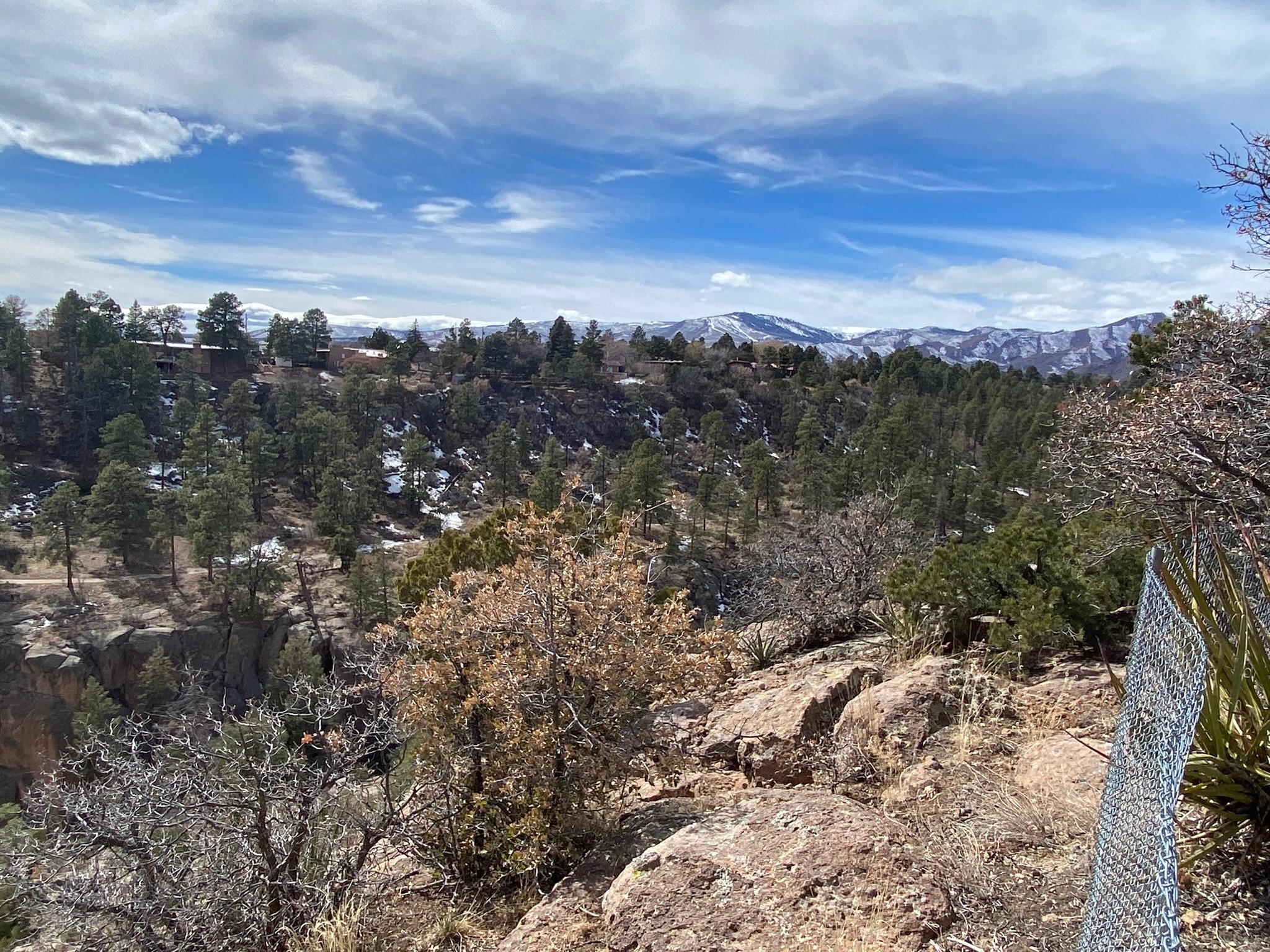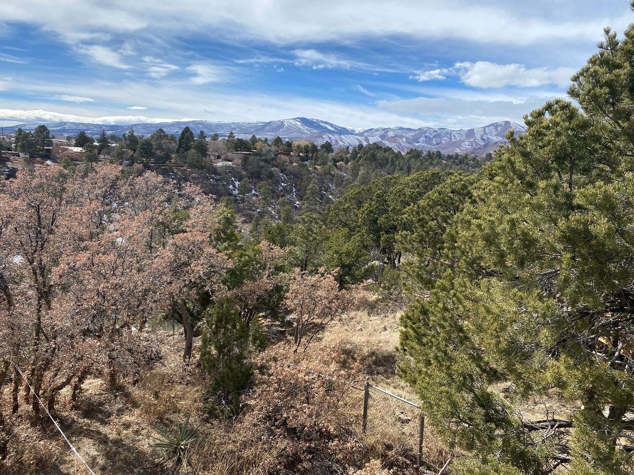 This house has it all! Room to put four cars in the garage, tons and tons of storage, gardening shed, an unfinished basement, drought resistant grass, and a view that goes on for miles! Enter into the beautifully maintained home and immediately see the pride in ownership. To your left you'll find one of two living areas complete with a wood burning fire place. To your right, an updated kitchen boasting granite counter tops and cherry wood cabinets. Upstairs you will find three of four bedrooms including a HUGE primary suite and closet. Two bathrooms service the upstairs bedrooms. Oak floors beneath your feet on main and second floor. Downstairs, on the well maintained cork floors, you'll find an additional bedroom and bathroom, plus a bonus living area, another wood burning fire place and access to the unfinished basement area. And this is just the beginning! The attached garage + shop space can hold 4 cars, could be used as a workshop and garage, tons of opportunity! Step outside and have your breath taken away with views of the Los Alamos Ski Hill, The Sandia Mountains, Sangres, Ortiz and St. Peter's Dome! Solar panels on the roof provide a nice break in the utility bills! In addition, you'll find drought resistant grass, a place for your fire pit, and additional storage for all of your gardening / lawn tools. A