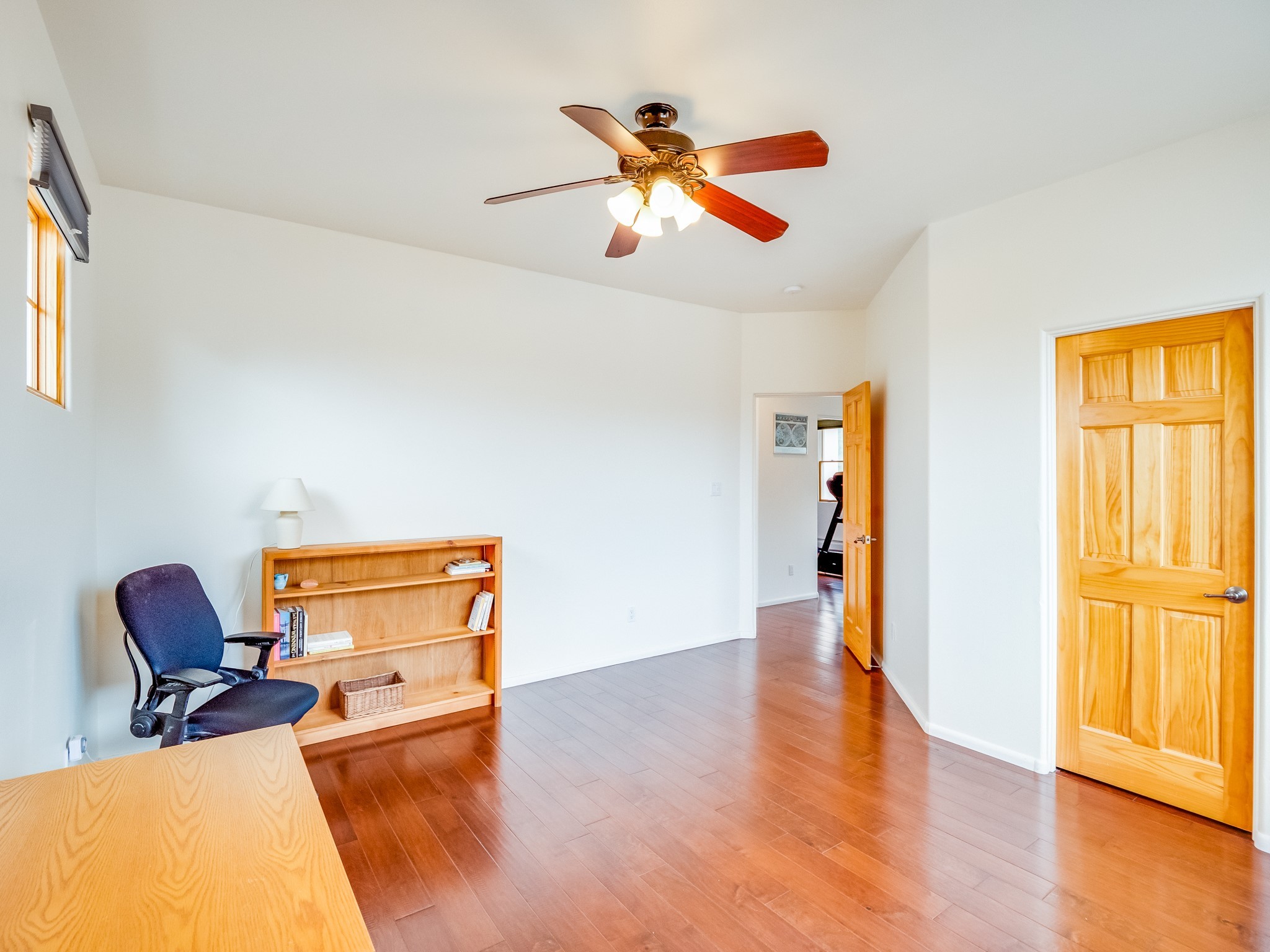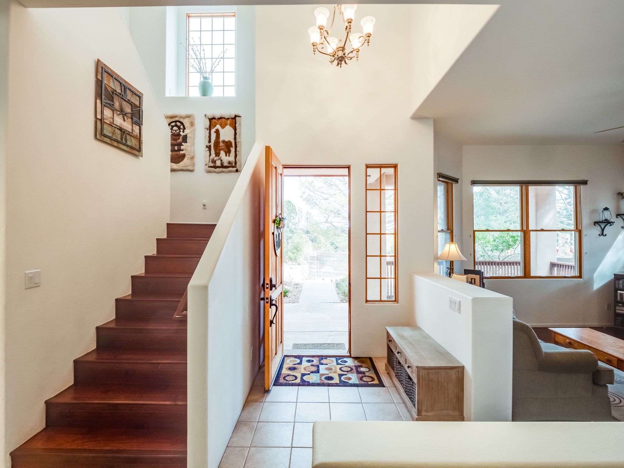 You're really going to fall in love with this exquisite, two story home located in a peaceful North Mesa neighborhood. This corner lot home has a grandeur curb appeal with easy low maintenance landscaping in the front and backyard. An open Great Room floorplan with tile flooring. The Family room has a stone gas fireplace flanked by built-ins, a wall of windows and glass sliding door leading to the backyard. Connected is the Dining space and bright and spacious Kitchen with bar top seating overlooking the Family Room making for a super entertainment space. A center Island with gas cooktop, granite top and industrial Hood. Hard surface counters, stainless steel appliances, wood cabinets with chrome hardware, and a walk-in pantry. From there you have a large Laundry Room with access to the three car garage. Also on this floor is a formal Living Room with gas fireplace and wood floors, a guest bedroom and a full guest bath. Wood floors continued to the second floor. You have two large guest bedrooms and an open loft space that can be used as an office/lounge area, and another full guest bath. A very spacious Primary En-Suite with a private covered deck with mountain views. A fantastic bath with double sink vanity, deep soaking tub, walk-in closet with a custom closet system and huge walk-in tiled shower! Great expansive backyard with a paved covered patio and a retaining wall with mature trees. Close to trails and horse stables. Come see this stunning, move-in ready home now! Join us at our open house Sunday the 19th from 12:30-2:00.