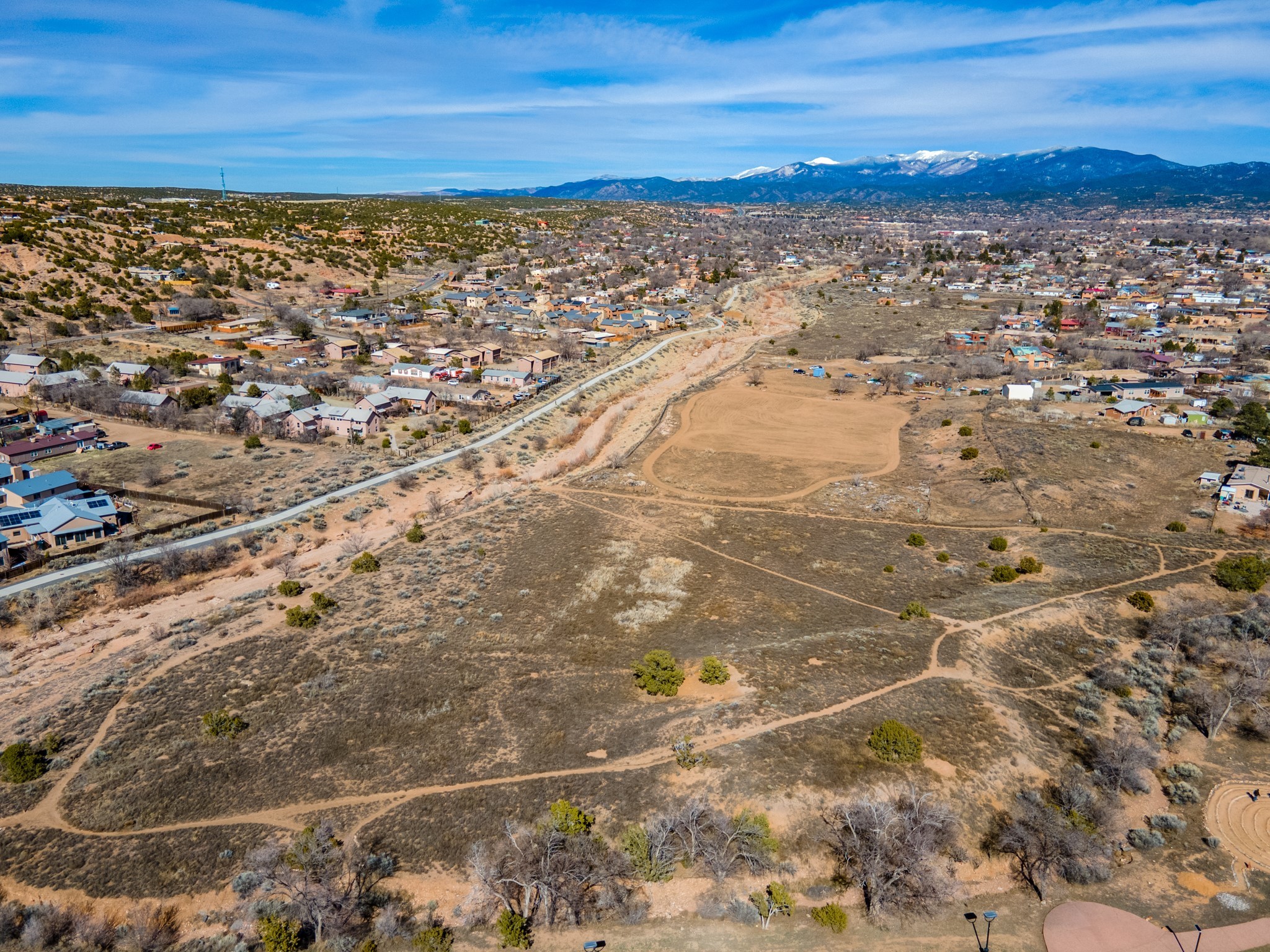 An excellent opportunity to acquire land for a subdivision or other residential development on this R-5 zoned acreage. Prime location behind Frenchy's Field, Santa Fe River frontage, with excellent mountain views and pastoral setting, only minutes to downtown.