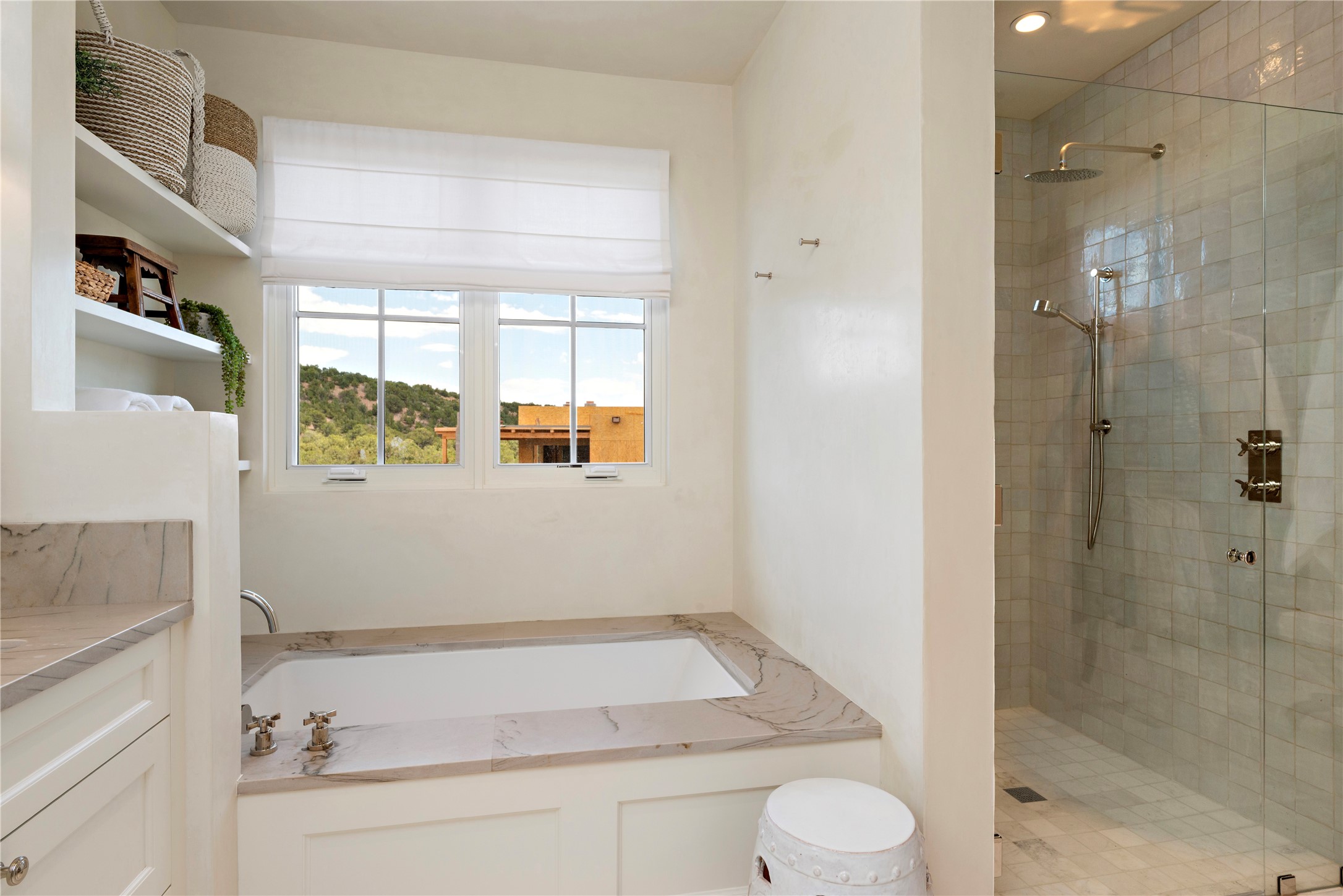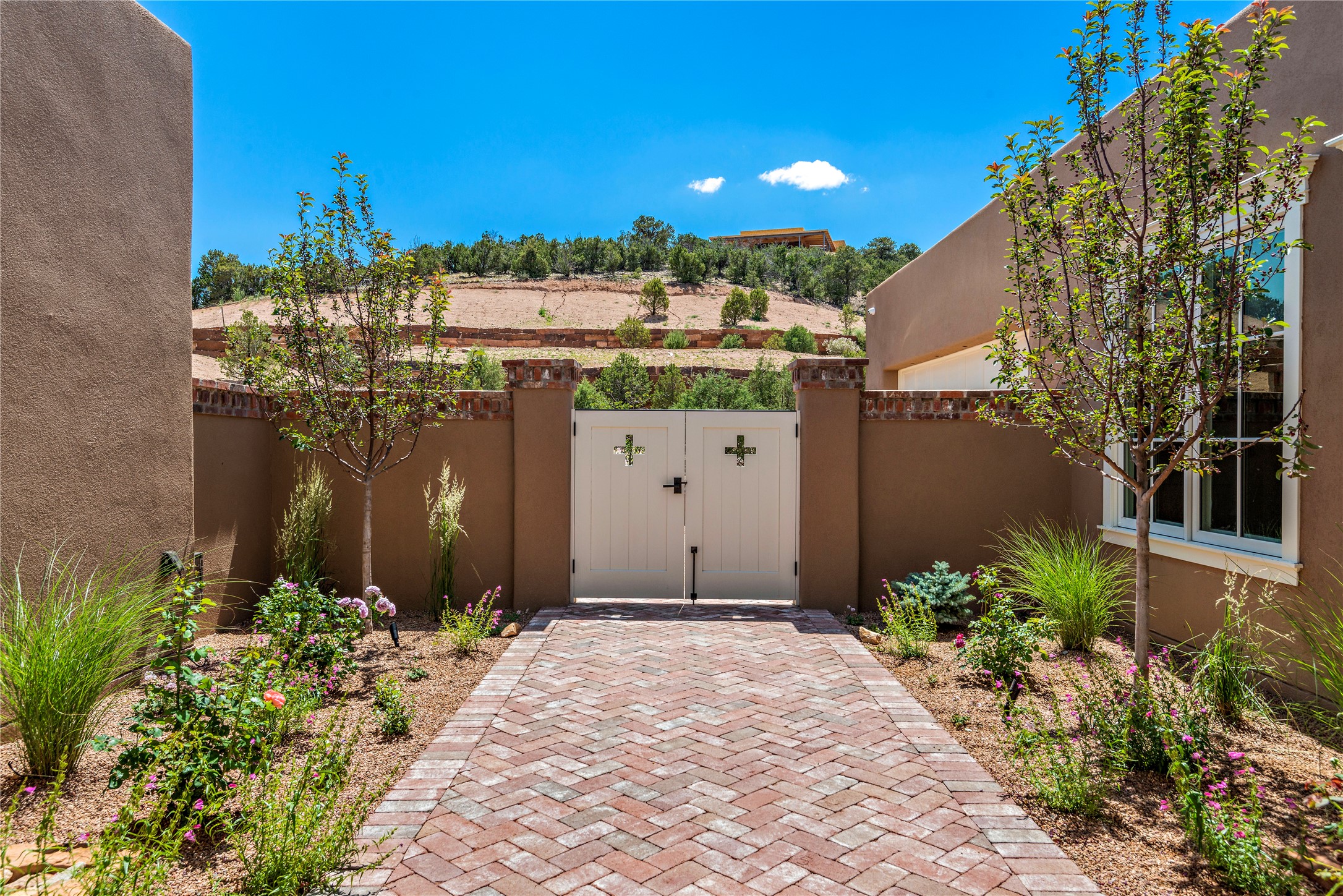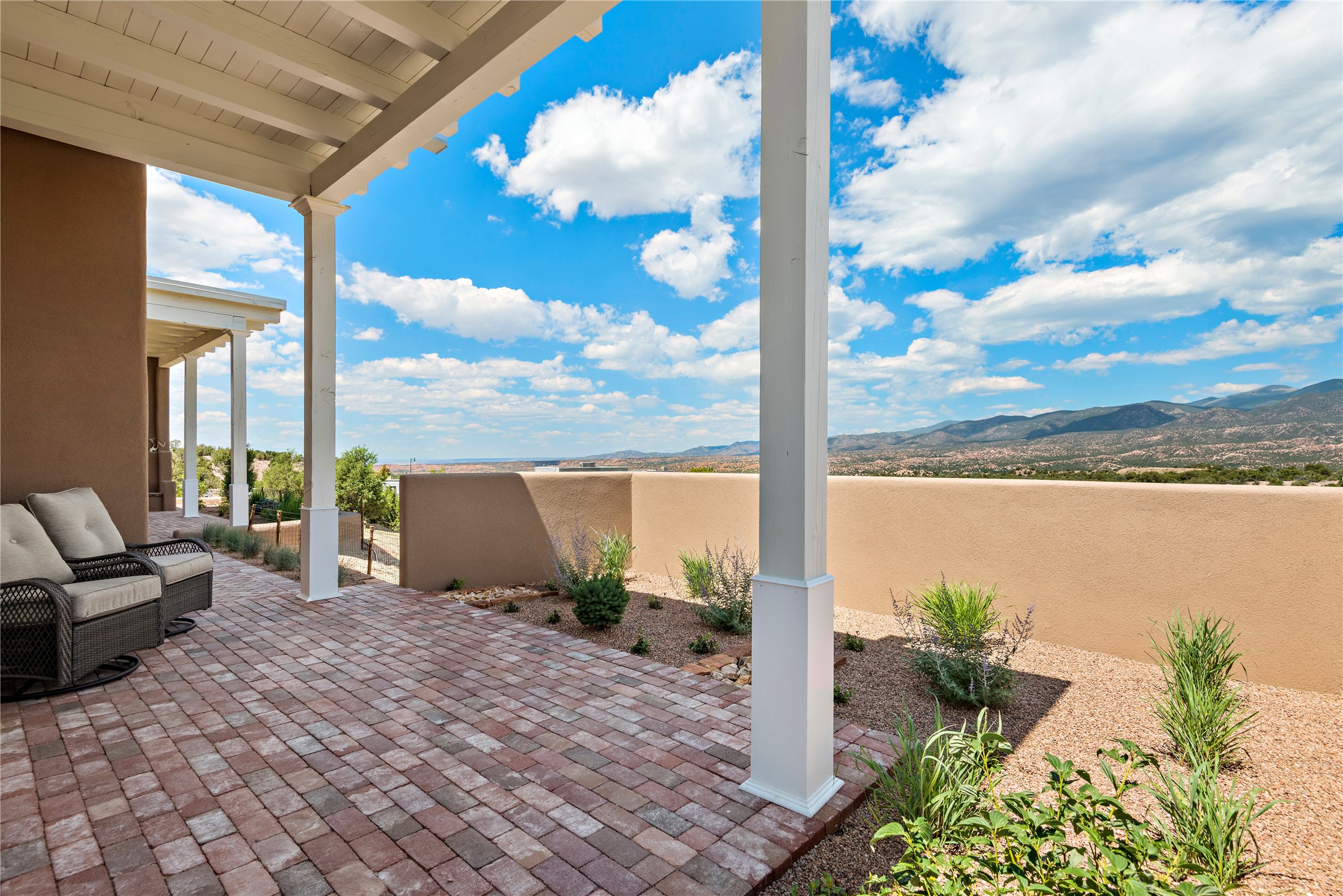 Building permit is in hand for this exciting new Enclave home at Monte Sereno. Santa Fe's premier view subdivision, located within the City of Santa Fe and serviced by City water and sewer, fiber optic and cable, natural gas, buried electricity and telephone. With roughly a 14 month completion for your new home, with 2 years of planning, permitting, and building flat pads into the hillside with everything ready to go.... we can break ground immediately! You can choose finishes like hardwood floors, the color of the plaster walls, types of appliances, light fixtures, and more. The Enclave at Monte Sereno is an exciting opportunity to purchase a new one-level, architect designed home with spectacular views of the Sangre de Cristo mountains and the Badlands in a true lock and leave gated setting. With only 4 of 8 remaining homes to choose from, these "Santa Fe Contemporary" homes have floor plans that match today's relaxed lifestyle. The main living room/dining room space is open to the views, with 3 panel sliding glass doors facing the huge East views adjacent to the outdoor dining portal. The floor plan then opens to a gourmet kitchen - featuring a Wolf/Subzero appliance package, custom-cabinets, and a large island/casual counter design with affords multiple dining and living options with mountain views as the backdrop. The private Owner's Suite shares the views through the large East-facing portal and features a corner kiva fireplace. True plaster walls throughout the entire home, oak hardwood floors and tiled bathrooms, high ceilings with square cut beams all accent the contemporary finishes. In-floor radiant heat and true refrigerated A/C. The floor plans are customizable with exciting expansion and upgrade options, with interior styling ranging from Traditional all the way to Contemporary. Vegas or beams? Nichos or bancos? Light or darker plaster walls? Let our builders bring your dream home to life.
