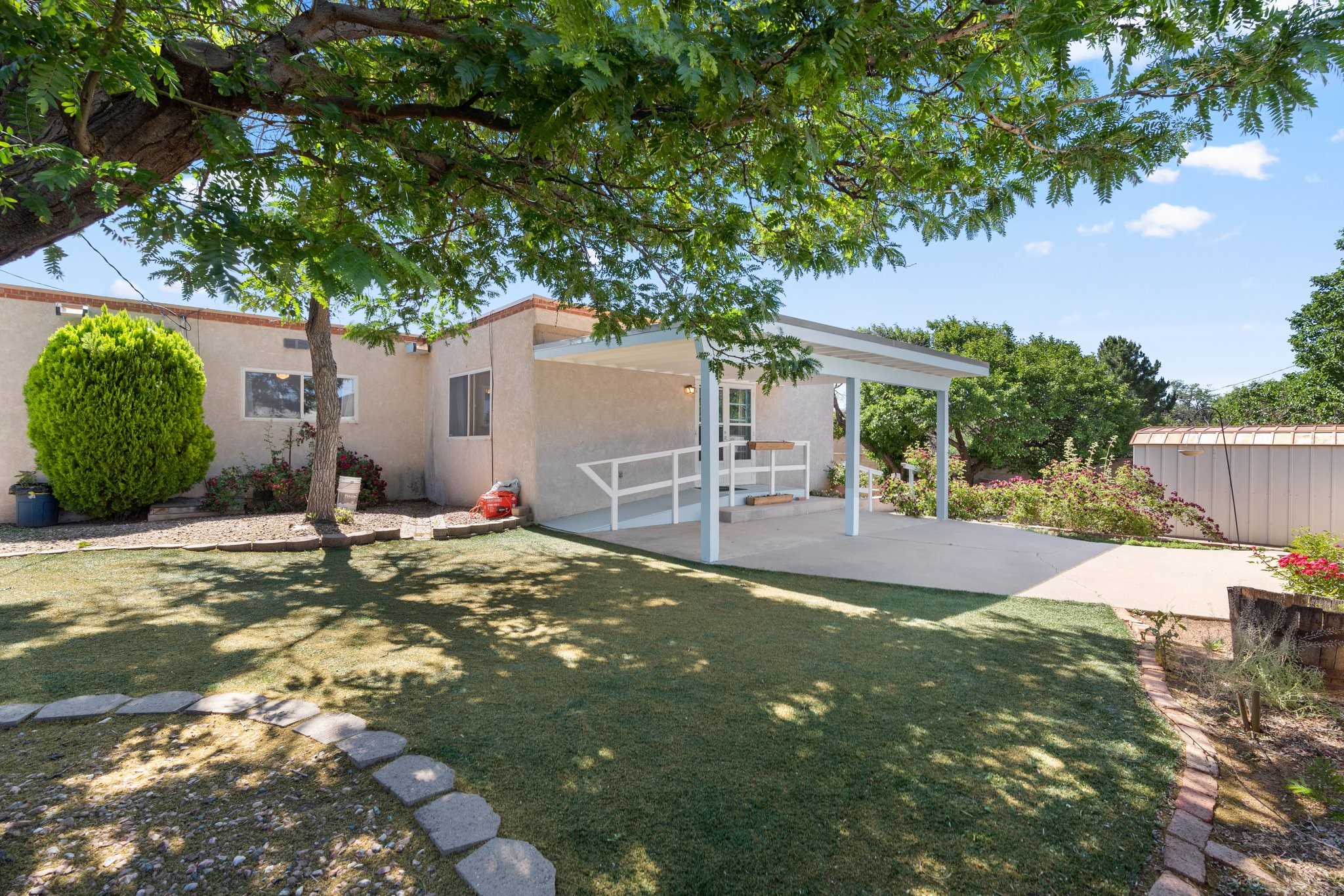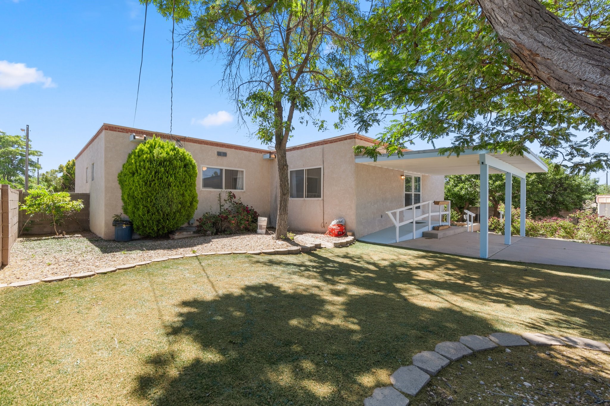 This stunning home in Santa Fe offers 3 possible 4 bedrooms and 2 full bathrooms. This single-story property boasts a large back yard with turf, shade tree's and flowers, providing ample space for outdoor activities and entertainment. Additionally, this home has recently undergone a full roof replacement, New Water Heater, Stucco Repair, New Drain outs and Sewer Line Liner. The home also had an updated electrical panel installed. Original hardwood floors under the carpets in the living room, dining room, primary bedroom, both bedrooms at the front, and hallway. Located in the beautiful city of Santa Fe, this home is situated in a prime location that allows for easy access to local schools, amenities, shopping, restaurants, and entertainment. With its combination of comfort, style, and convenience, this property offers the perfect setting for you to call home. Don't miss out on this opportunity to own a piece of Santa Fe's charm and elegance.
