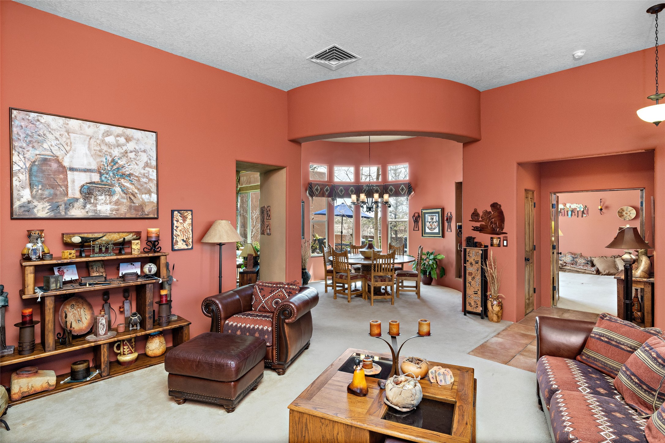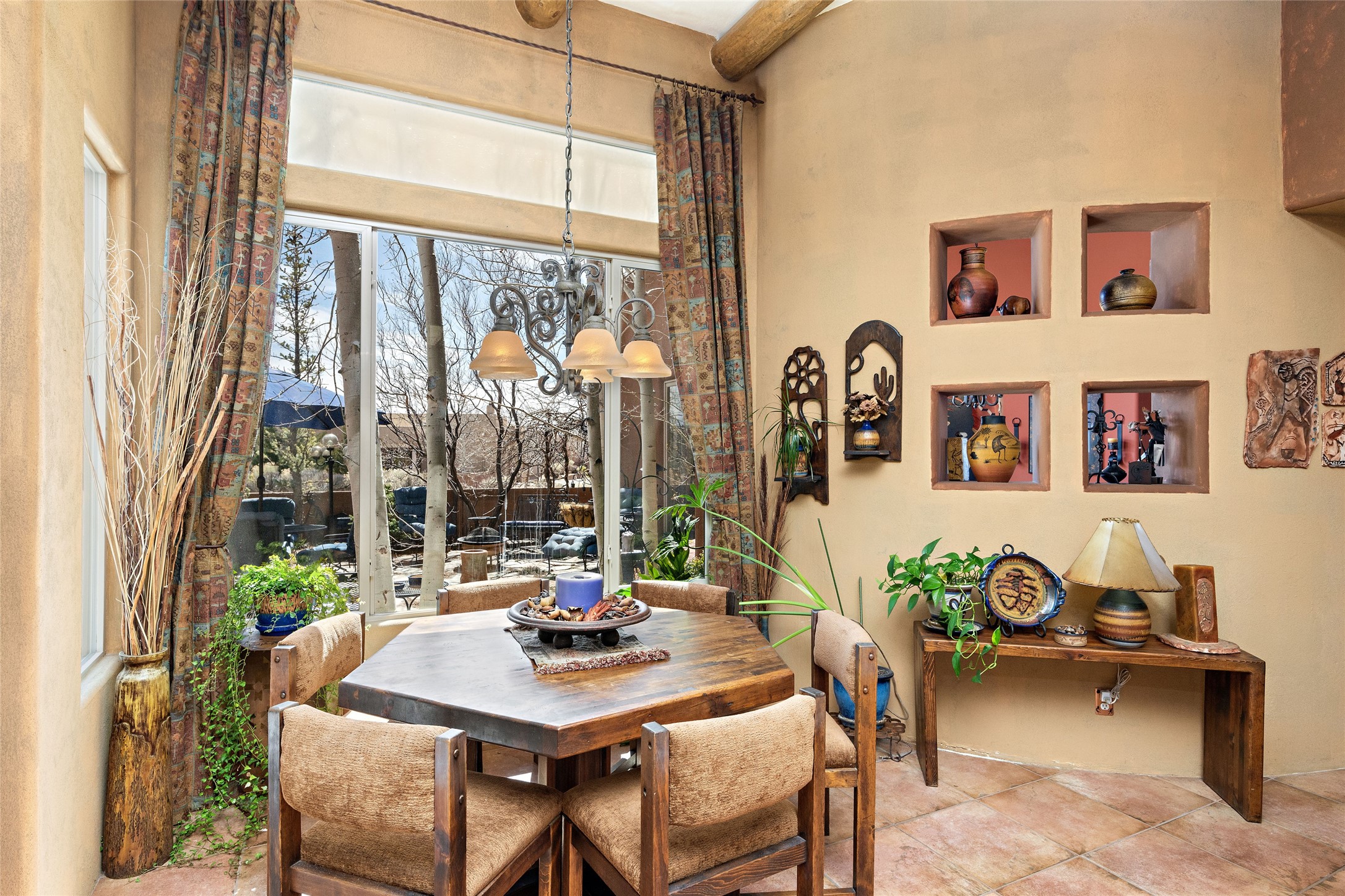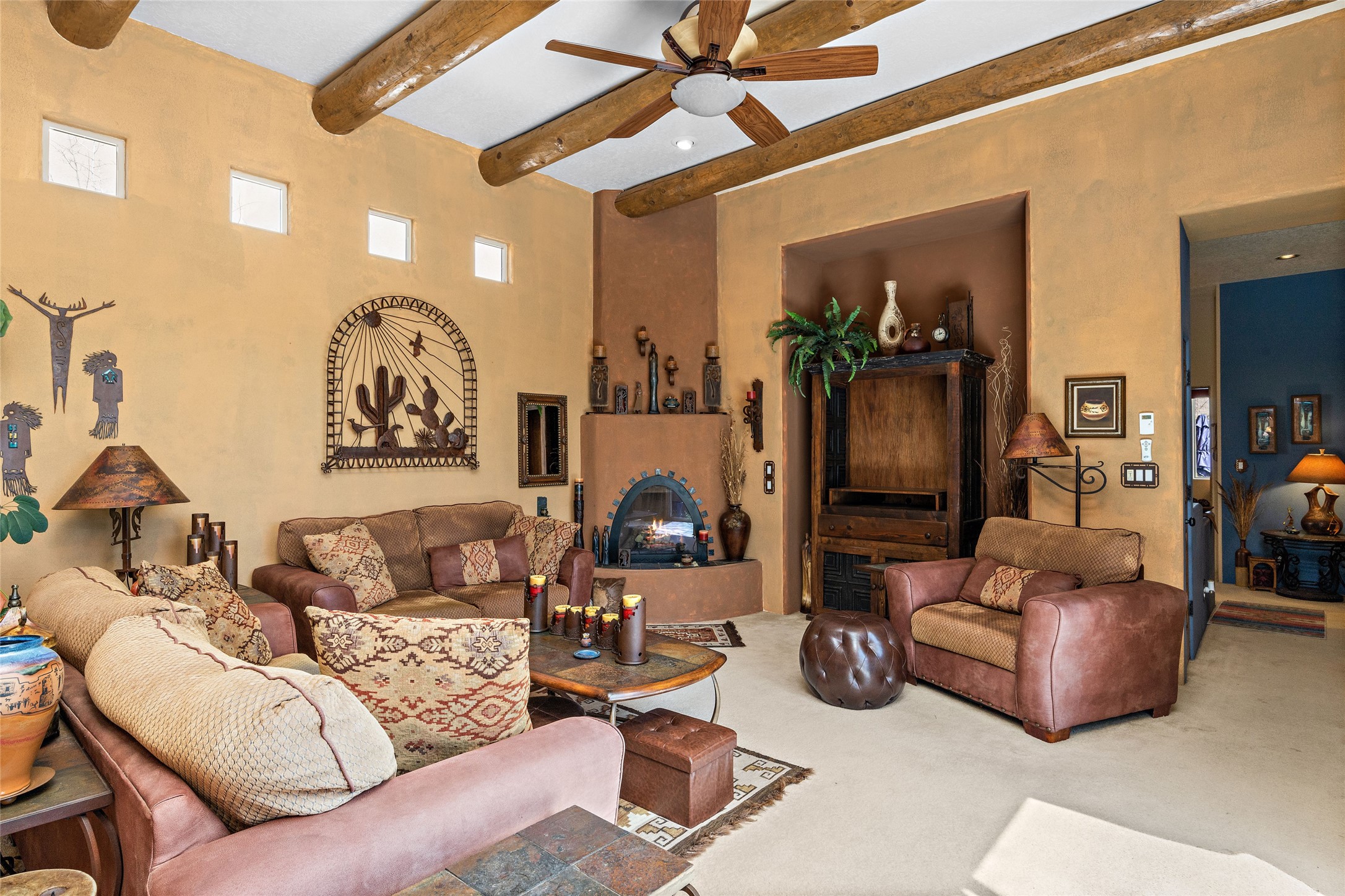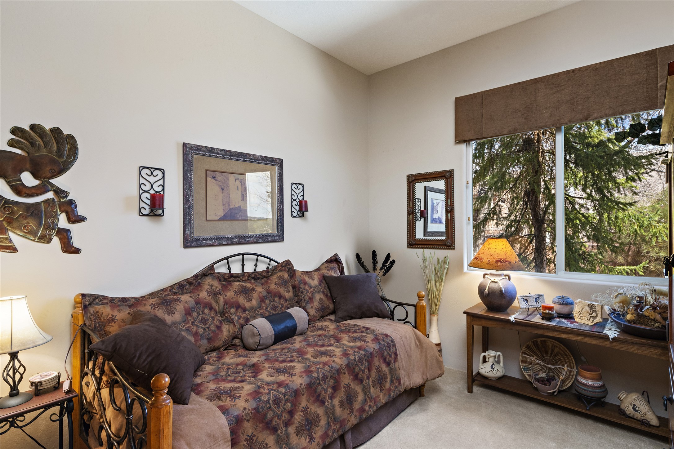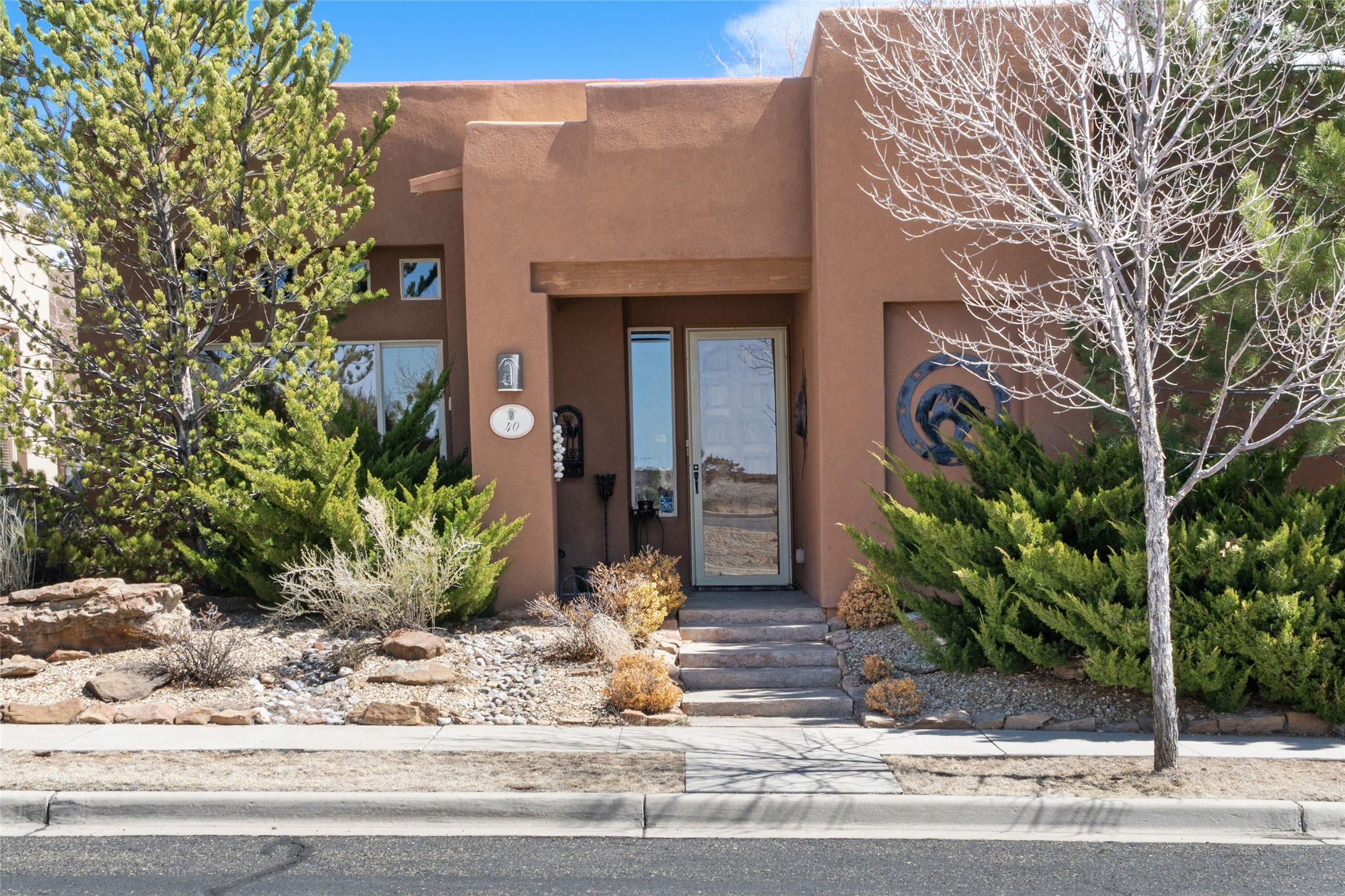 This Rancho Viejo home sits on a corner South facing lot just a block from a large green space, and has the walking trails right out your door! With 3 bedrooms and 2 full baths, it is the perfect size and has wonderful bedroom separation, and a nice office space. The main bedroom has ensuite bath with large tub and grand walk in closet, as well as doors to the lovely landscaped flagstone patio. With both a formal living room and a family room with a kiva fireplace that is open and adjacent to the kitchen, a fun circular dining room as well as a breakfast nook in the kitchen/family room; there are many options for places to sit, read, eat and entertain! The kitchen/family room opens also to the South facing patio for indoor/outdoor living nearly year round! At the back of the house is the multipurpose study, office or media room; as well as the two guest bedrooms which share a large full bath with double sinks. Leading to the attached garage is the laundry room and also access to the rear flagstone patio facing East and South. There are no steps in the home and the high ceilings, vigas and Southern exposure provide a nice light, bright atmosphere with a Southwestern vibe. MOTIVATED SELLER!