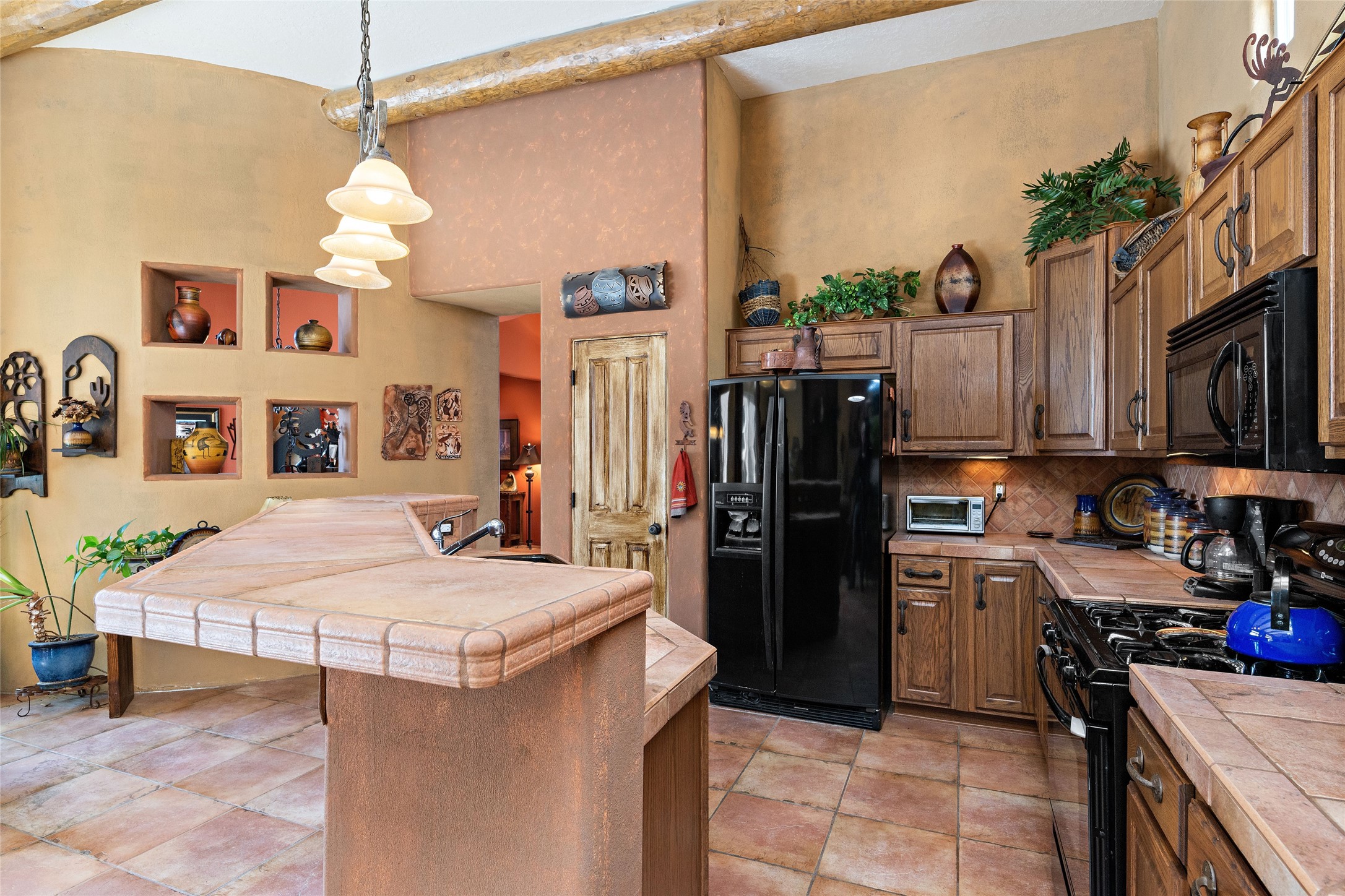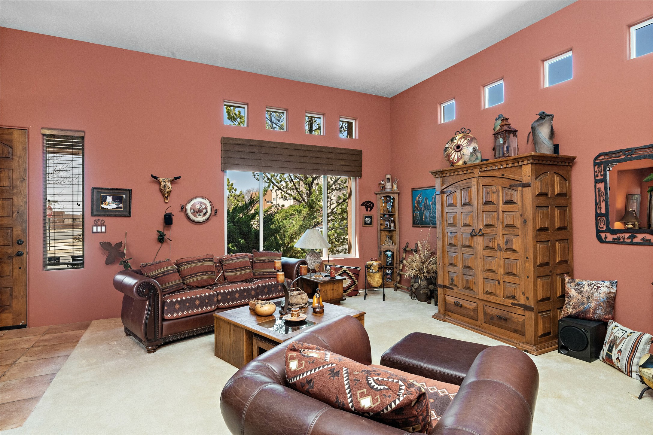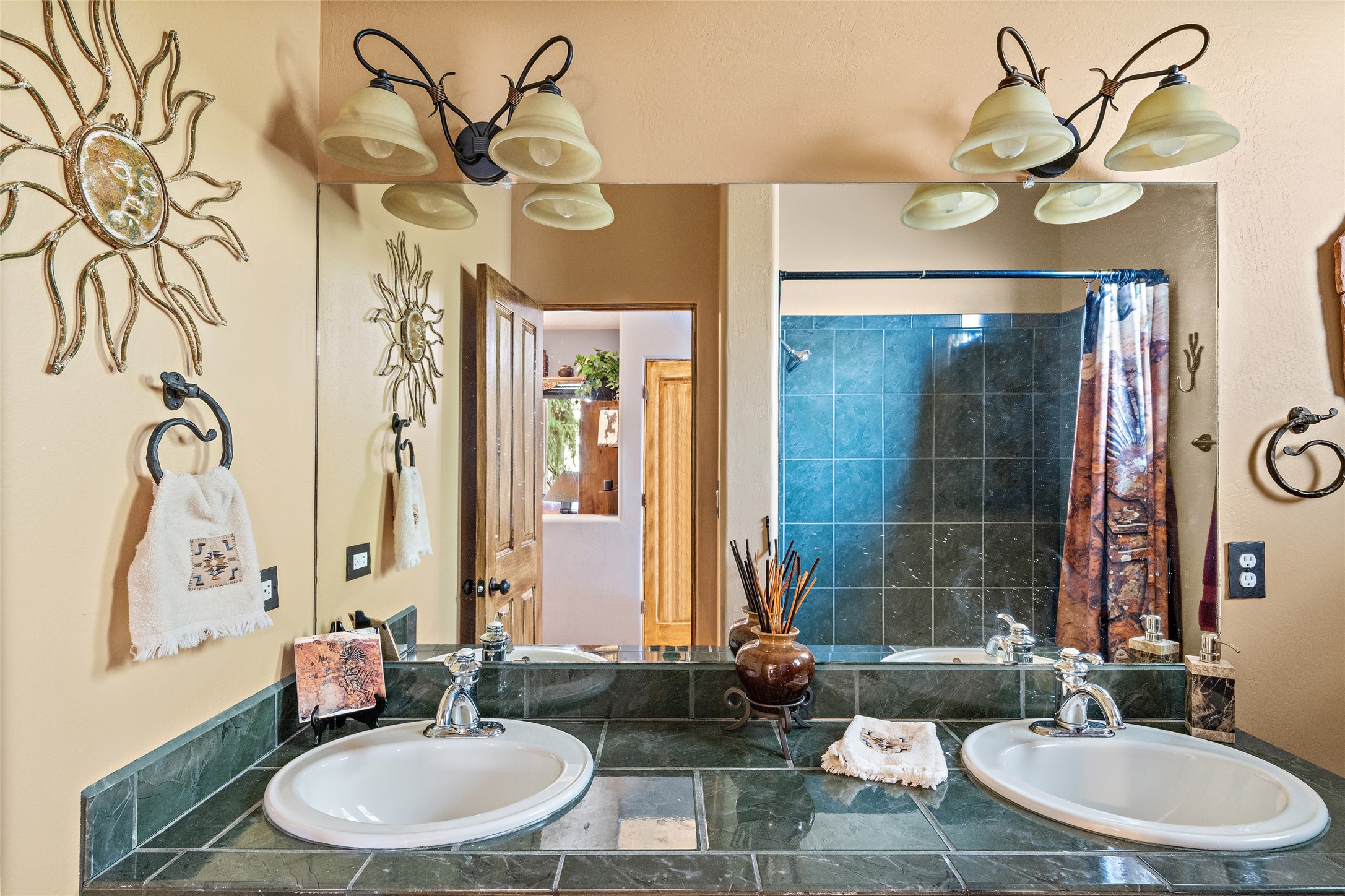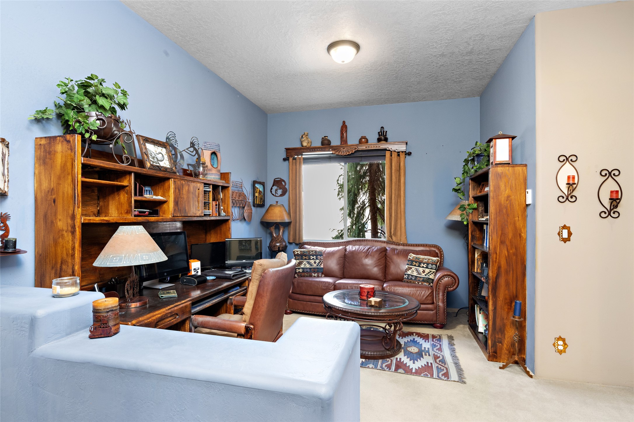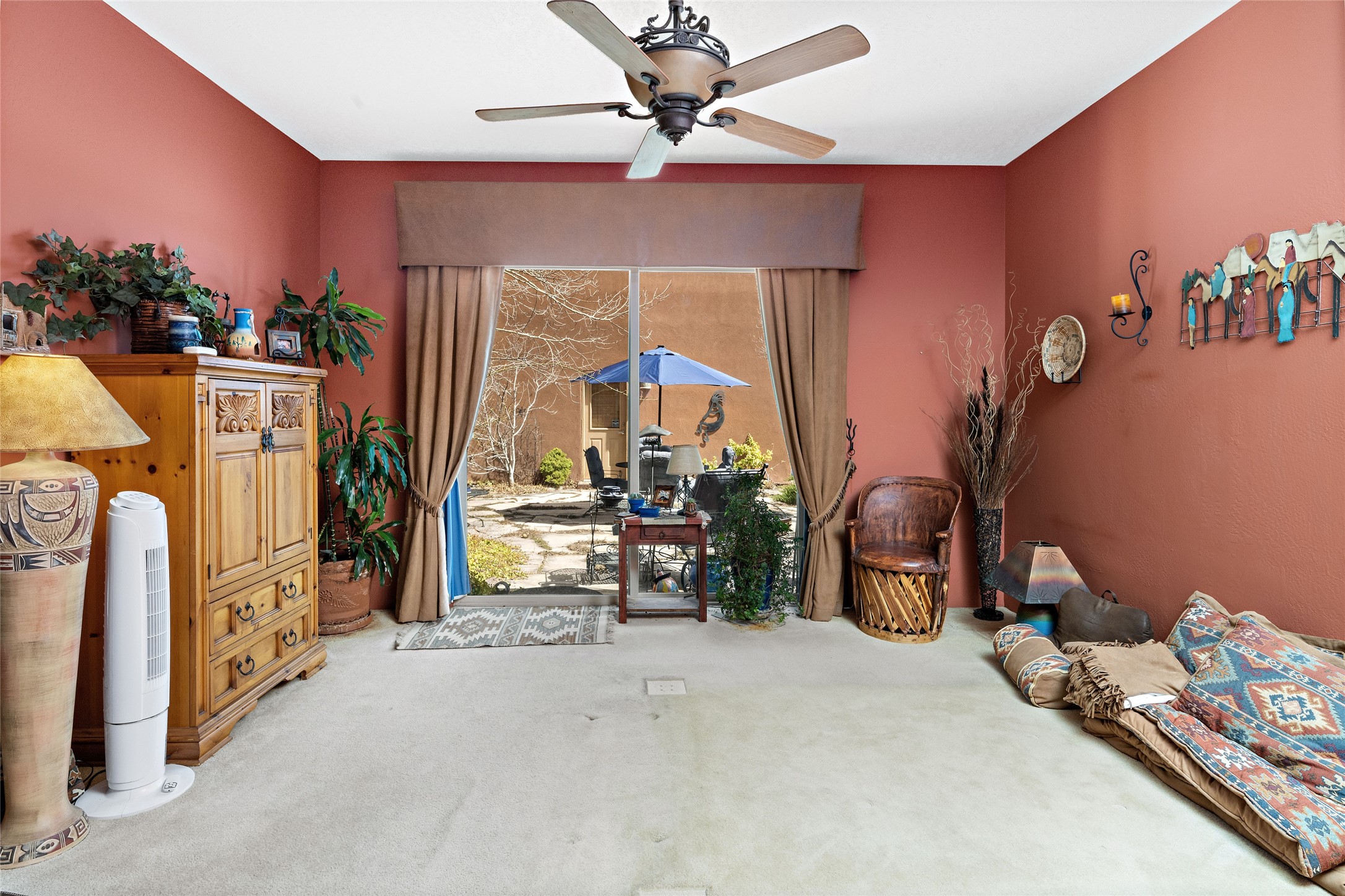 This Rancho Viejo home sits on a corner South facing lot just a block from a large green space, and has the walking trails right out your door! With 3 bedrooms and 2 full baths, it is the perfect size and has wonderful bedroom separation, and a nice office space. The main bedroom has ensuite bath with large tub and grand walk in closet, as well as doors to the lovely landscaped flagstone patio. With both a formal living room and a family room with a kiva fireplace that is open and adjacent to the kitchen, a fun circular dining room as well as a breakfast nook in the kitchen/family room; there are many options for places to sit, read, eat and entertain! The kitchen/family room opens also to the South facing patio for indoor/outdoor living nearly year round! At the back of the house is the multipurpose study, office or media room; as well as the two guest bedrooms which share a large full bath with double sinks. Leading to the attached garage is the laundry room and also access to the rear flagstone patio facing East and South. There are no steps in the home and the high ceilings, vigas and Southern exposure provide a nice light, bright atmosphere with a Southwestern vibe. MOTIVATED SELLER!