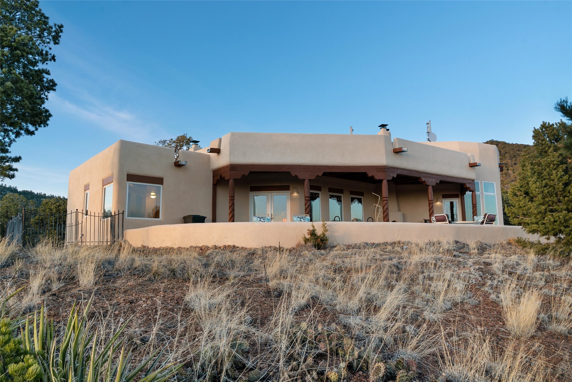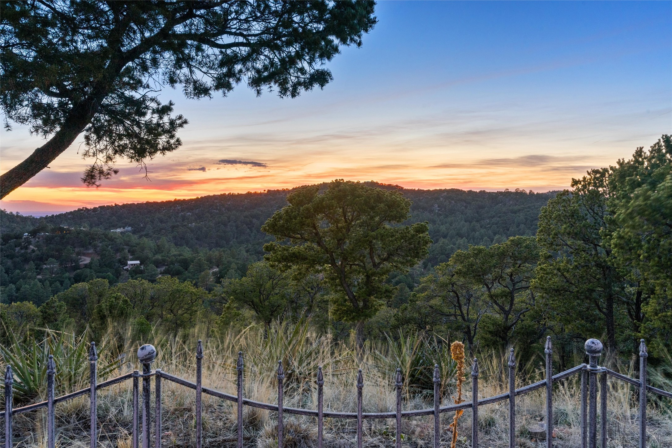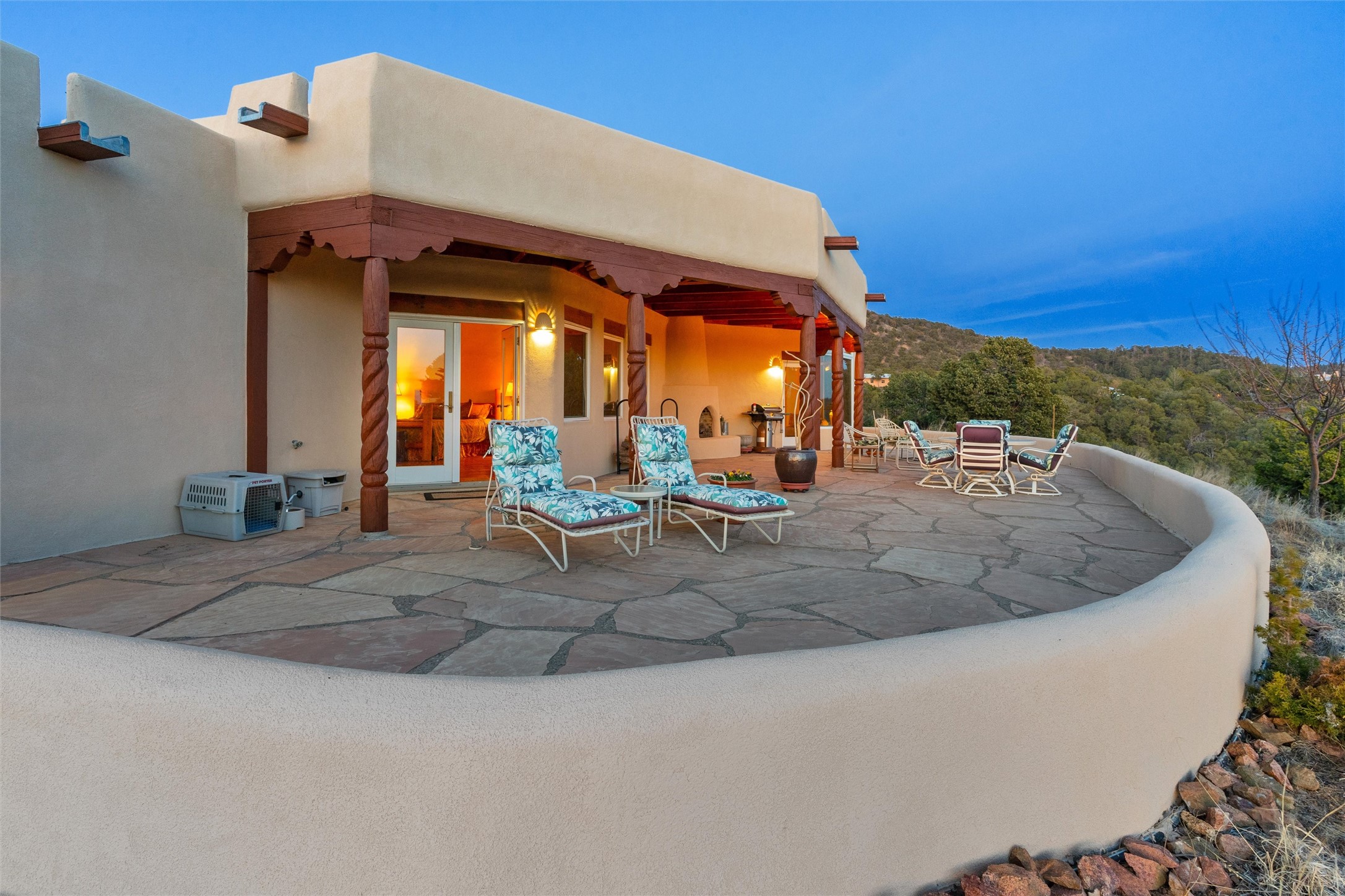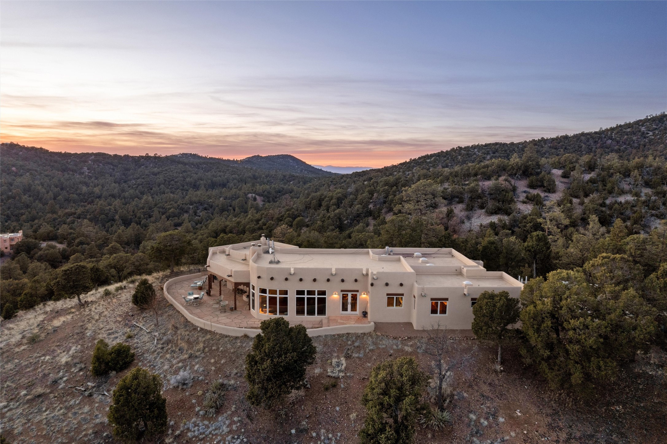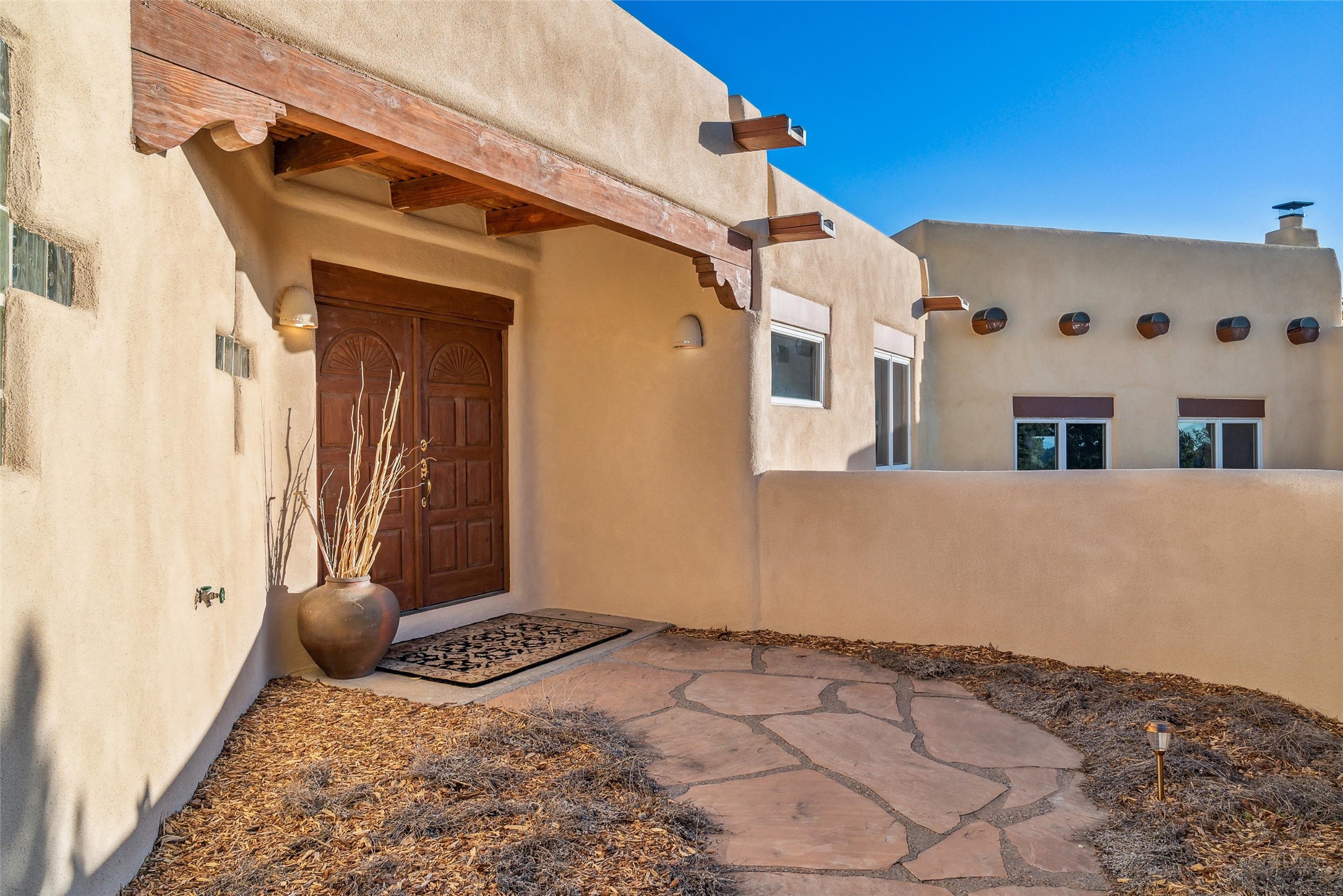 With Breathtaking Views, and Peace and Quiet inside and out, you may never want to leave your Mountain Paradise in this Old Santa Fe Trail neighborhood! As you step inside, you'll be greeted by a Wall of Windows beckoning you out to the Grand Patio that extends across the home. But wait! The Warm Glow of the Viga & Latilla ceilings, and the lavish, recently refinished Diamond Plaster walls, and Banco Seating encourage you to cocoon inside. Here, the open floor plan is perfect for entertaining guests, relaxing with family, or in the solitude of your retreat.The four Spacious Bedrooms present a host of possibilities. The Primary Suite is in its own wing, and features your personal Jetted Spa Tub that looks out onto Forever. The smart design anticipated the possibility of a Guest Wing or Attached Casita at the other side of the home. Here, two rooms share a bathroom. Yes, both could be bedrooms, or, add a kitchenette, small table, and sofa to the room currently featured as an office and it is Private Living Space. A Private Courtyard with a Separate Entrance off that side of the home is the perfect spot to enjoy morning coffee or unwind after a long day. Your guests, mom, or kids may never want to leave! In fact, you may want to build them a separate casita of their own, and plans were made for that too. This home is truly a masterpiece, with every detail carefully crafted to create a luxurious AND comfortable living space. Escape to Home. And if you do decide to venture off Mountain, it's just 10 minutes from two iconic Santa Fe restaurants, and a short drive to the Santa Fe Plaza!