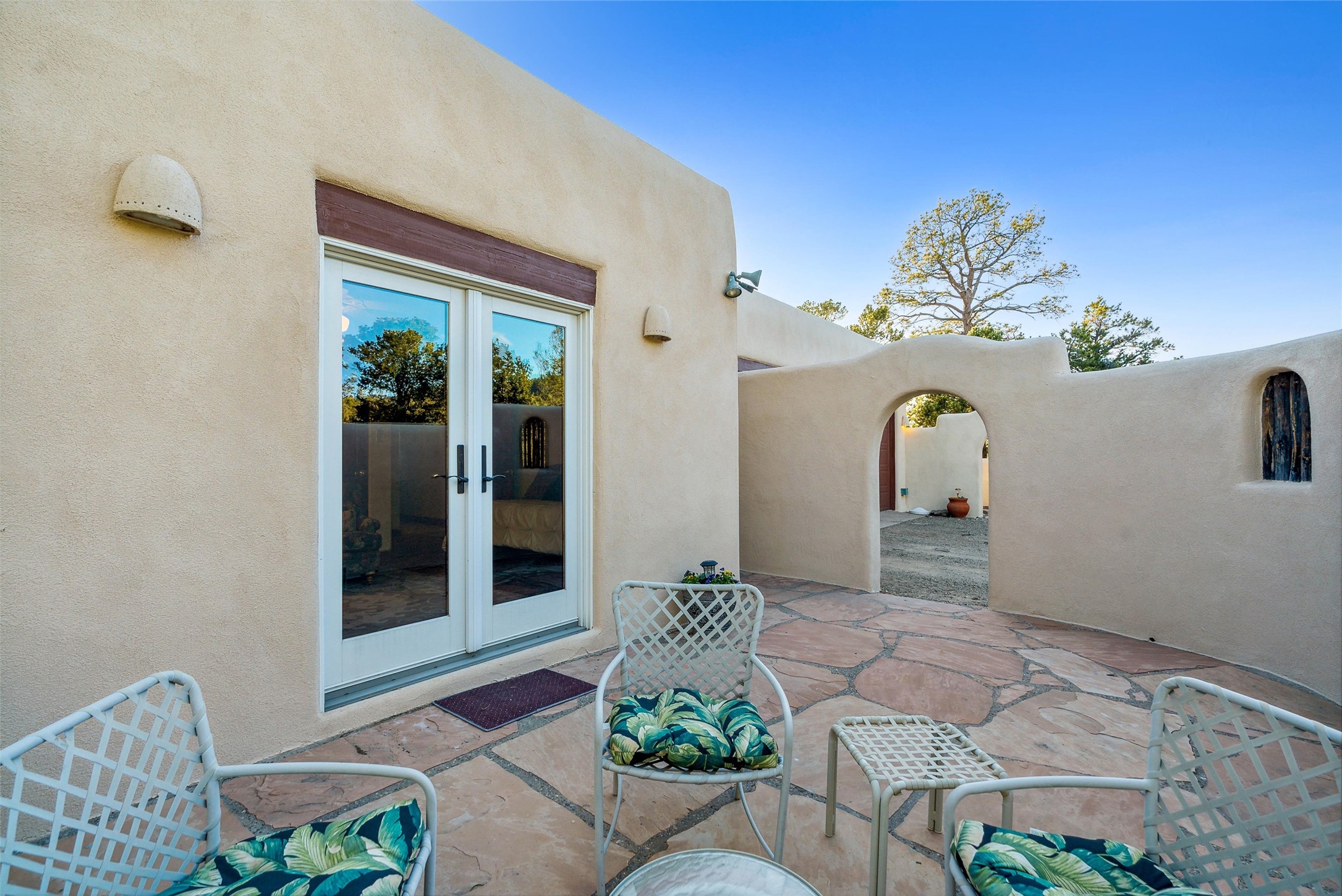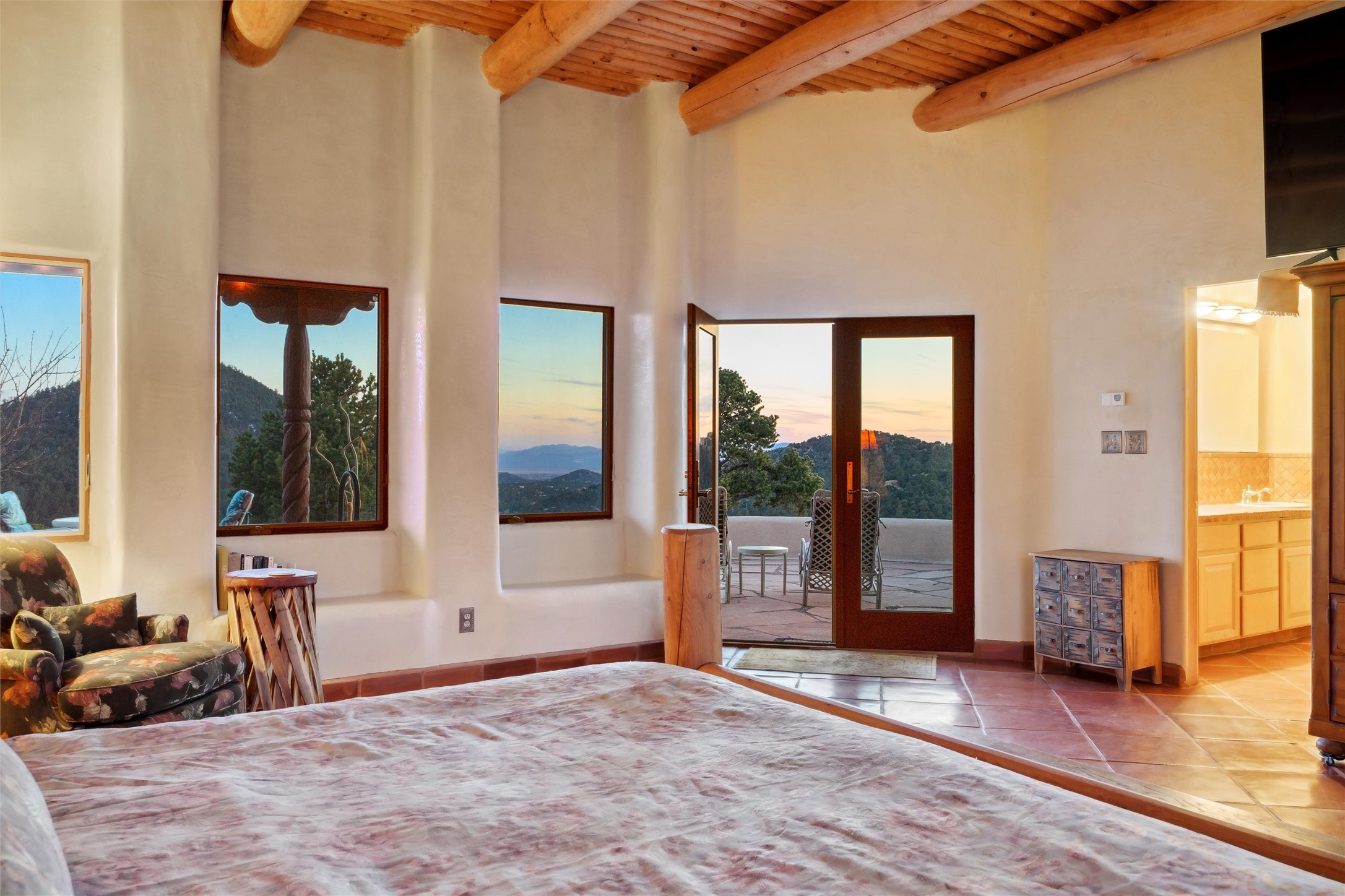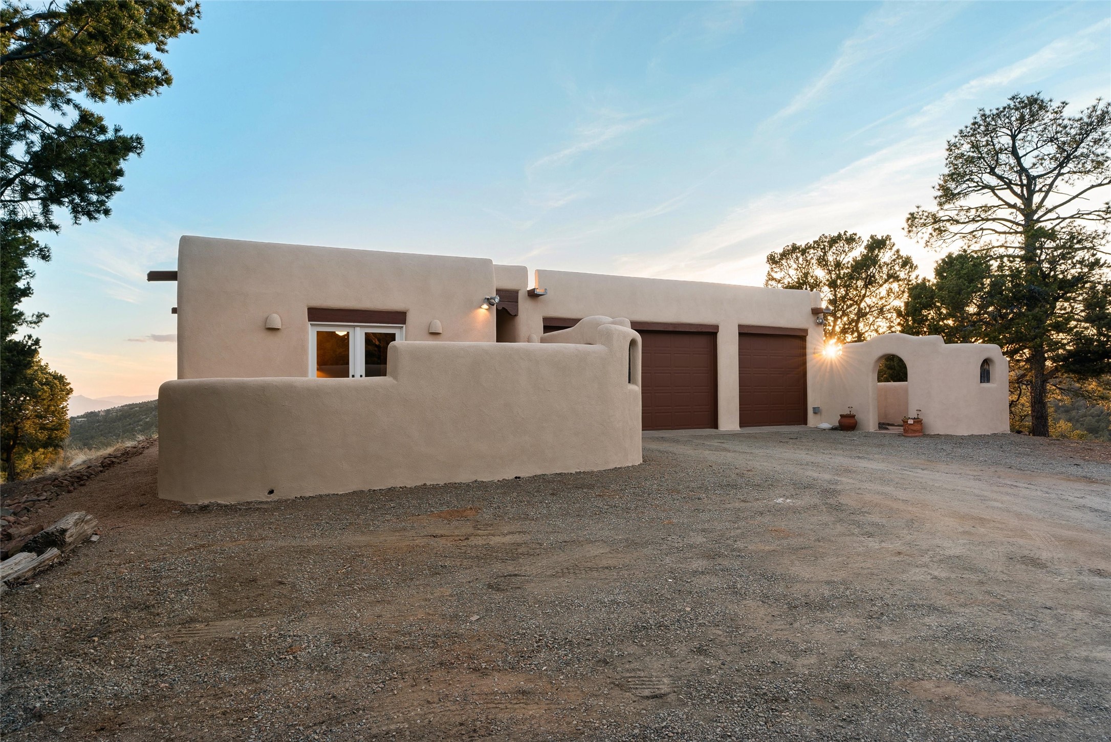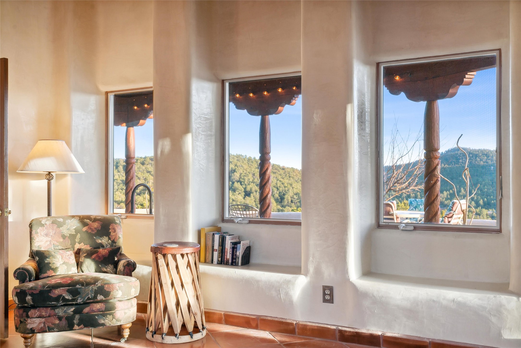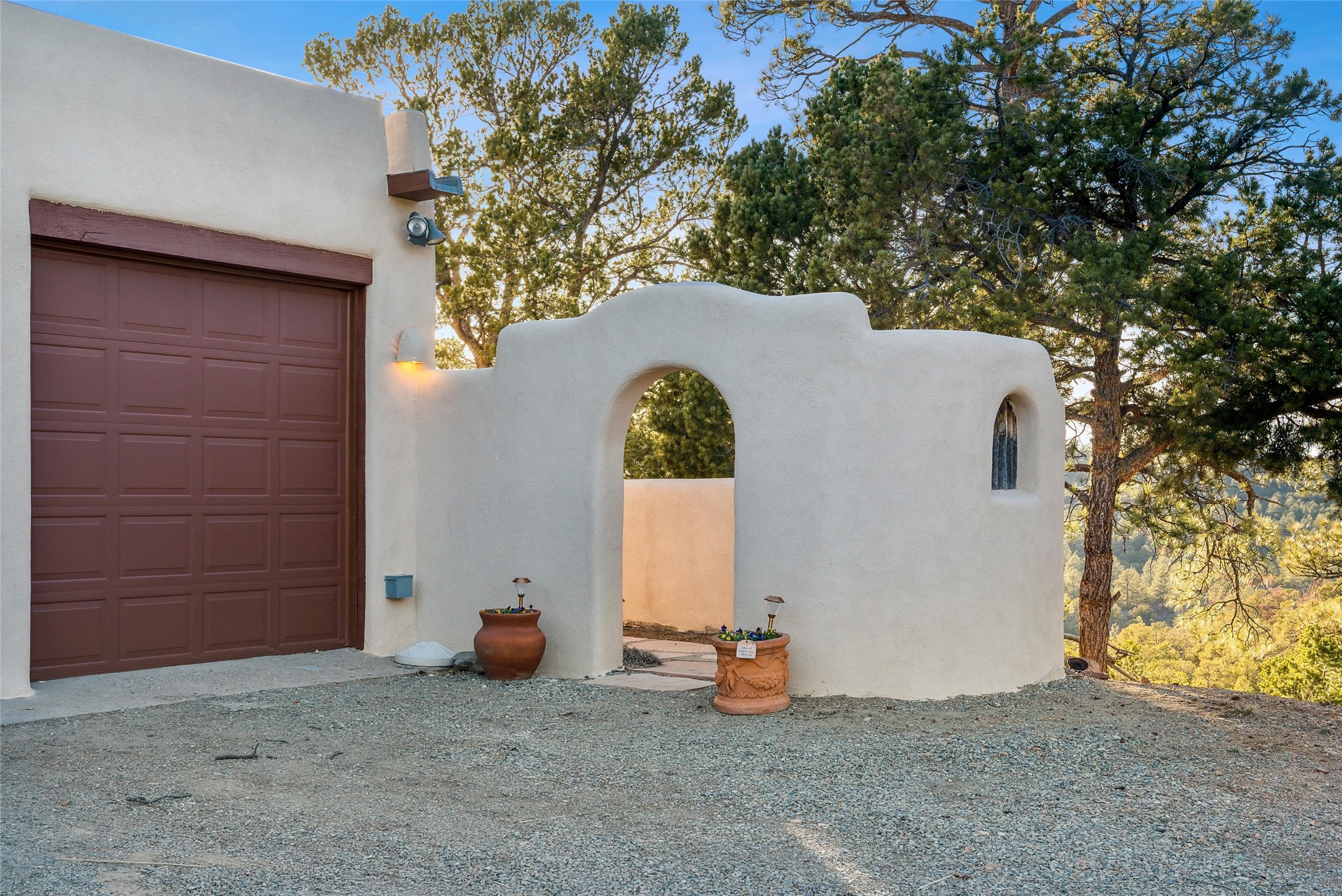 With Breathtaking Views, and Peace and Quiet inside and out, you may never want to leave your Mountain Paradise in this Old Santa Fe Trail neighborhood! As you step inside, you'll be greeted by a Wall of Windows beckoning you out to the Grand Patio that extends across the home. But wait! The Warm Glow of the Viga & Latilla ceilings, and the lavish, recently refinished Diamond Plaster walls, and Banco Seating encourage you to cocoon inside. Here, the open floor plan is perfect for entertaining guests, relaxing with family, or in the solitude of your retreat.The four Spacious Bedrooms present a host of possibilities. The Primary Suite is in its own wing, and features your personal Jetted Spa Tub that looks out onto Forever. The smart design anticipated the possibility of a Guest Wing or Attached Casita at the other side of the home. Here, two rooms share a bathroom. Yes, both could be bedrooms, or, add a kitchenette, small table, and sofa to the room currently featured as an office and it is Private Living Space. A Private Courtyard with a Separate Entrance off that side of the home is the perfect spot to enjoy morning coffee or unwind after a long day. Your guests, mom, or kids may never want to leave! In fact, you may want to build them a separate casita of their own, and plans were made for that too. This home is truly a masterpiece, with every detail carefully crafted to create a luxurious AND comfortable living space. Escape to Home. And if you do decide to venture off Mountain, it's just 10 minutes from two iconic Santa Fe restaurants, and a short drive to the Santa Fe Plaza!