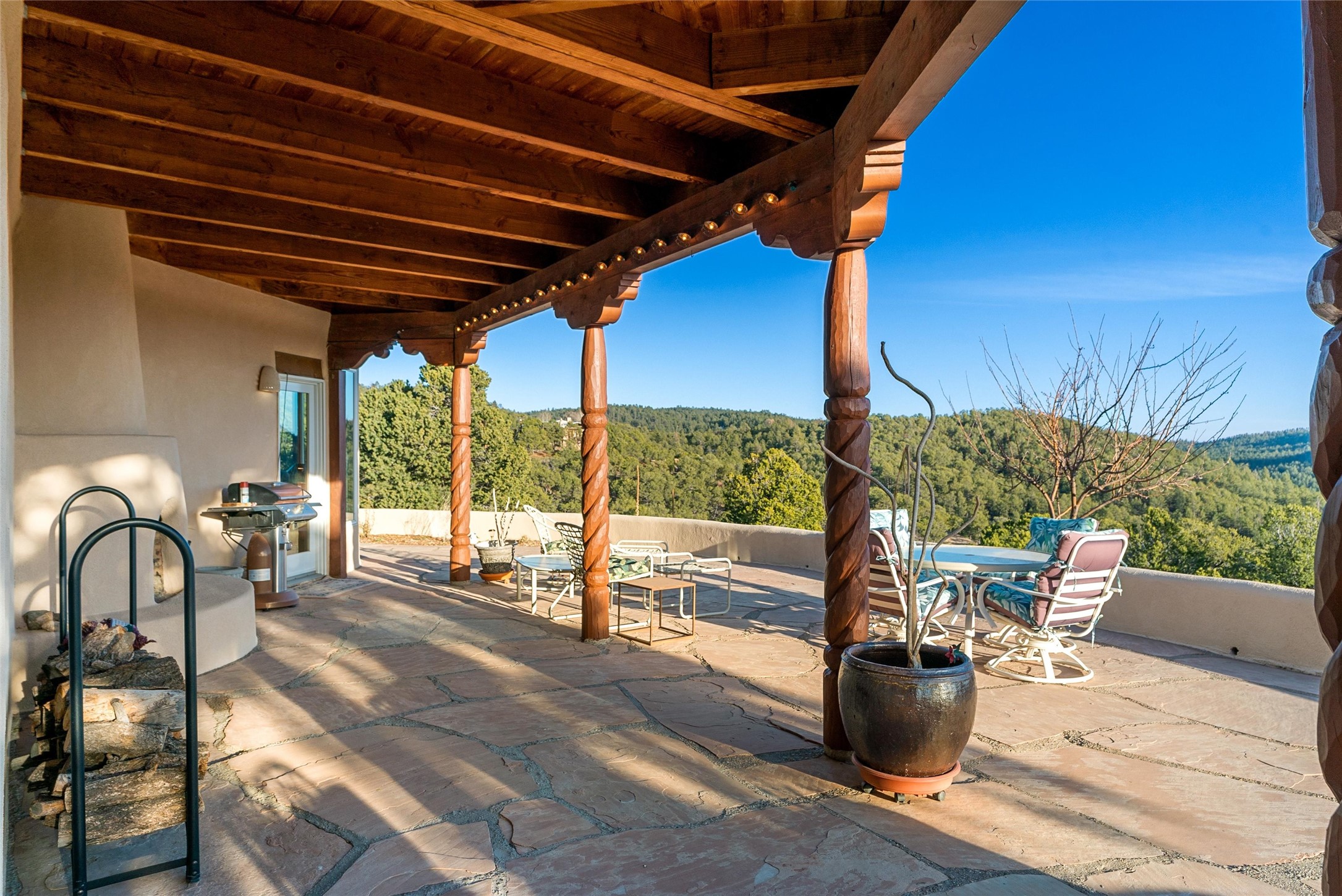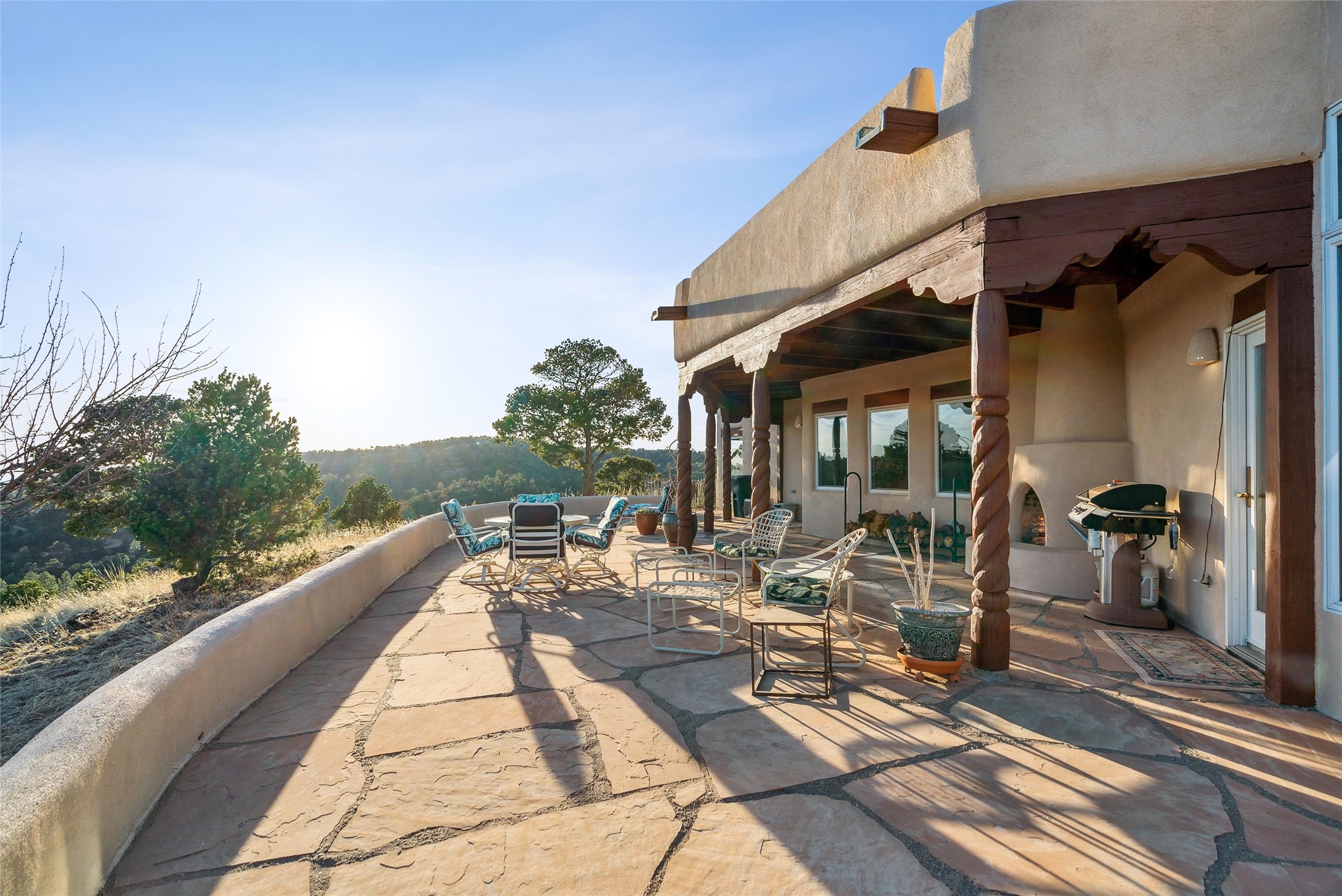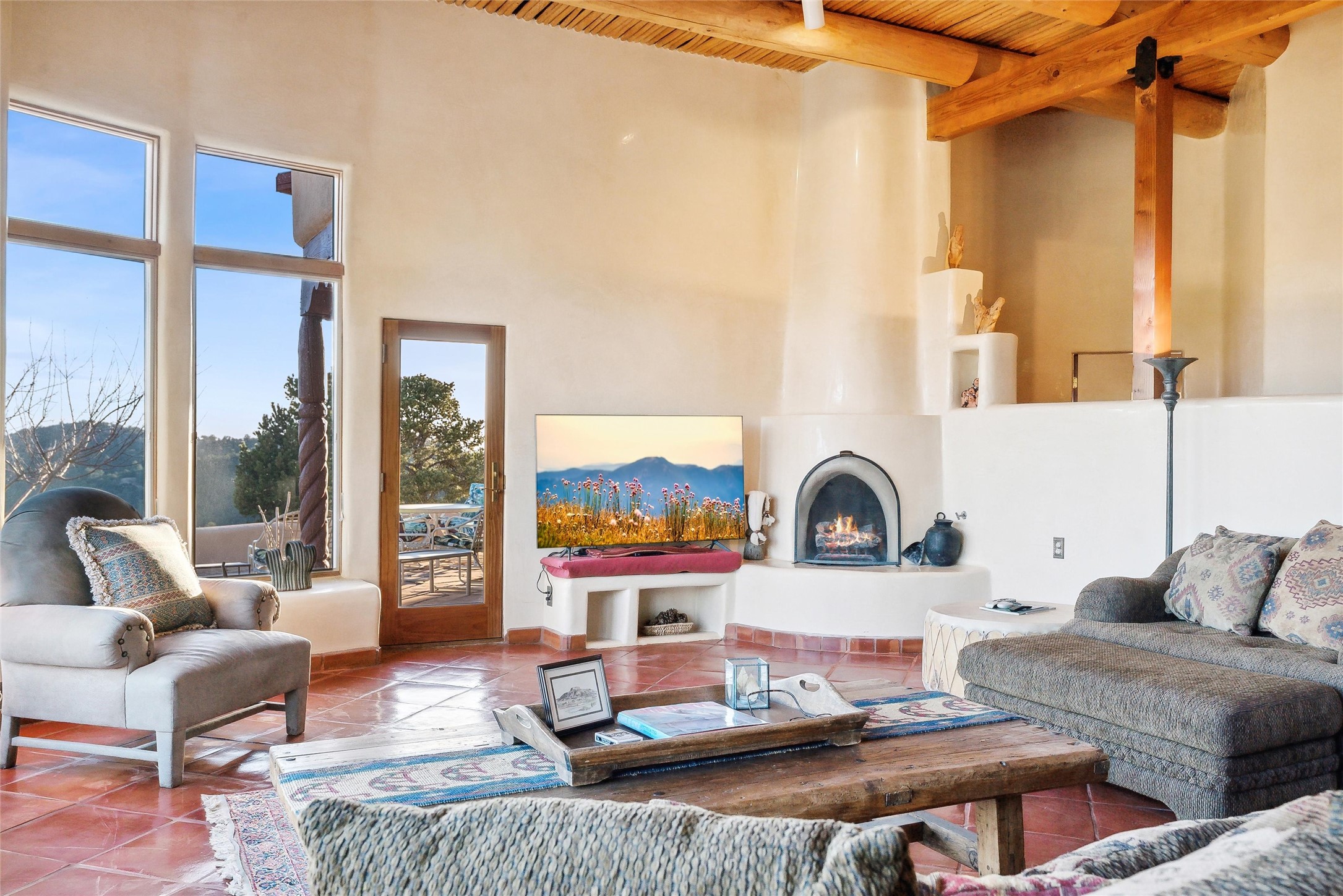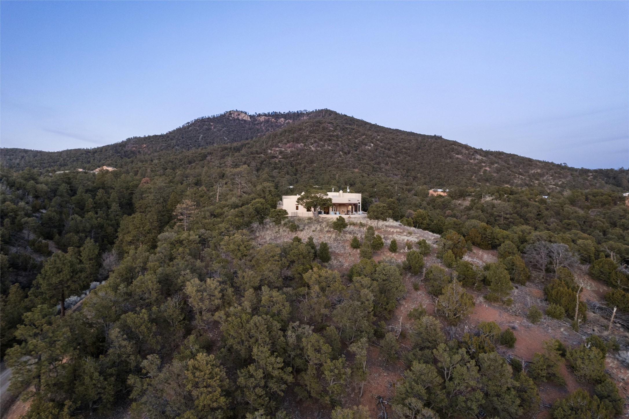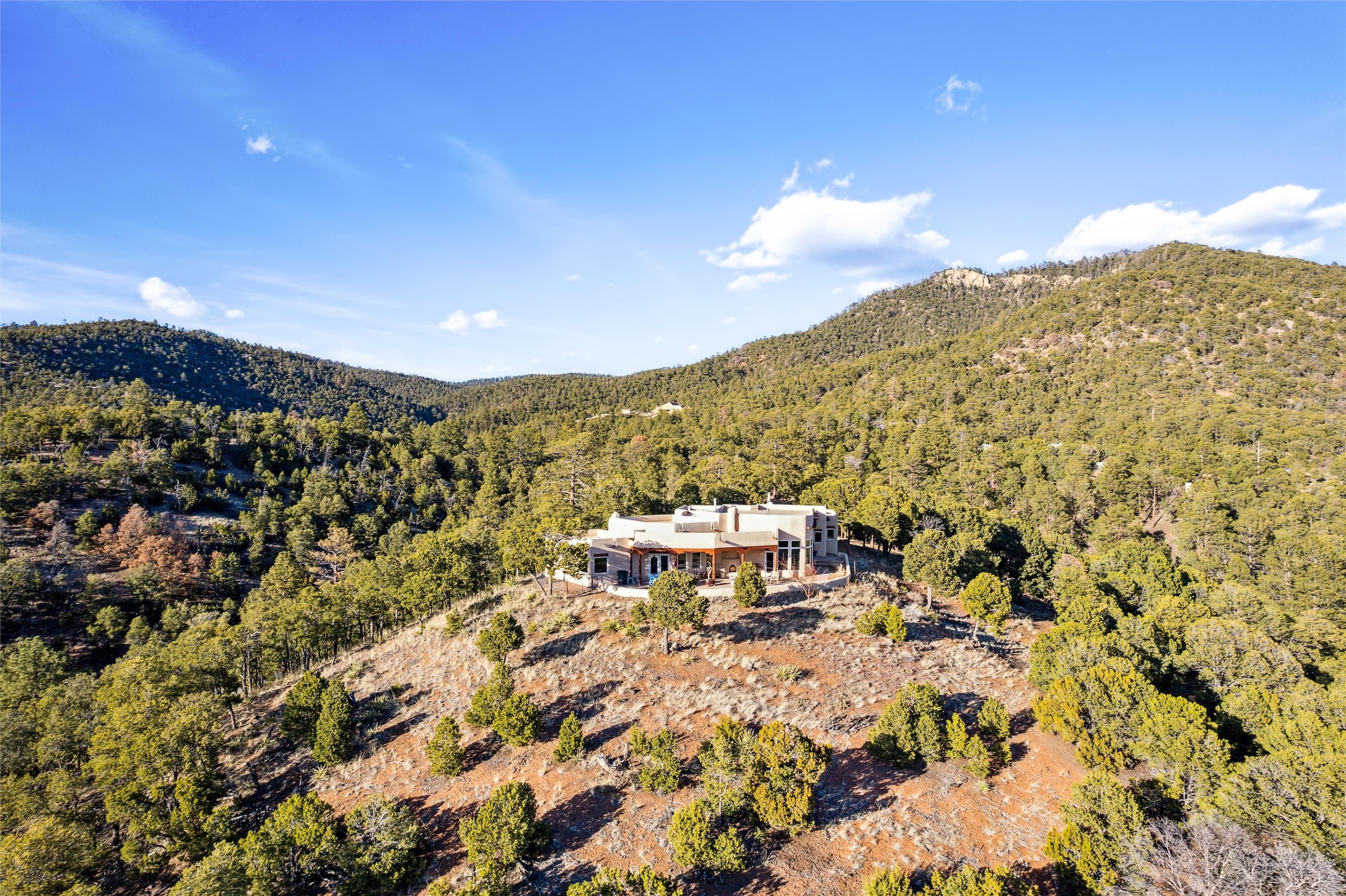 With Breathtaking Views, and Peace and Quiet inside and out, you may never want to leave your Mountain Paradise in this Old Santa Fe Trail neighborhood! As you step inside, you'll be greeted by a Wall of Windows beckoning you out to the Grand Patio that extends across the home. But wait! The Warm Glow of the Viga & Latilla ceilings, and the lavish, recently refinished Diamond Plaster walls, and Banco Seating encourage you to cocoon inside. Here, the open floor plan is perfect for entertaining guests, relaxing with family, or in the solitude of your retreat.The four Spacious Bedrooms present a host of possibilities. The Primary Suite is in its own wing, and features your personal Jetted Spa Tub that looks out onto Forever. The smart design anticipated the possibility of a Guest Wing or Attached Casita at the other side of the home. Here, two rooms share a bathroom. Yes, both could be bedrooms, or, add a kitchenette, small table, and sofa to the room currently featured as an office and it is Private Living Space. A Private Courtyard with a Separate Entrance off that side of the home is the perfect spot to enjoy morning coffee or unwind after a long day. Your guests, mom, or kids may never want to leave! In fact, you may want to build them a separate casita of their own, and plans were made for that too. This home is truly a masterpiece, with every detail carefully crafted to create a luxurious AND comfortable living space. Escape to Home. And if you do decide to venture off Mountain, it's just 10 minutes from two iconic Santa Fe restaurants, and a short drive to the Santa Fe Plaza!