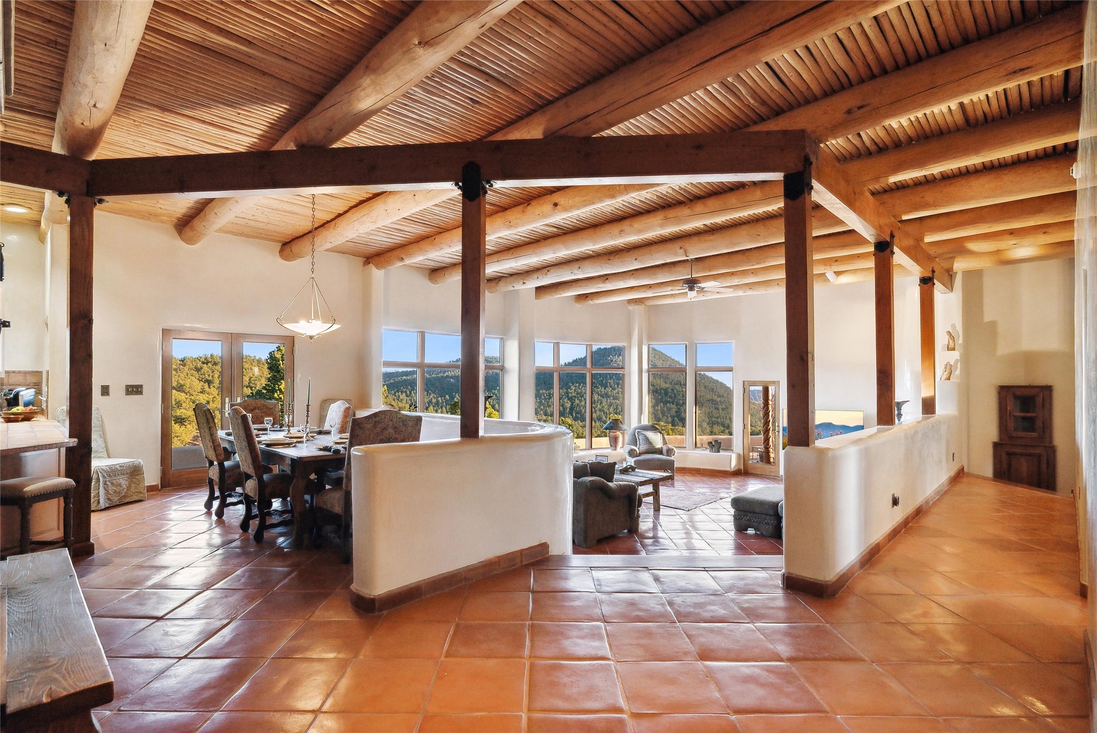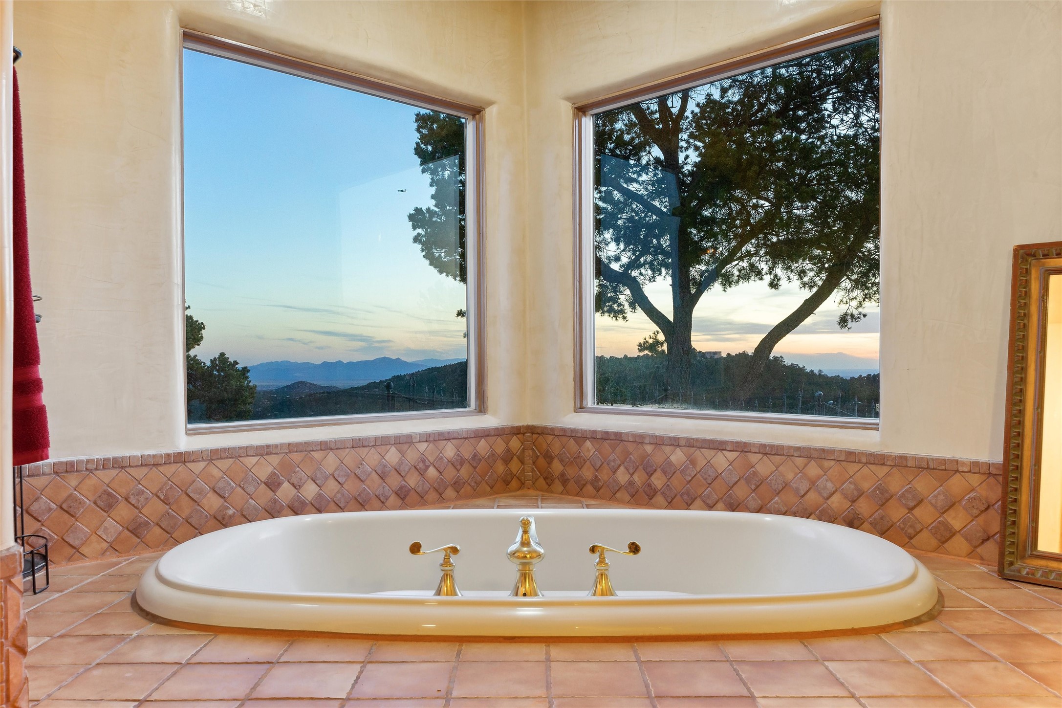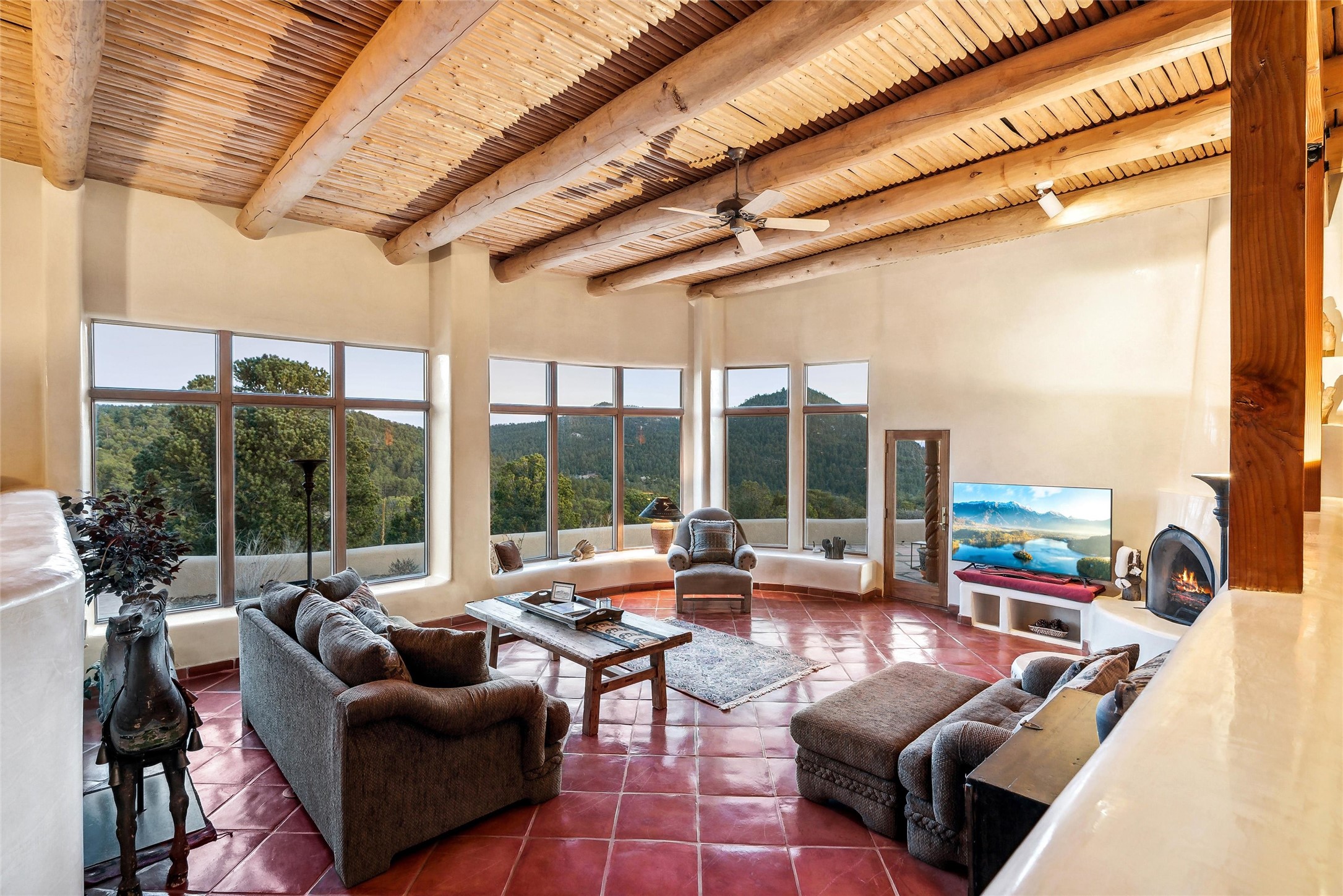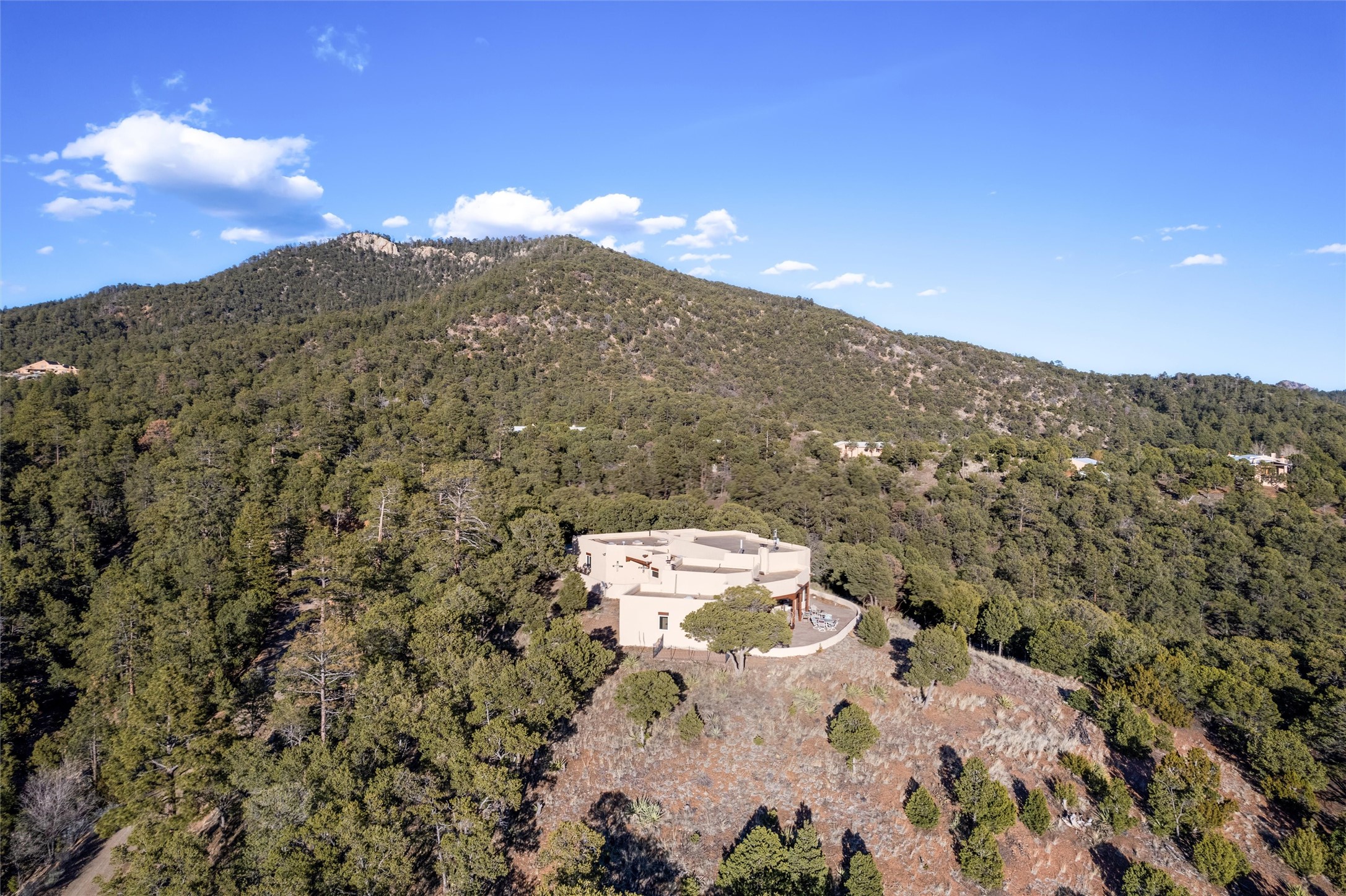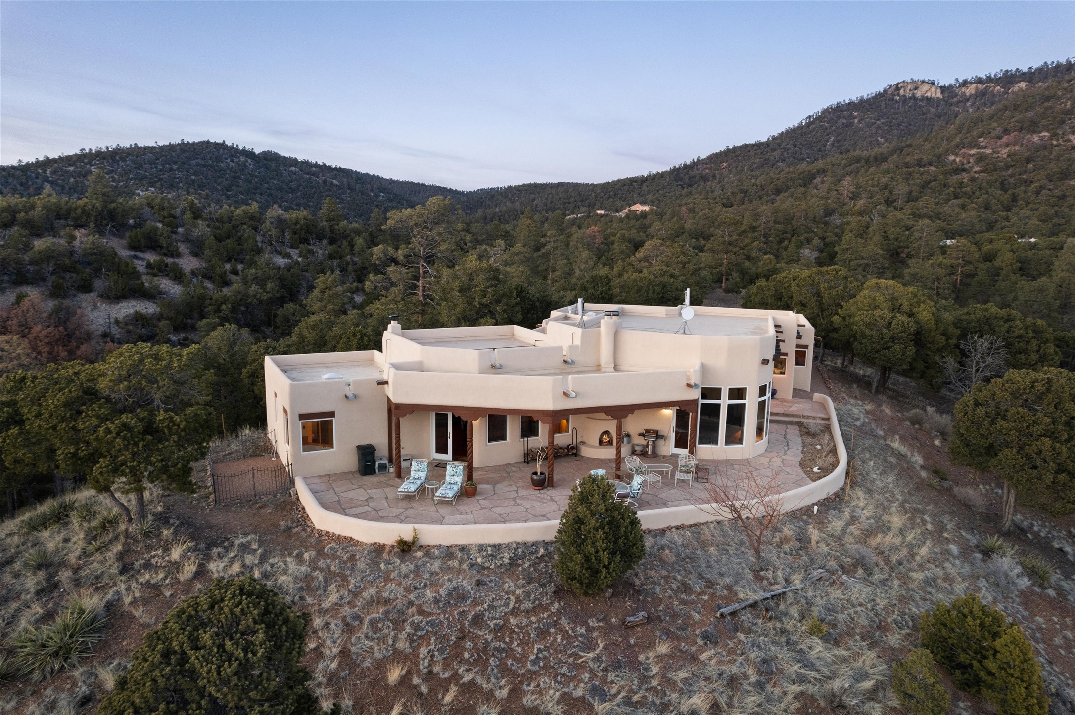 With Breathtaking Views, and Peace and Quiet inside and out, you may never want to leave your Mountain Paradise in this Old Santa Fe Trail neighborhood! As you step inside, you'll be greeted by a Wall of Windows beckoning you out to the Grand Patio that extends across the home. But wait! The Warm Glow of the Viga & Latilla ceilings, and the lavish, recently refinished Diamond Plaster walls, and Banco Seating encourage you to cocoon inside. Here, the open floor plan is perfect for entertaining guests, relaxing with family, or in the solitude of your retreat.The four Spacious Bedrooms present a host of possibilities. The Primary Suite is in its own wing, and features your personal Jetted Spa Tub that looks out onto Forever. The smart design anticipated the possibility of a Guest Wing or Attached Casita at the other side of the home. Here, two rooms share a bathroom. Yes, both could be bedrooms, or, add a kitchenette, small table, and sofa to the room currently featured as an office and it is Private Living Space. A Private Courtyard with a Separate Entrance off that side of the home is the perfect spot to enjoy morning coffee or unwind after a long day. Your guests, mom, or kids may never want to leave! In fact, you may want to build them a separate casita of their own, and plans were made for that too. This home is truly a masterpiece, with every detail carefully crafted to create a luxurious AND comfortable living space. Escape to Home. And if you do decide to venture off Mountain, it's just 10 minutes from two iconic Santa Fe restaurants, and a short drive to the Santa Fe Plaza!