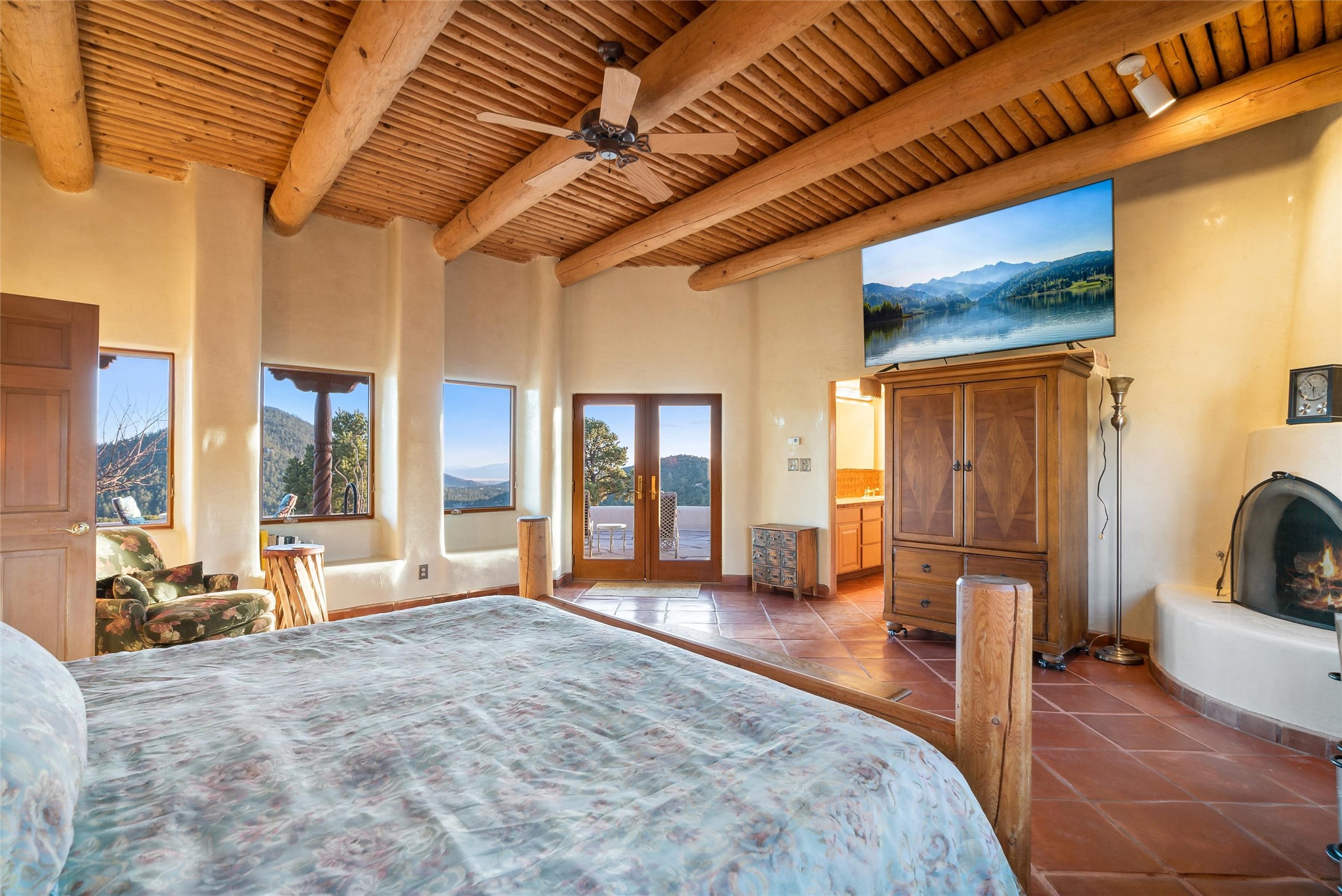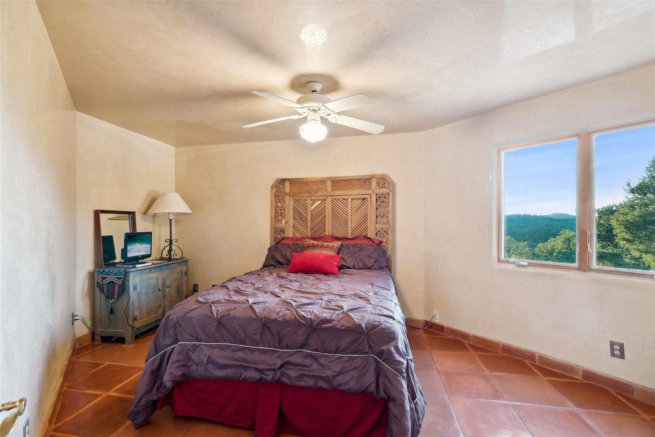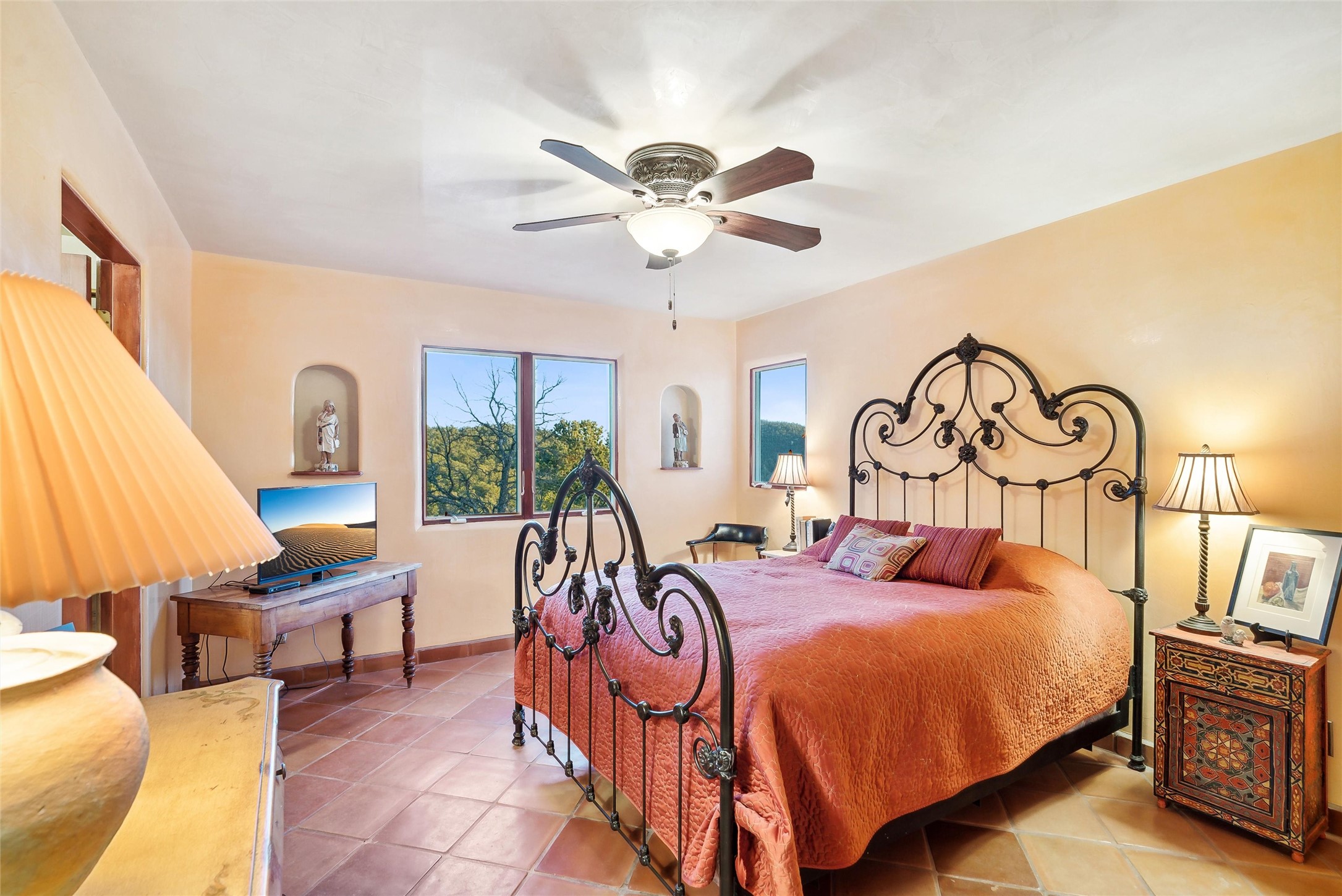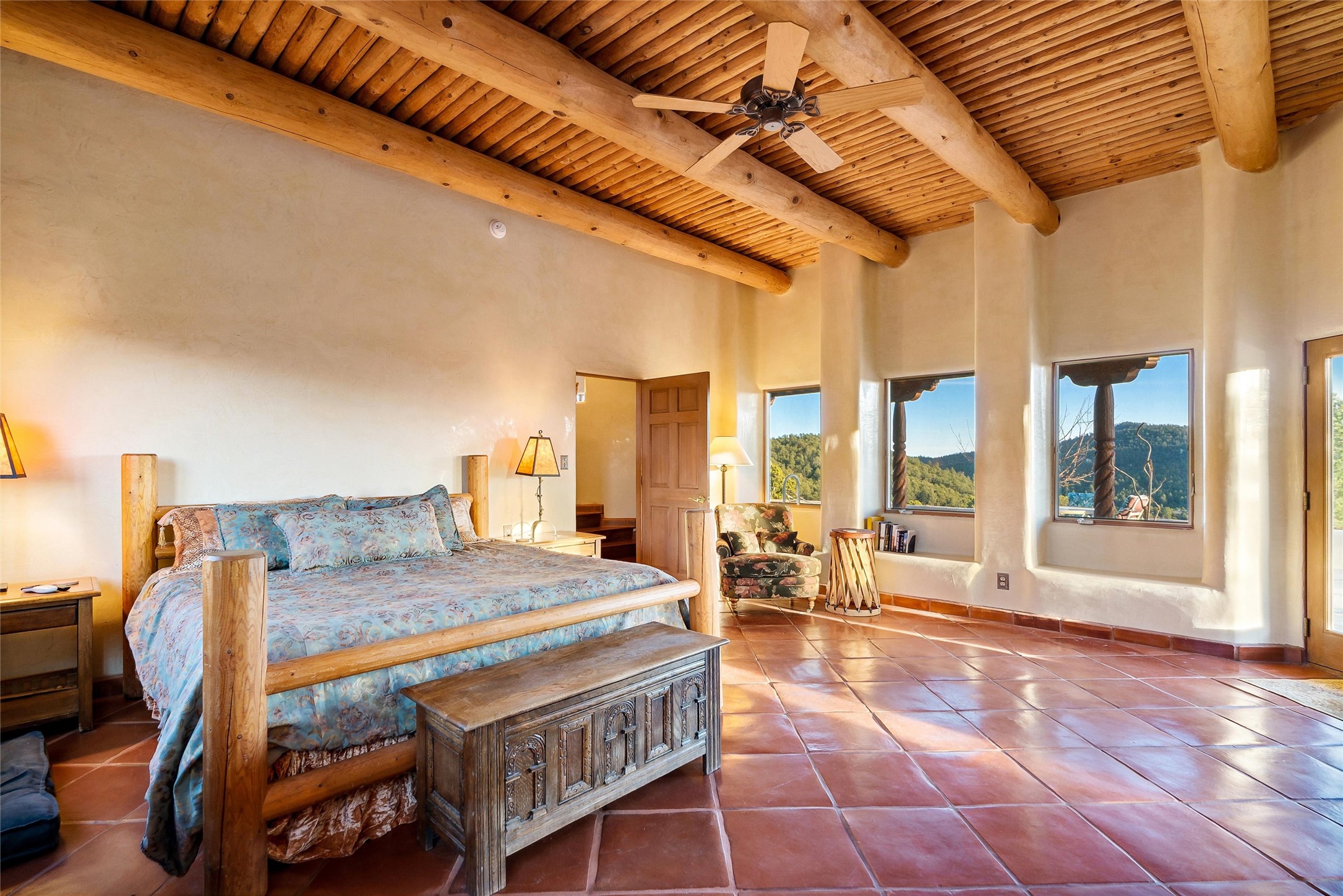 With Breathtaking Views, and Peace and Quiet inside and out, you may never want to leave your Mountain Paradise in this Old Santa Fe Trail neighborhood! As you step inside, you'll be greeted by a Wall of Windows beckoning you out to the Grand Patio that extends across the home. But wait! The Warm Glow of the Viga & Latilla ceilings, and the lavish, recently refinished Diamond Plaster walls, and Banco Seating encourage you to cocoon inside. Here, the open floor plan is perfect for entertaining guests, relaxing with family, or in the solitude of your retreat.The four Spacious Bedrooms present a host of possibilities. The Primary Suite is in its own wing, and features your personal Jetted Spa Tub that looks out onto Forever. The smart design anticipated the possibility of a Guest Wing or Attached Casita at the other side of the home. Here, two rooms share a bathroom. Yes, both could be bedrooms, or, add a kitchenette, small table, and sofa to the room currently featured as an office and it is Private Living Space. A Private Courtyard with a Separate Entrance off that side of the home is the perfect spot to enjoy morning coffee or unwind after a long day. Your guests, mom, or kids may never want to leave! In fact, you may want to build them a separate casita of their own, and plans were made for that too. This home is truly a masterpiece, with every detail carefully crafted to create a luxurious AND comfortable living space. Escape to Home. And if you do decide to venture off Mountain, it's just 10 minutes from two iconic Santa Fe restaurants, and a short drive to the Santa Fe Plaza!