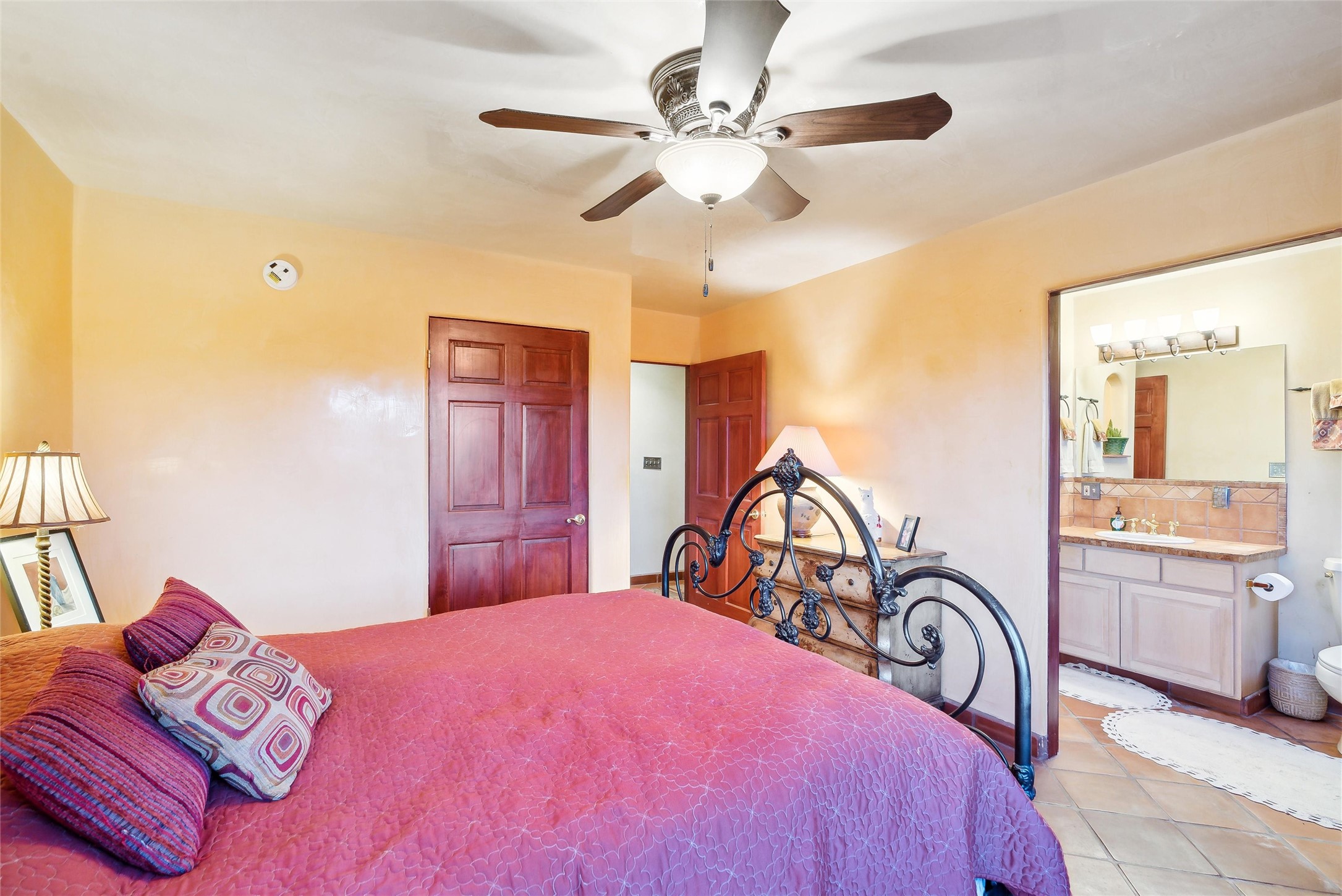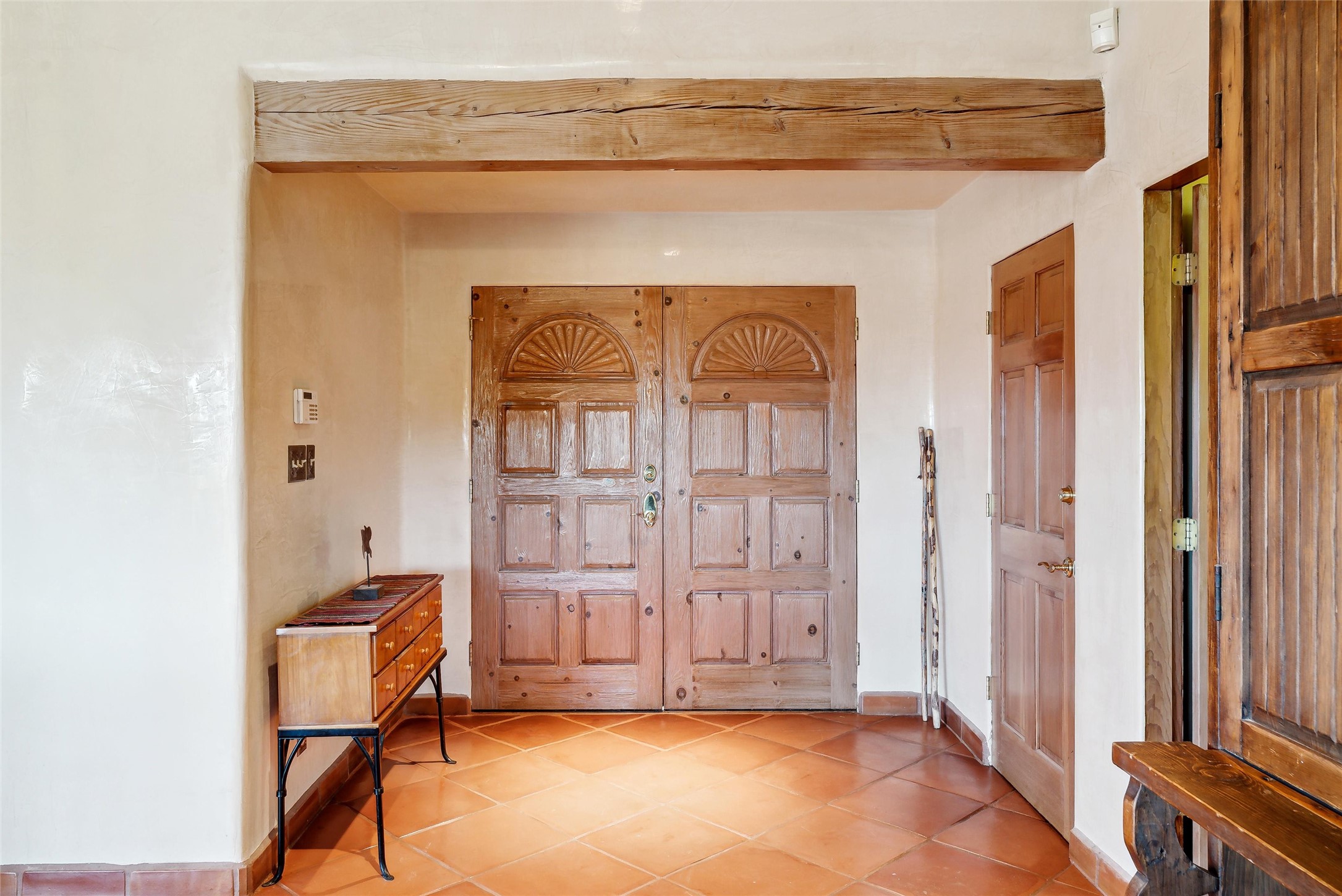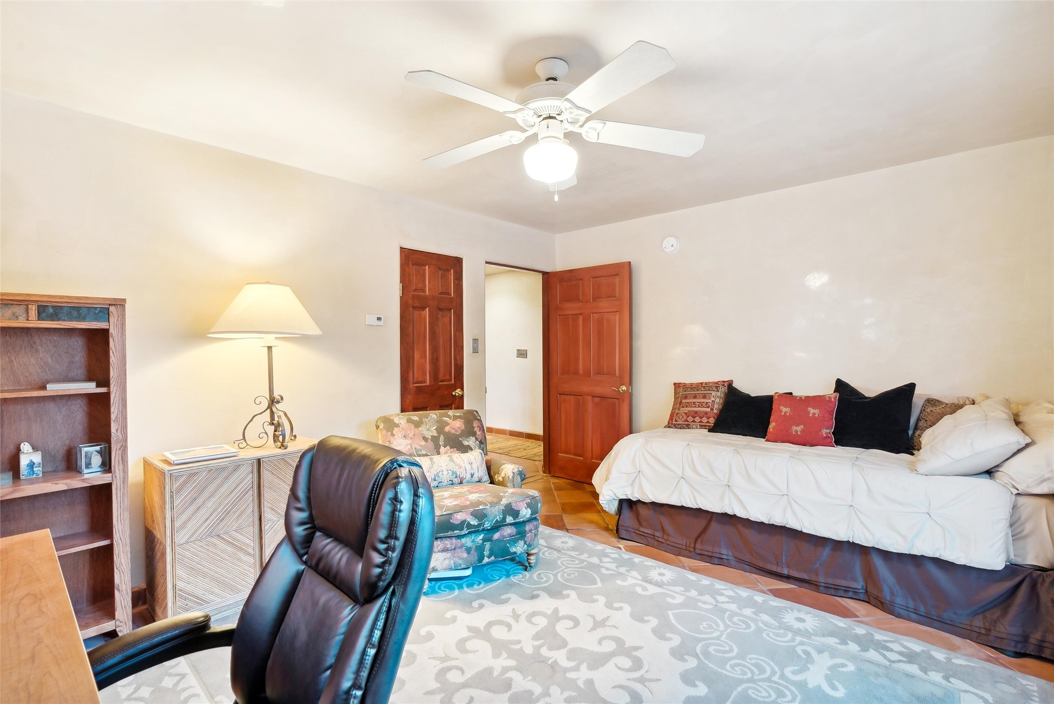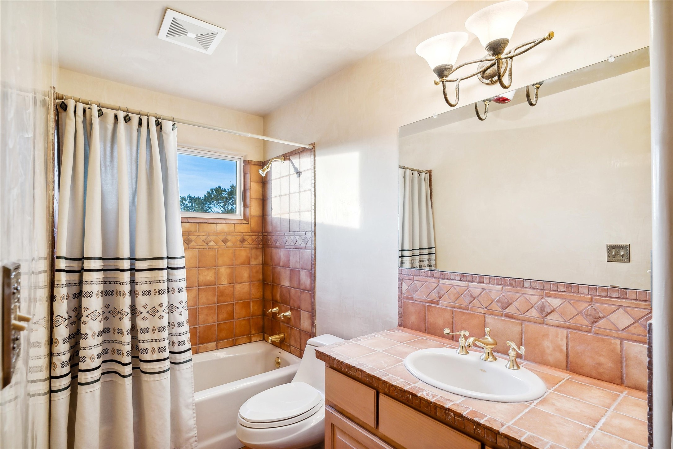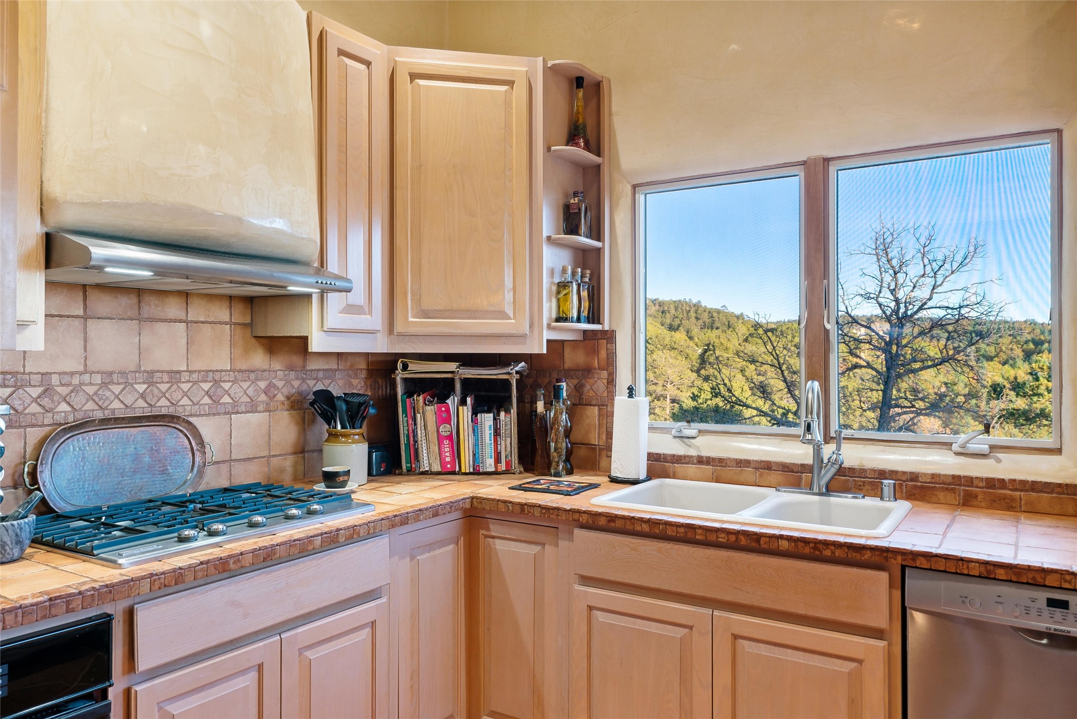 With Breathtaking Views, and Peace and Quiet inside and out, you may never want to leave your Mountain Paradise in this Old Santa Fe Trail neighborhood! As you step inside, you'll be greeted by a Wall of Windows beckoning you out to the Grand Patio that extends across the home. But wait! The Warm Glow of the Viga & Latilla ceilings, and the lavish, recently refinished Diamond Plaster walls, and Banco Seating encourage you to cocoon inside. Here, the open floor plan is perfect for entertaining guests, relaxing with family, or in the solitude of your retreat.The four Spacious Bedrooms present a host of possibilities. The Primary Suite is in its own wing, and features your personal Jetted Spa Tub that looks out onto Forever. The smart design anticipated the possibility of a Guest Wing or Attached Casita at the other side of the home. Here, two rooms share a bathroom. Yes, both could be bedrooms, or, add a kitchenette, small table, and sofa to the room currently featured as an office and it is Private Living Space. A Private Courtyard with a Separate Entrance off that side of the home is the perfect spot to enjoy morning coffee or unwind after a long day. Your guests, mom, or kids may never want to leave! In fact, you may want to build them a separate casita of their own, and plans were made for that too. This home is truly a masterpiece, with every detail carefully crafted to create a luxurious AND comfortable living space. Escape to Home. And if you do decide to venture off Mountain, it's just 10 minutes from two iconic Santa Fe restaurants, and a short drive to the Santa Fe Plaza!