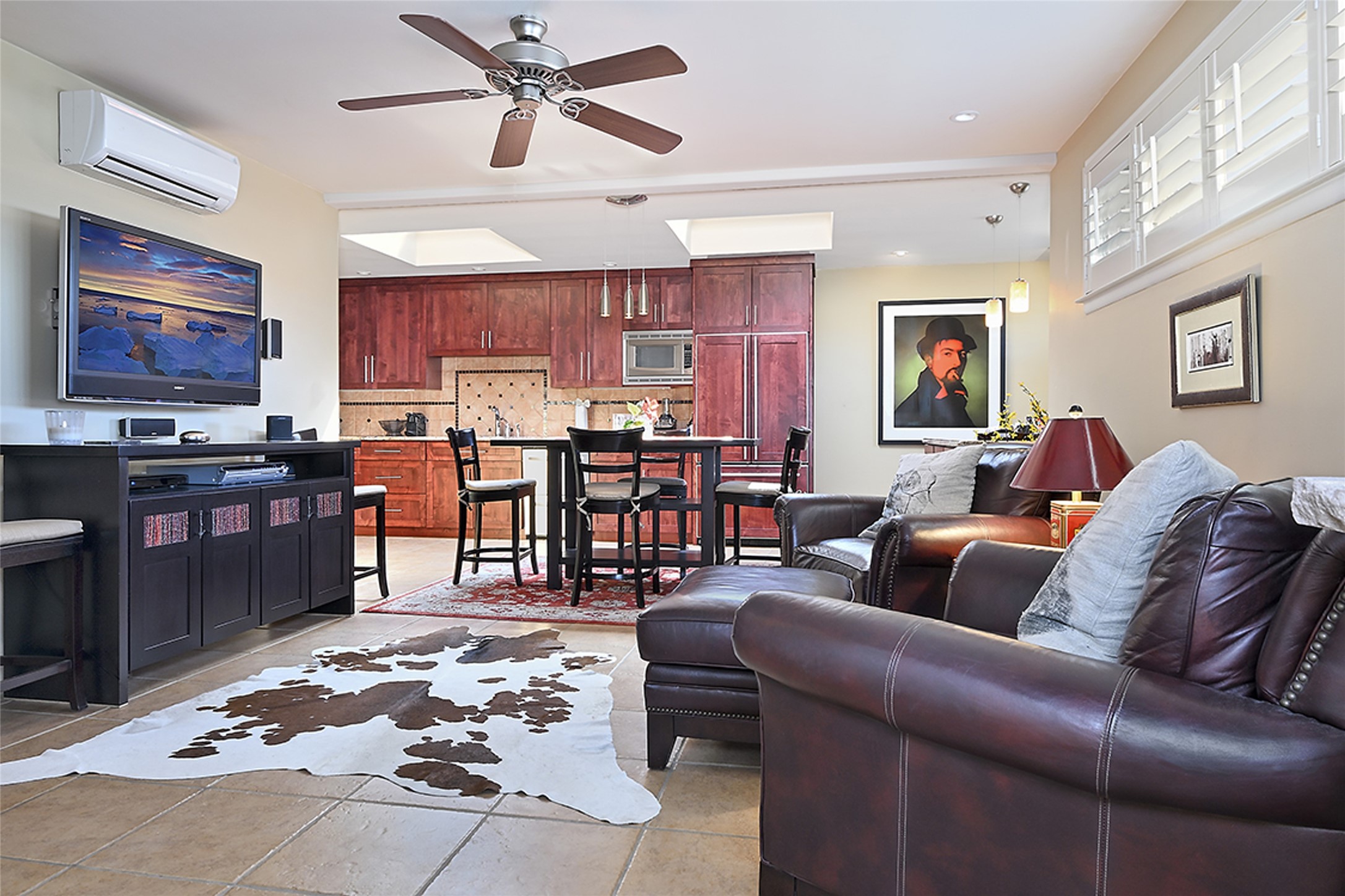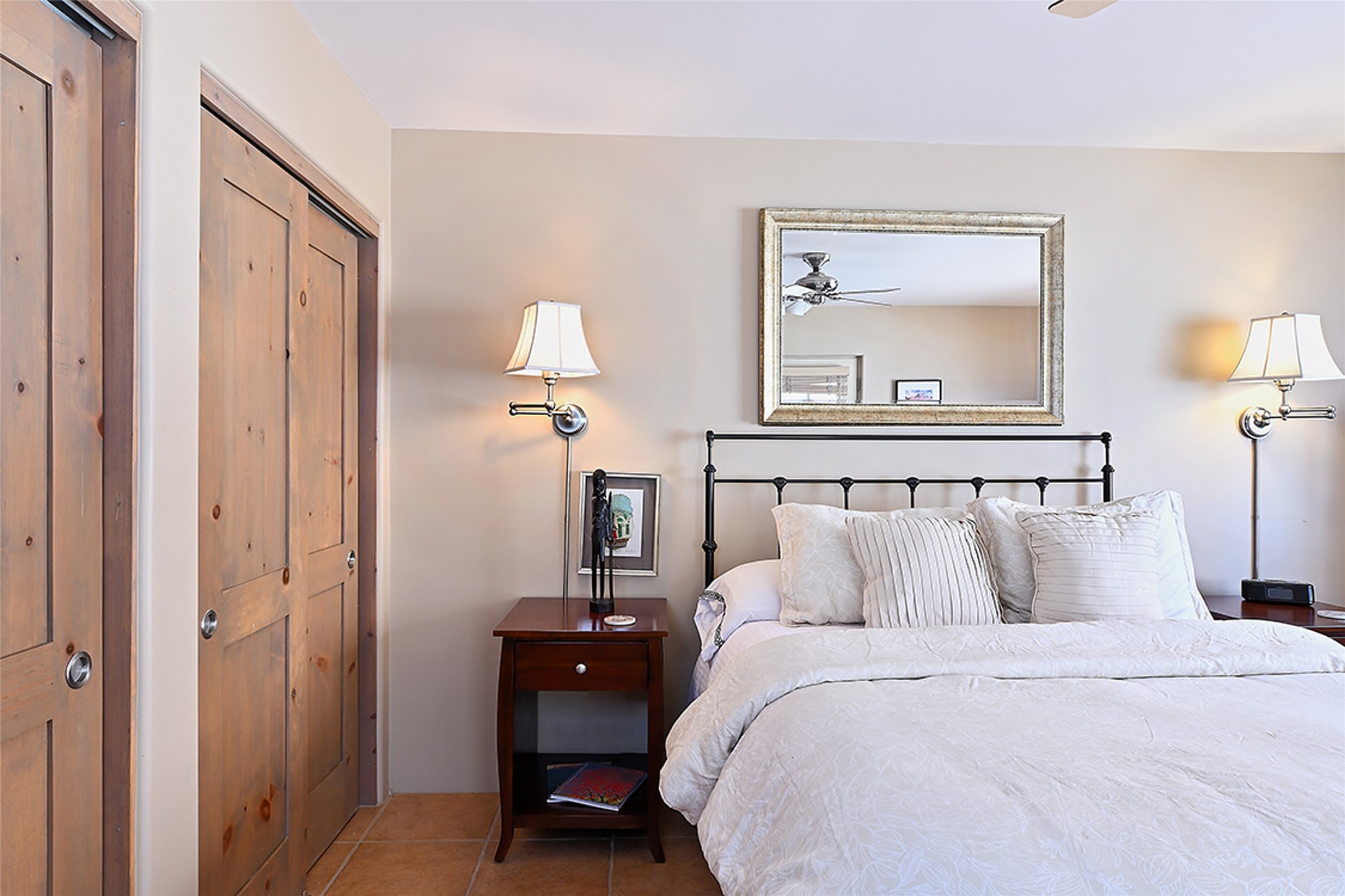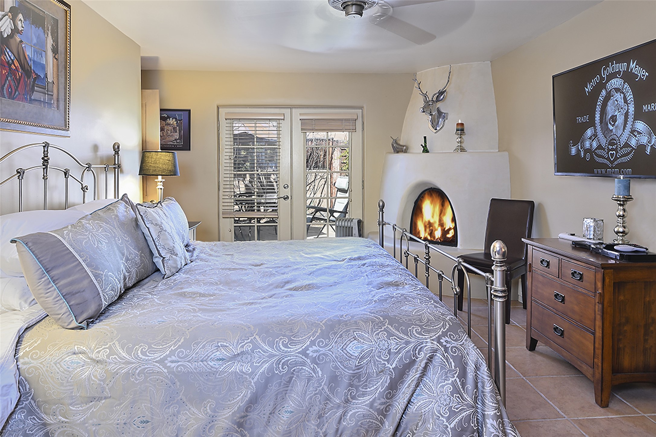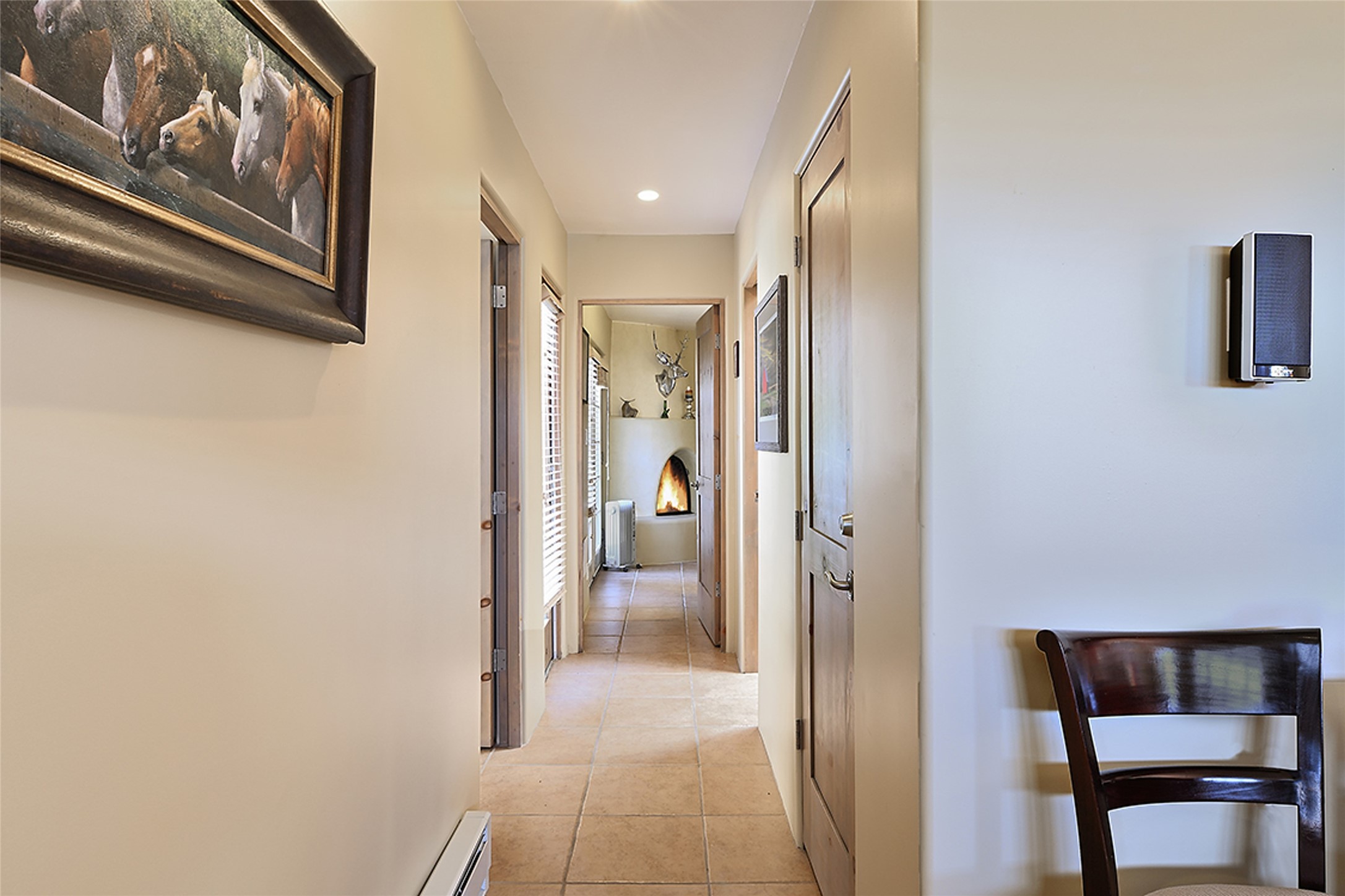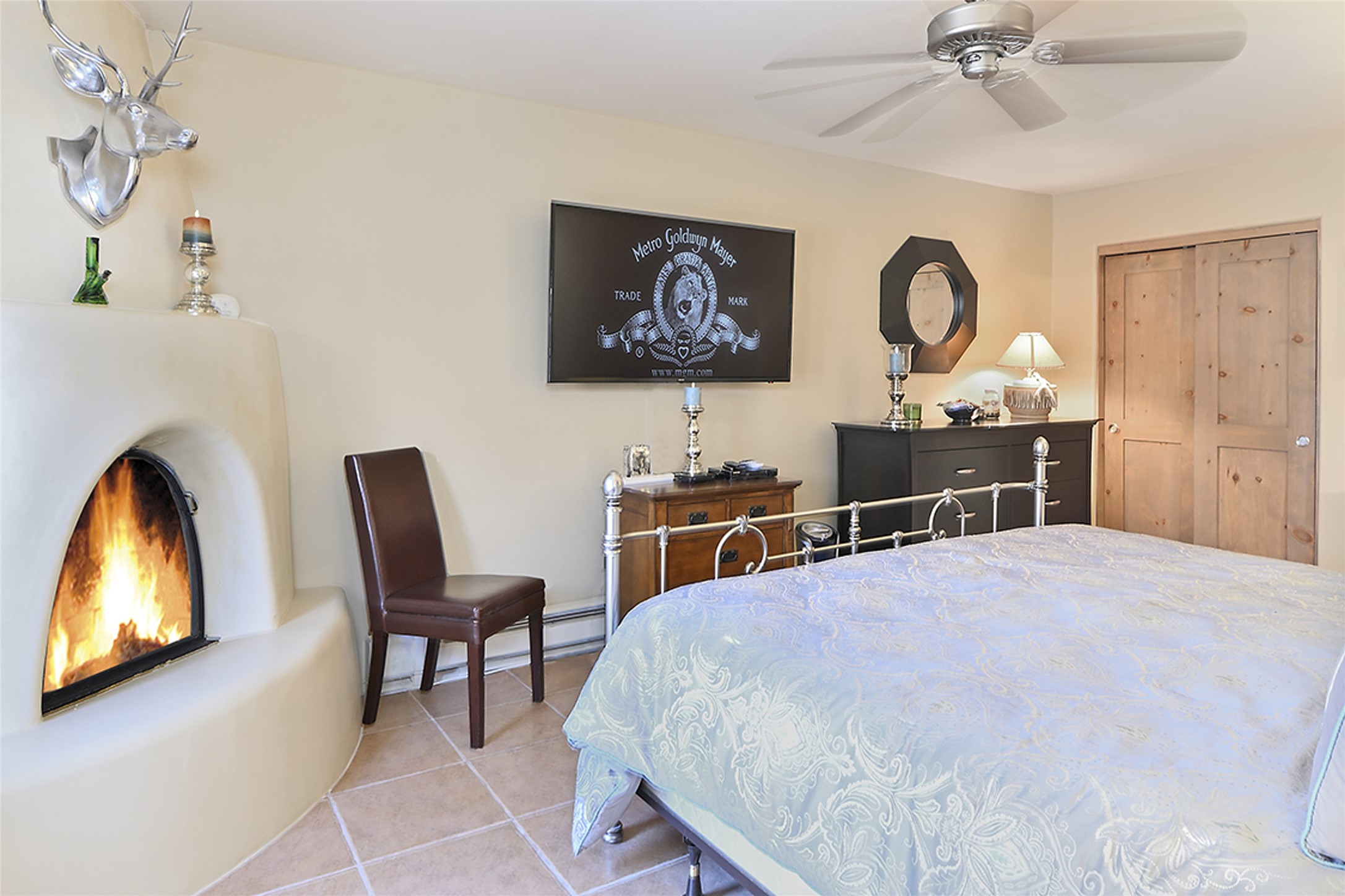 Attractive 2 bedroom 2 bath single level townhome in convenient location. Open concept living, dining and kitchen. Updated kitchen is appointed with stainless-steel appliances, granite countertops and skylight. Owner's bedroom has a corner kiva fireplace for extra warmth on cold, snowy nights. Guest bedroom offers flex space as an office or studio. Both bedrooms open to a lovely, private, landscaped and gated patio, which expands living space outside. 2-car garage. Minutes to the historic Santa Fe Plaza, Ft. Marcy Park, and Canyon Road.