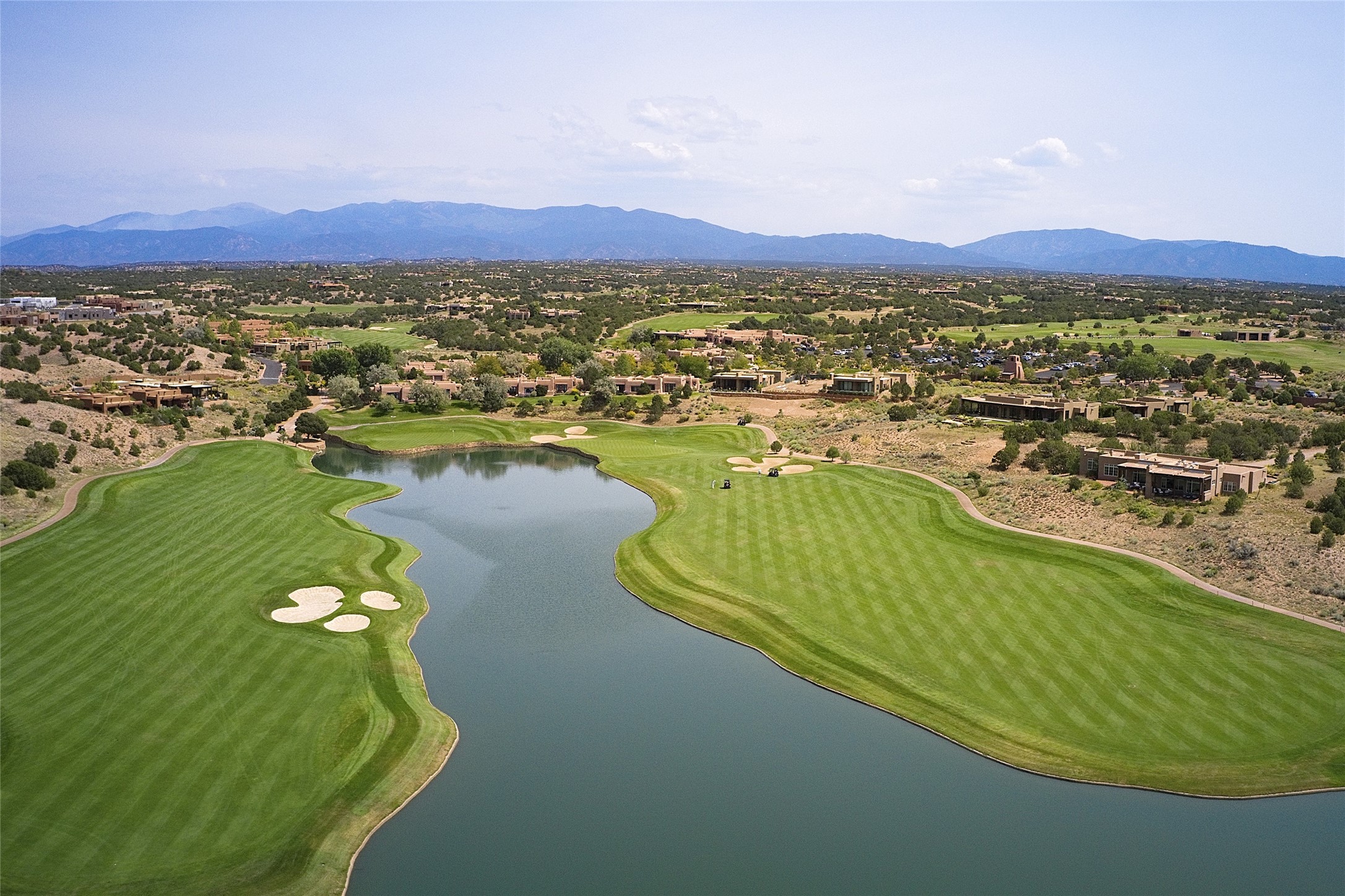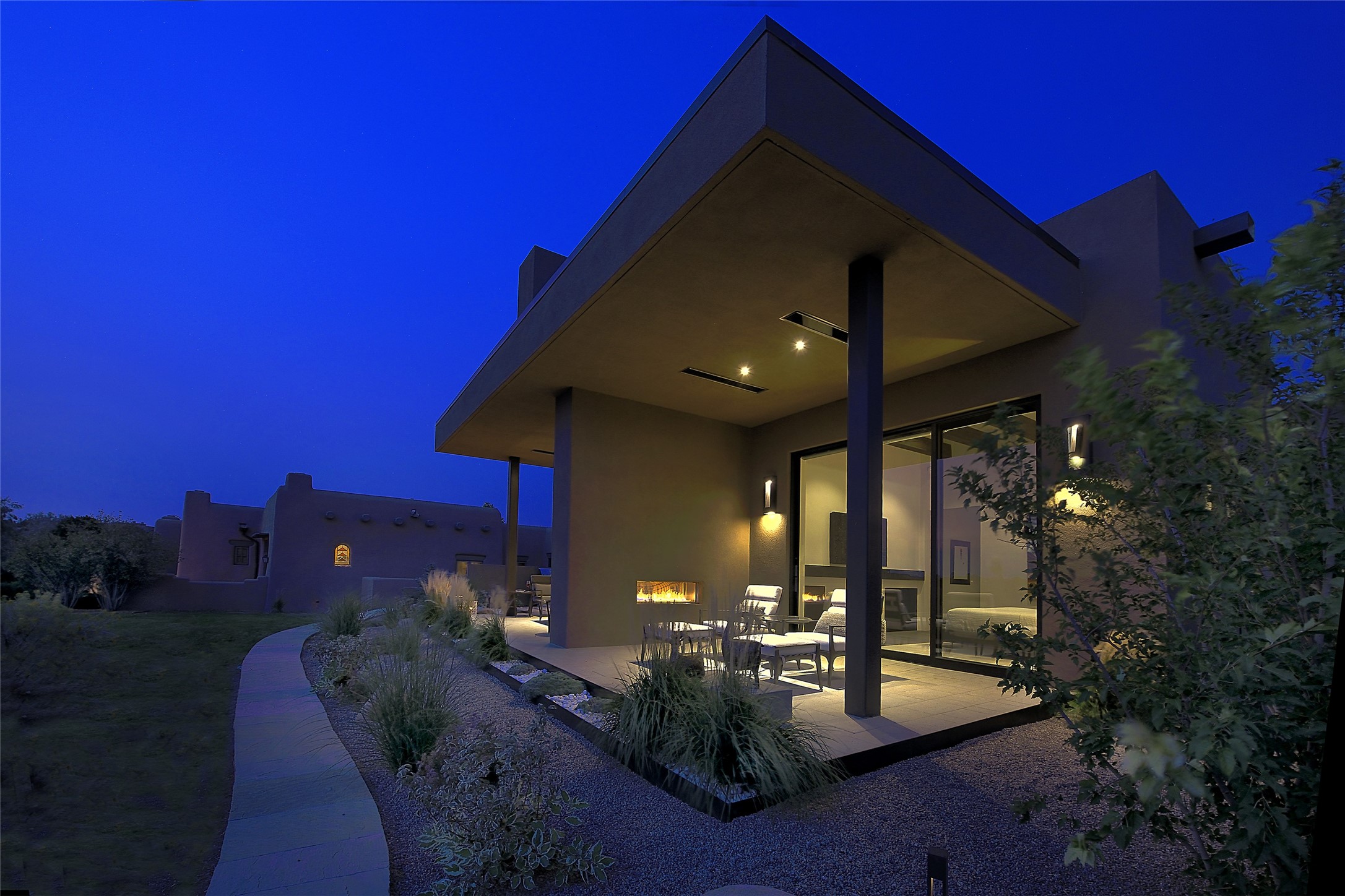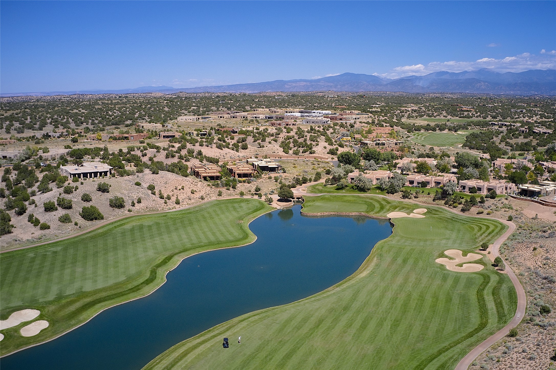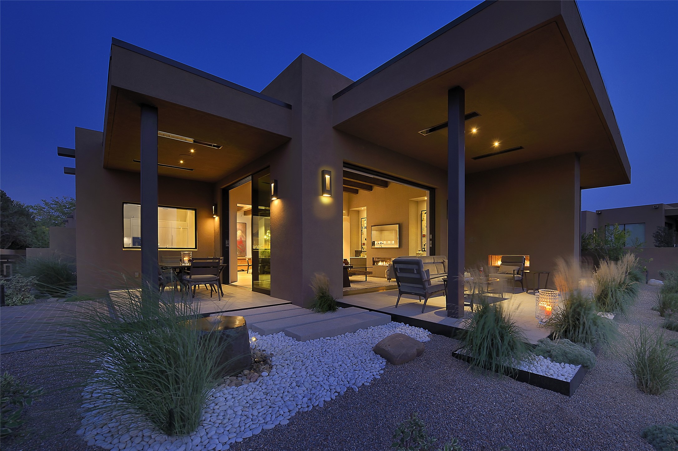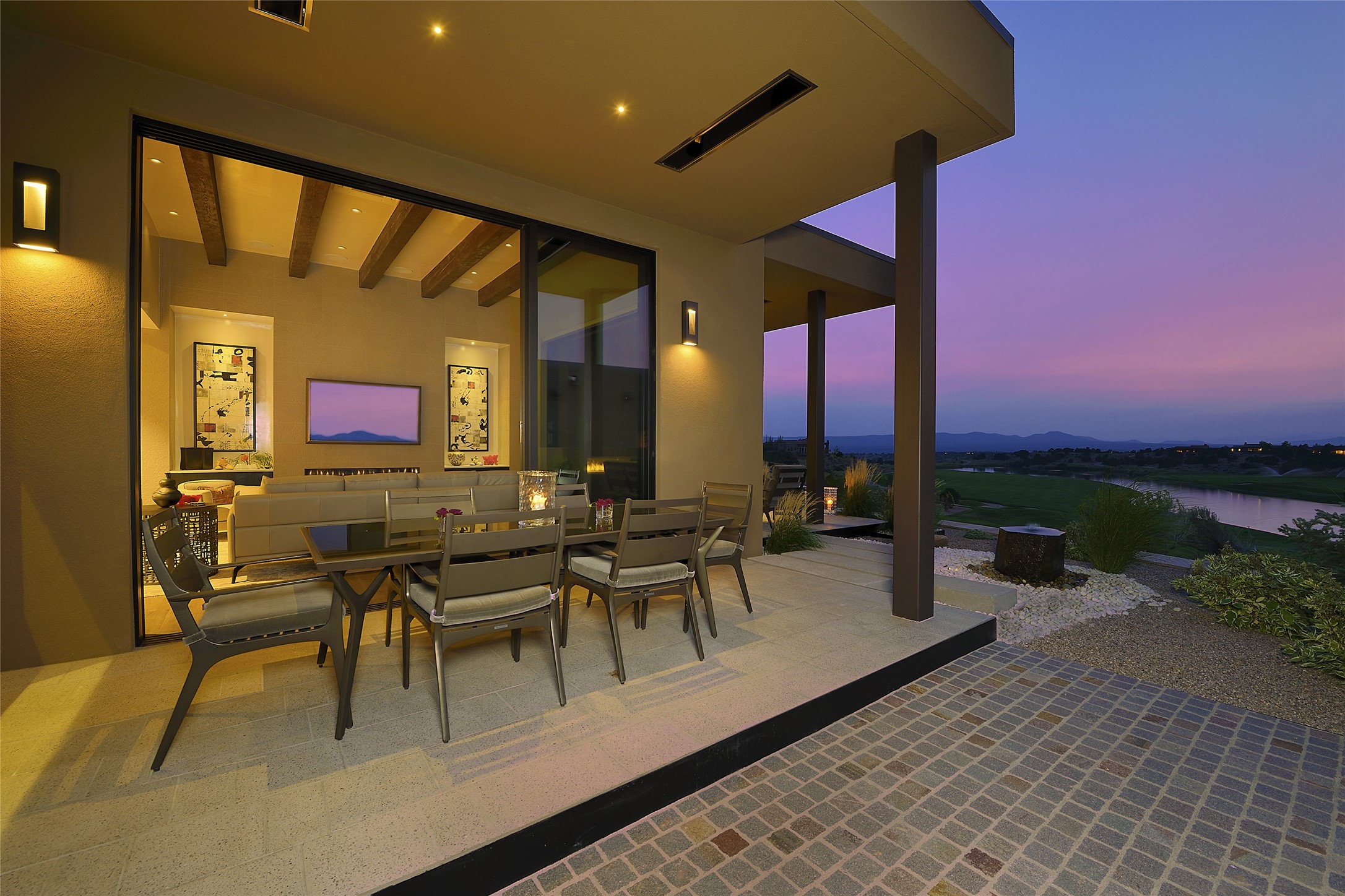 Experience the ultimate Las Campanas lifestyle with this Tour de Force, 2020-built House and Guest House masterpiece by Zachary and Sons. Perched high above both 18th greens of the Las Campanas Sunset and Sunrise golf courses, this state-of-the-art home, designed by the Lisa Samuel, with the most lavish level of luxury finishes, and walking distance to The Club at Las Campanas, masterfully incorporates seamless indoor/outdoor at its finest. The main house excites with a spacious open concept great room which offers the ultimate entertainer's island kitchen with Wolf/Subzero appliances and a wine dispenser, which opens to the formal dining area, living room, and the custom wet bar, all of which enjoy the stunning views and access to the infinity view portal, gas fireplace, and retractable doors. Directly off the living room is a media room, ideal office, or a fourth bedroom which opens to a tranquil zen garden. The owner's suite boasts one of the finest views in all of Santa Fe with a fireplace, sliding glass doors, portal access, and an exceptional bath with designer finishes and soaking tub. The independent secondary ensuite is private, with interior courtyard access, and a spa-like bath. Guests enjoy the well-appointed detached one bedroom guest house offers complete privacy with a full kitchen, living room and full bath. Luxury finishes include crisp white plaster, white oak flooring, exquisite landscape by Solange Serquis, and natural stones selected from around the world.