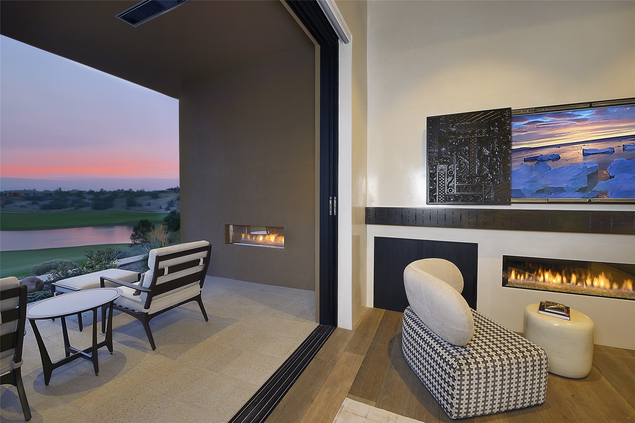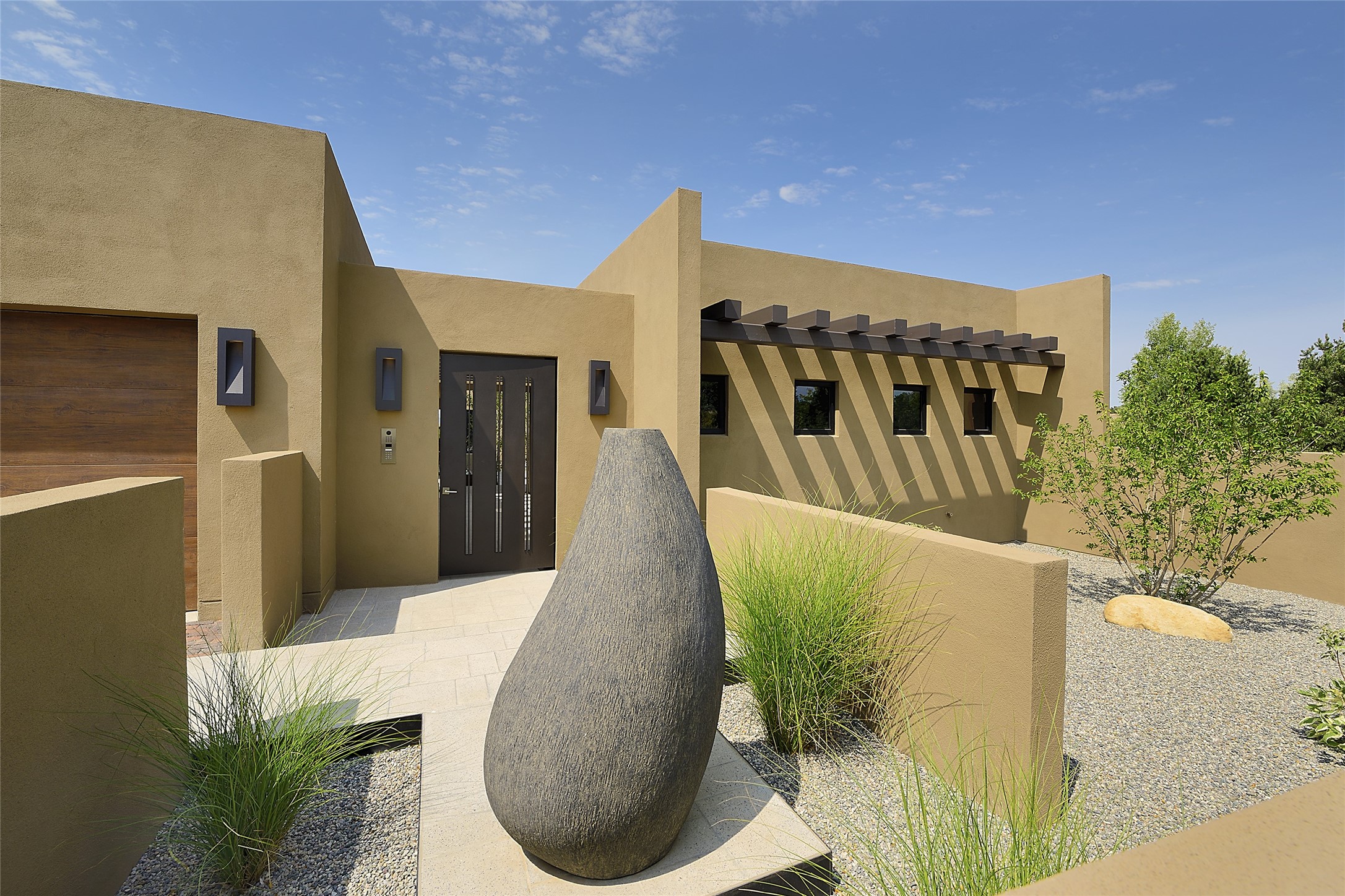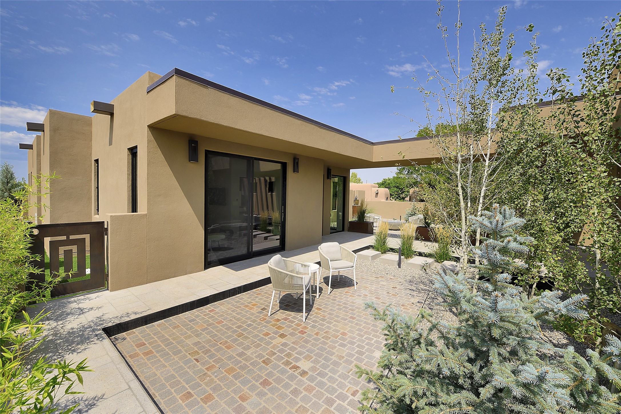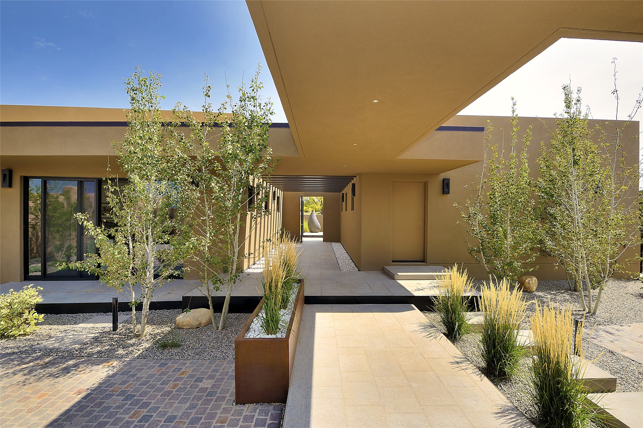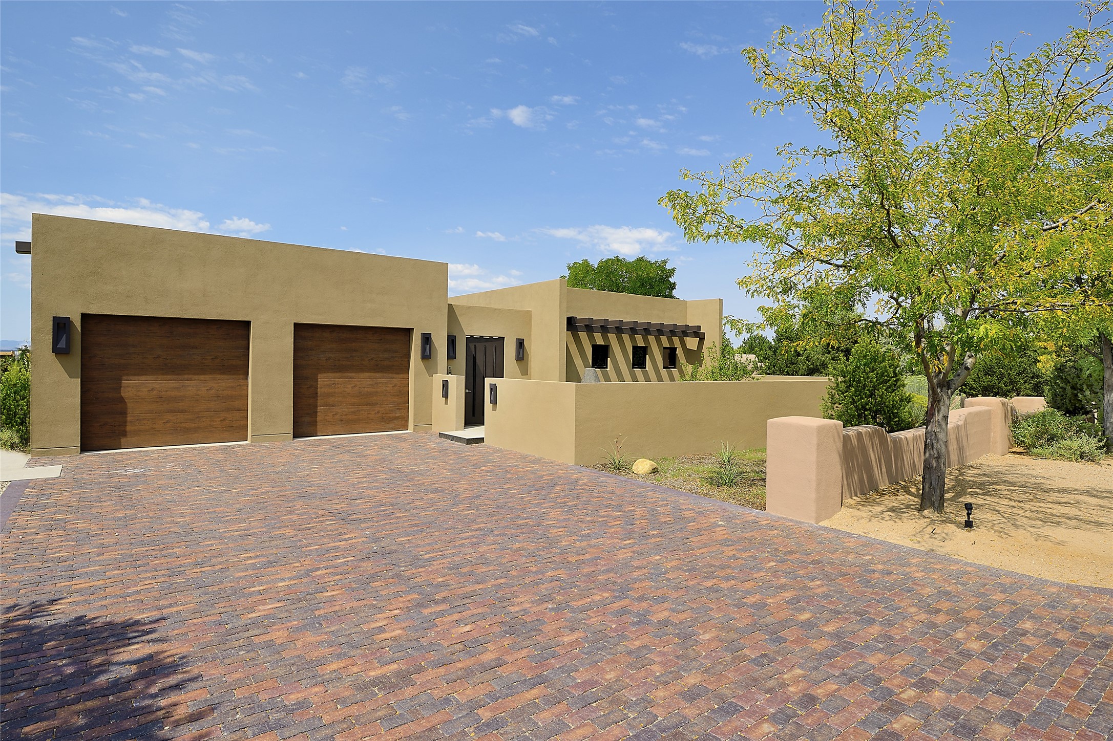 Experience the ultimate Las Campanas lifestyle with this Tour de Force, 2020-built House and Guest House masterpiece by Zachary and Sons. Perched high above both 18th greens of the Las Campanas Sunset and Sunrise golf courses, this state-of-the-art home, designed by the Lisa Samuel, with the most lavish level of luxury finishes, and walking distance to The Club at Las Campanas, masterfully incorporates seamless indoor/outdoor at its finest. The main house excites with a spacious open concept great room which offers the ultimate entertainer's island kitchen with Wolf/Subzero appliances and a wine dispenser, which opens to the formal dining area, living room, and the custom wet bar, all of which enjoy the stunning views and access to the infinity view portal, gas fireplace, and retractable doors. Directly off the living room is a media room, ideal office, or a fourth bedroom which opens to a tranquil zen garden. The owner's suite boasts one of the finest views in all of Santa Fe with a fireplace, sliding glass doors, portal access, and an exceptional bath with designer finishes and soaking tub. The independent secondary ensuite is private, with interior courtyard access, and a spa-like bath. Guests enjoy the well-appointed detached one bedroom guest house offers complete privacy with a full kitchen, living room and full bath. Luxury finishes include crisp white plaster, white oak flooring, exquisite landscape by Solange Serquis, and natural stones selected from around the world.