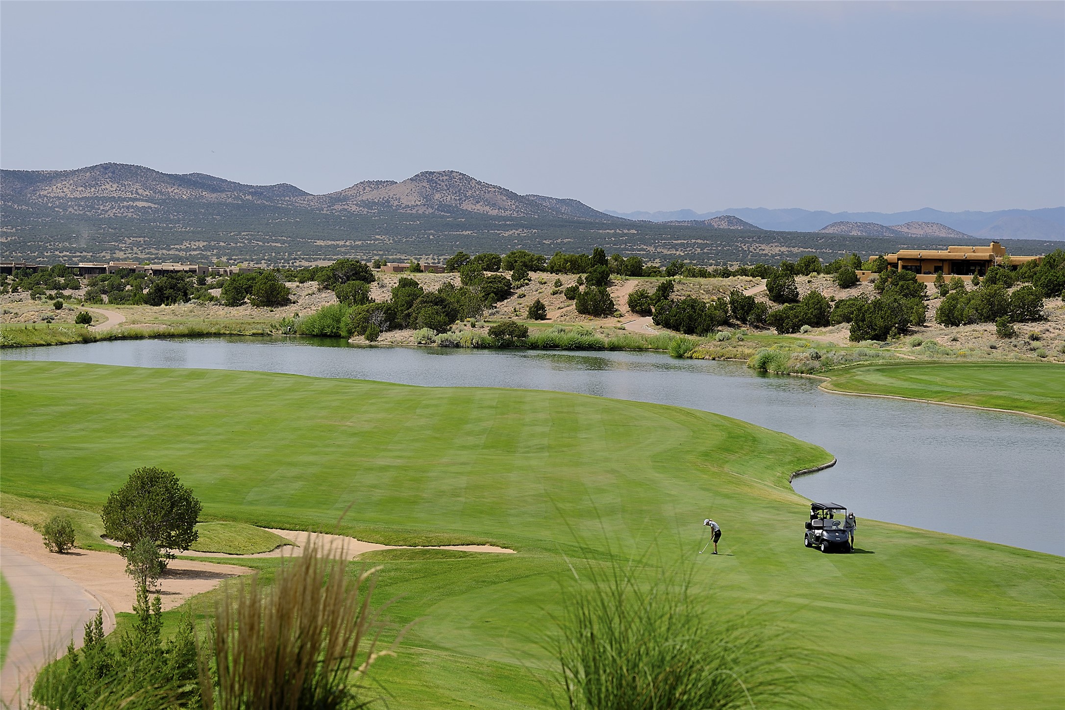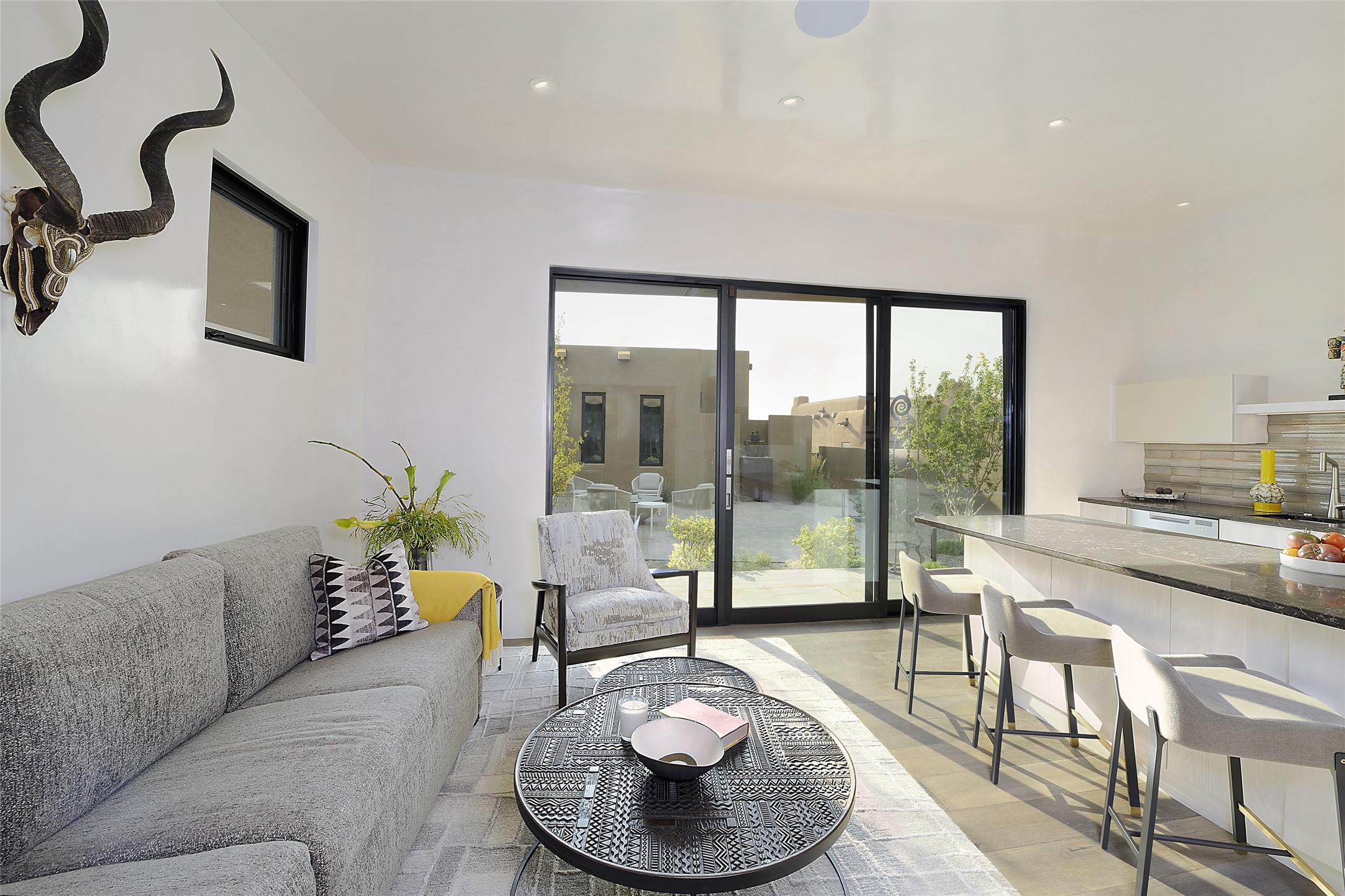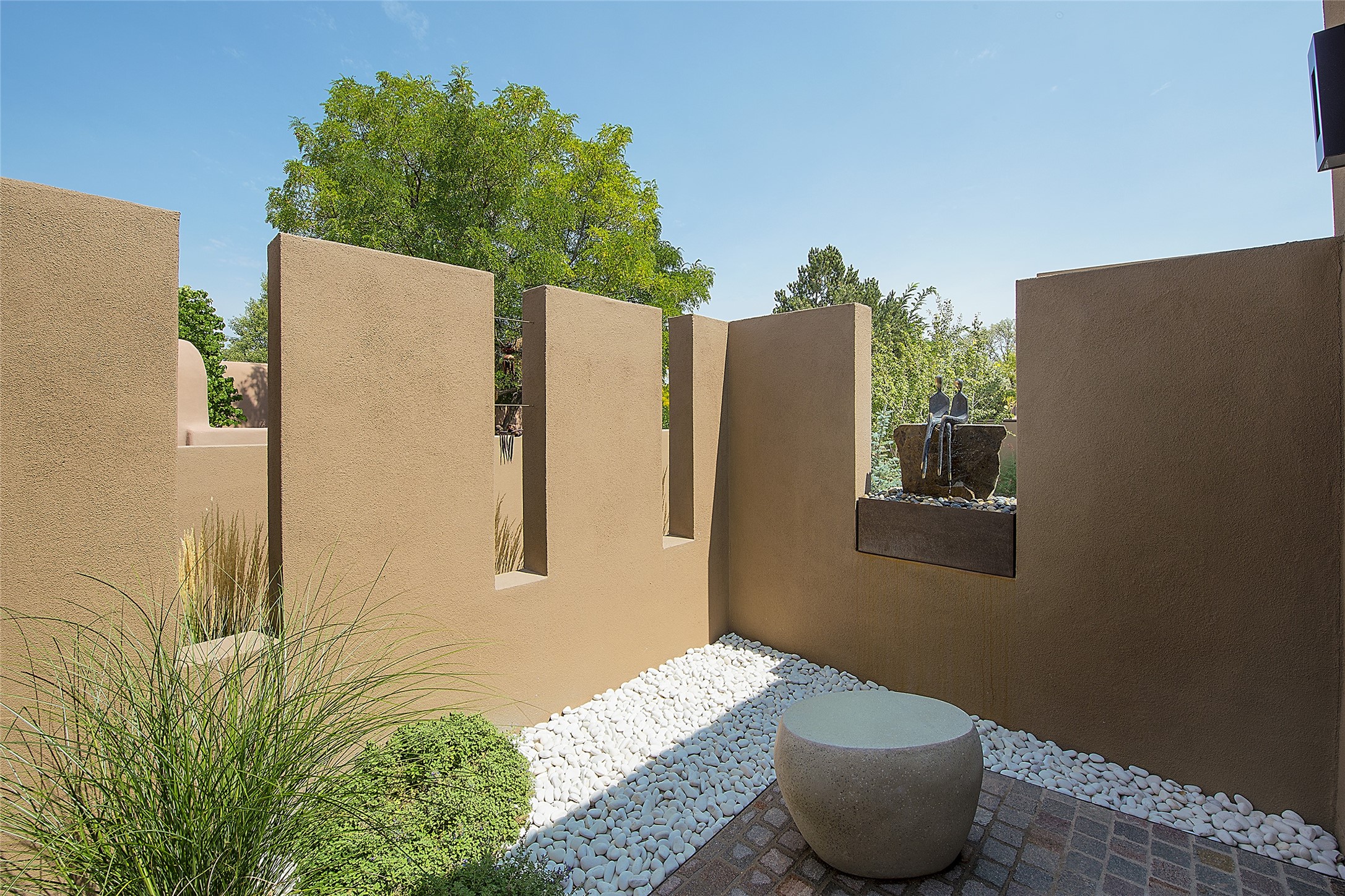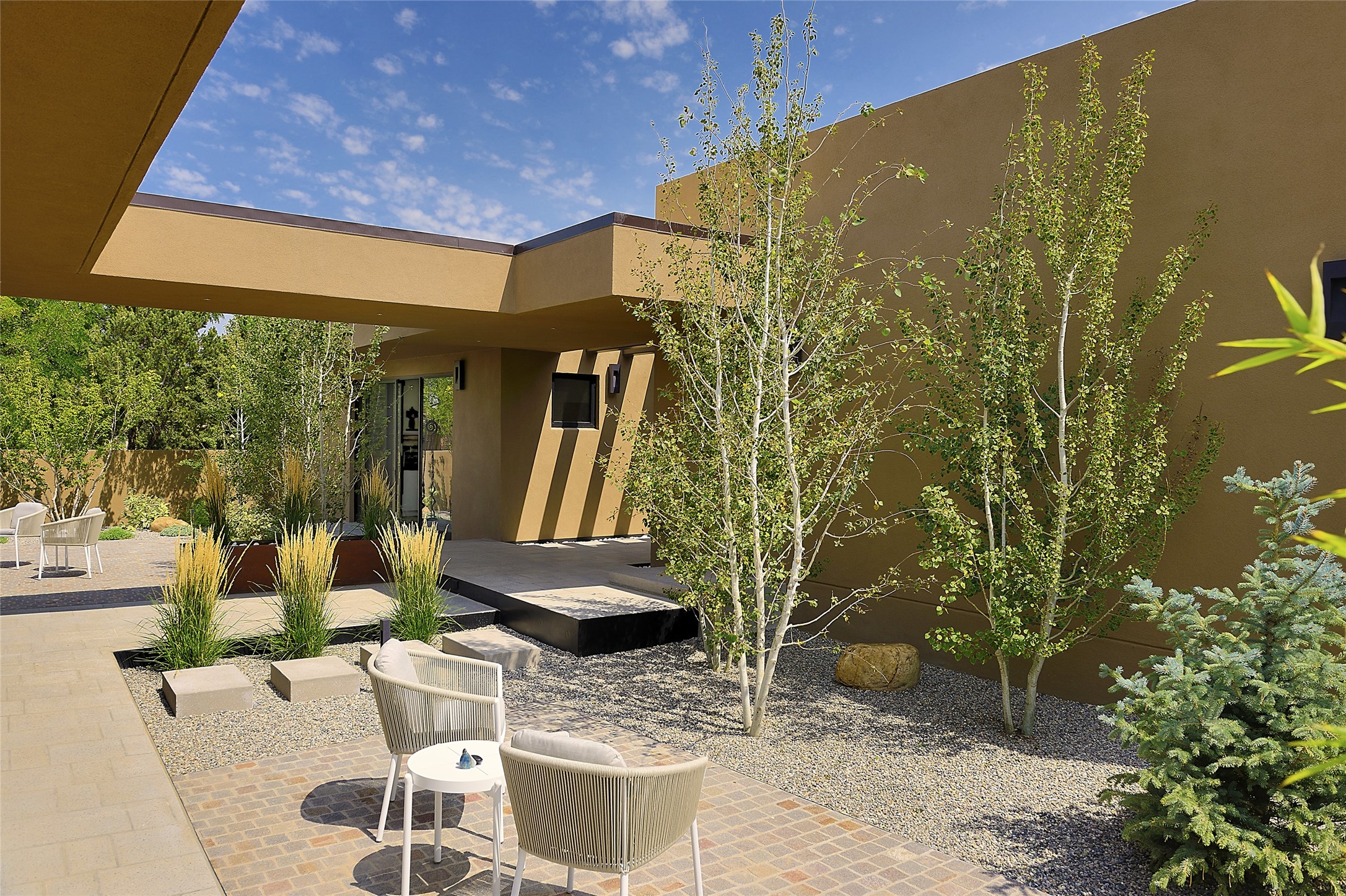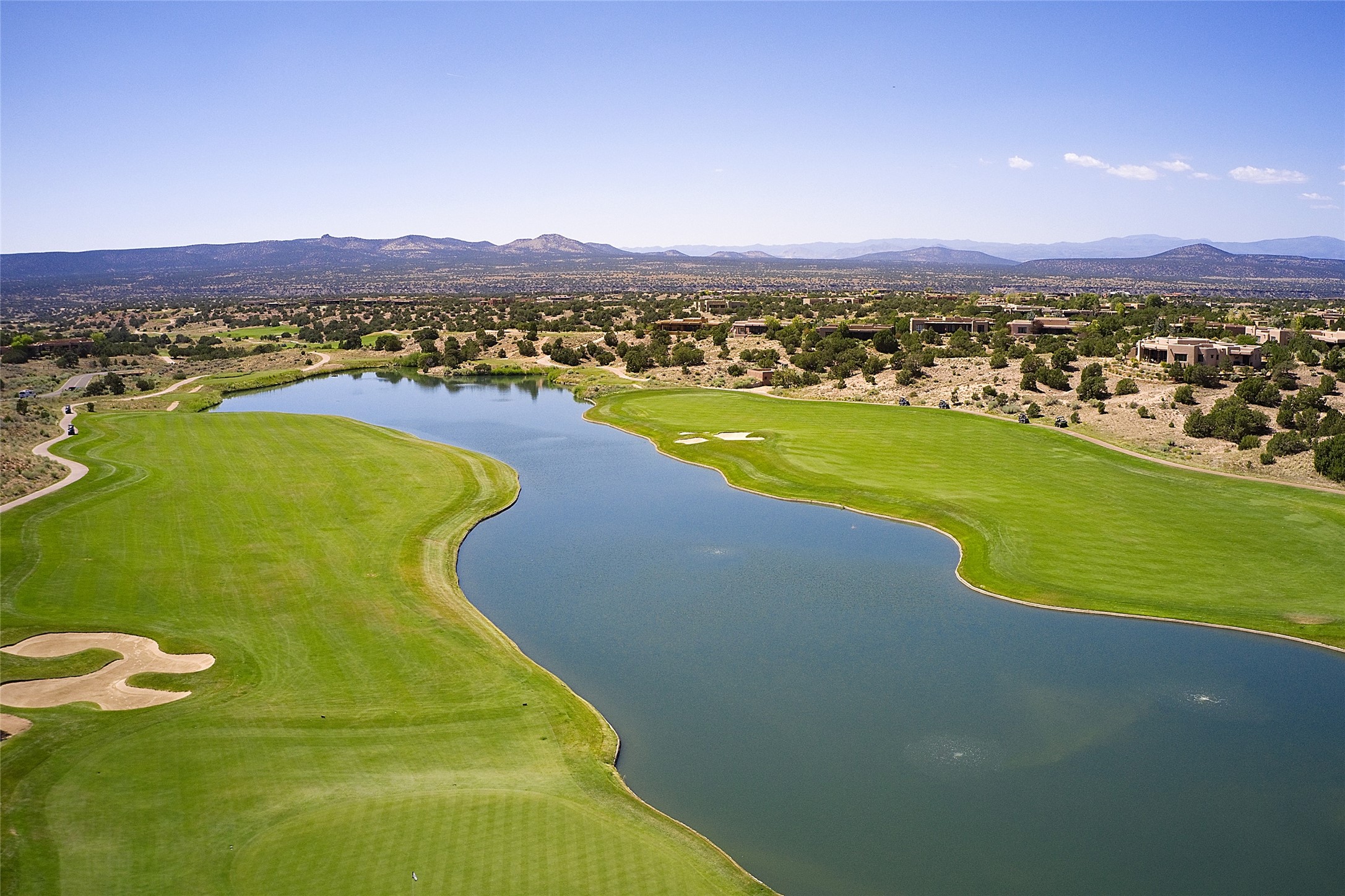 Experience the ultimate Las Campanas lifestyle with this Tour de Force, 2020-built House and Guest House masterpiece by Zachary and Sons. Perched high above both 18th greens of the Las Campanas Sunset and Sunrise golf courses, this state-of-the-art home, designed by the Lisa Samuel, with the most lavish level of luxury finishes, and walking distance to The Club at Las Campanas, masterfully incorporates seamless indoor/outdoor at its finest. The main house excites with a spacious open concept great room which offers the ultimate entertainer's island kitchen with Wolf/Subzero appliances and a wine dispenser, which opens to the formal dining area, living room, and the custom wet bar, all of which enjoy the stunning views and access to the infinity view portal, gas fireplace, and retractable doors. Directly off the living room is a media room, ideal office, or a fourth bedroom which opens to a tranquil zen garden. The owner's suite boasts one of the finest views in all of Santa Fe with a fireplace, sliding glass doors, portal access, and an exceptional bath with designer finishes and soaking tub. The independent secondary ensuite is private, with interior courtyard access, and a spa-like bath. Guests enjoy the well-appointed detached one bedroom guest house offers complete privacy with a full kitchen, living room and full bath. Luxury finishes include crisp white plaster, white oak flooring, exquisite landscape by Solange Serquis, and natural stones selected from around the world.