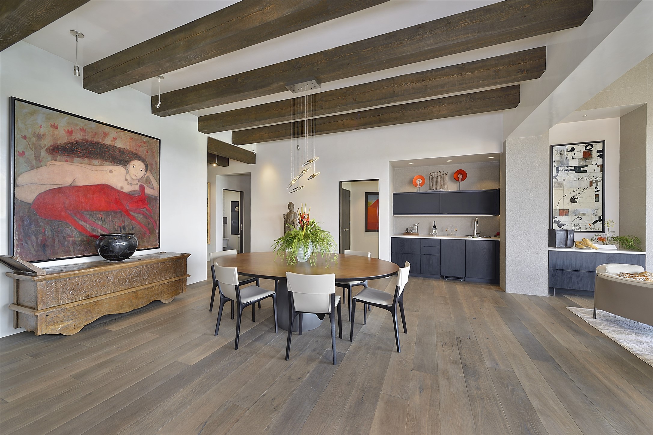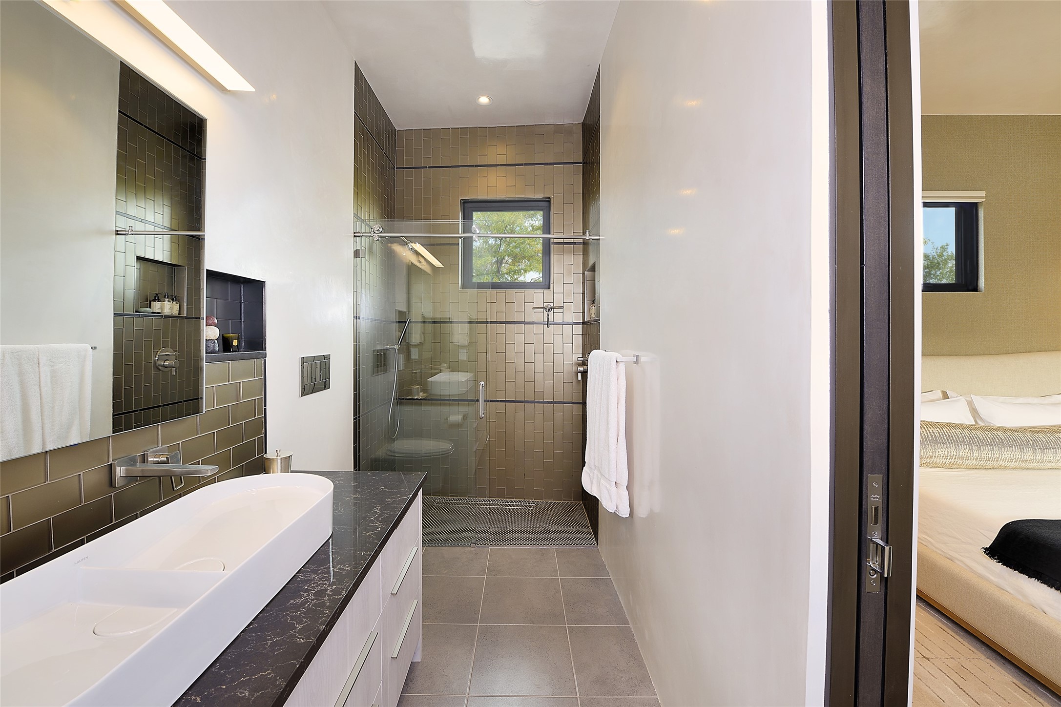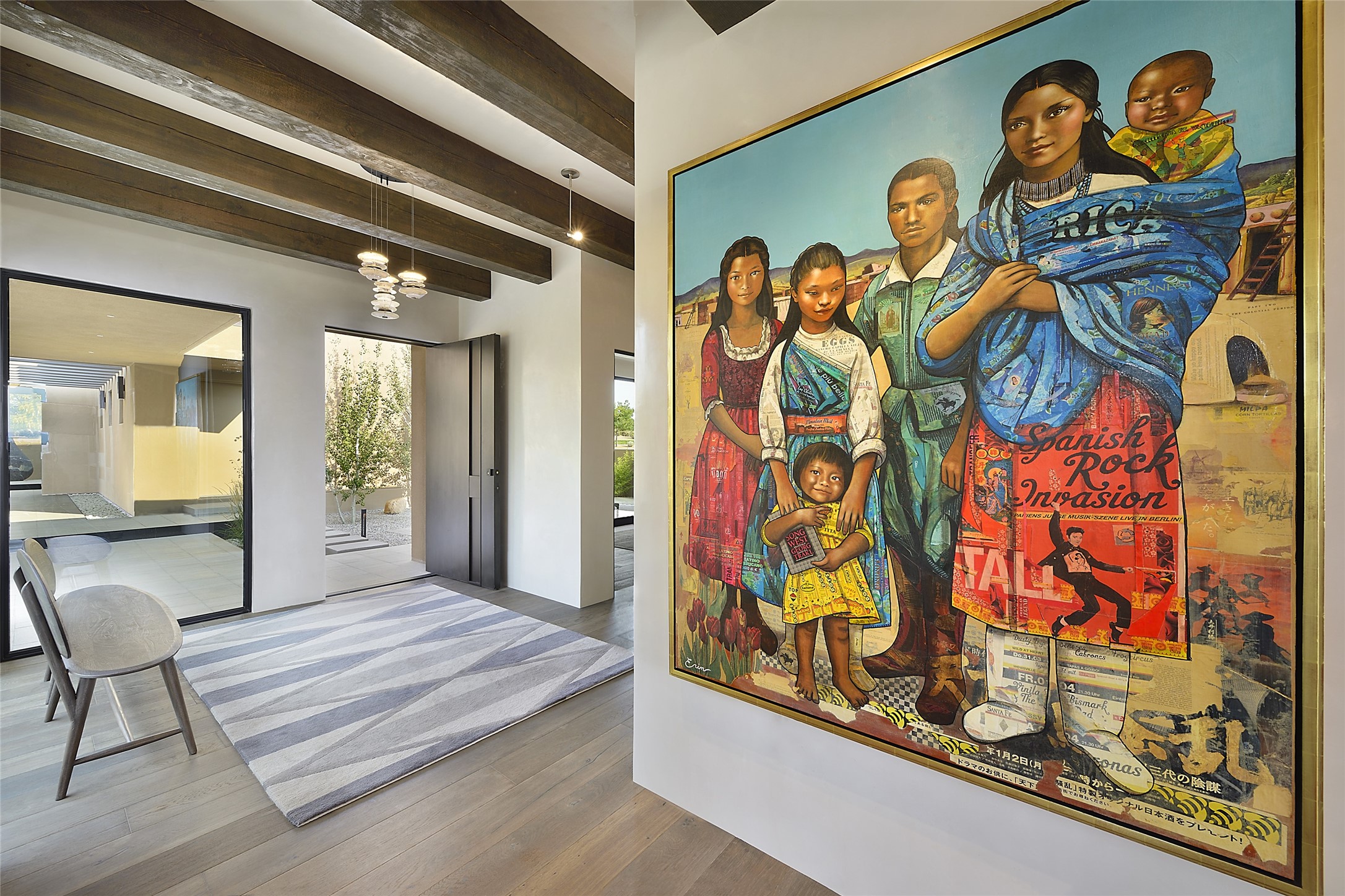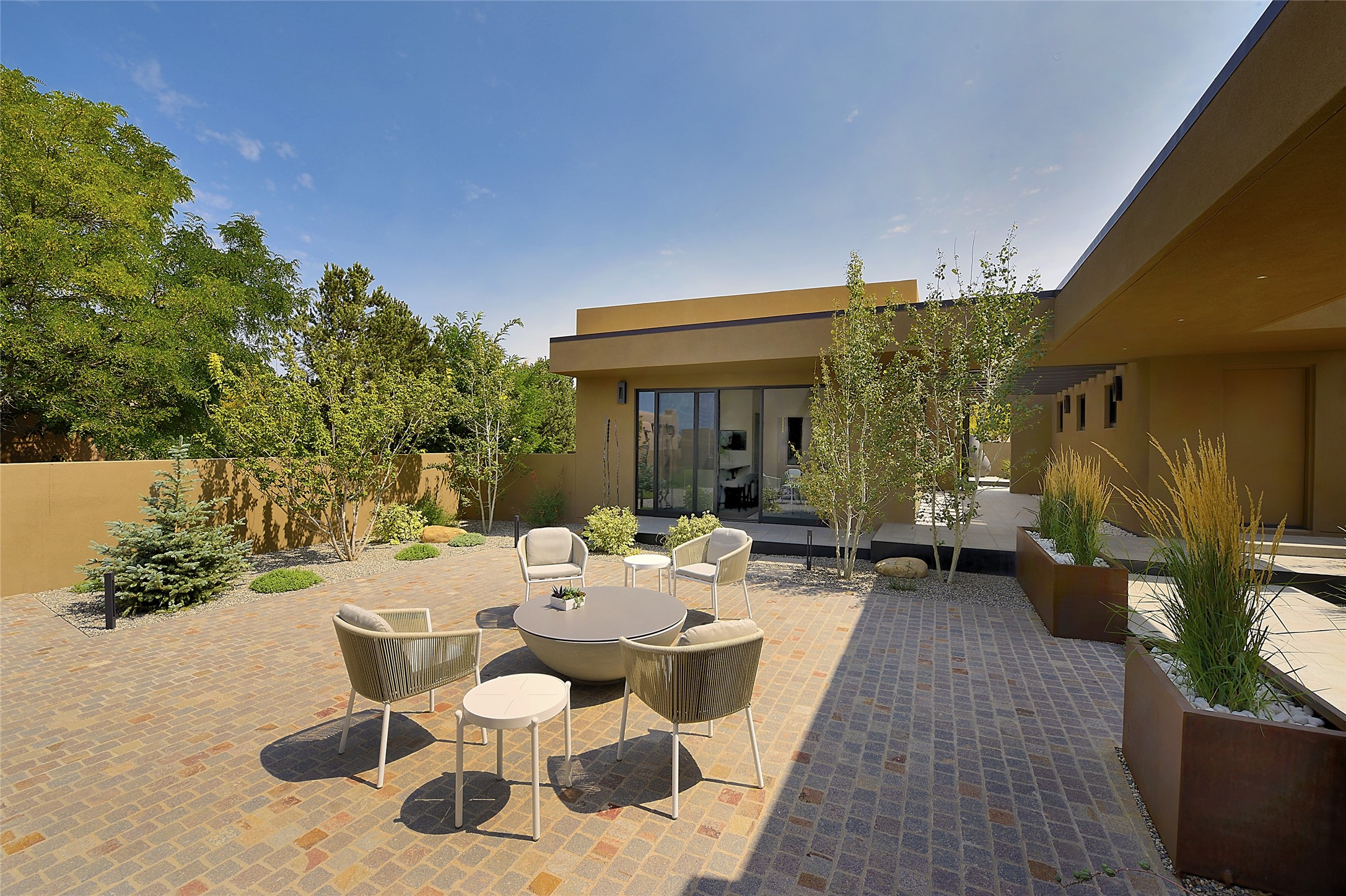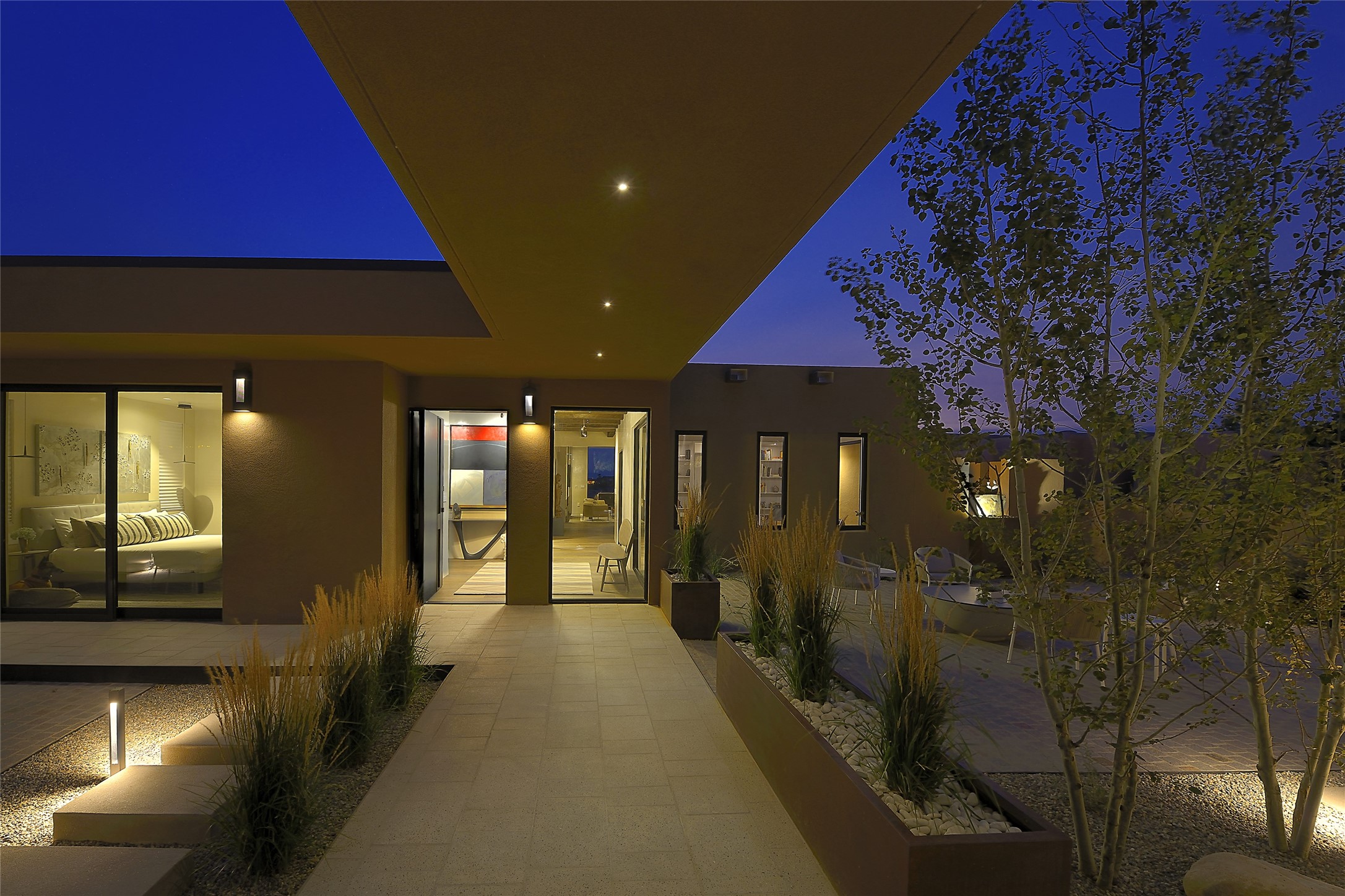 Experience the ultimate Las Campanas lifestyle with this Tour de Force, 2020-built House and Guest House masterpiece by Zachary and Sons. Perched high above both 18th greens of the Las Campanas Sunset and Sunrise golf courses, this state-of-the-art home, designed by the Lisa Samuel, with the most lavish level of luxury finishes, and walking distance to The Club at Las Campanas, masterfully incorporates seamless indoor/outdoor at its finest. The main house excites with a spacious open concept great room which offers the ultimate entertainer's island kitchen with Wolf/Subzero appliances and a wine dispenser, which opens to the formal dining area, living room, and the custom wet bar, all of which enjoy the stunning views and access to the infinity view portal, gas fireplace, and retractable doors. Directly off the living room is a media room, ideal office, or a fourth bedroom which opens to a tranquil zen garden. The owner's suite boasts one of the finest views in all of Santa Fe with a fireplace, sliding glass doors, portal access, and an exceptional bath with designer finishes and soaking tub. The independent secondary ensuite is private, with interior courtyard access, and a spa-like bath. Guests enjoy the well-appointed detached one bedroom guest house offers complete privacy with a full kitchen, living room and full bath. Luxury finishes include crisp white plaster, white oak flooring, exquisite landscape by Solange Serquis, and natural stones selected from around the world.