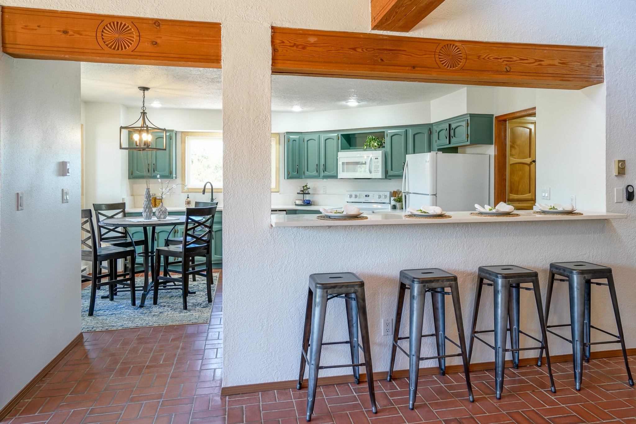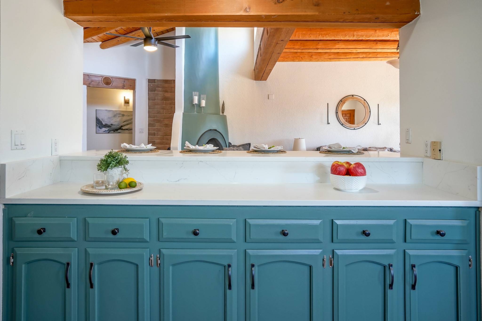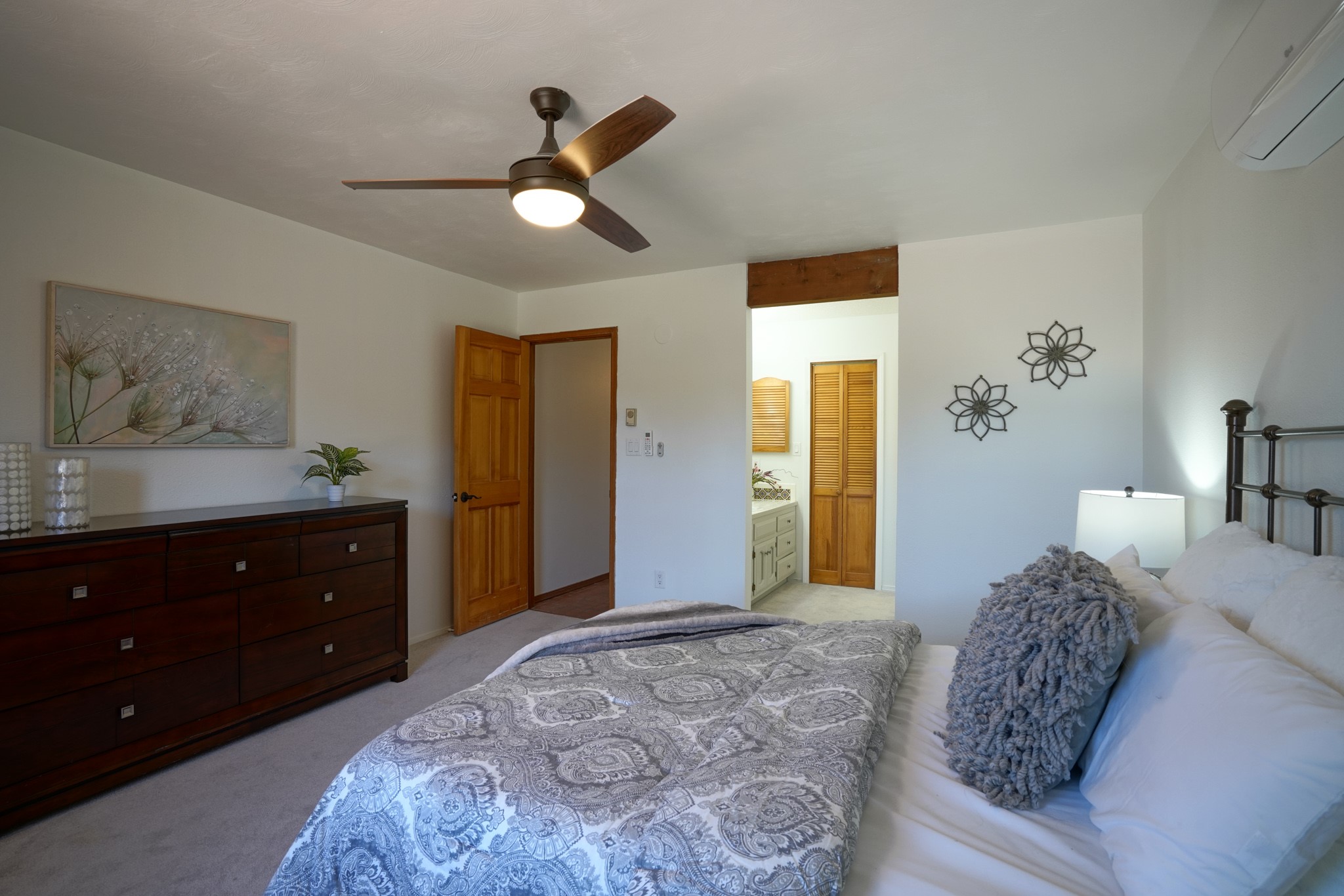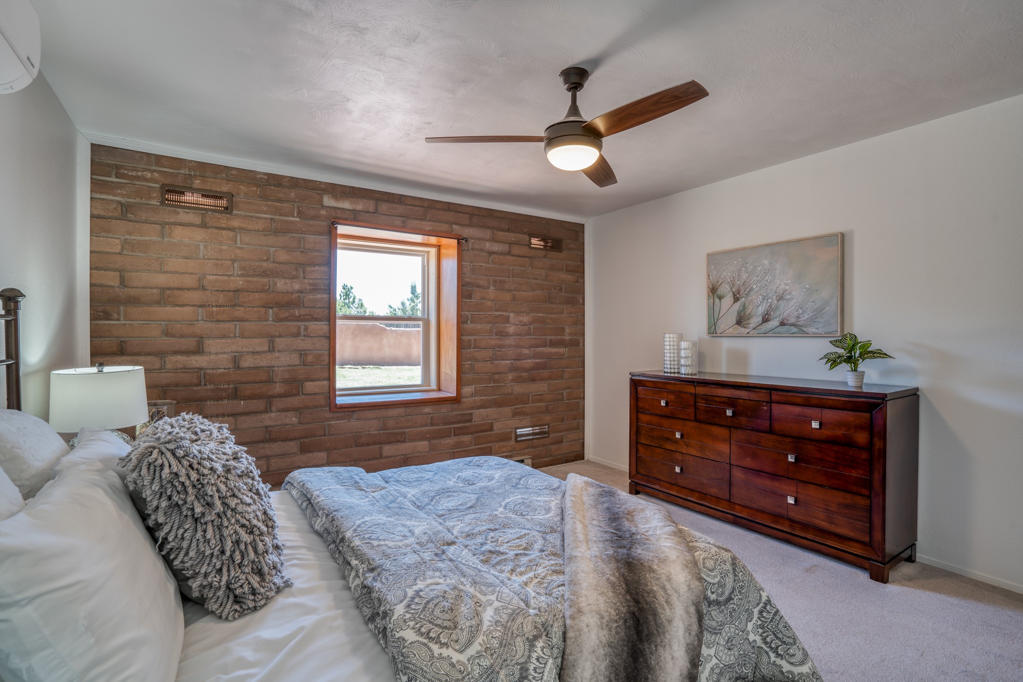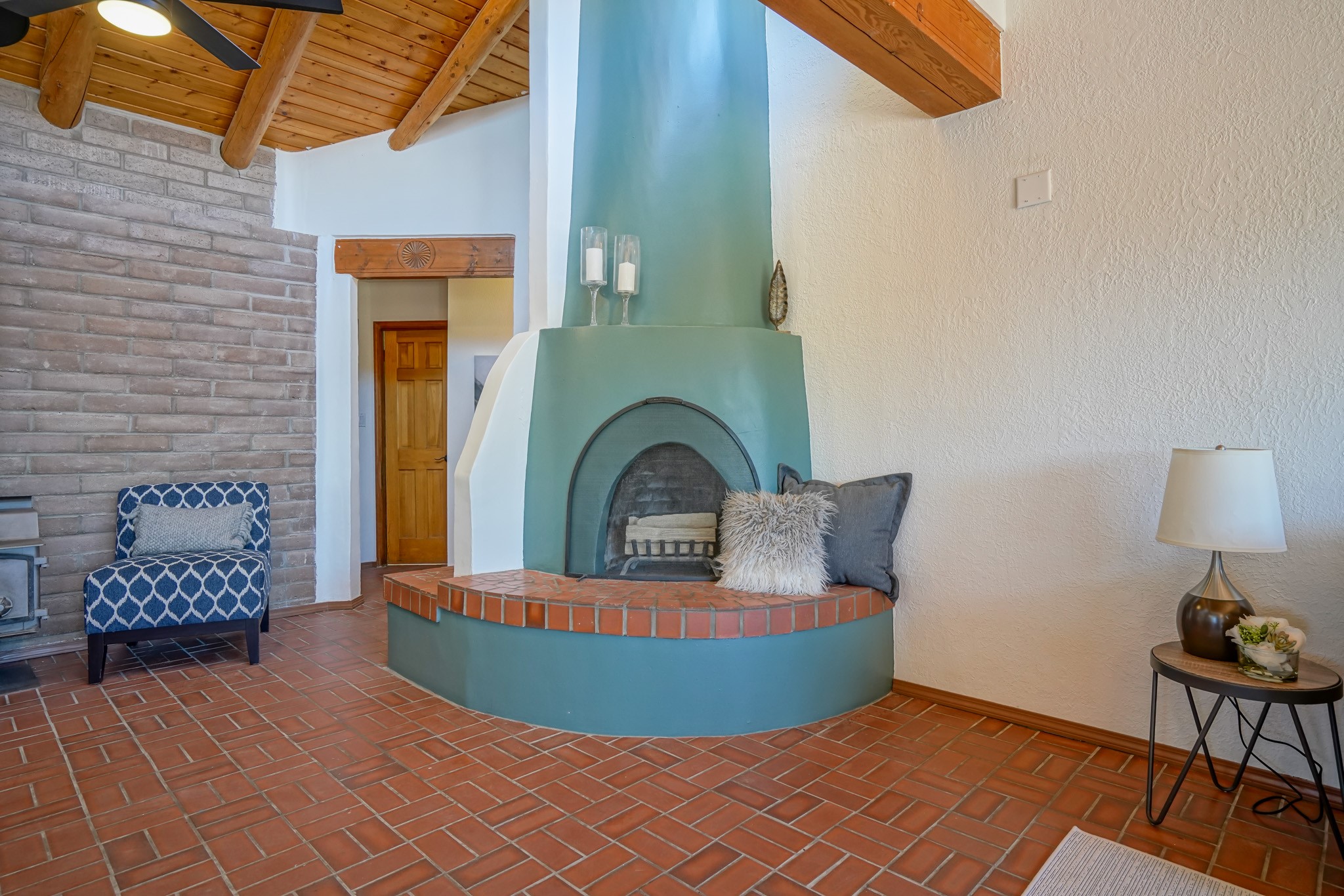 This artfully designed home appears to be nearly sculpted out of the beautiful skies and land of ElDorado. Upon stepping inside, don't be surprised if an utterance of "wow!" escapes you! Thewonderfully open floorplan is simply flooded with beautiful, welcoming New Mexico sunlight that playsupon the fine wood beamed ceiling and classic kiva fireplace. With new windows, passive solar and new mini split units - and you'll be hard pressed not to notice the phenomenal open views in each direction. The spacious, generously cabineted kitchen and bar seating area is bound to be the center of entertainment or relaxation. Stay cozy in the winter with the wood burning stove in the living area. A large backyard is beckoning for your creative designs or uses.