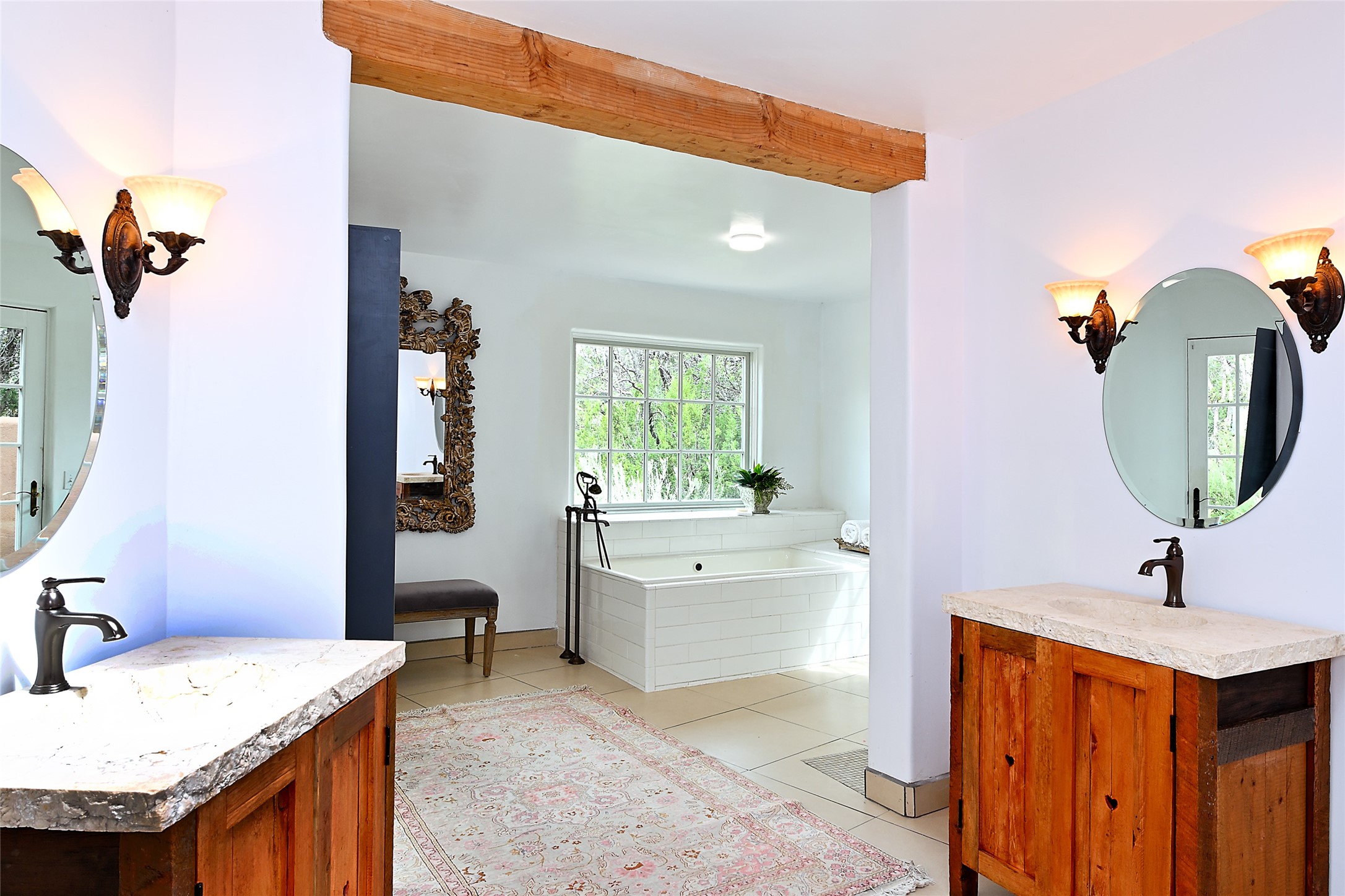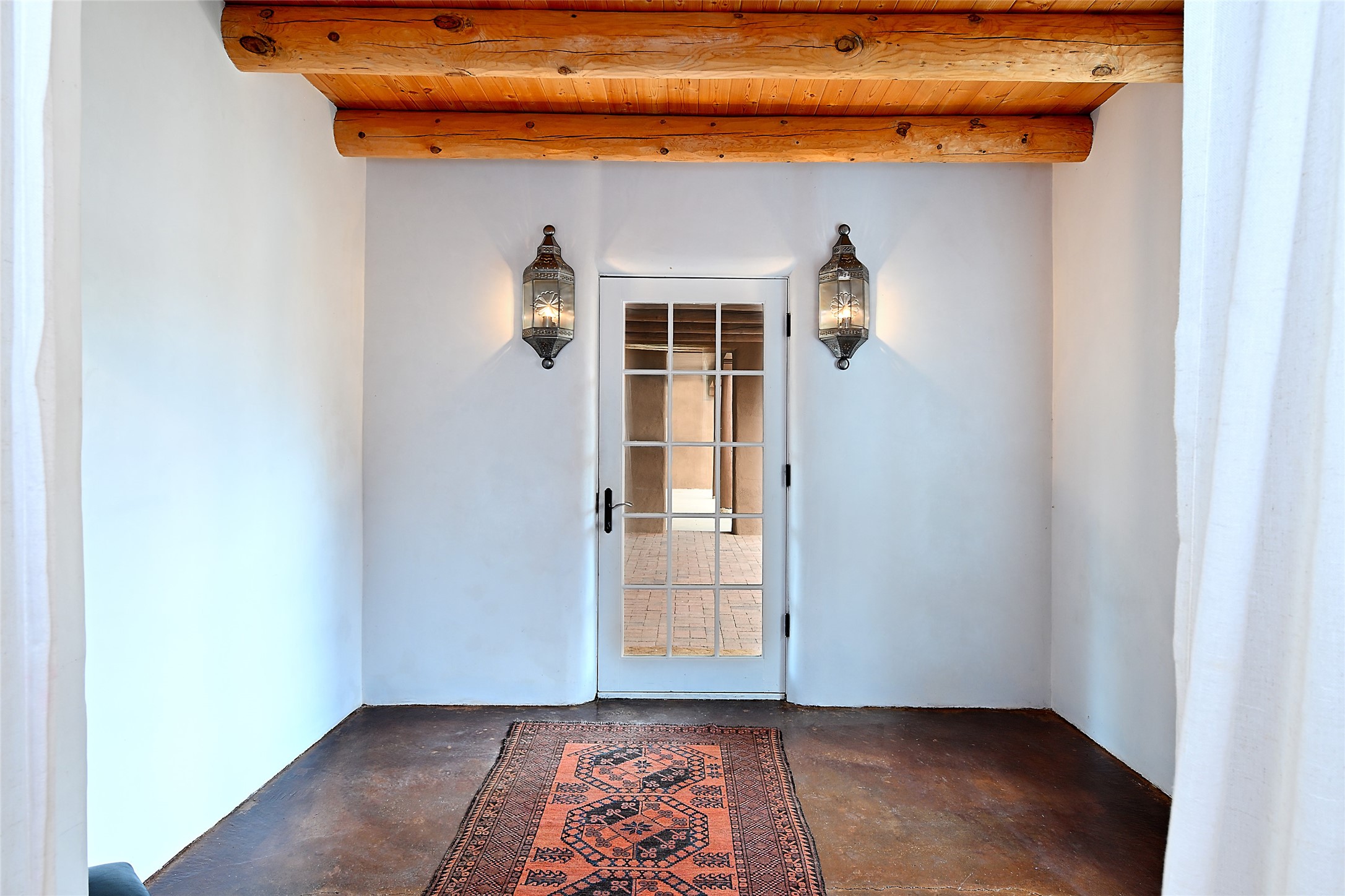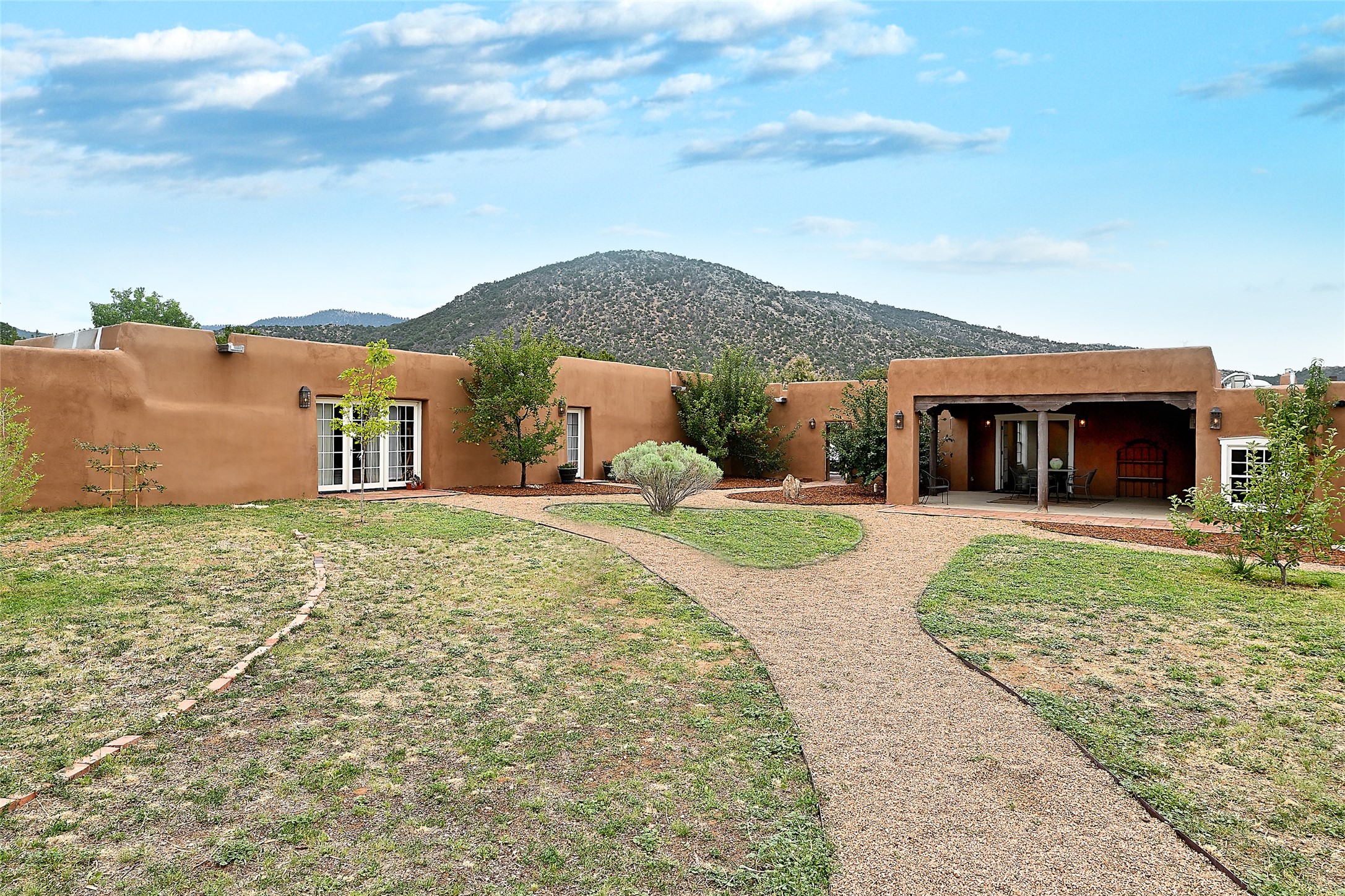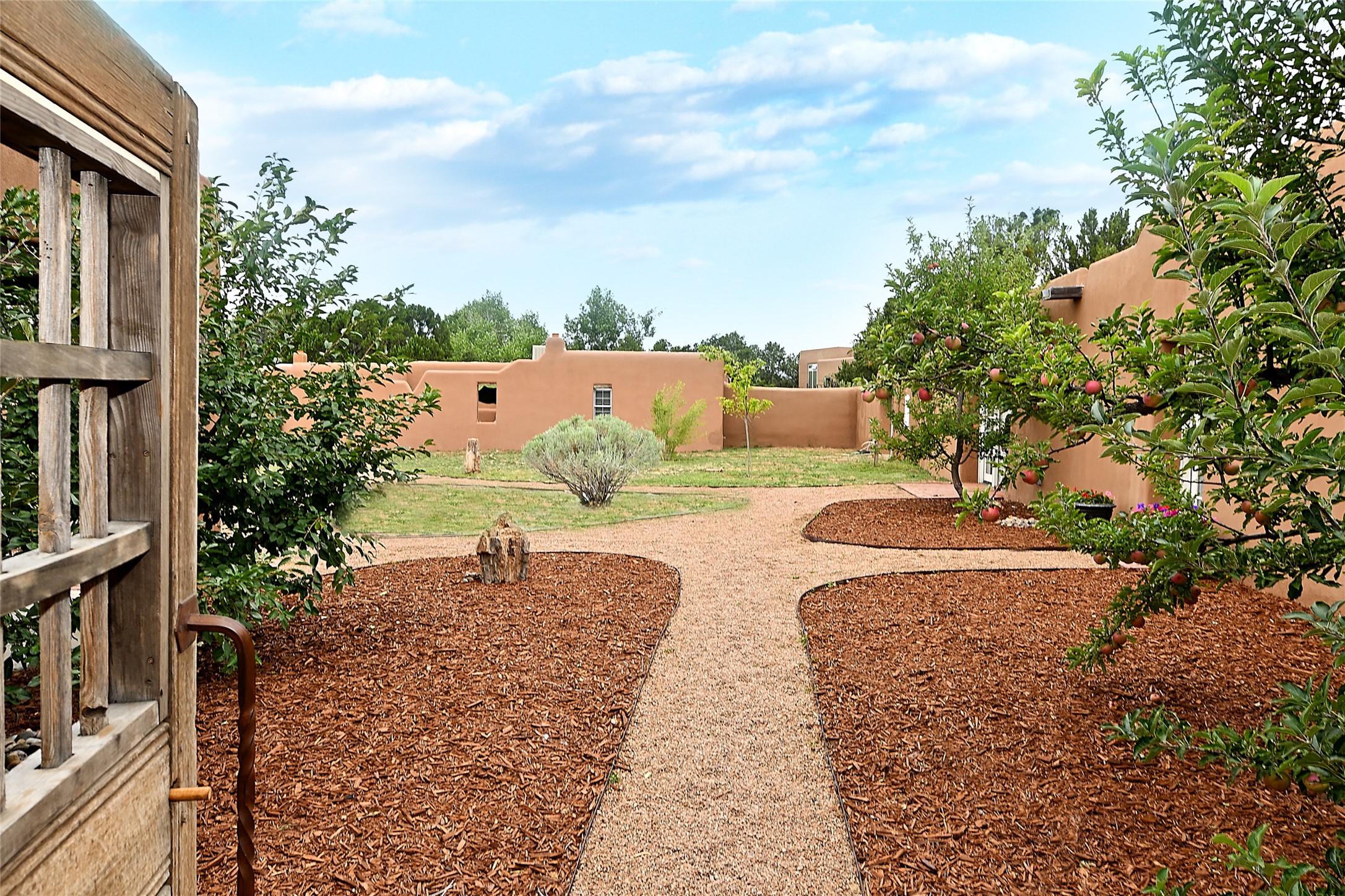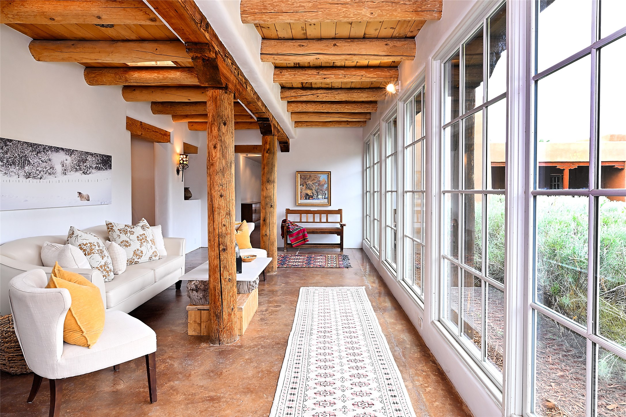 Designed by renowned architect John Gaw Meem and built in 1929, the historic Proctor Compound is sited on two acres in Sun Mountain Estates, on the edge of Museum Hill, and comprises a primary residence, a two-bedroom casita, and a spacious studio. The approximately 6,500-square-foot home is introduced by a courtyard with a classical fountain, a vintage fresco, flagstone terraces, and stunning mountain views. It features four bedrooms, six baths, five portals, a media room, a grand sala, formal dining room, spacious kitchen with superior appliances, a breakfast area, and two offices, laundry rooms, and sunrooms. The two-bedroom casita--which provides two baths, laundry facilities, a private courtyard, and the studio--which offers a full bath, a kitchen, and laundry facilities--lie across a second courtyard with fruit trees. While retaining the 1929 Pueblo Revival design elements and understated elegance for which Meem was known, the property has been carefully rejuvenated with updated systems: plumbing, electrical--including an 11.5 kilowatt solar array--heating, and cooling as well as a new roof, stucco, and windows. Contributing to the distinctive aesthetic are eight fireplaces, bancos, hand-carved doors, oak floors, vigas, beams, corbels, and replastered interior walls with original contours and soft edges. The skylit three-car garage could also serve as a workshop or studio. This is a rare opportunity not to be missed.