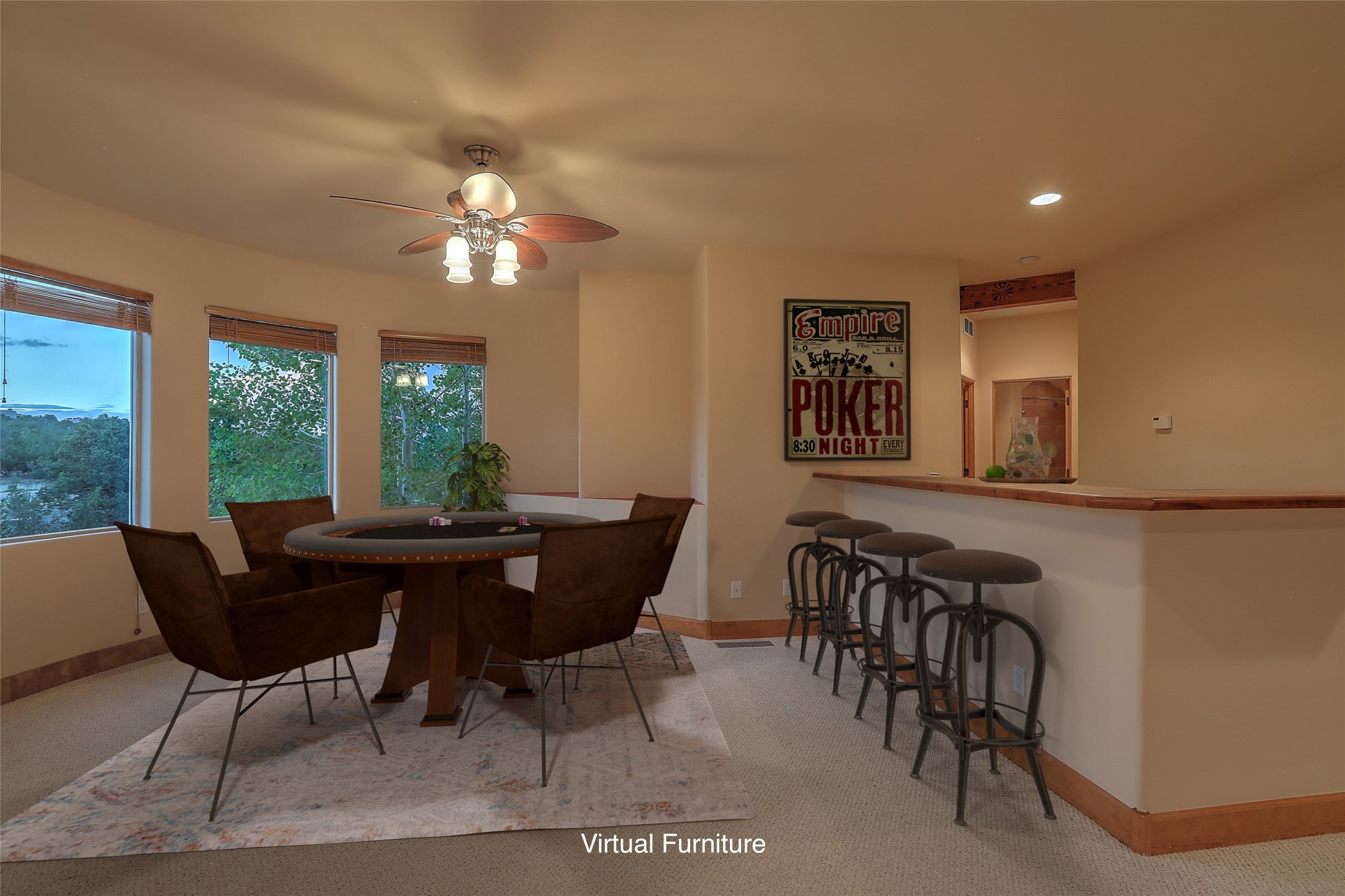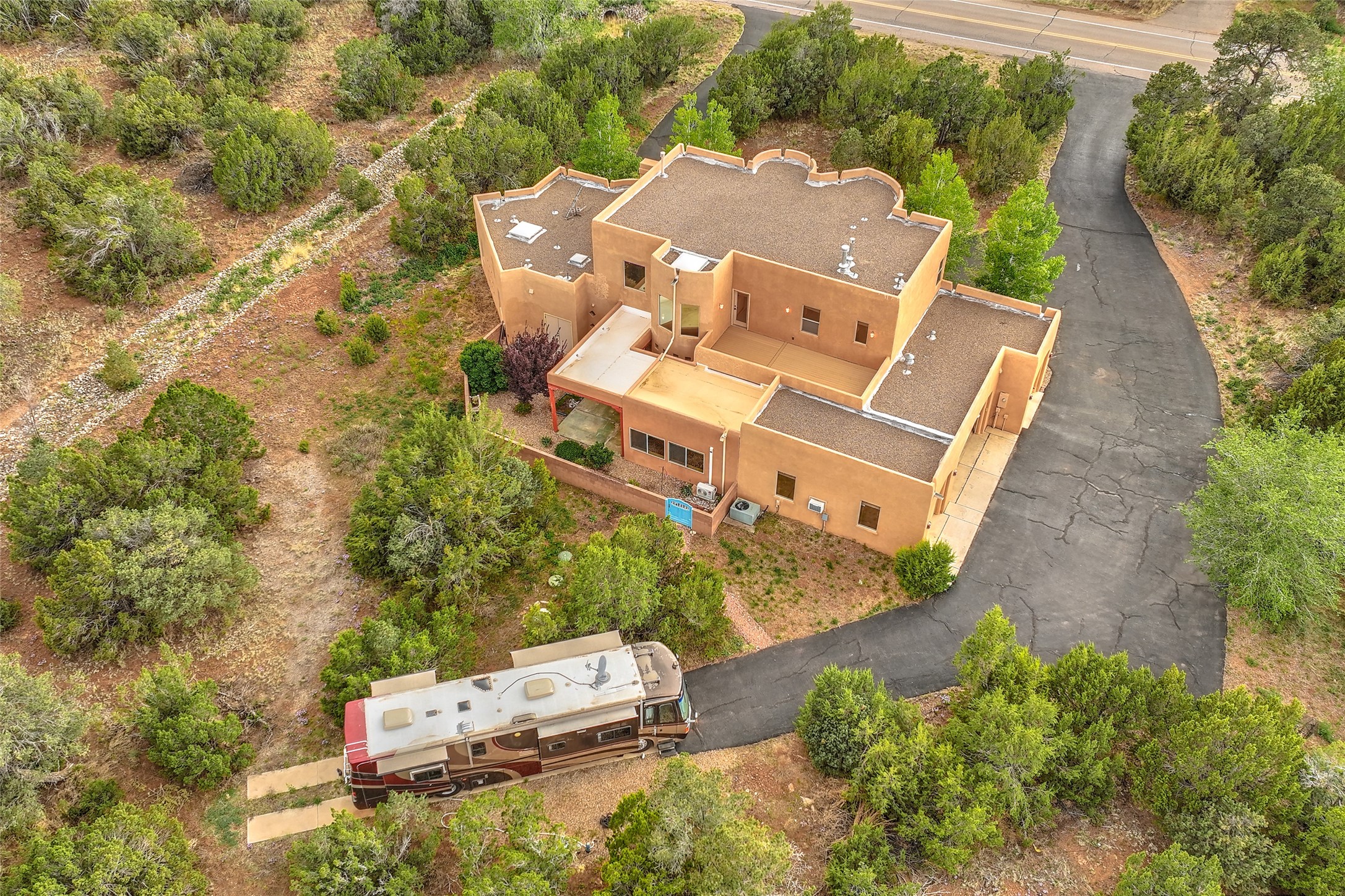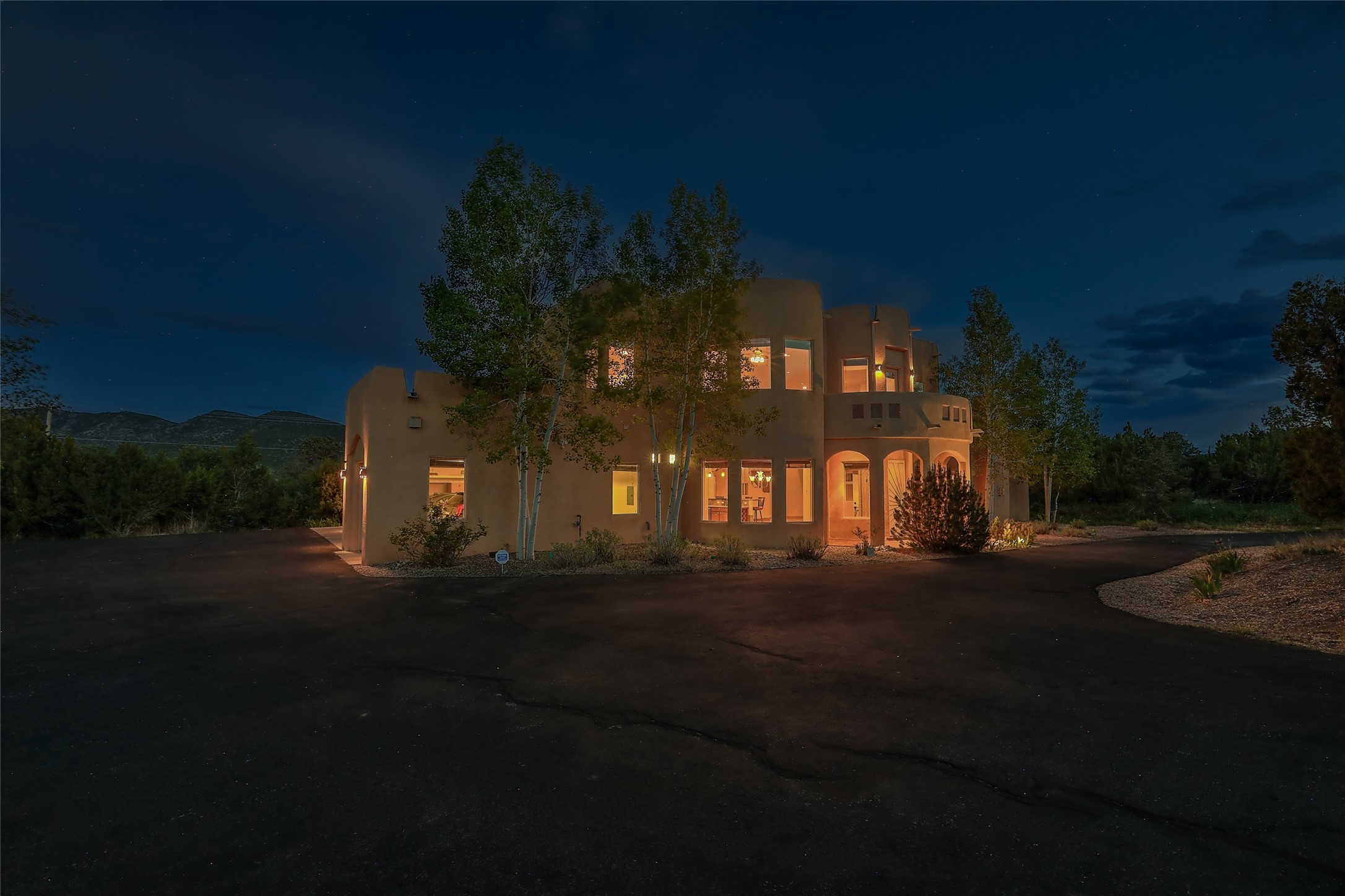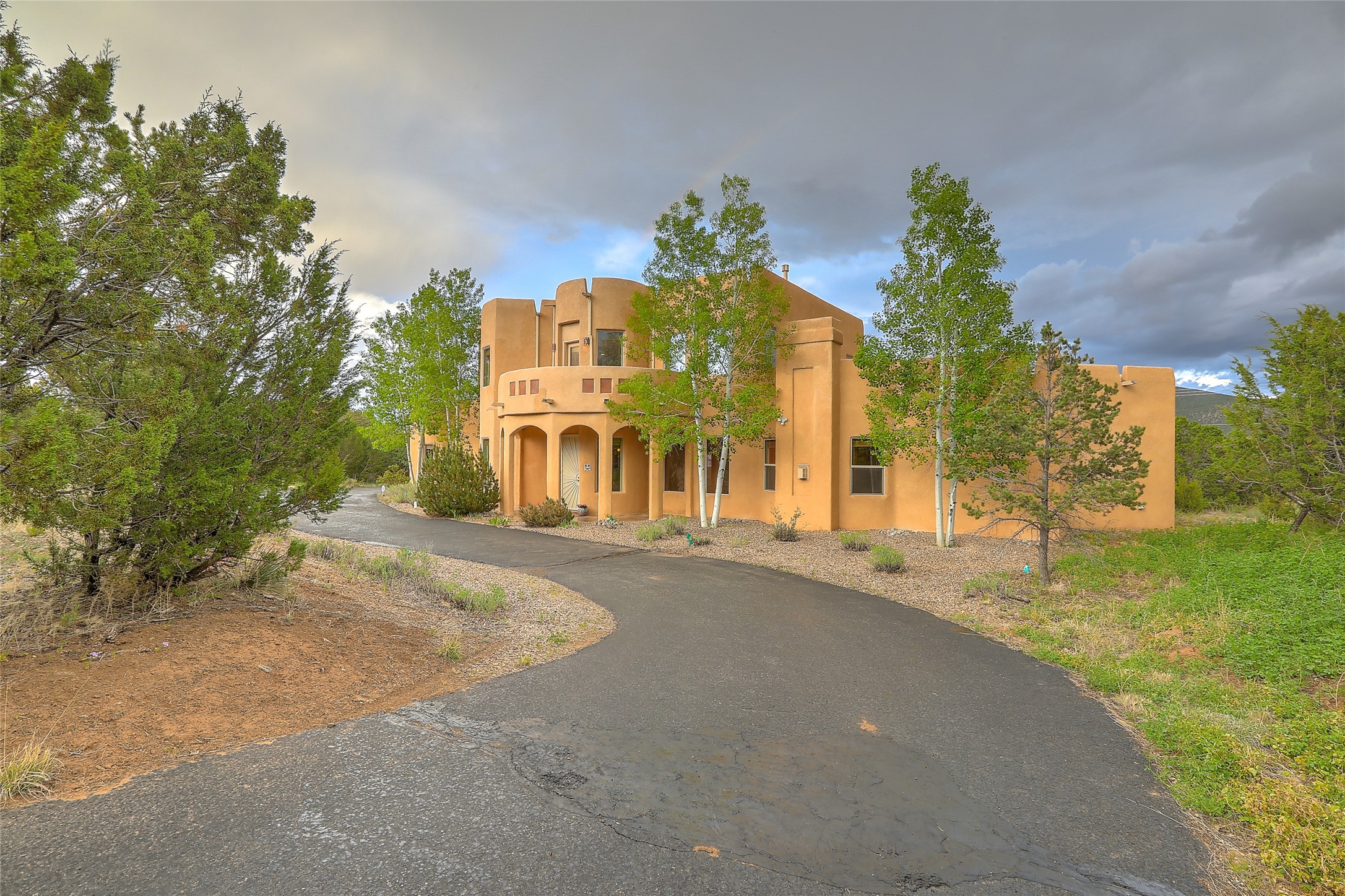 Energy Star Certified easy care mountain home in the lovely Paa-Ko Village community. Bring your motorhome and bikes to enjoy easy back-door access to the Turquoise Trail, a nationally recognized scenic byway. Move-in ready, with pre-listing home inspection available for review. You'll be greeted by an extended paved circular drive that sets the stage for this stunning, two-story house nestled in a picturesque landscape. Main floor owners suite for your convenience. Great room with 2 story high ceilings and a spacious living area with fireplace, perfect for relaxing or entertaining guests. Large windows offer natural light and views of the surrounding mountains. Extensive granite center island anchors the spacious kitchen, providing a focal point for gatherings. The owner's suite is conveniently located on the main floor with fireplace and views. The owners bathroom has two private toilets, two walk-in closets and dual vanities. Spa influenced soaking tub is a focal point of the architecturally inspired bath with a walk-in shower creatively nestled behind it. Two additional bedrooms, full bath and entertainment area with wet bar are positioned on the second floor. Dual balconies located on east and west sides beckon you for morning coffee or evening sunset enjoyment. The car enthusiast will appreciate the 4 car attached and finished garage with epoxy flooring for easy clean-up. The fourth garage separate bay also includes heating and AC. East facing climate controlled sunroom increases your enjoyable living space by 387 sq.ft. A spacious motorhome concrete pad with electricity provides convenient parking for your vehicle. As part of the community, you'll have access to a range of amenities that enhance your quality of life. Paa-ko Golf Course. The community features a pool, tennis and Pickle Ball courts are also available for those who enjoy an active lifestyle, and a recreation center provides. Motivated Seller.