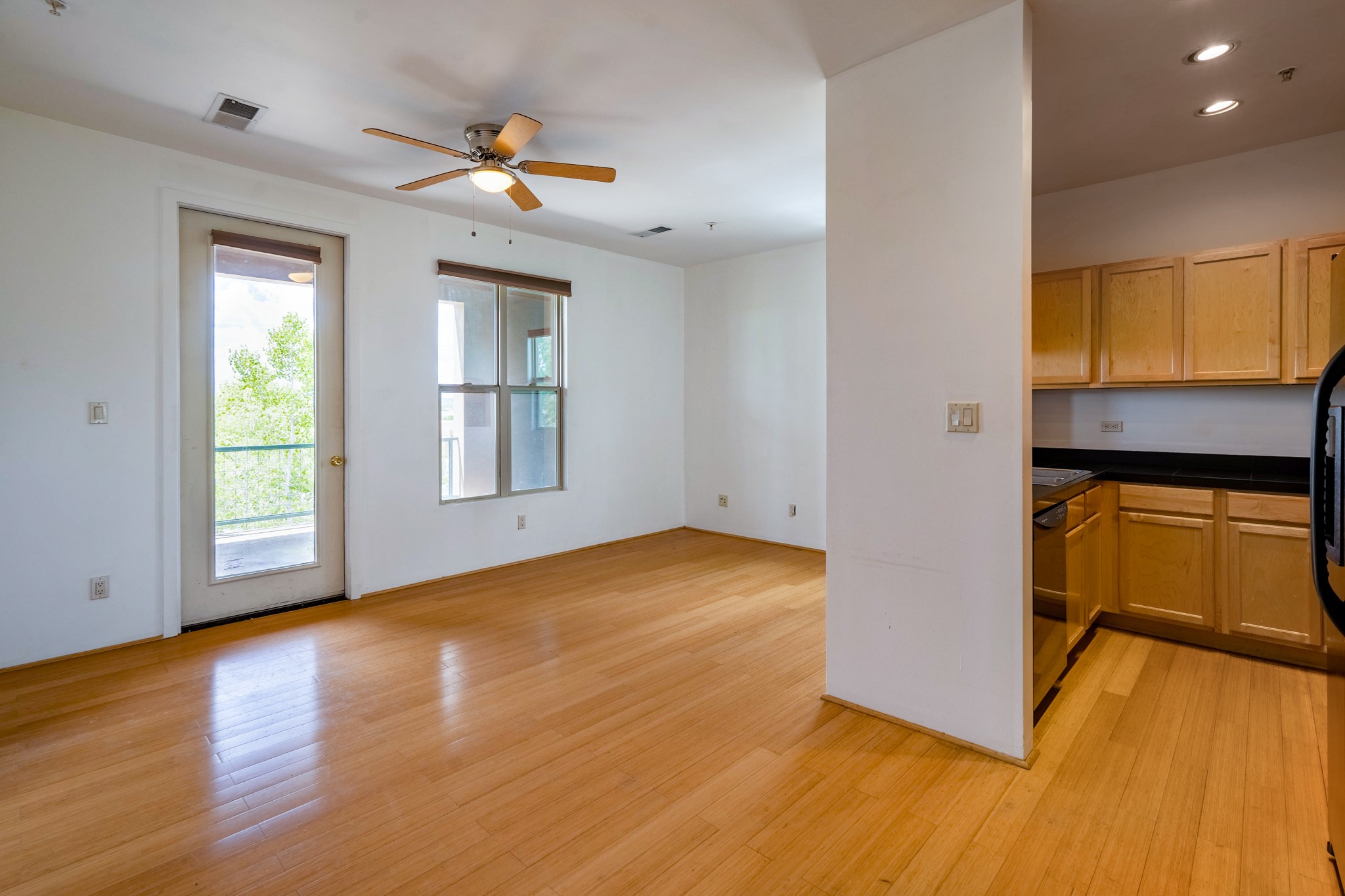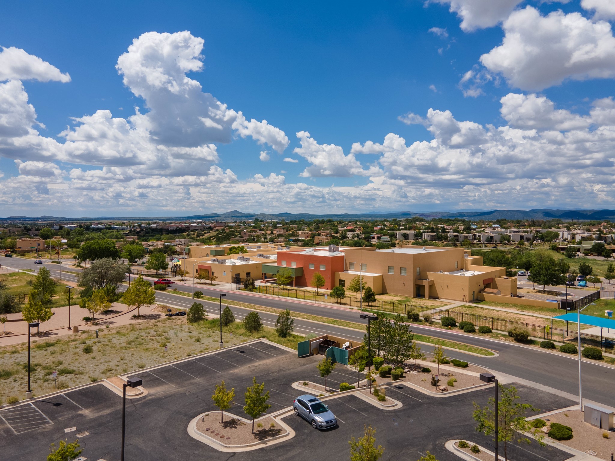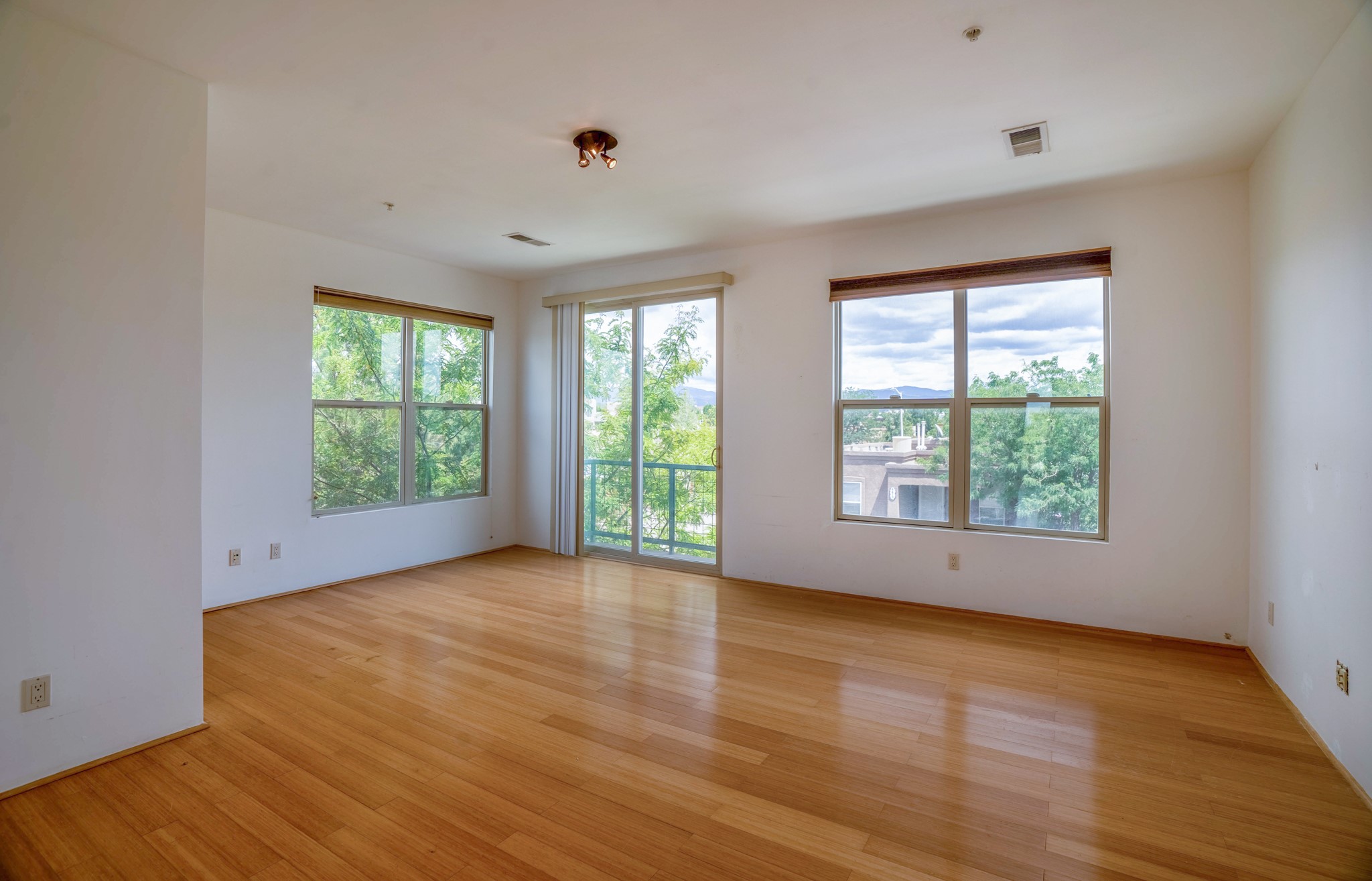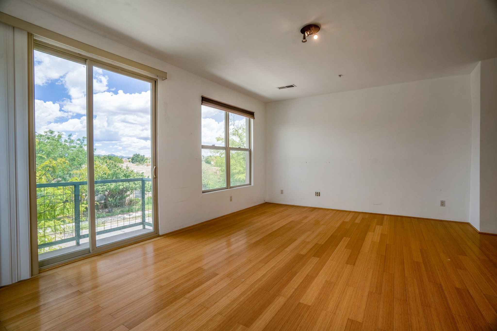 Bright, open second floor condominium with views of Sangre De Cristos and Sandias, end/corner unit with almost 200 sq ft of covered balcony. This stylish one bedroom features an updated kitchen, refrigerated air and a stackable washer/dryer. HOA pays for garbage, roof, stucco and HVAC maintenance. Owner is a NM Real Estate Broker.