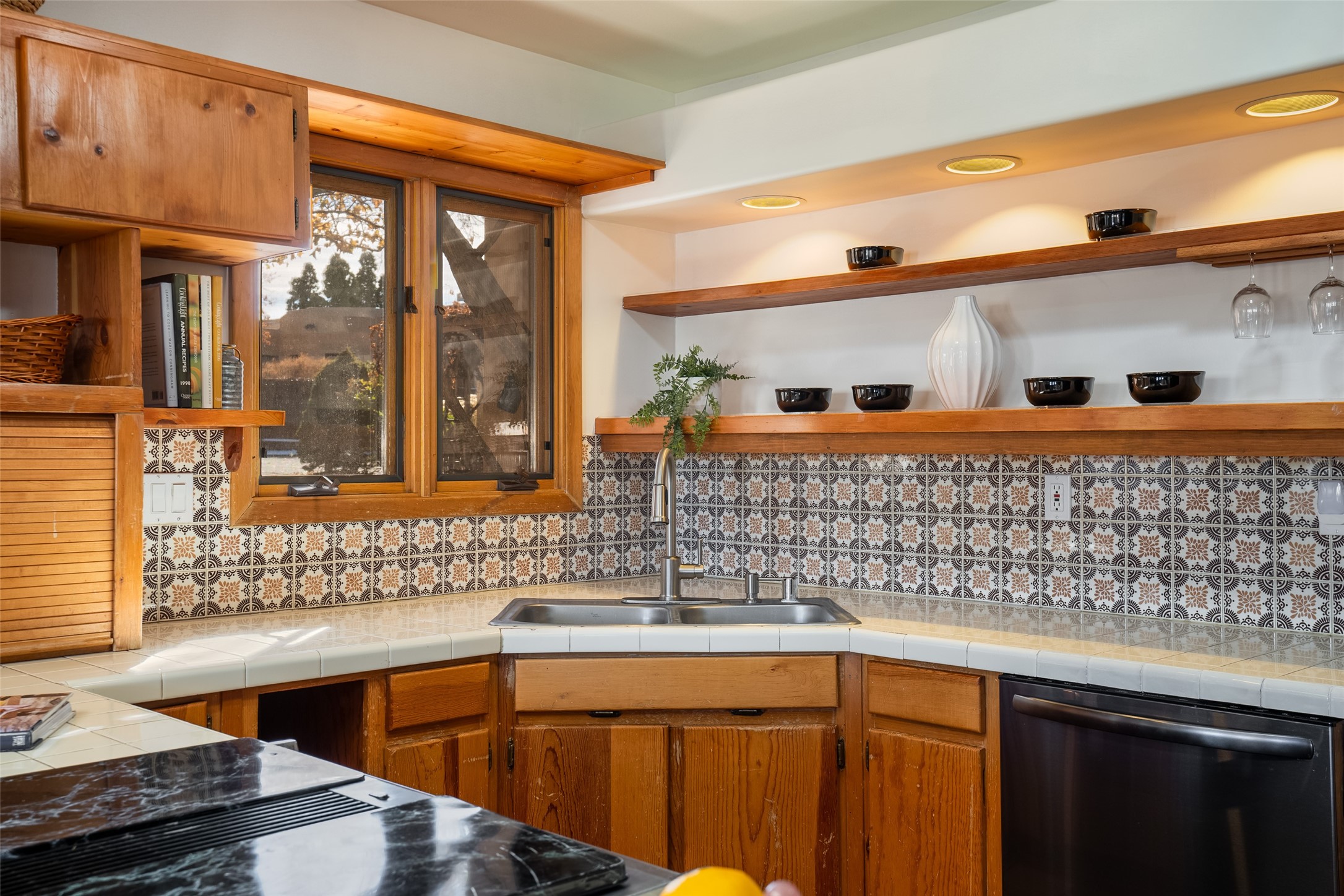 This stand alone home has a lovely floor plan with a bedroom on each side of the spacious Great Room, Dining Room and Kitchen There are only two stairs in the whole house and there is an oversized, attached, two car garage. The floors throughout are Saltillo tile. The Living Room has a tongue-in-groove wood ceiling with beams between the rooms and a corner fireplace for cozy winter evenings. The dining room has a French door leading to a large wrap-around and freshly painted deck, fenced for privacy and lined with abundant grapevines. The kitchen has a bar that separates it from the dining room but is open and could be perfect for entertaining. Sellers recently had the whole house painted.Park Plazas is a unique oasis, centrally located in Santa Fe. With miles of walking trails, an off-leash dog park, tennis and pickleball courts and a community garden this neighborhood is the perfect mix of city and country living. Don't miss this home!