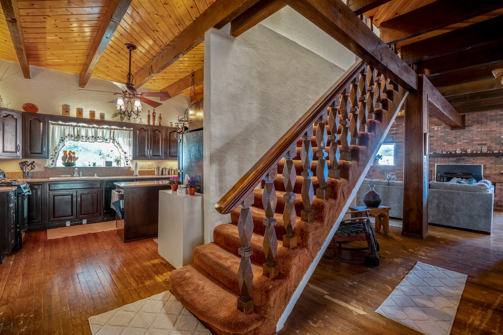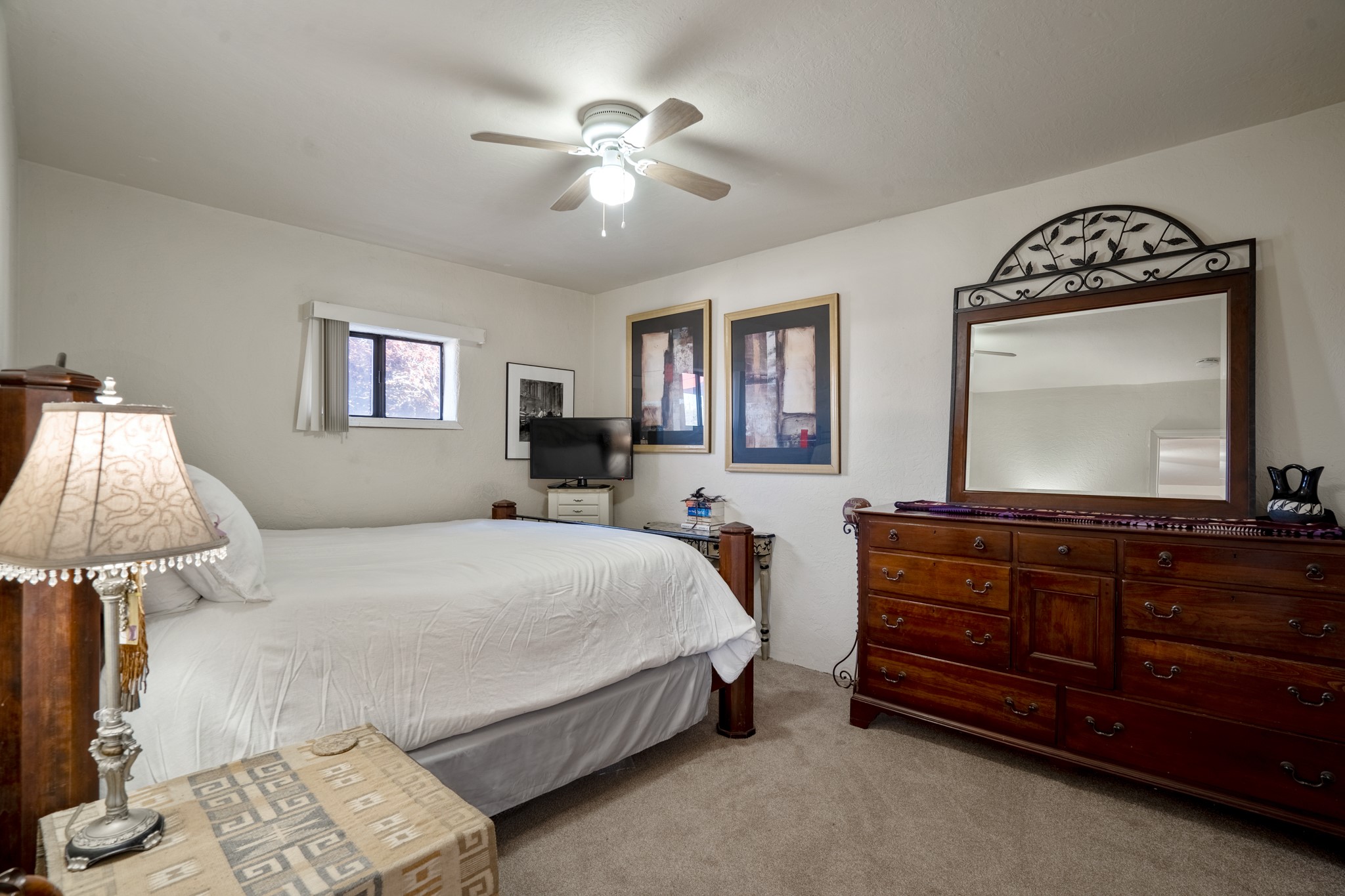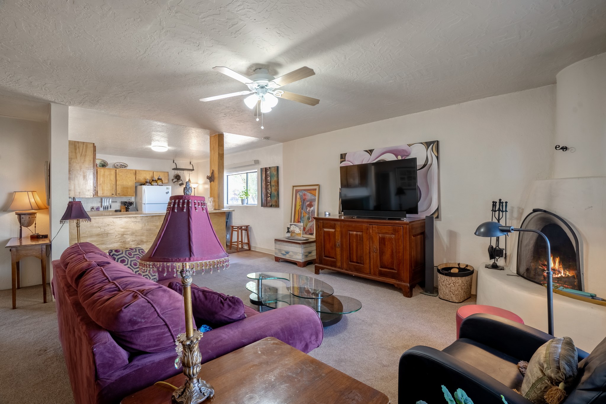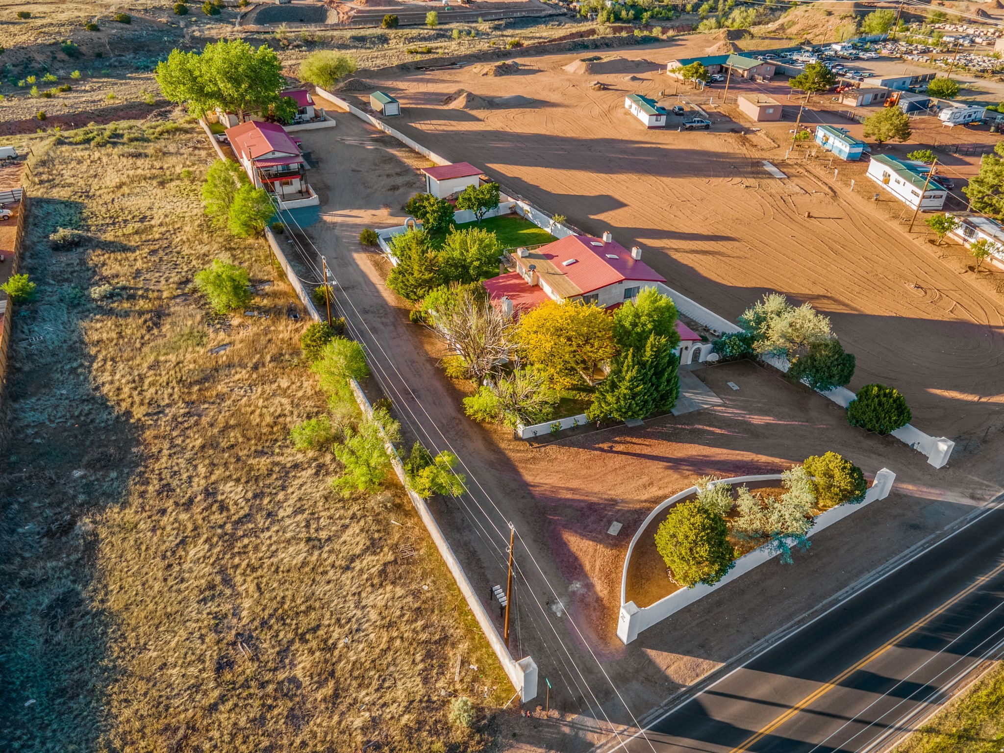 Seller Financing Considered. Main home and 5 rental units on a long 1.48 acre lot backing up to the Santa Fe River. NEW CITY SEWER LINE AND AGUA FRIA VILLAGE WATER LINE FOR THE WHOLE PROPERTY JUST INSTALLED, AN OVER $100K IMPROVEMENT. Existing well for watering the landscaping with 4 spickets in various spots. The main home features three levels with four bedrooms, three baths, two living rooms, dining room, finished basement, a two car garage, walled backyard, front yard, side patio, and a large redwood deck off the master bedroom that was just rebuilt. The interior features skylights, beams, tongue and groove ceilings in a herringbone pattern, and custom carved wood staircases. The finished basement contains a huge family room with a kiva fireplace, windows all around, one bedroom with a sitting area and stairwell to access the backyard. The large backyard has lush grass, grape vines, and fruit trees including peach, cherry, green apple, red apple, apricot. Duplex with matching 2 bed 1 bath units with front yard and fireplace. The triplex consists of a 1 bed 1 bath unit with a front yard, a 1 bed 1 bath unit with a balcony, and a 2 bed 1 bath with a two car a garage. On the property there is also a separate detached oversized one car garage. Main house is approximately 3,226 sq ft. Units in the duplex are approximately 987 sq ft each. The triplex has two 936 sq ft units and one 1,033 sq ft unit. All square footages are according to an appraisal done in 1996, buyer to verify. This property has character, large square footage, and high-income producing potential!