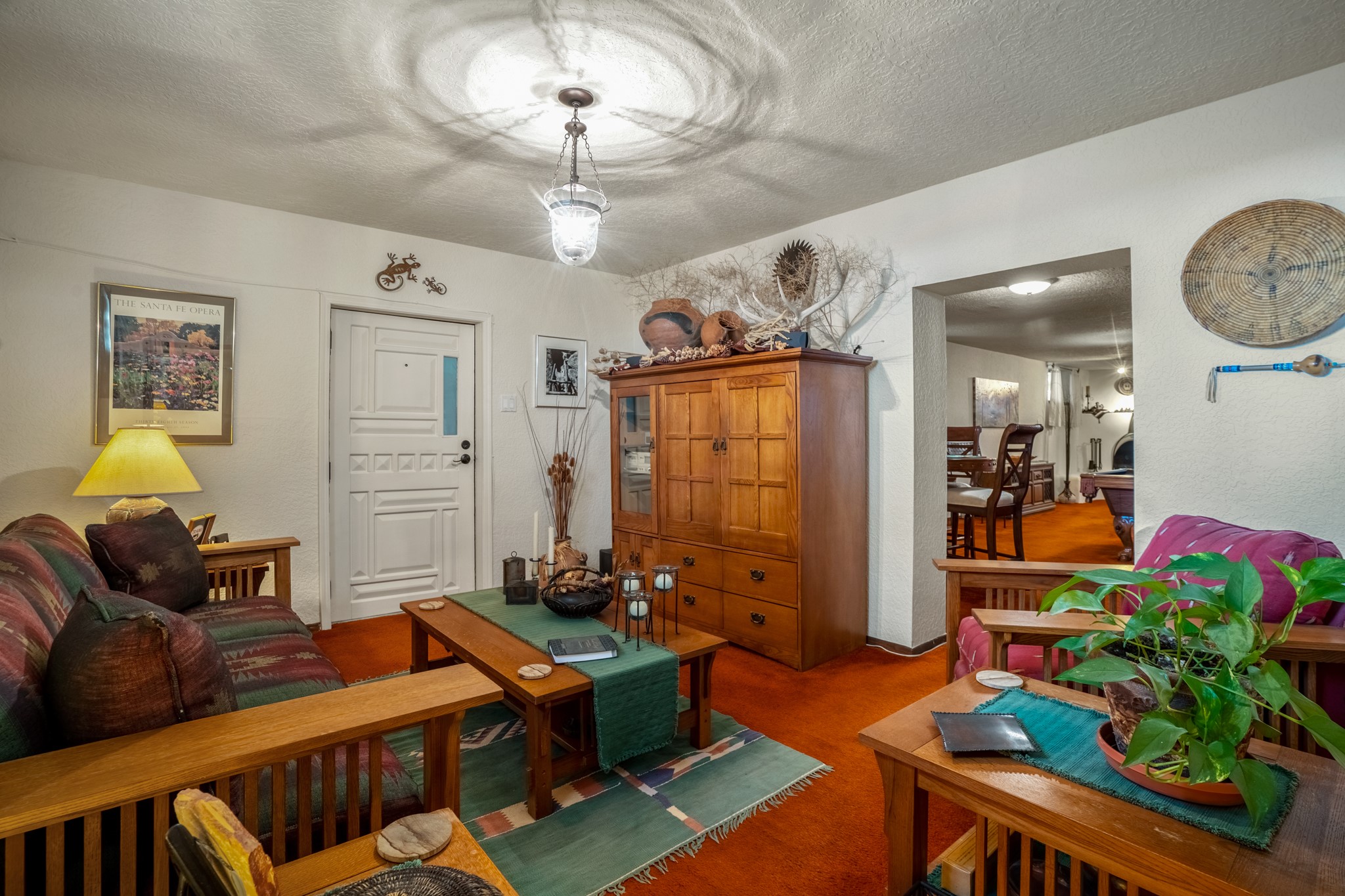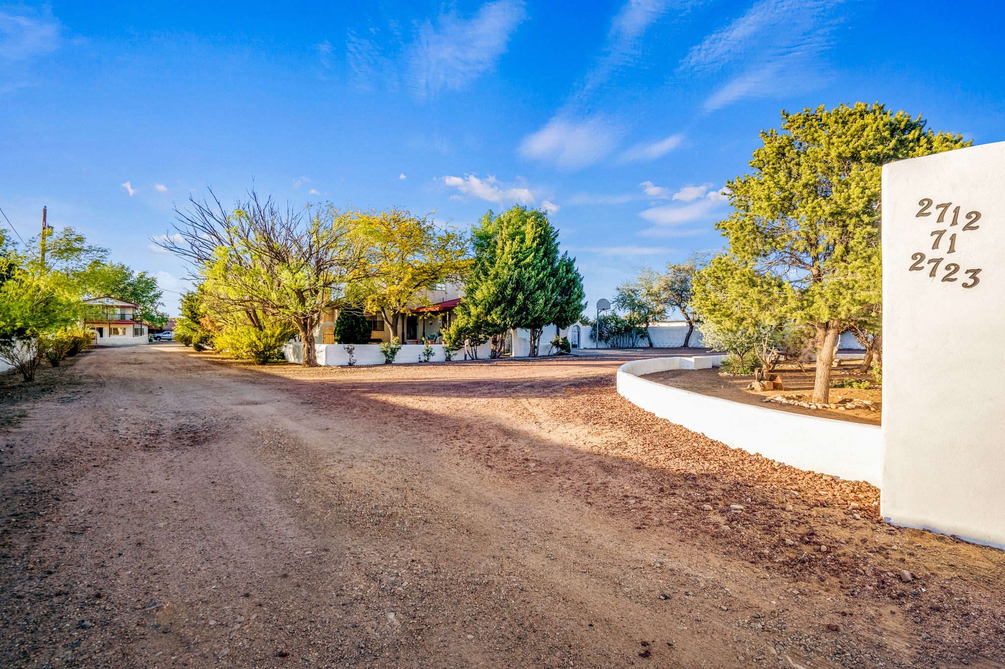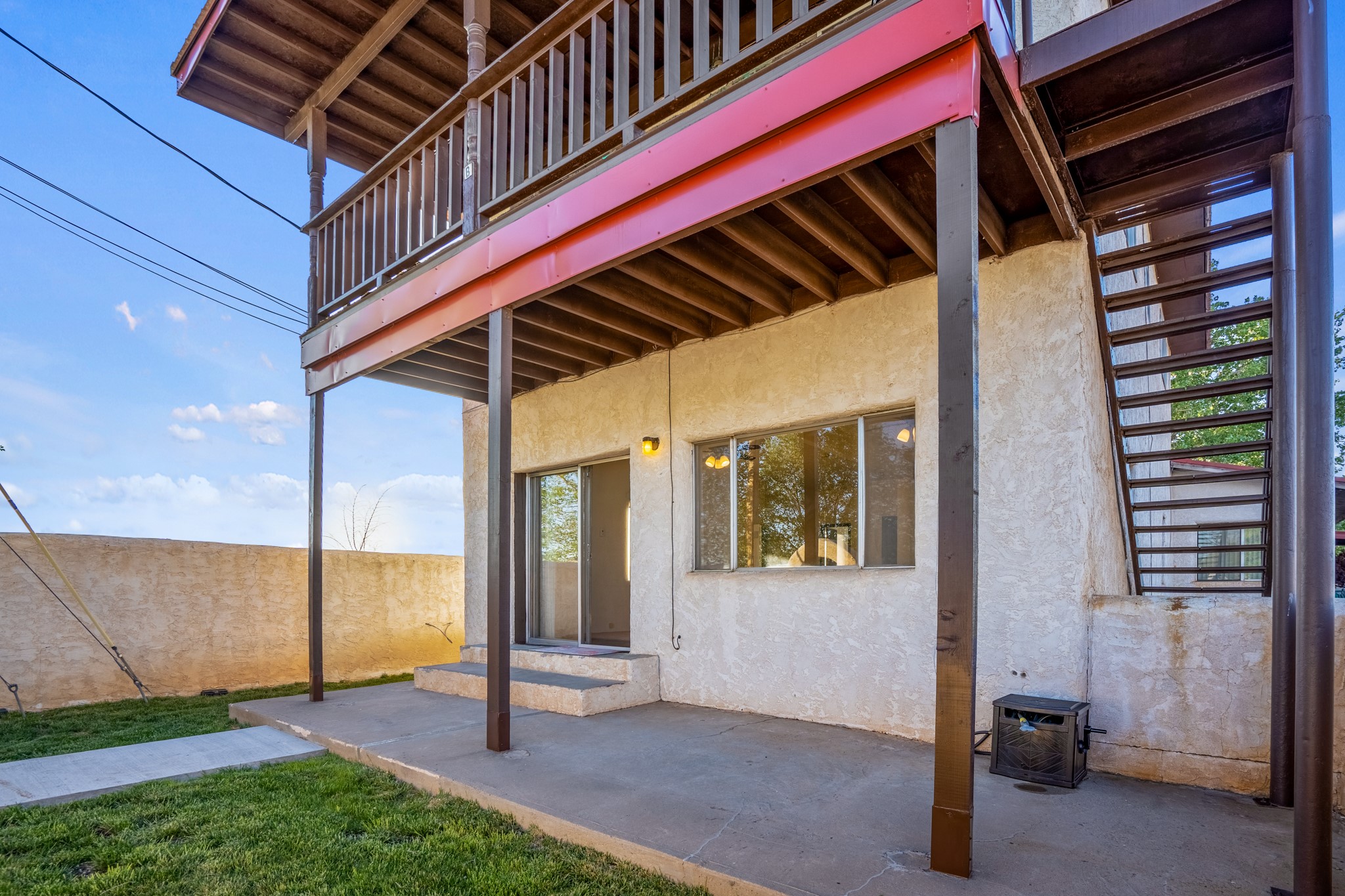 Seller Financing Considered. Main home and 5 rental units on a long 1.48 acre lot backing up to the Santa Fe River. NEW CITY SEWER LINE AND AGUA FRIA VILLAGE WATER LINE FOR THE WHOLE PROPERTY JUST INSTALLED, AN OVER $100K IMPROVEMENT. Existing well for watering the landscaping with 4 spickets in various spots. The main home features three levels with four bedrooms, three baths, two living rooms, dining room, finished basement, a two car garage, walled backyard, front yard, side patio, and a large redwood deck off the master bedroom that was just rebuilt. The interior features skylights, beams, tongue and groove ceilings in a herringbone pattern, and custom carved wood staircases. The finished basement contains a huge family room with a kiva fireplace, windows all around, one bedroom with a sitting area and stairwell to access the backyard. The large backyard has lush grass, grape vines, and fruit trees including peach, cherry, green apple, red apple, apricot. Duplex with matching 2 bed 1 bath units with front yard and fireplace. The triplex consists of a 1 bed 1 bath unit with a front yard, a 1 bed 1 bath unit with a balcony, and a 2 bed 1 bath with a two car a garage. On the property there is also a separate detached oversized one car garage. Main house is approximately 3,226 sq ft. Units in the duplex are approximately 987 sq ft each. The triplex has two 936 sq ft units and one 1,033 sq ft unit. All square footages are according to an appraisal done in 1996, buyer to verify. This property has character, large square footage, and high-income producing potential!