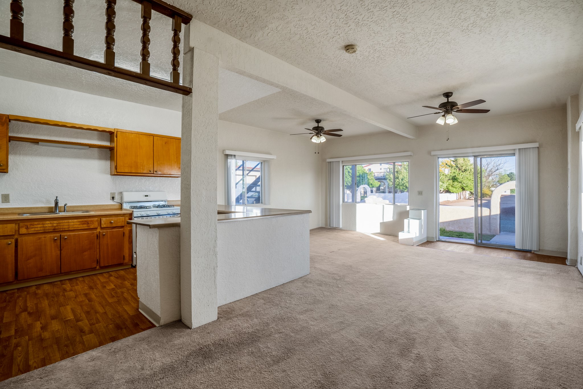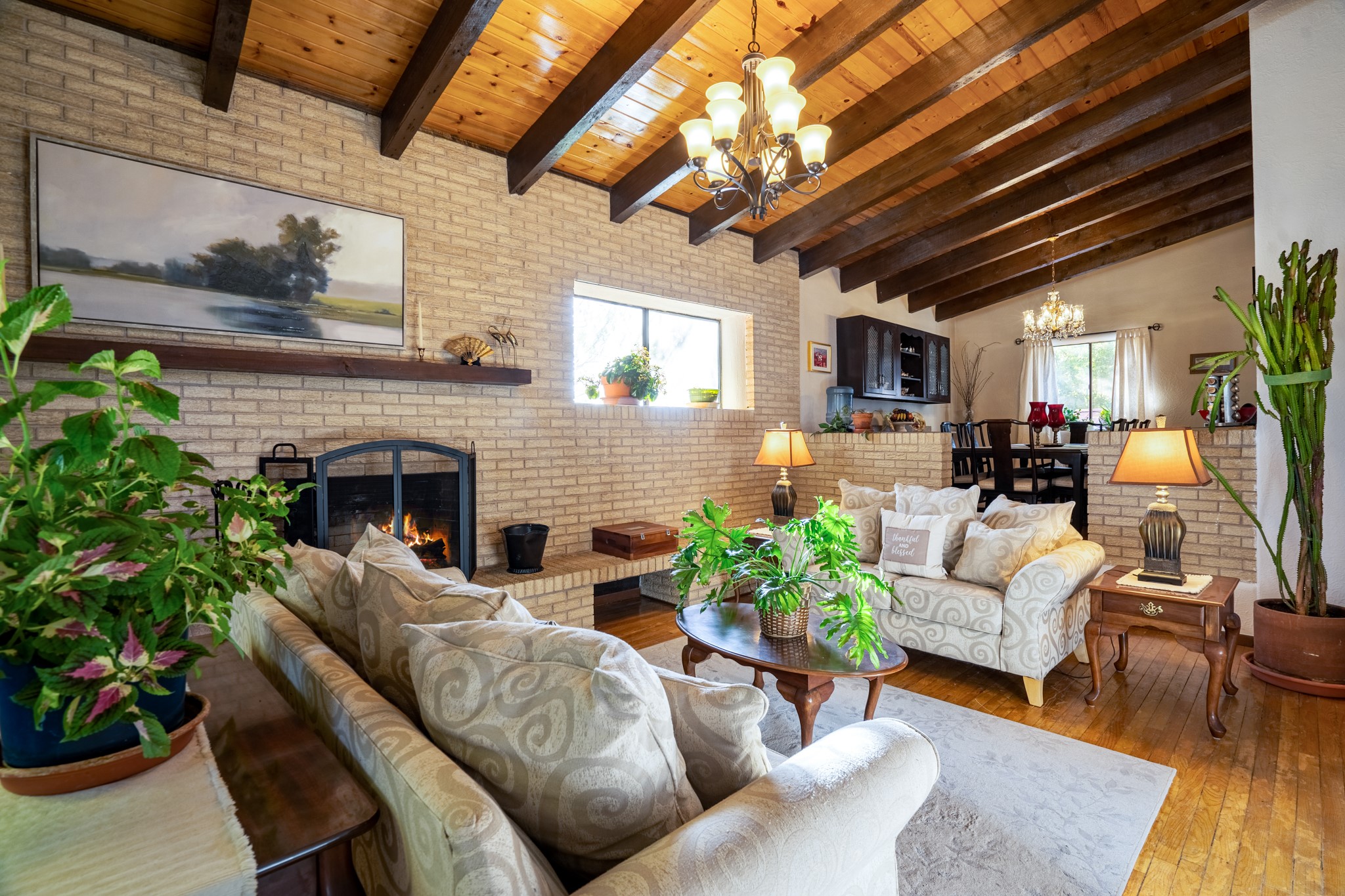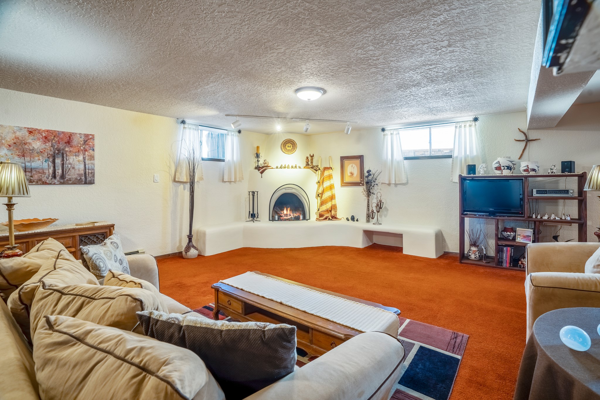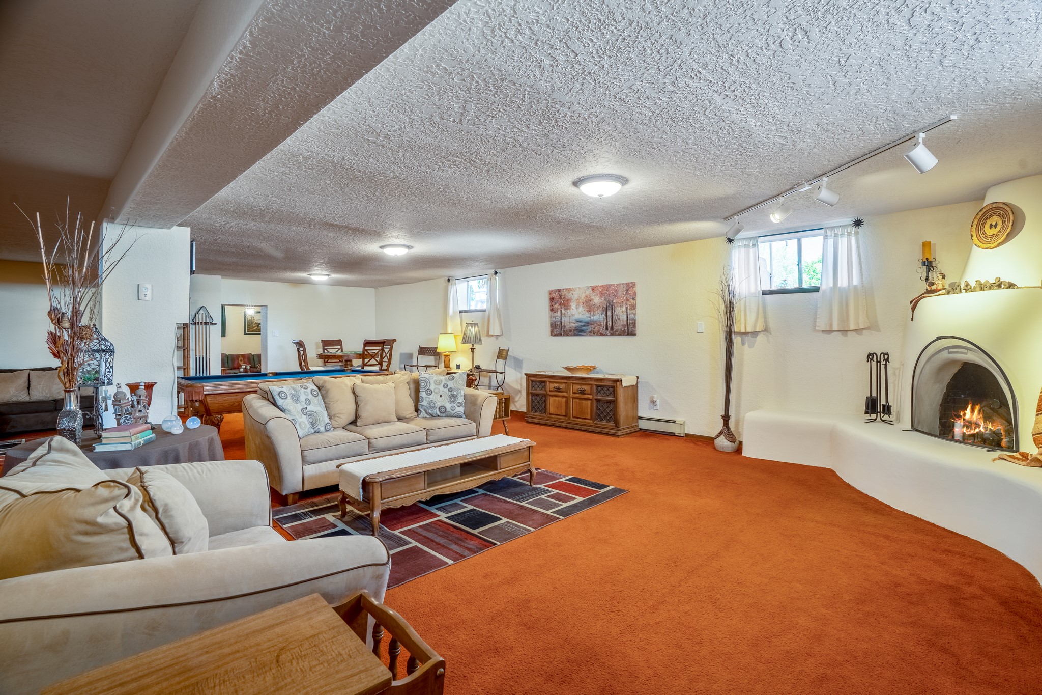 Seller Financing Considered. Main home and 5 rental units on a long 1.48 acre lot backing up to the Santa Fe River. NEW CITY SEWER LINE AND AGUA FRIA VILLAGE WATER LINE FOR THE WHOLE PROPERTY JUST INSTALLED, AN OVER $100K IMPROVEMENT. Existing well for watering the landscaping with 4 spickets in various spots. The main home features three levels with four bedrooms, three baths, two living rooms, dining room, finished basement, a two car garage, walled backyard, front yard, side patio, and a large redwood deck off the master bedroom that was just rebuilt. The interior features skylights, beams, tongue and groove ceilings in a herringbone pattern, and custom carved wood staircases. The finished basement contains a huge family room with a kiva fireplace, windows all around, one bedroom with a sitting area and stairwell to access the backyard. The large backyard has lush grass, grape vines, and fruit trees including peach, cherry, green apple, red apple, apricot. Duplex with matching 2 bed 1 bath units with front yard and fireplace. The triplex consists of a 1 bed 1 bath unit with a front yard, a 1 bed 1 bath unit with a balcony, and a 2 bed 1 bath with a two car a garage. On the property there is also a separate detached oversized one car garage. Main house is approximately 3,226 sq ft. Units in the duplex are approximately 987 sq ft each. The triplex has two 936 sq ft units and one 1,033 sq ft unit. All square footages are according to an appraisal done in 1996, buyer to verify. This property has character, large square footage, and high-income producing potential!
