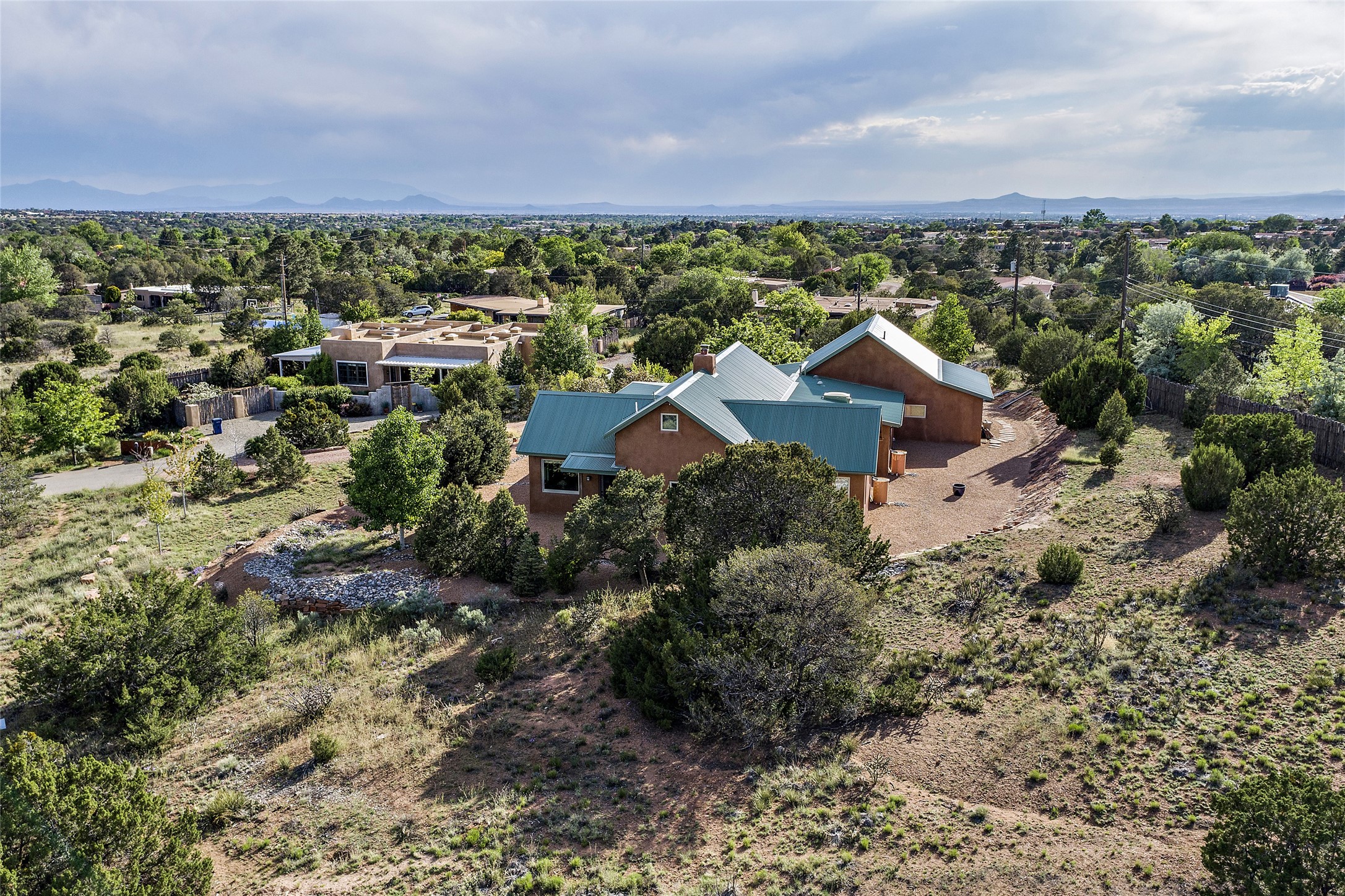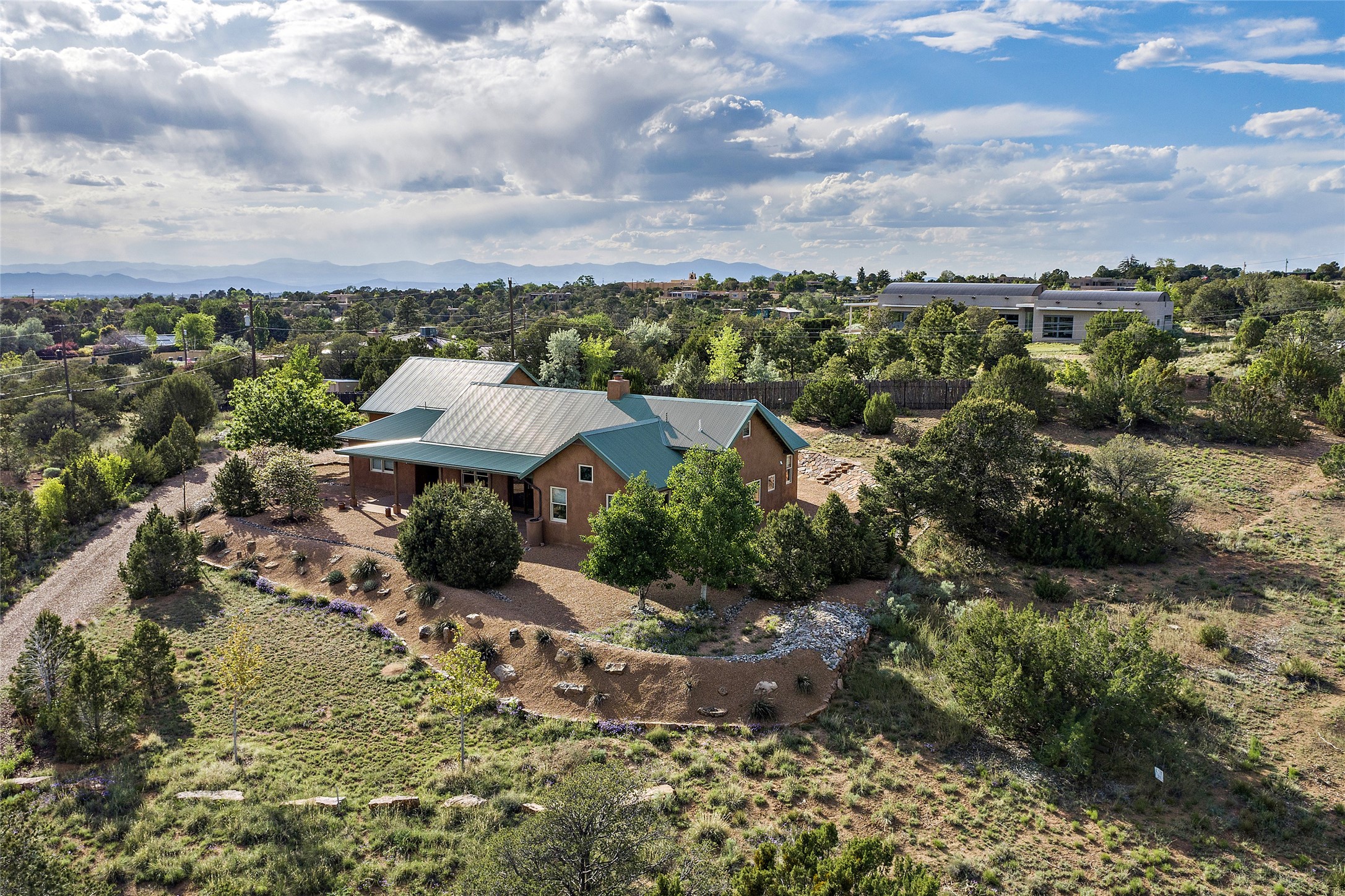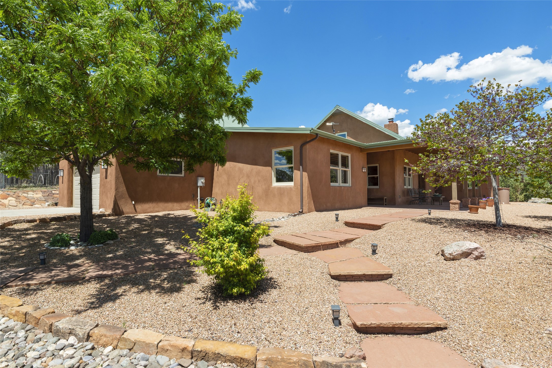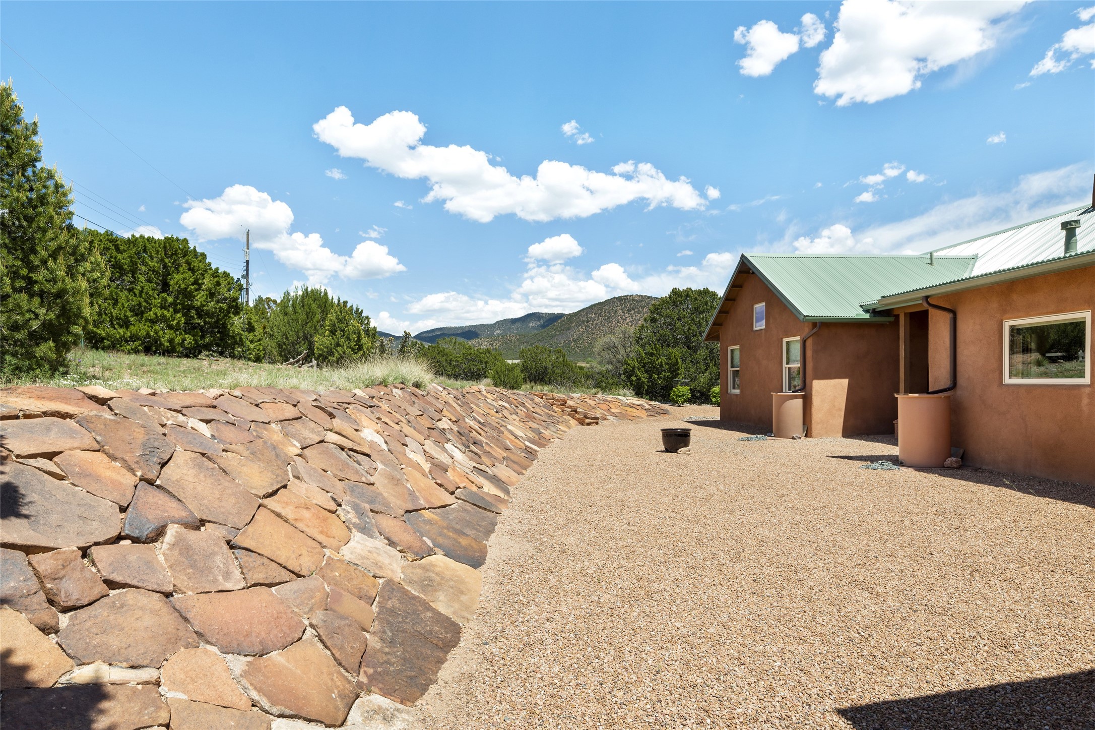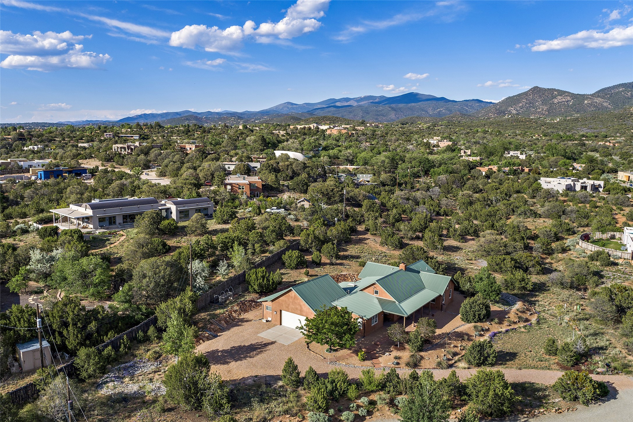 Sited on a prime larger lot in Museum Hill Estates subdivision, this custom designed newer Northern New Mexico-style home is meticulous and light-filed with stunning views of Atalaya, Sun and Moon mountains. The easy access kitchen is thoughtfully designed with plentiful custom cabinets, pantry, and island storage, under counter sink, and built in microwave. Bedroom separation is excellent with versatile use options, mountain views, and well designed closet storage. The heated 2-car garage can be directly accessed through the spacious laundry room with under counter sink and custom cabinetry. Three covered patio areas serve as delightful outdoor retreats. Numerous features include: superior insulation throughout for temperature control; seven-zone radiant floor heating; sub-slab ventilation; central vacuum system; large, finished storage attic with pull-down stairs; low-maintenance metal pitched roof, and drip system for landscaping. HOA fee of $300 per year covers maintenance of walking trail and open space areas. Wood Gormley school district.