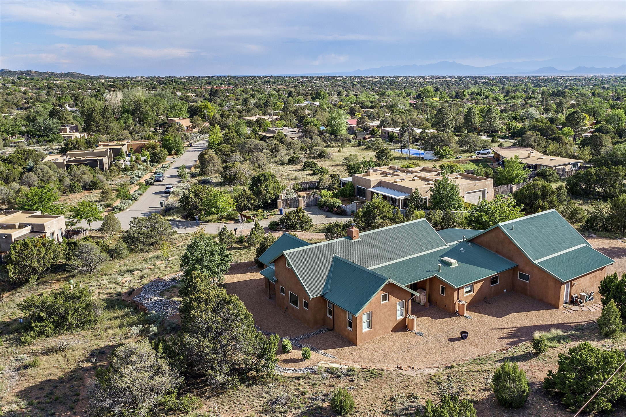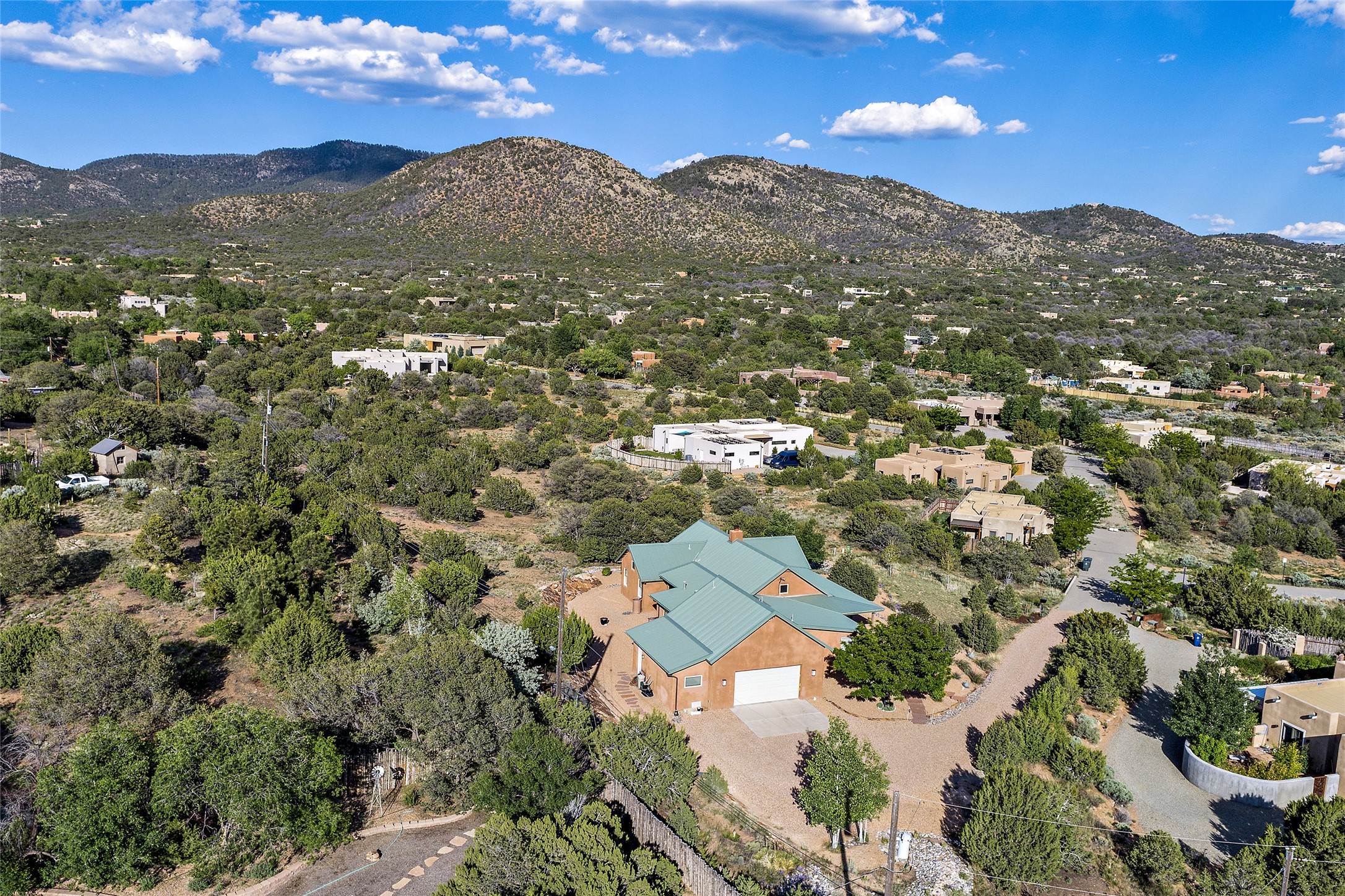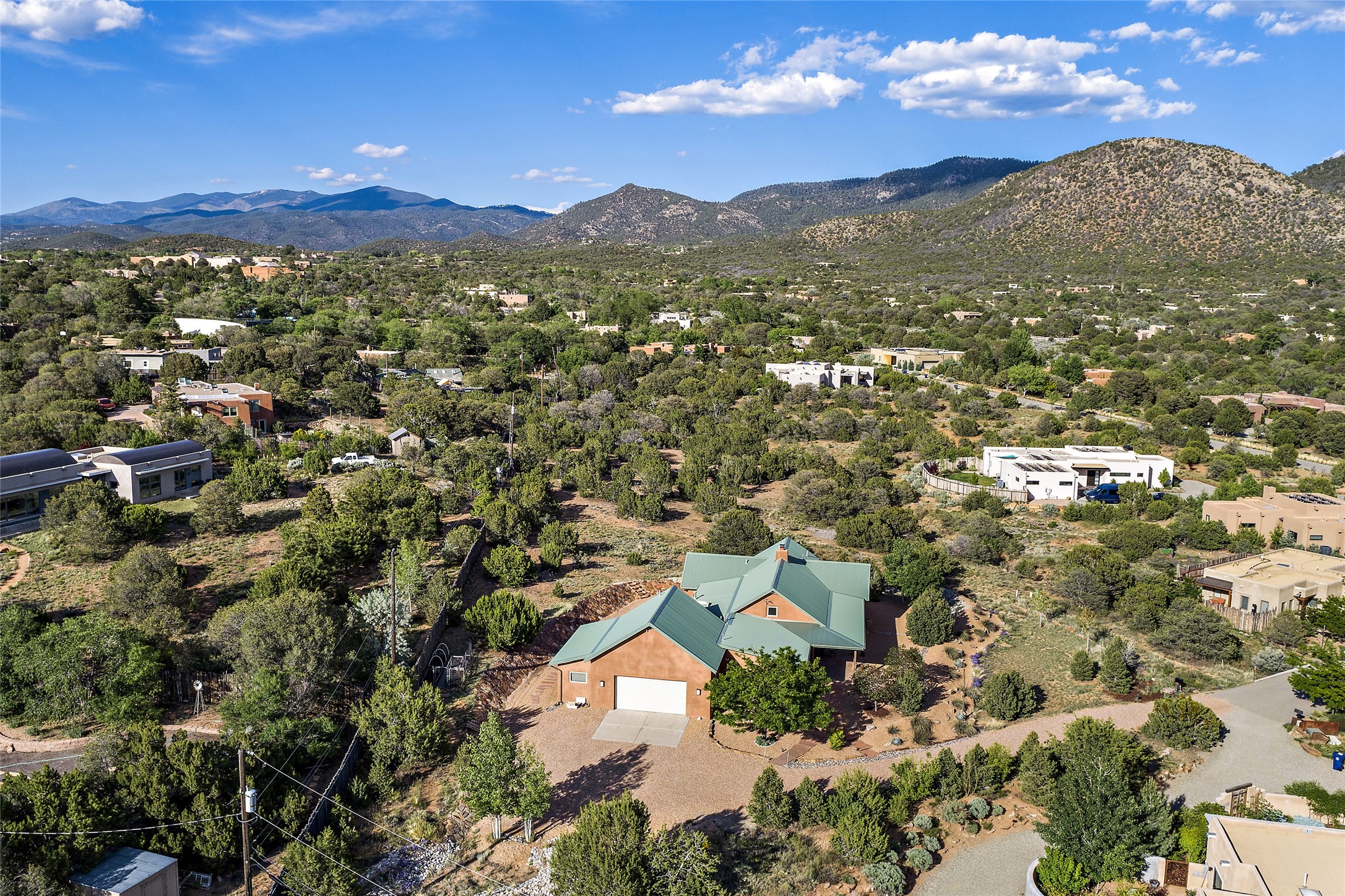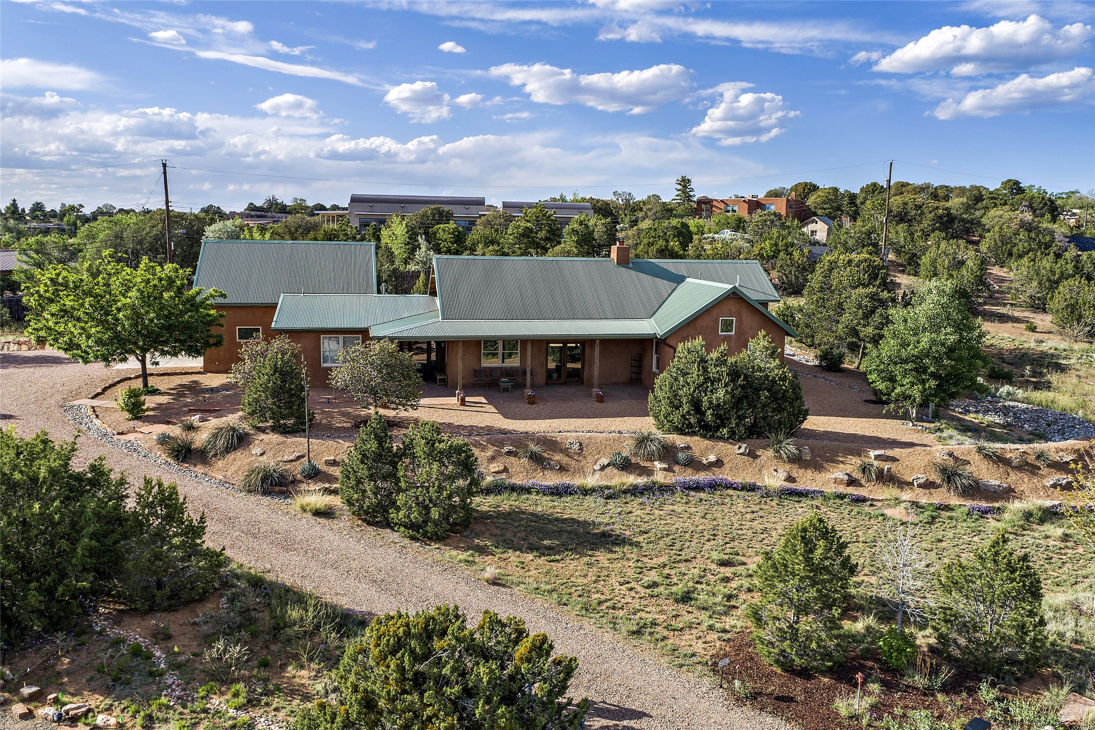 Sited on a prime larger lot in Museum Hill Estates subdivision, this custom designed newer Northern New Mexico-style home is meticulous and light-filed with stunning views of Atalaya, Sun and Moon mountains. The easy access kitchen is thoughtfully designed with plentiful custom cabinets, pantry, and island storage, under counter sink, and built in microwave. Bedroom separation is excellent with versatile use options, mountain views, and well designed closet storage. The heated 2-car garage can be directly accessed through the spacious laundry room with under counter sink and custom cabinetry. Three covered patio areas serve as delightful outdoor retreats. Numerous features include: superior insulation throughout for temperature control; seven-zone radiant floor heating; sub-slab ventilation; central vacuum system; large, finished storage attic with pull-down stairs; low-maintenance metal pitched roof, and drip system for landscaping. HOA fee of $300 per year covers maintenance of walking trail and open space areas. Wood Gormley school district.